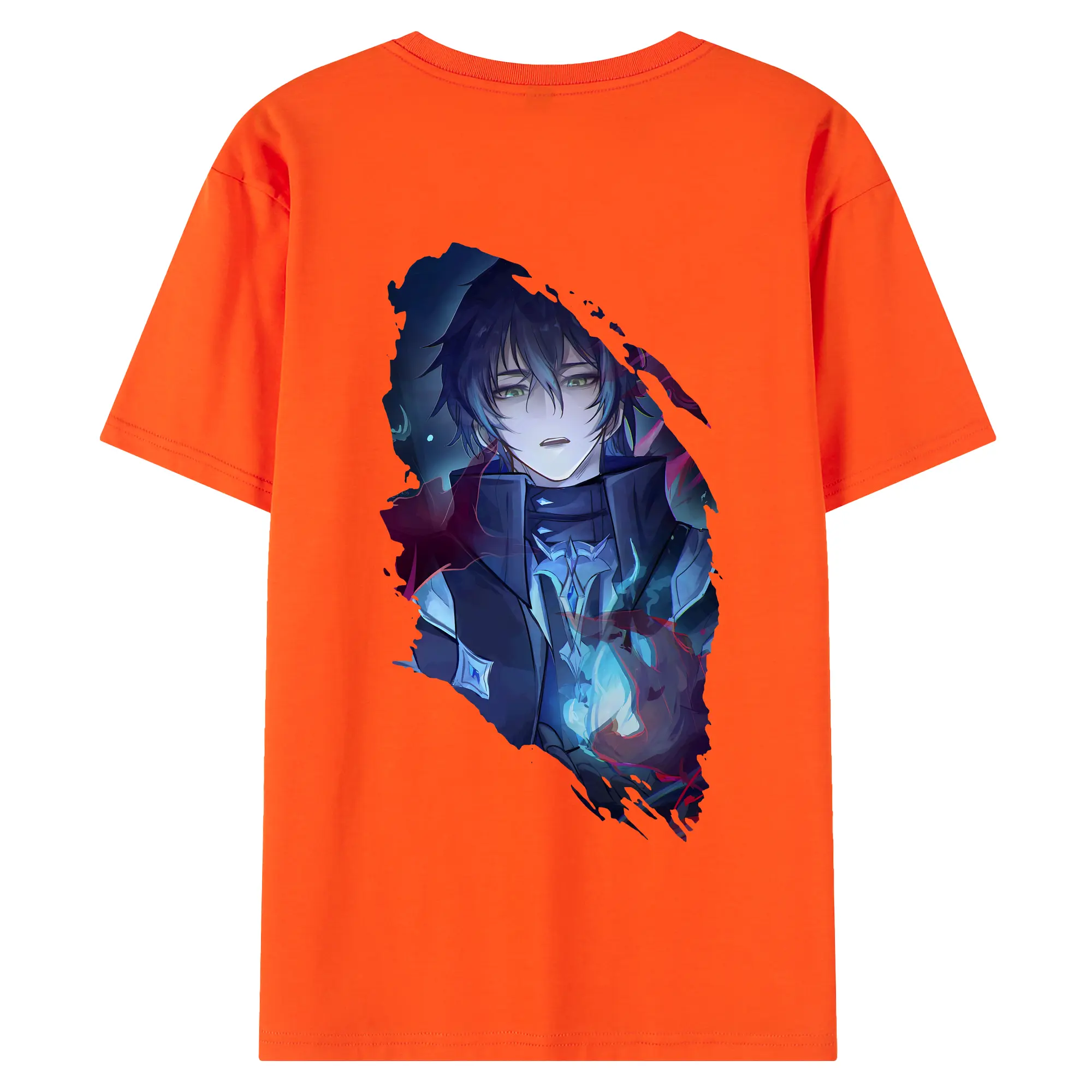 原 神 グッズ フリンズ - 綿100% ヴィンテージ風 半袖Tシャツ ・ 背面プリント ・ 柔らか肌触り ・ 通気性 快適 ・ スポーツ カジュアル 外出用