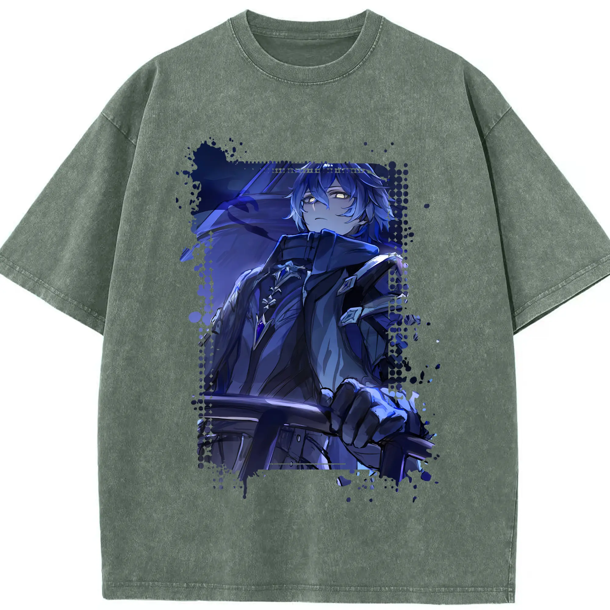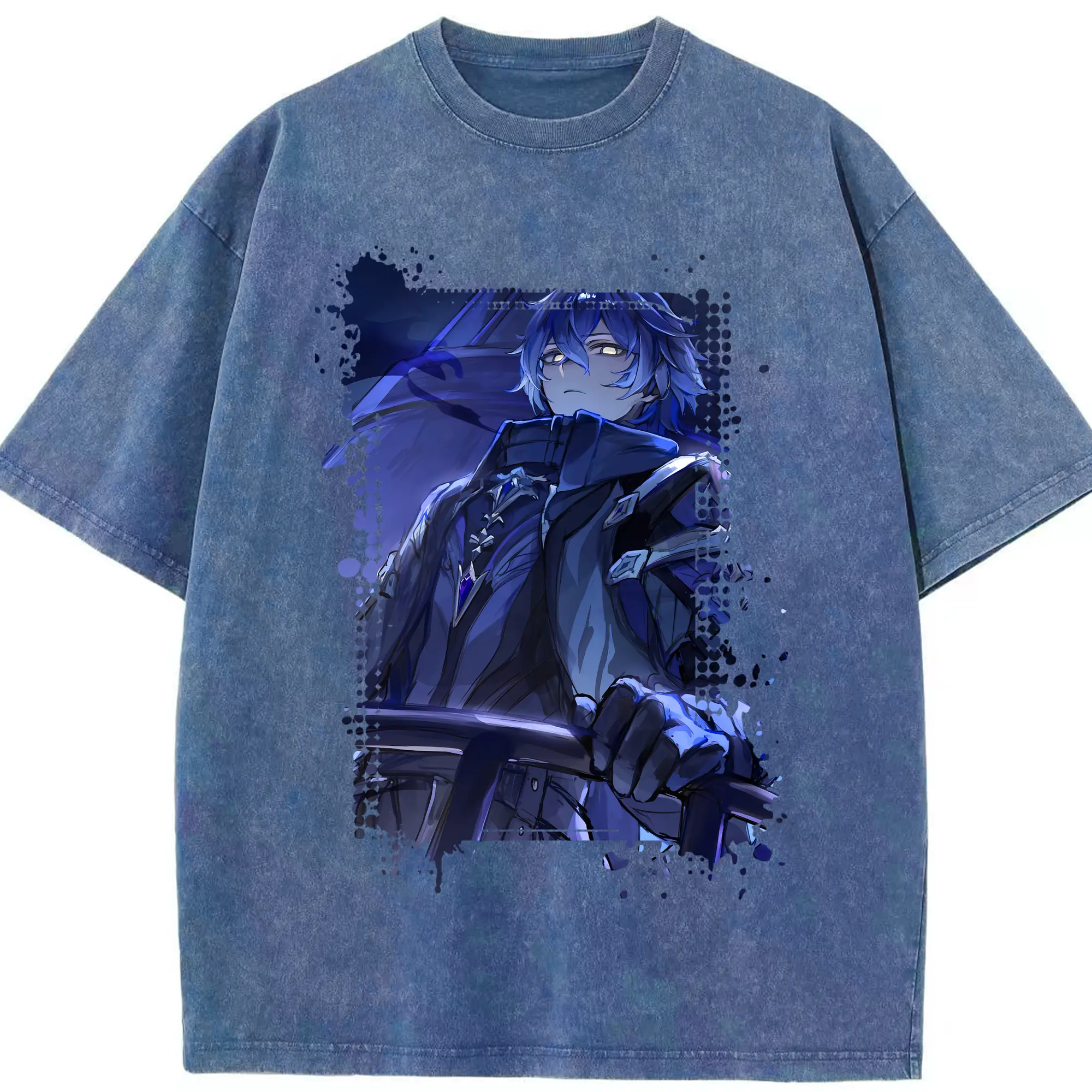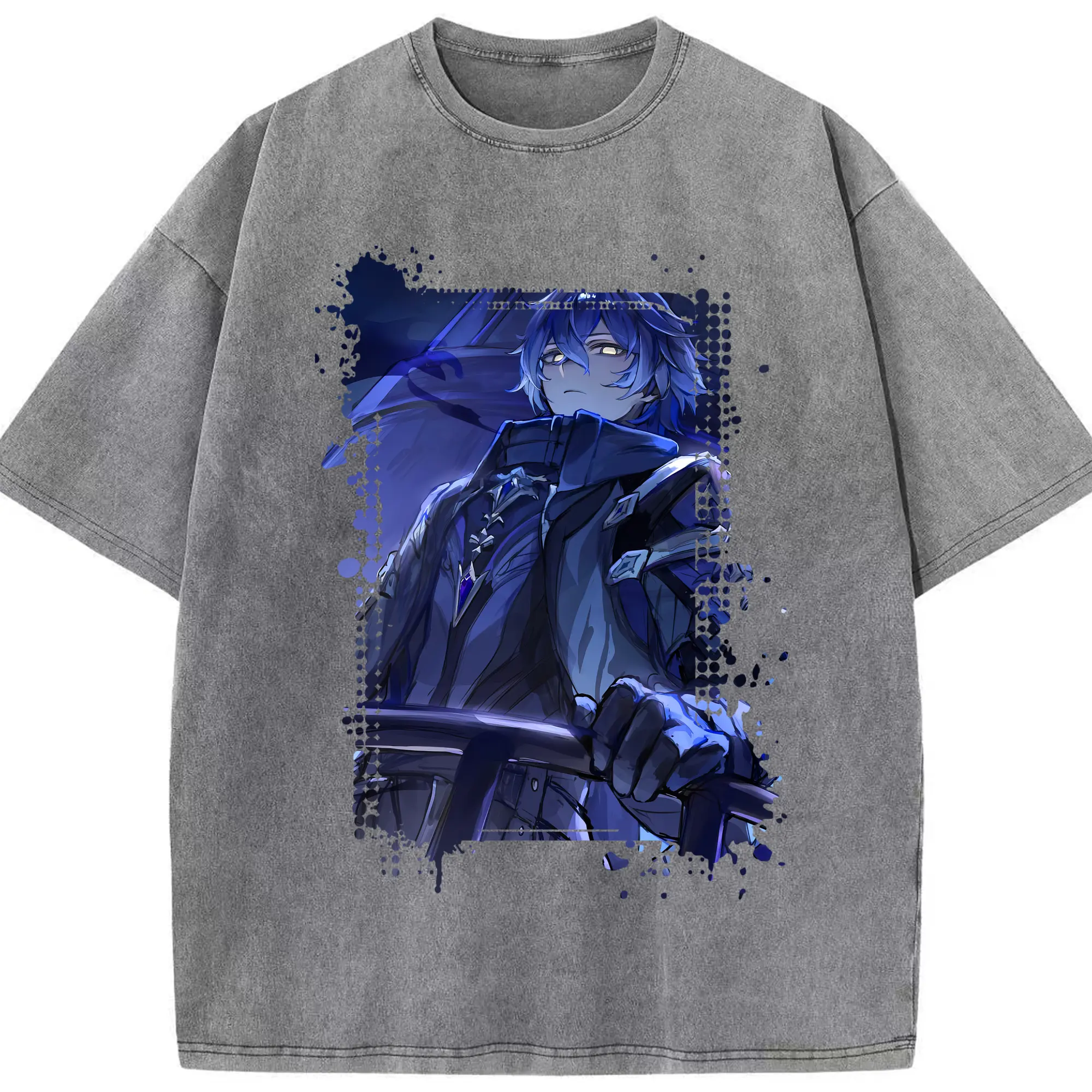 原 神 グッズ フリンズ - 綿100% ヴィンテージ風 半袖Tシャツ ・ 背面プリント ・ 柔らか肌触り ・ 通気性 快適 ・ スポーツ カジュアル 外出用