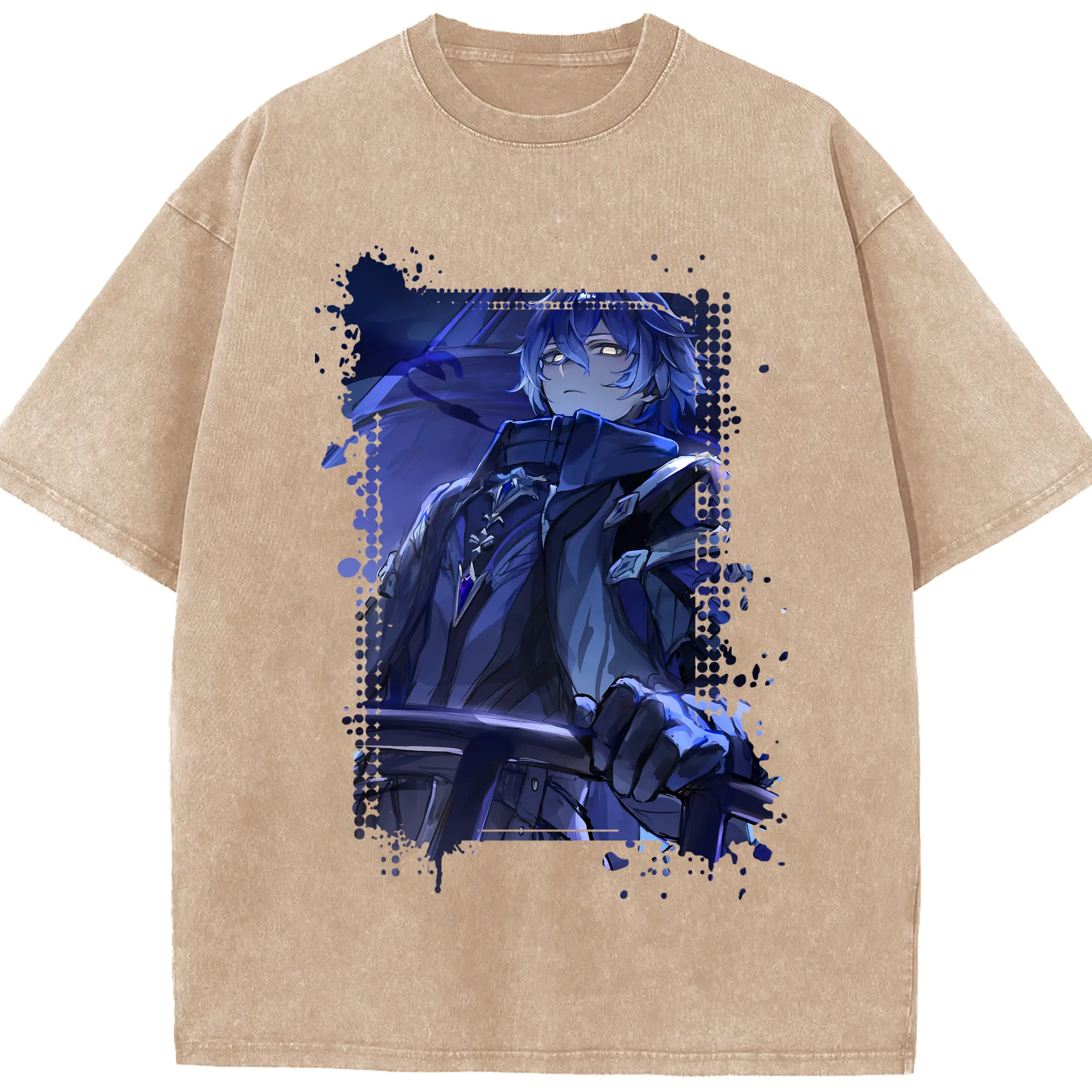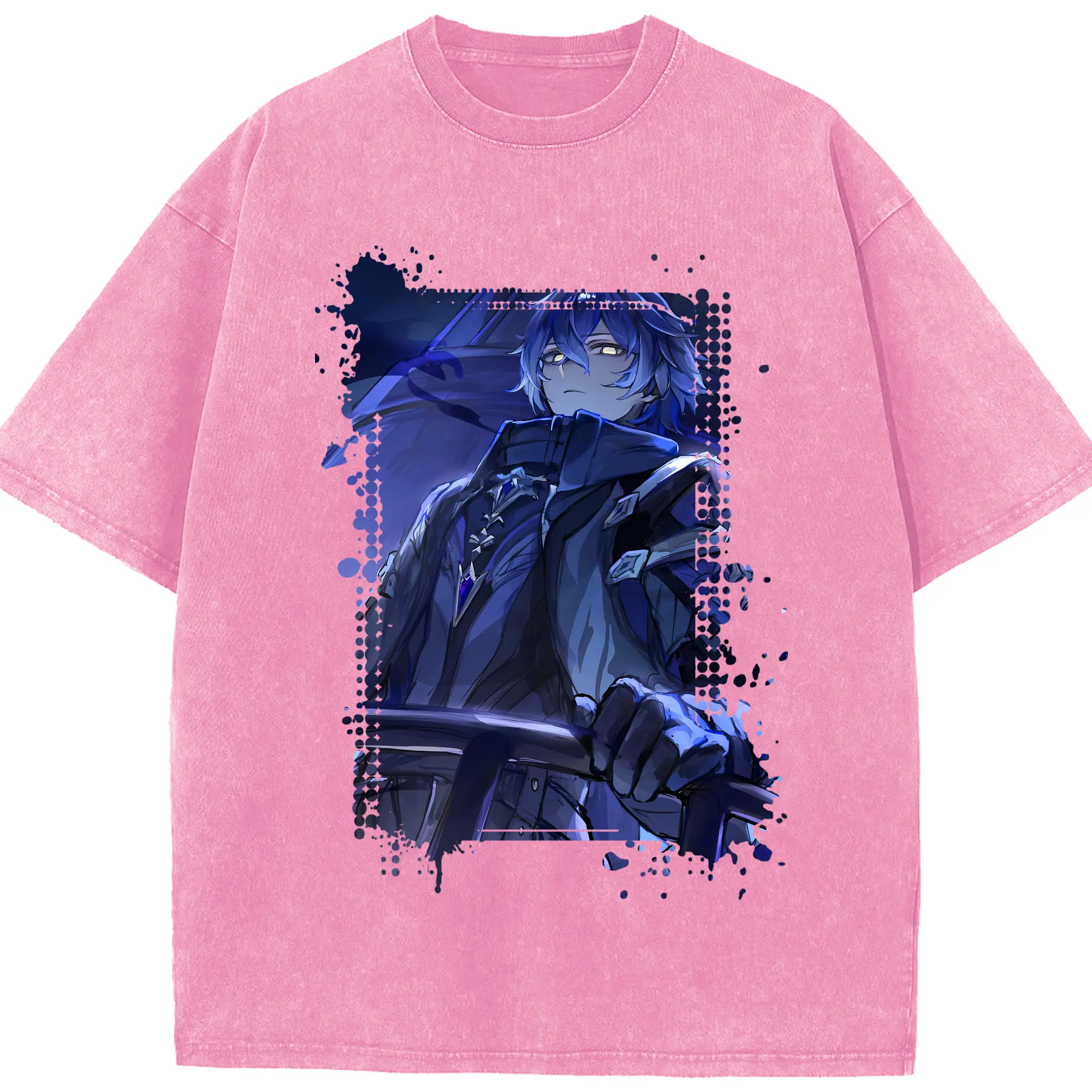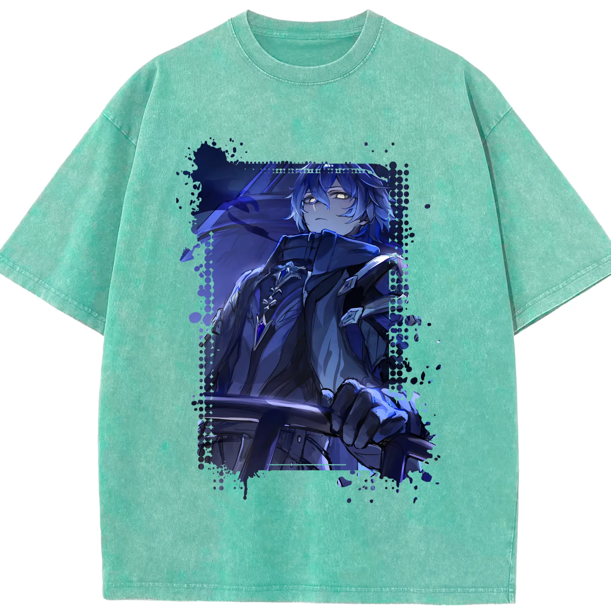 原 神 グッズ フリンズ - 綿100% ヴィンテージ風 半袖Tシャツ ・ 背面プリント ・ 柔らか肌触り ・ 通気性 快適 ・ スポーツ カジュアル 外出用