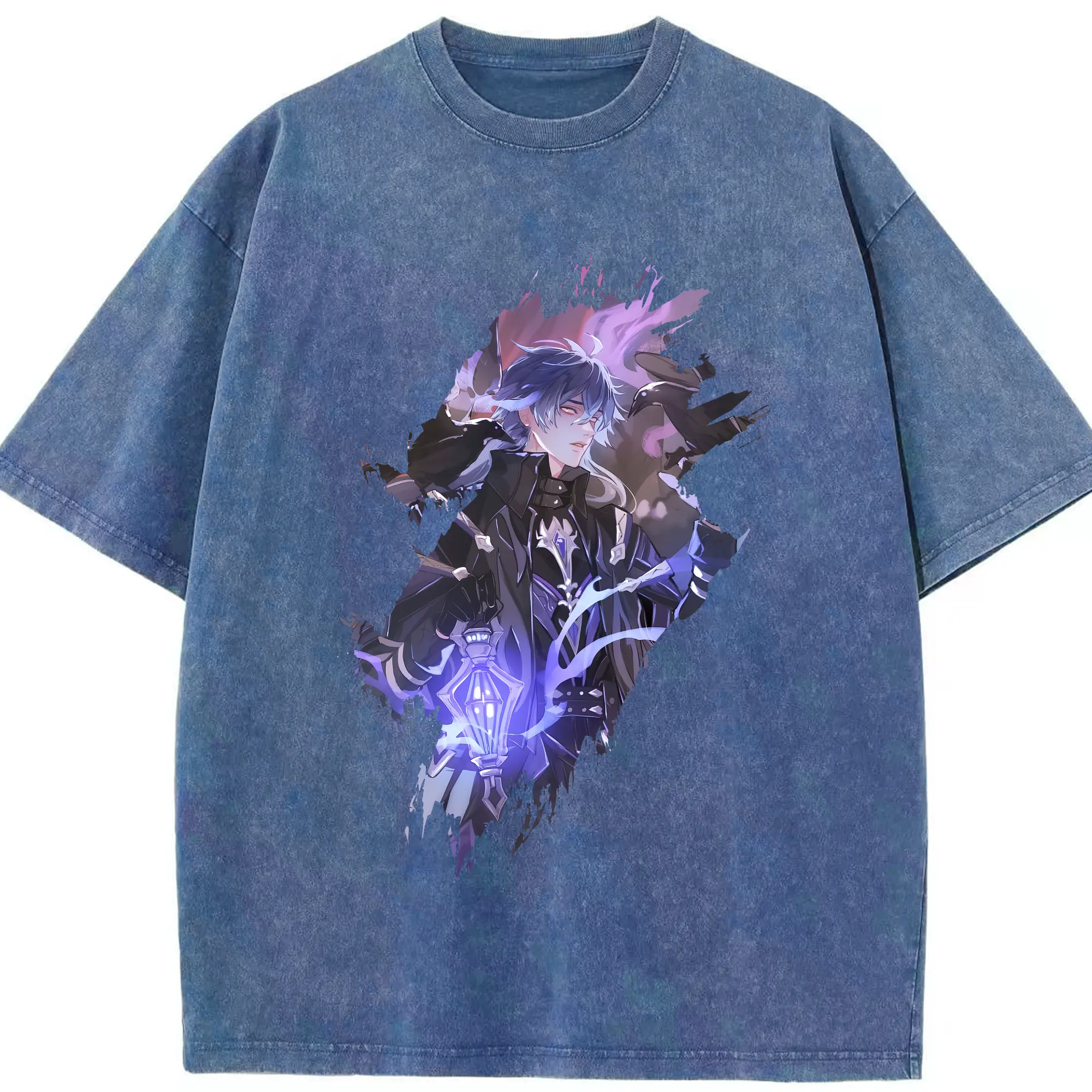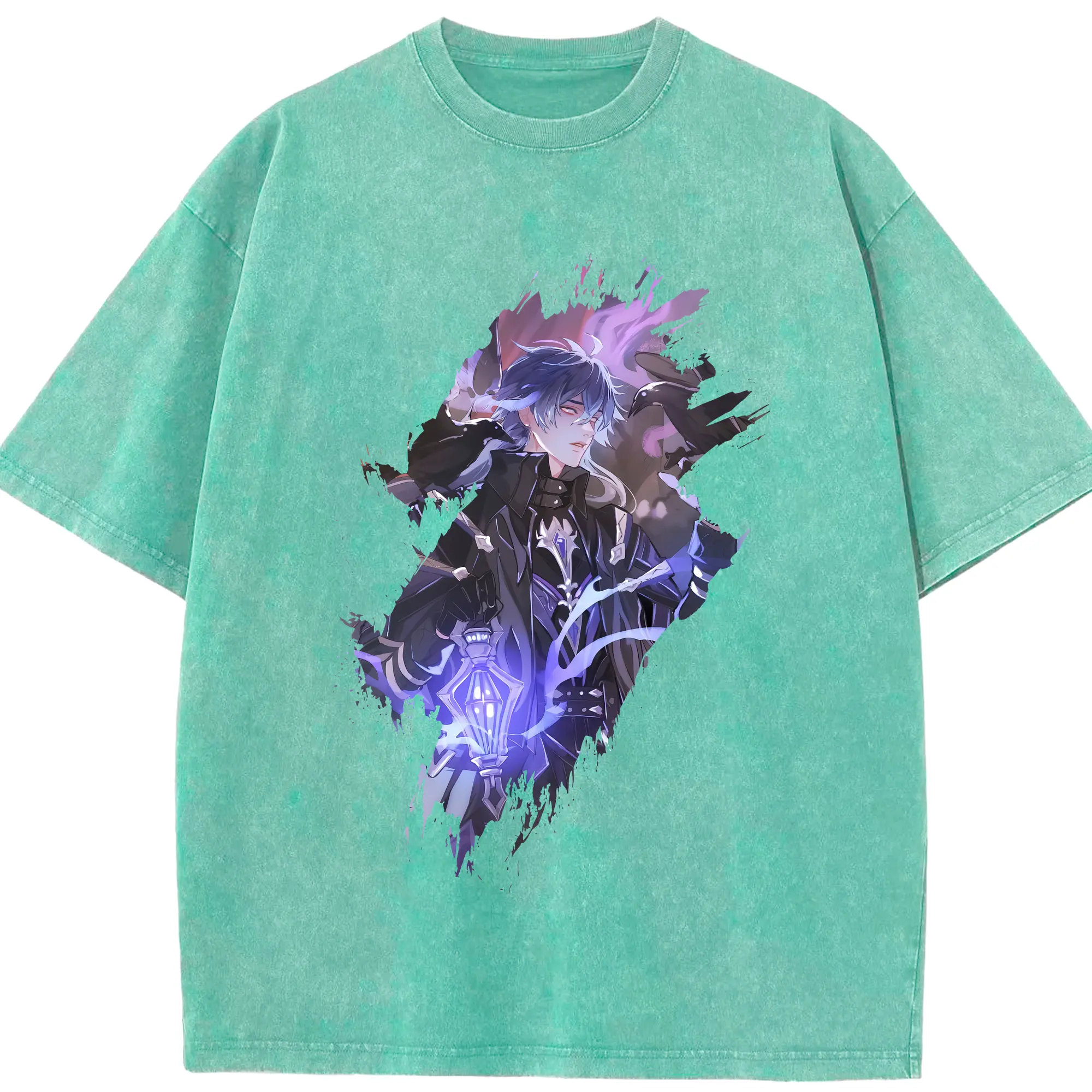 原 神 グッズ フリンズ - 綿100% ヴィンテージ風 半袖Tシャツ ・ 背面プリント ・ 柔らか肌触り ・ 通気性 快適 ・ スポーツ カジュアル 外出用