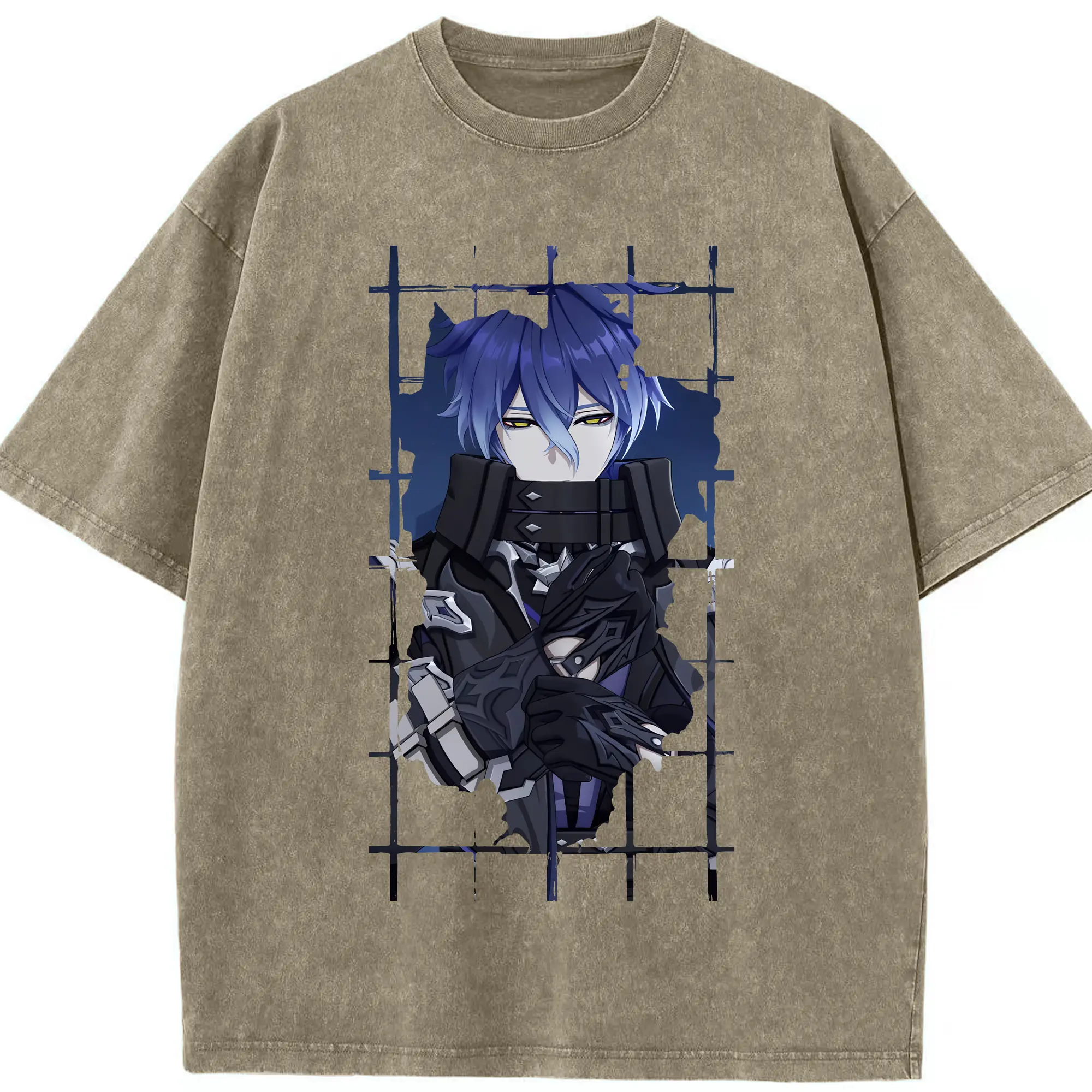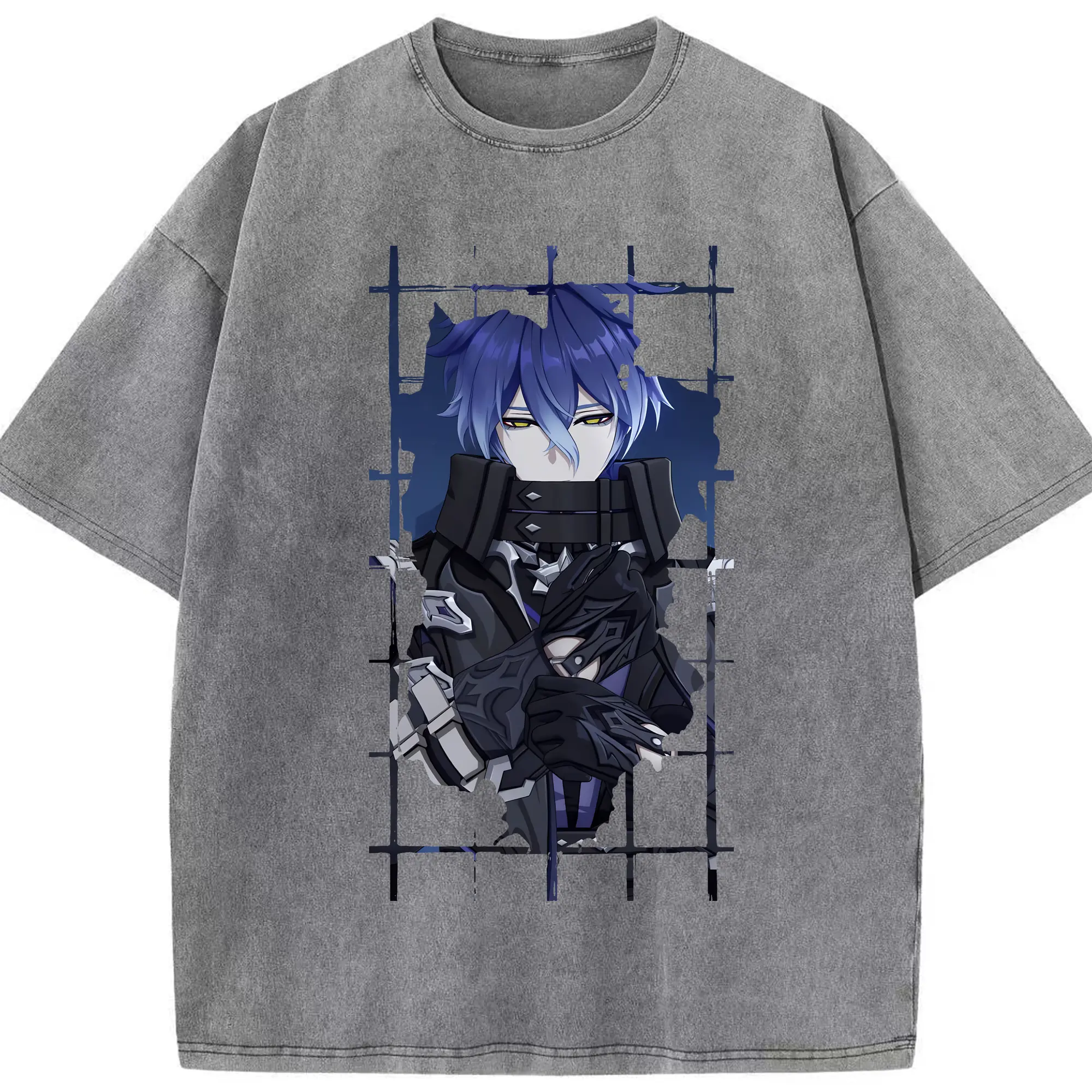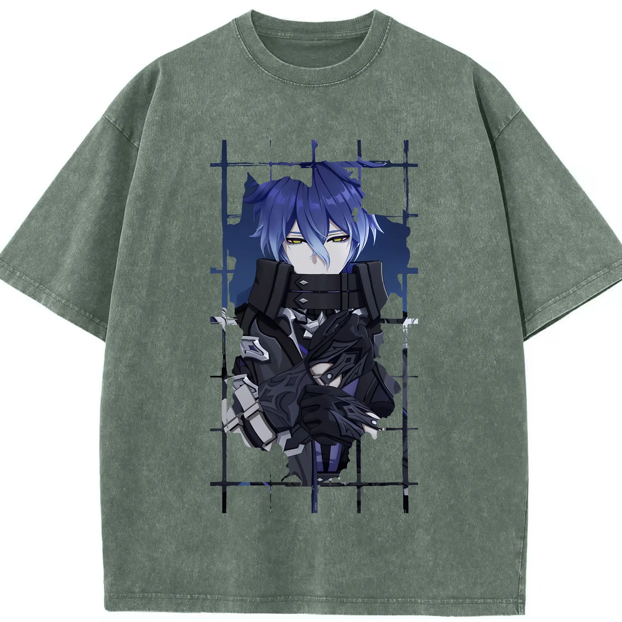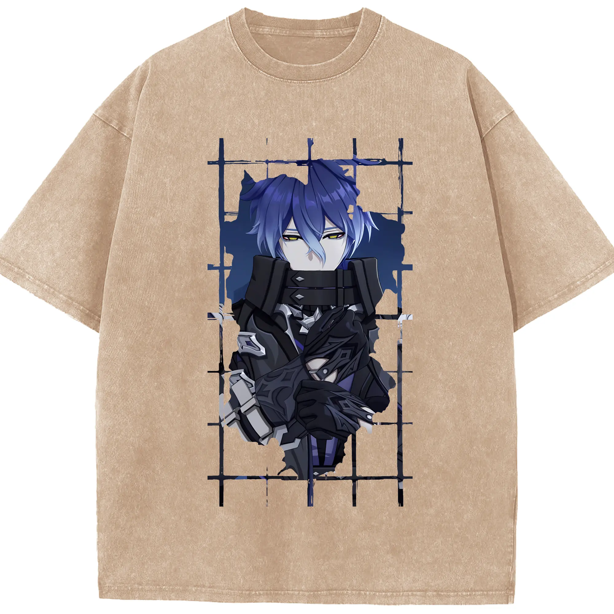 原 神 グッズ フリンズ - 綿100% ヴィンテージ風 半袖Tシャツ ・ 背面プリント ・ 柔らか肌触り ・ 通気性 快適 ・ スポーツ カジュアル 外出用