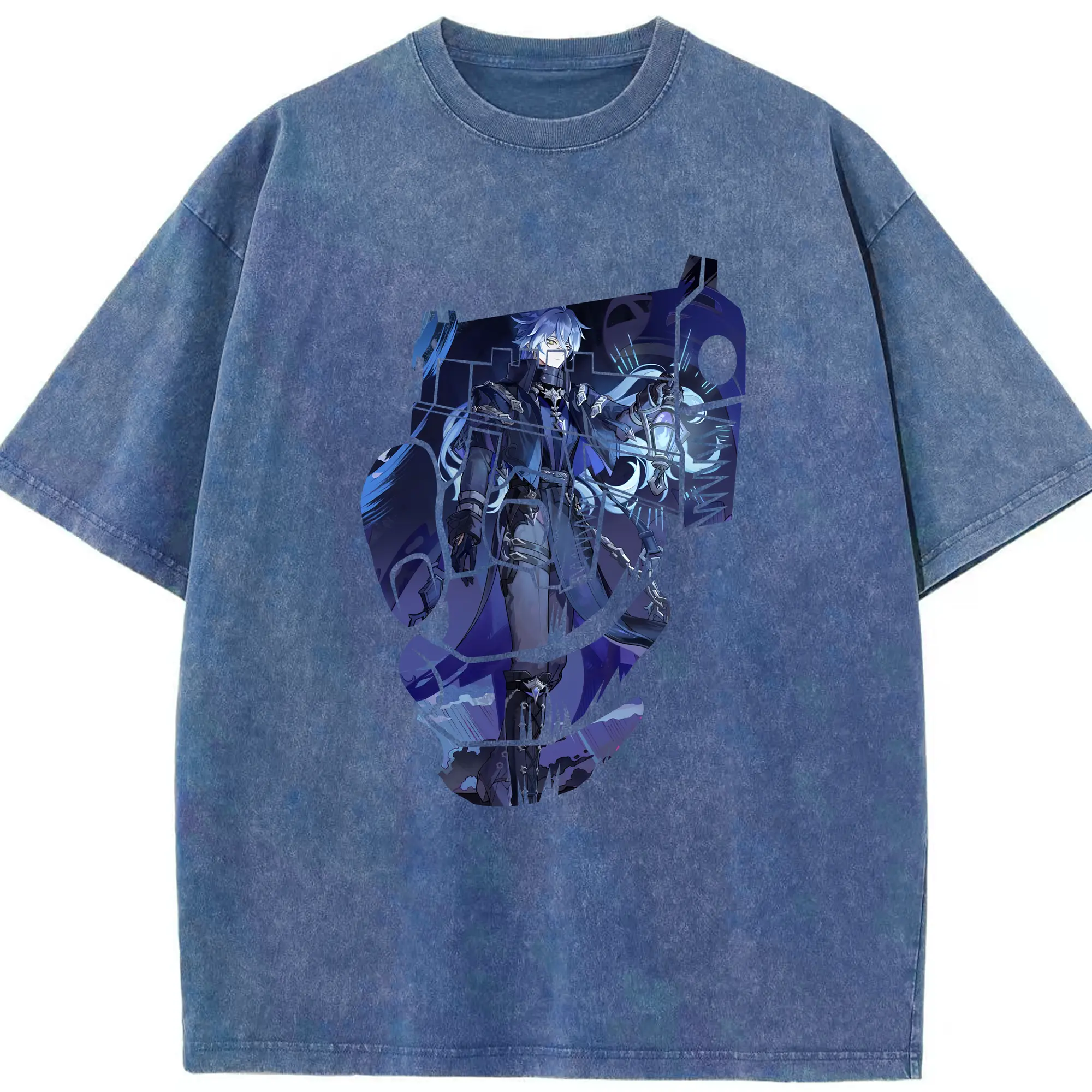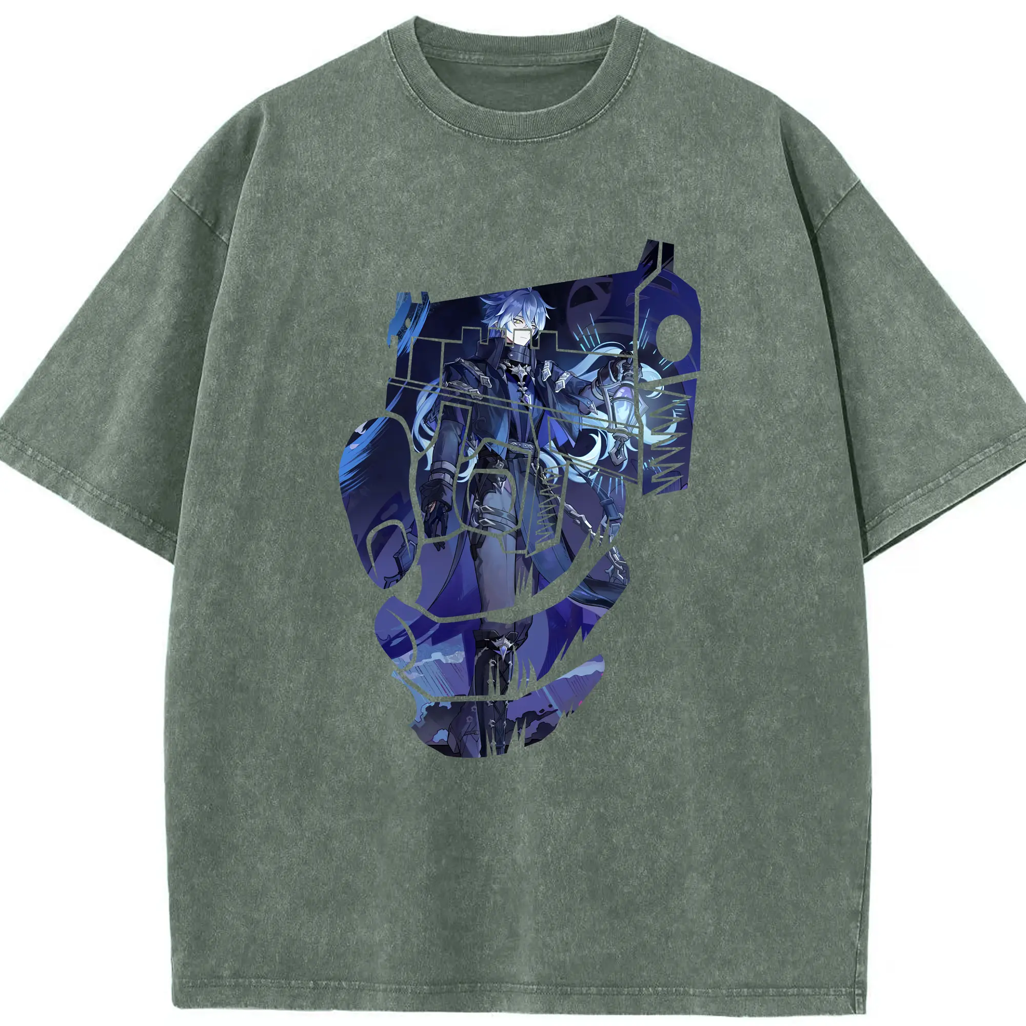 崩壊:スターレイル グッズ 白露 - 綿100% ヴィンテージ風 半袖Tシャツ ・ フロントプリント ・ 柔らか肌触り ・ 通気性 快適 ・ スポーツ カジュアル 外出用