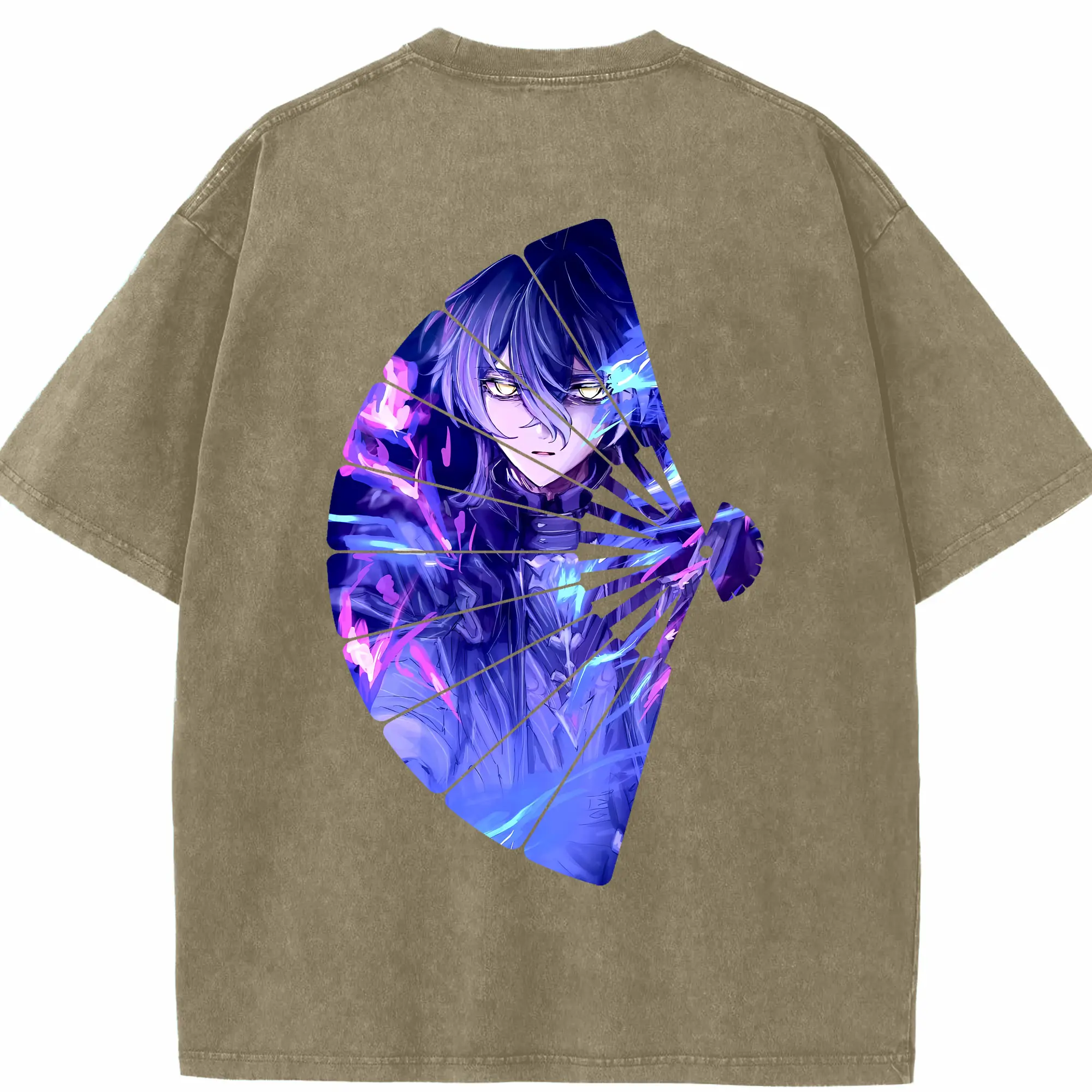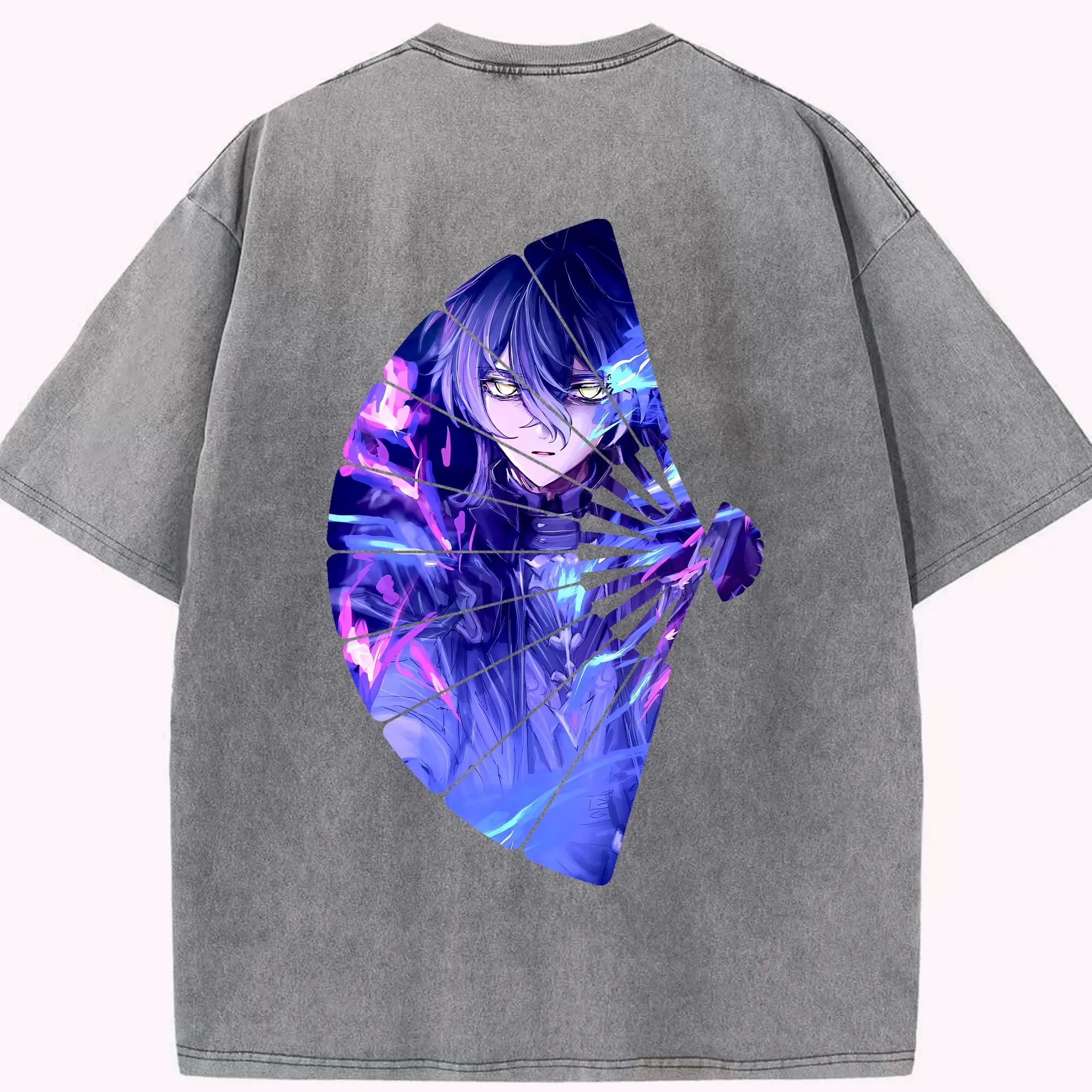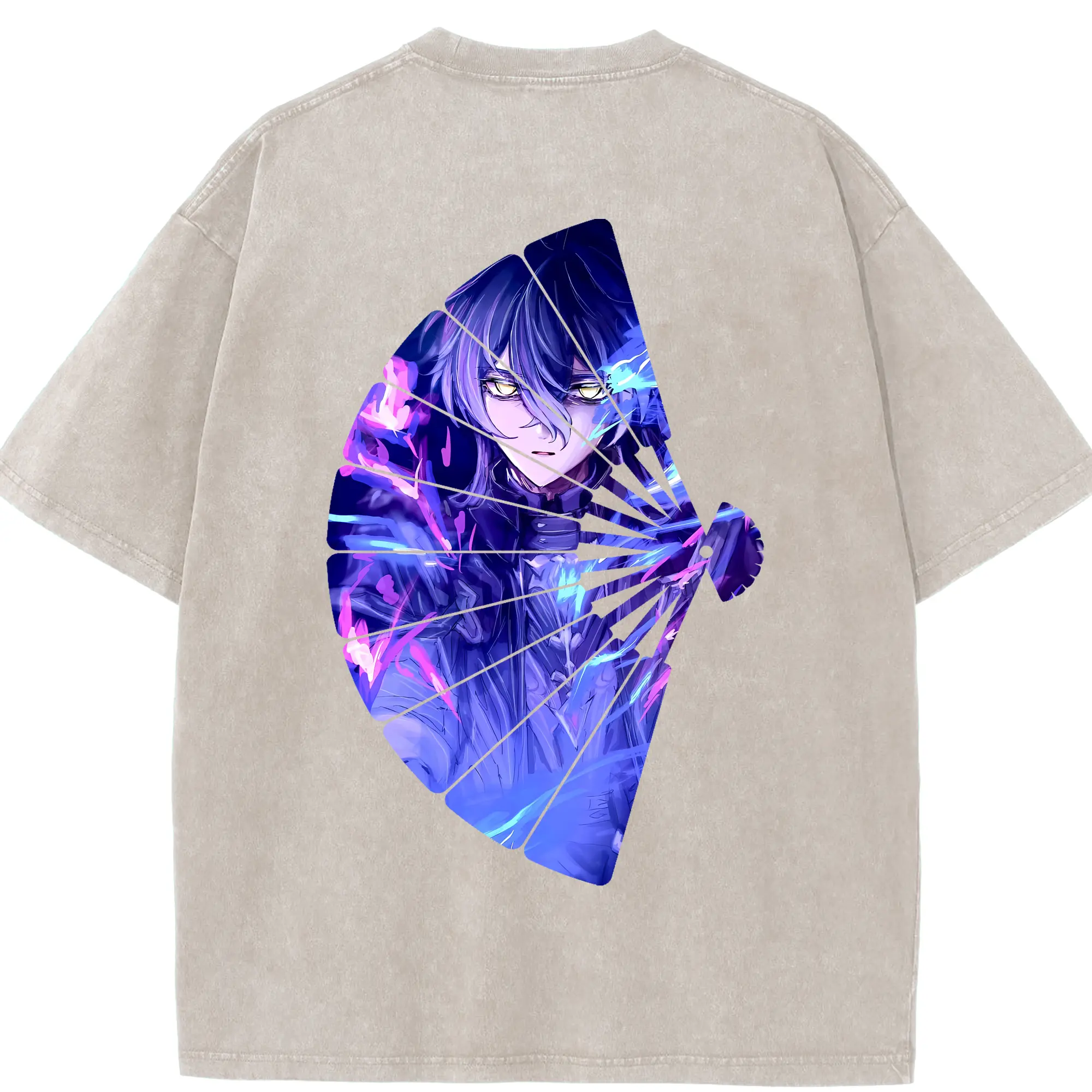 崩壊:スターレイル グッズ 銀狼 - 綿100% ヴィンテージ風 半袖Tシャツ ・ 背面プリント ・ 柔らか肌触り ・ 通気性 快適 ・ スポーツ カジュアル 外出用