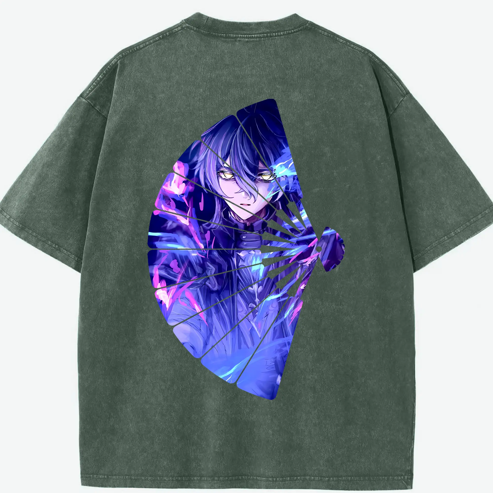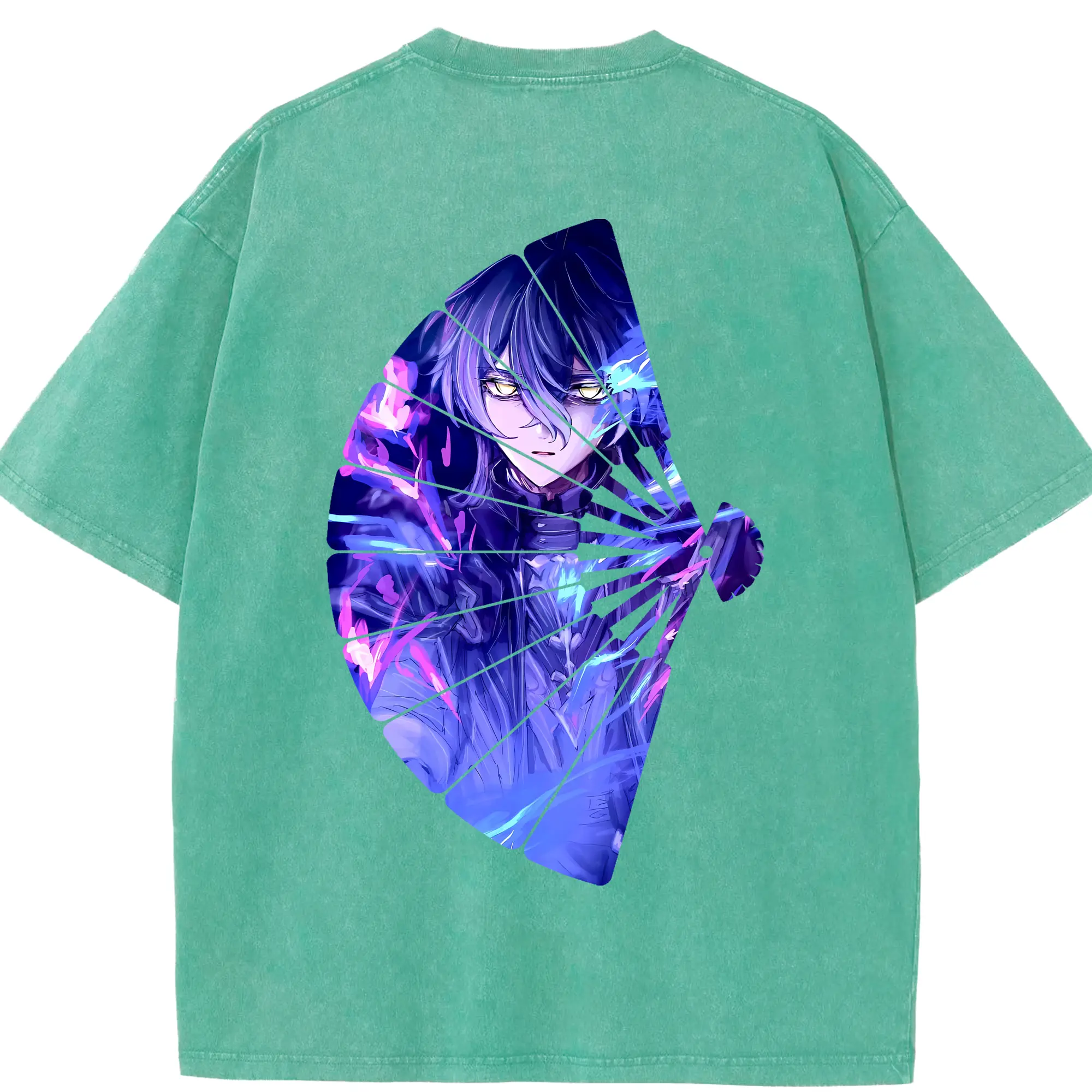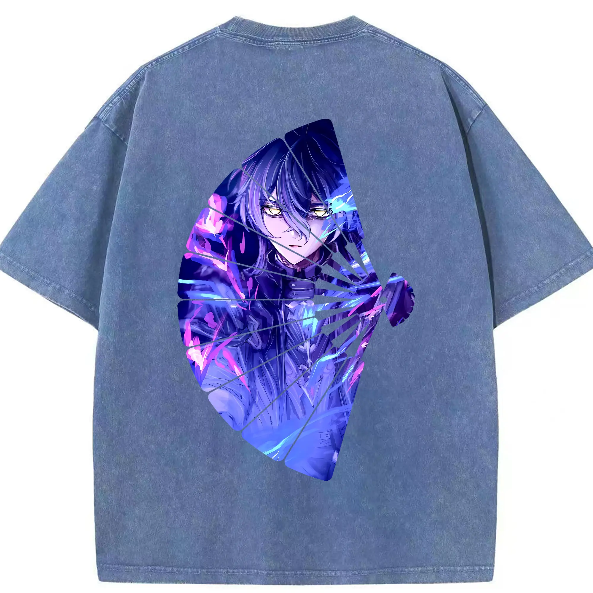 崩壊:スターレイル グッズ 銀狼 - 綿100% ヴィンテージ風 半袖Tシャツ ・ 背面プリント ・ 柔らか肌触り ・ 通気性 快適 ・ スポーツ カジュアル 外出用