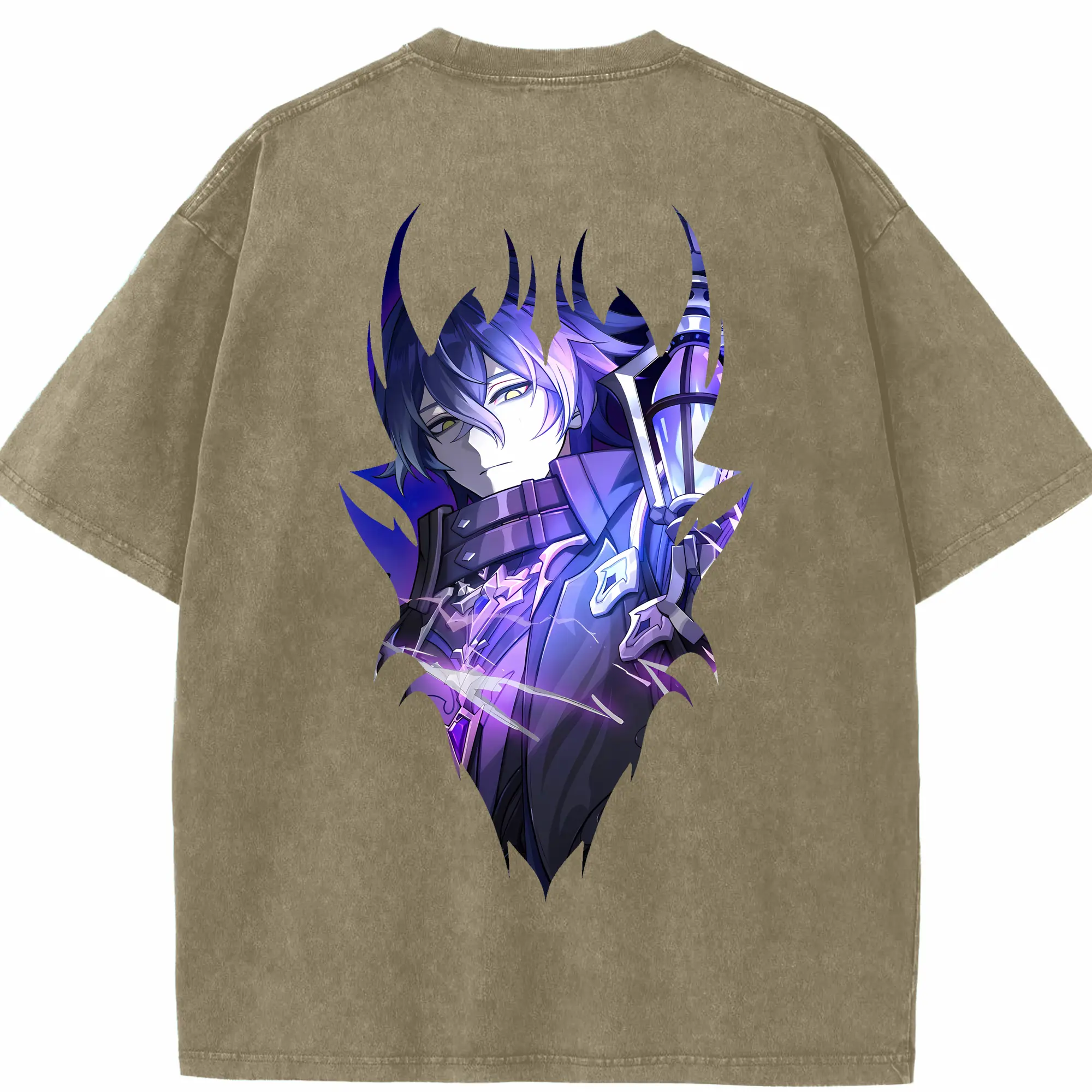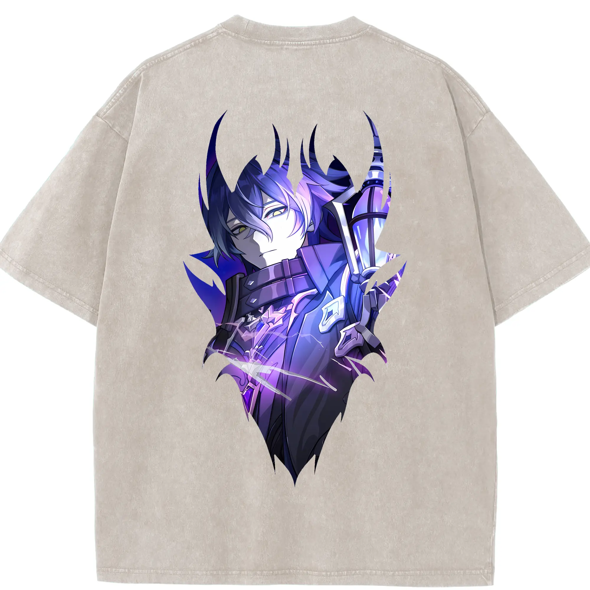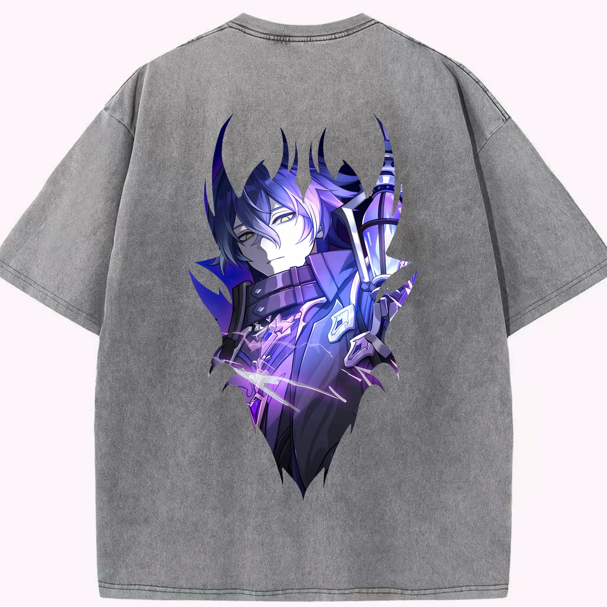 ハンター×ハンター グッズ イルミ=ゾルディック - 綿100% ヴィンテージ風 半袖Tシャツ ・ 背面プリント ・ 柔らか肌触り ・ 通気性 快適 ・ スポーツ カジュアル 外出用