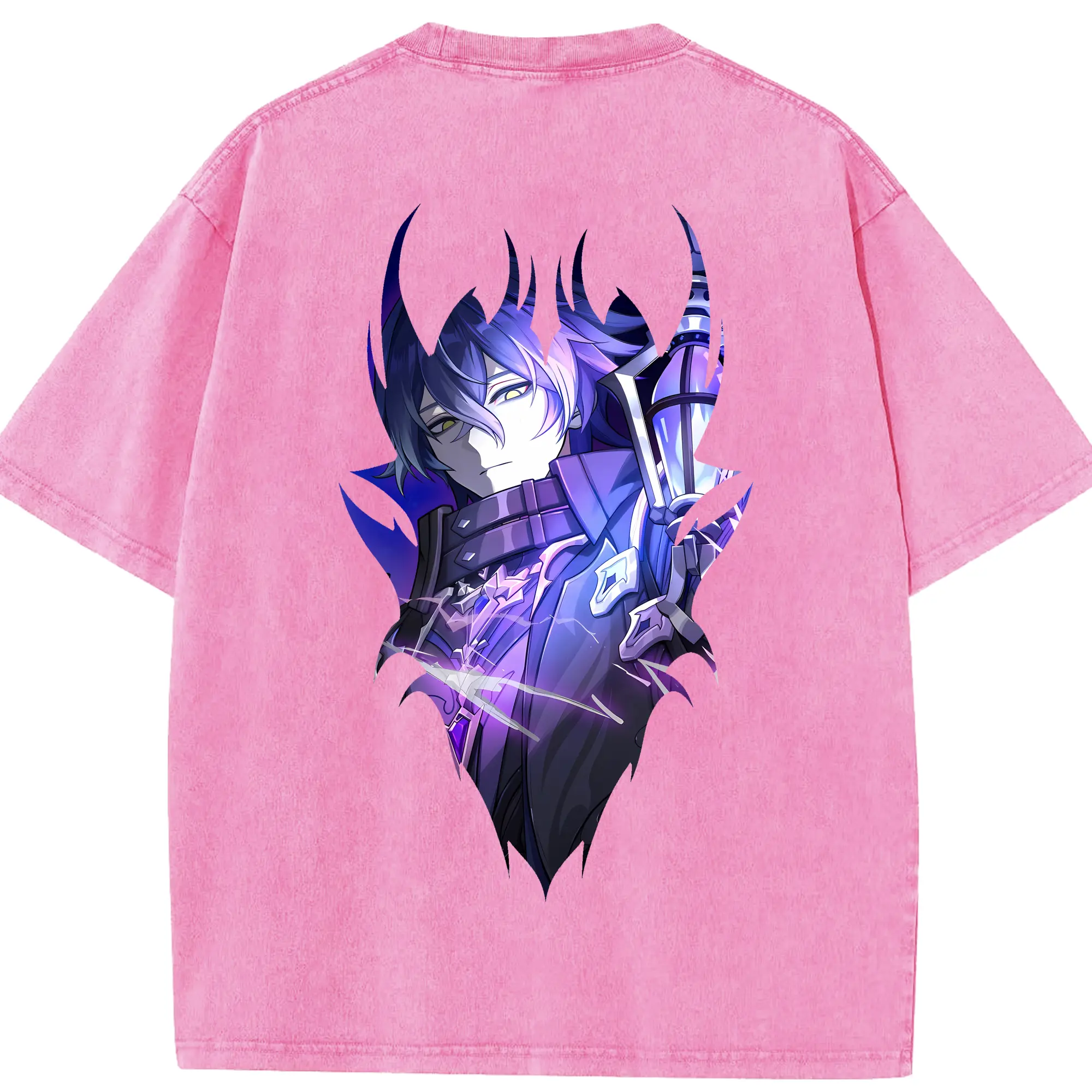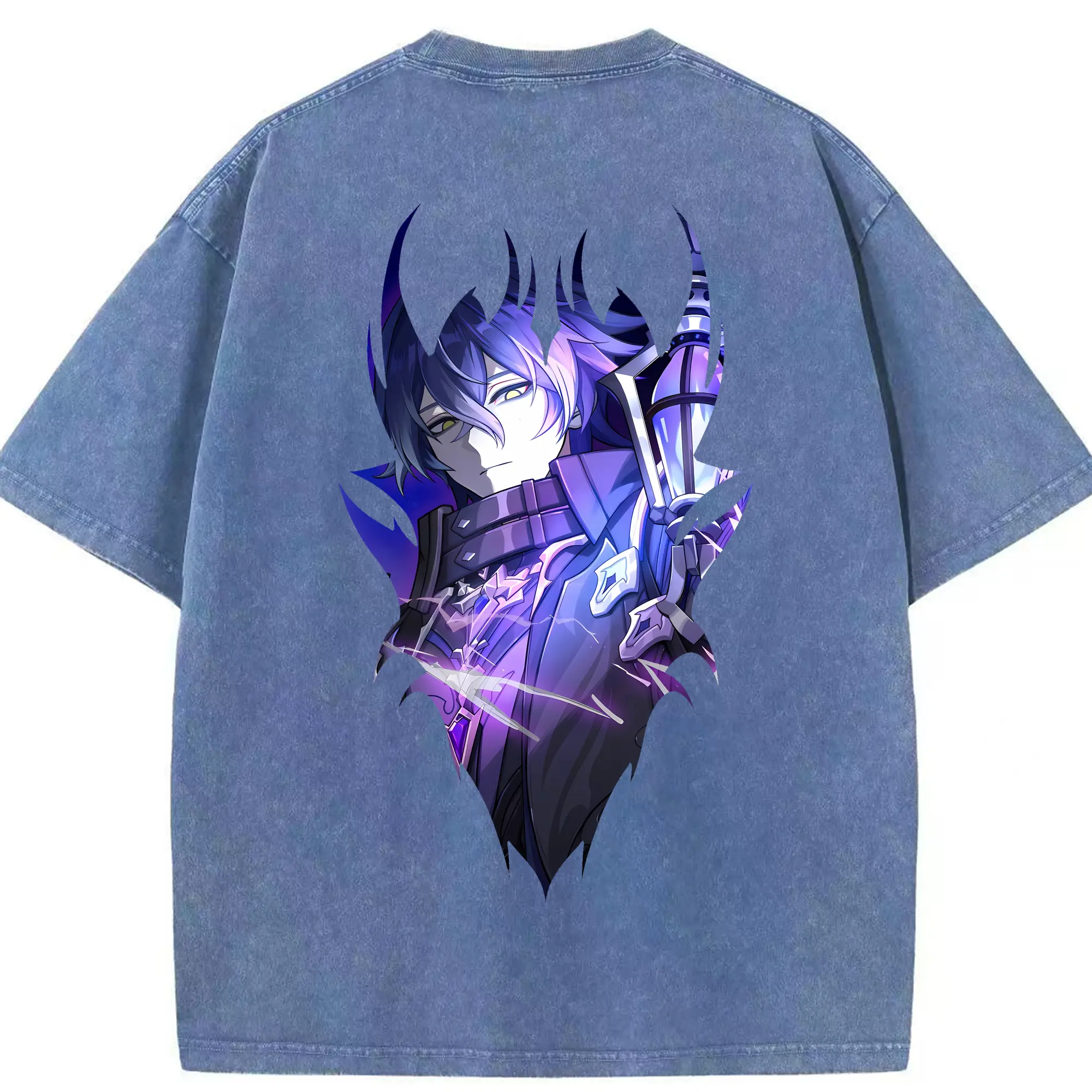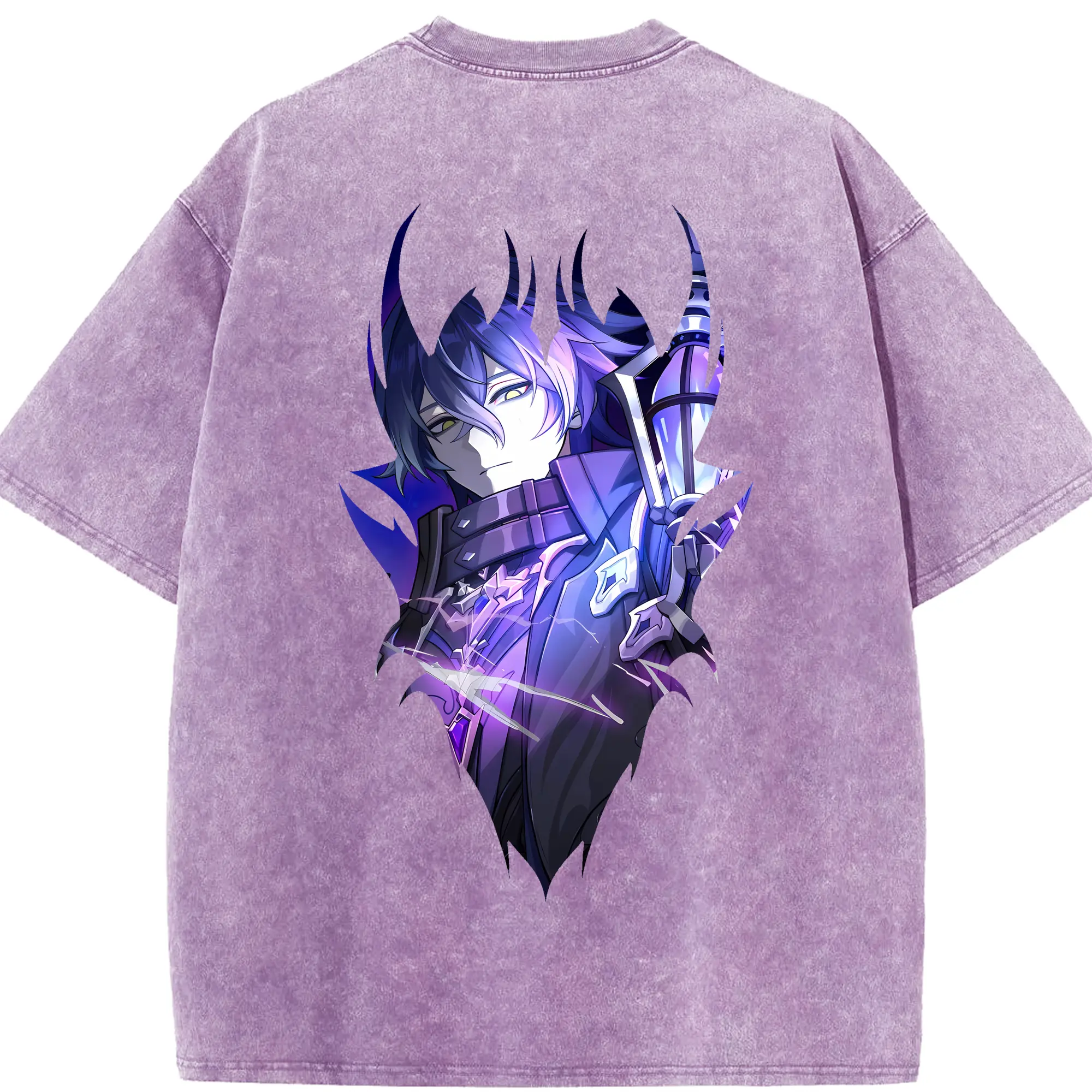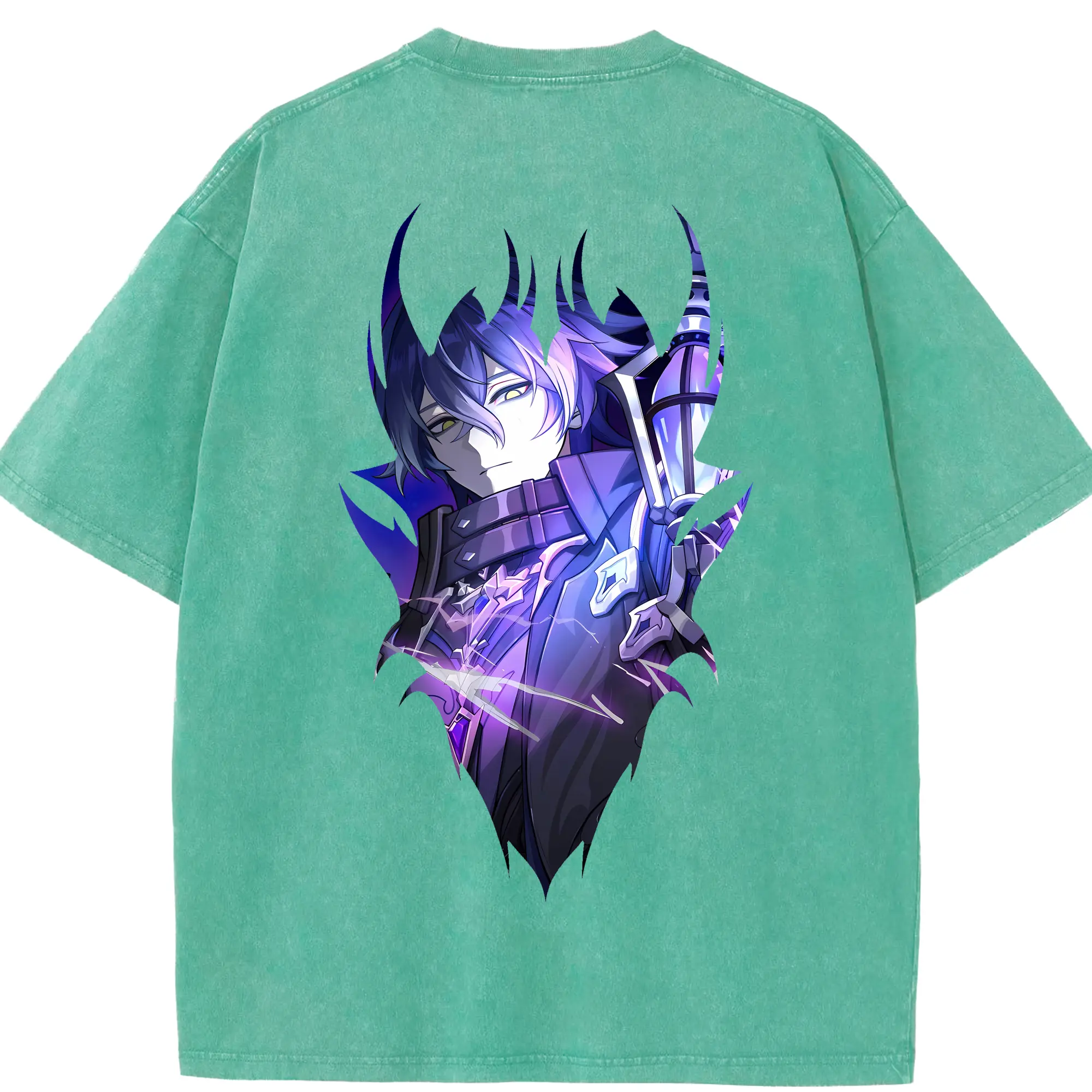 ハンター×ハンター グッズ イルミ=ゾルディック - 綿100% ヴィンテージ風 半袖Tシャツ ・ 背面プリント ・ 柔らか肌触り ・ 通気性 快適 ・ スポーツ カジュアル 外出用