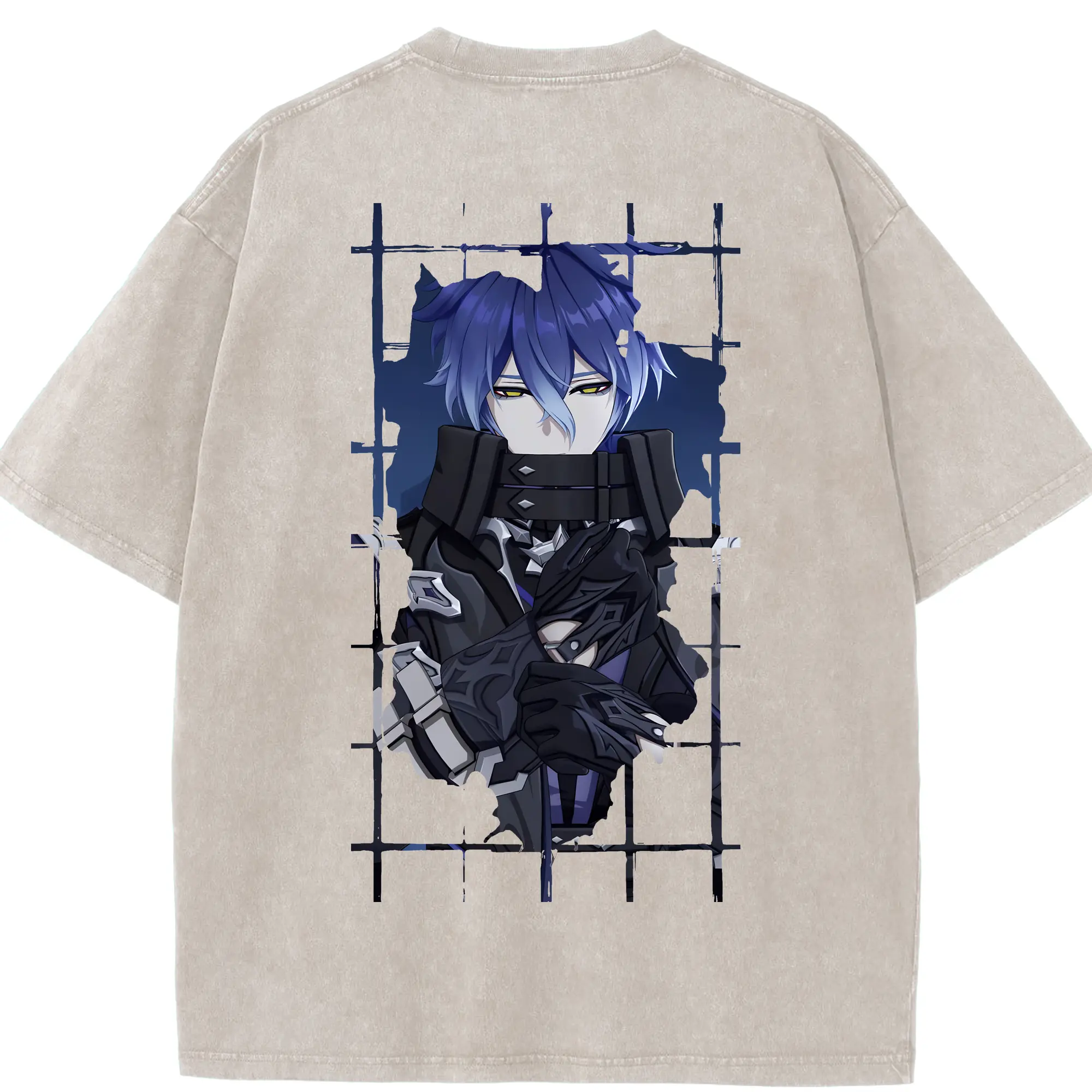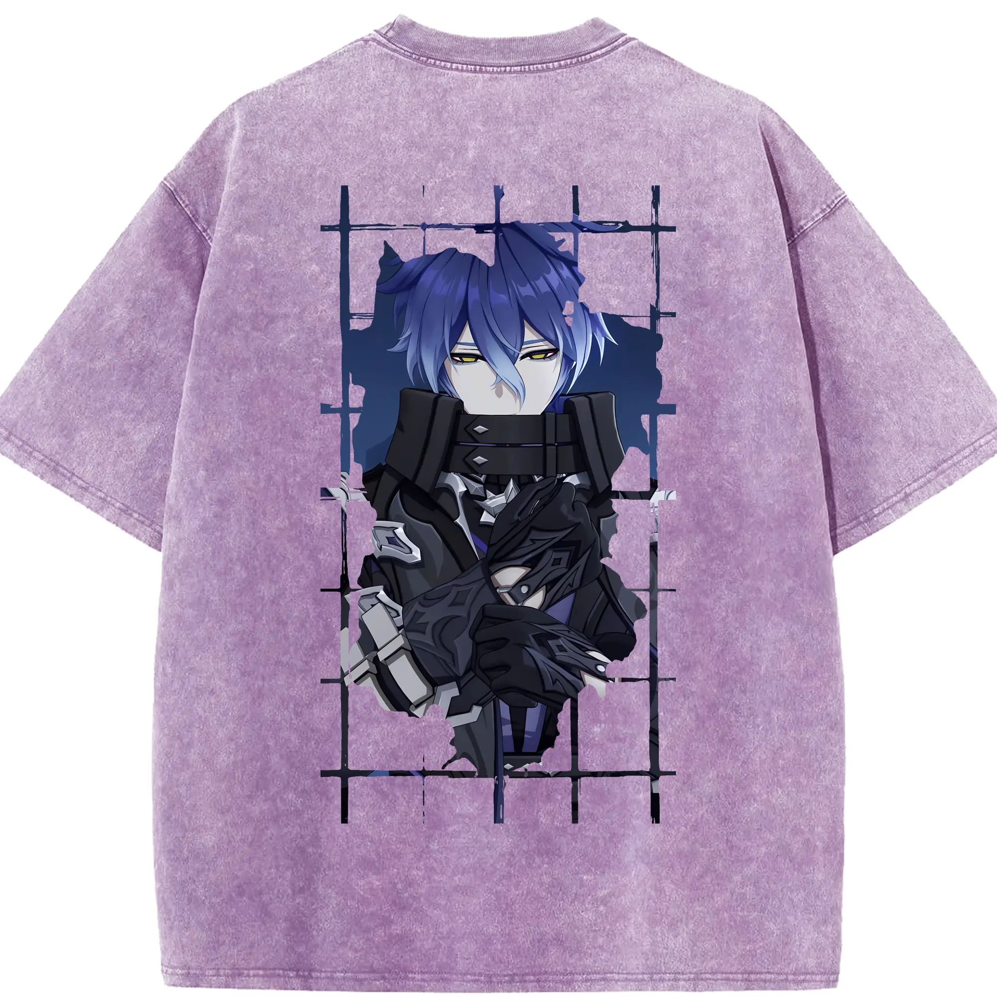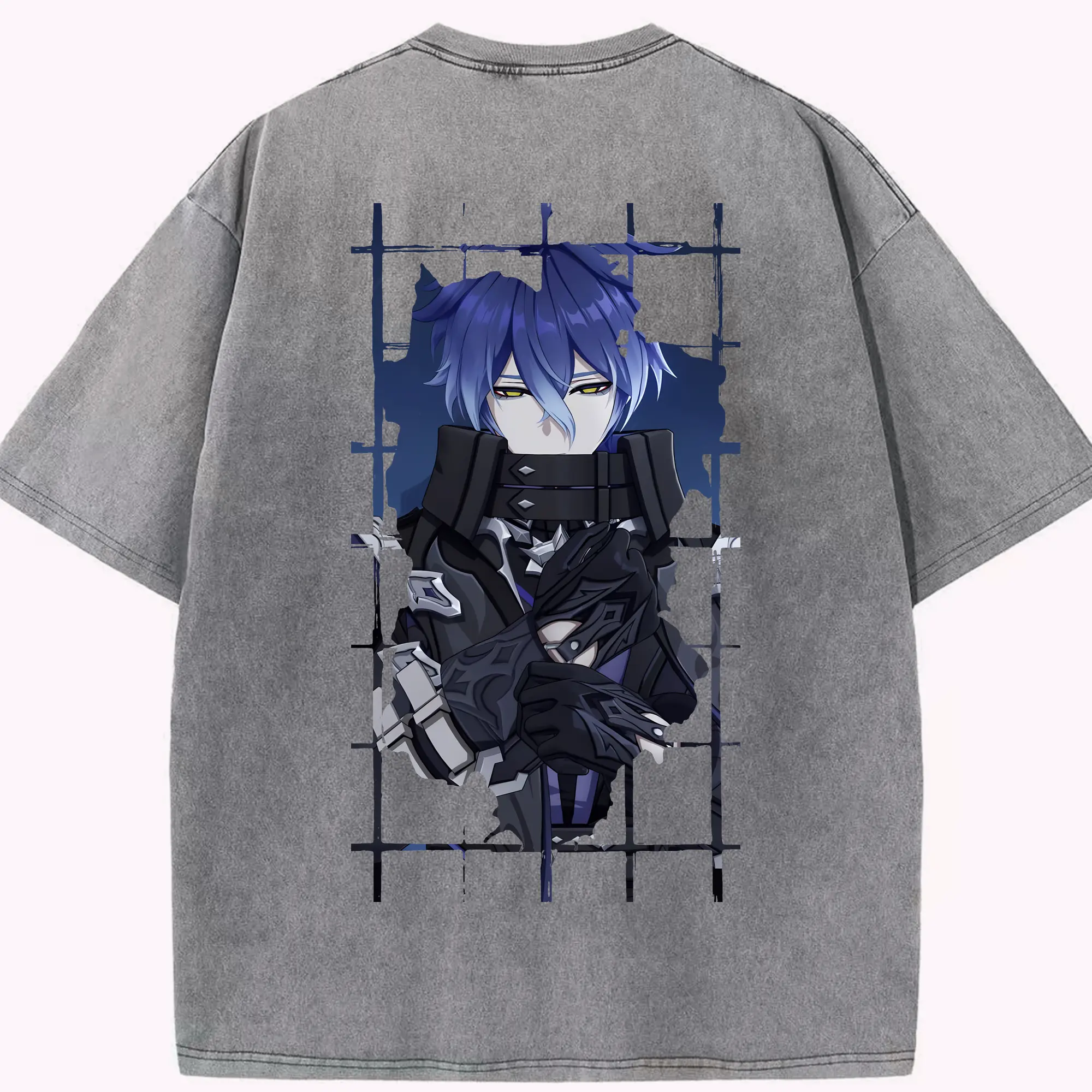 鳴潮 グッズ ロココ - 綿100% ヴィンテージ風 半袖Tシャツ ・ 背面プリント ・ 柔らか肌触り ・ 通気性 快適 ・ スポーツ カジュアル 外出用