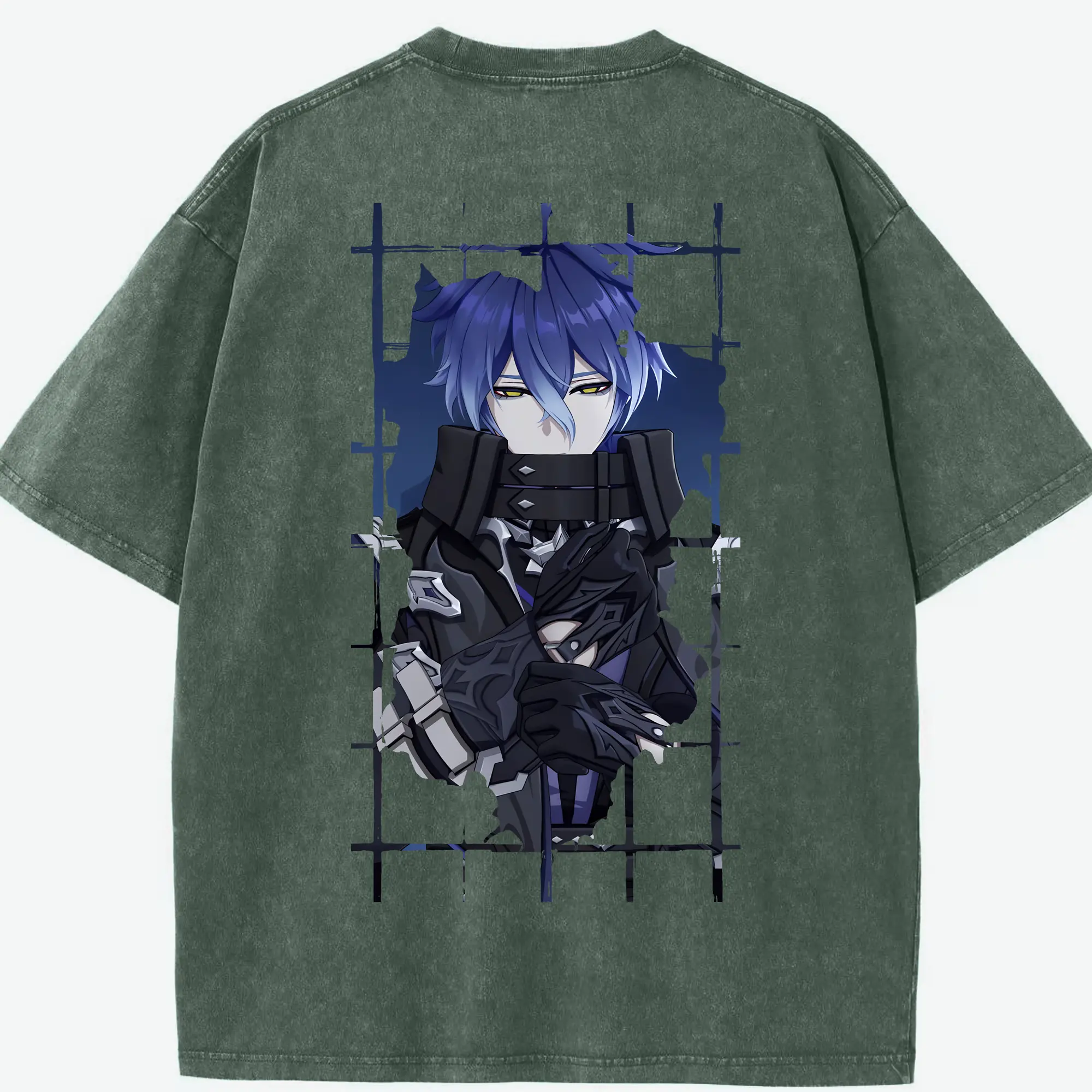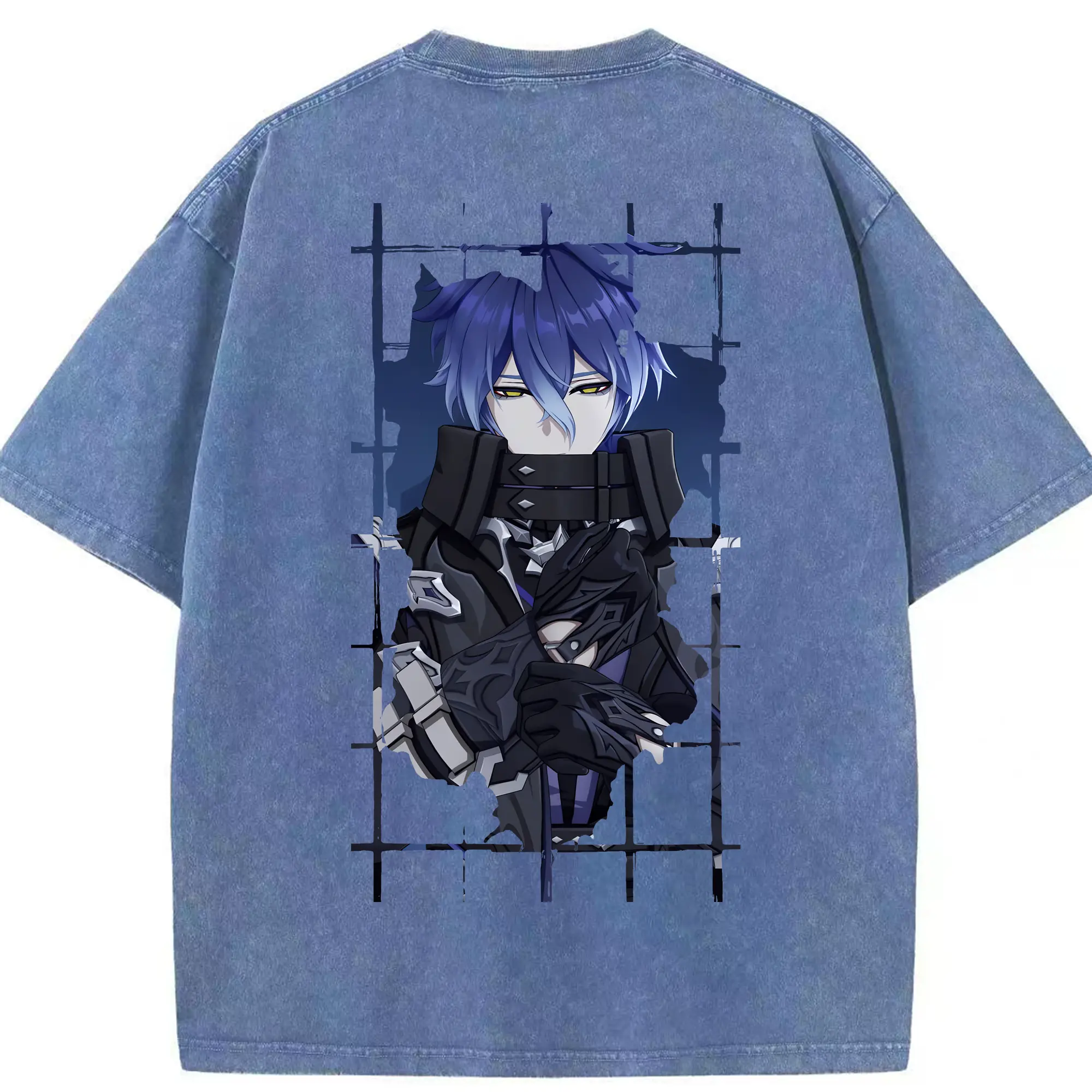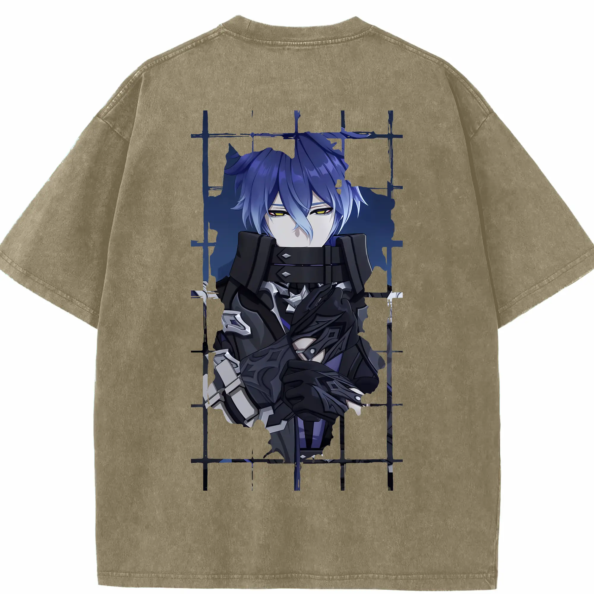 鳴潮 グッズ ロココ - 綿100% ヴィンテージ風 半袖Tシャツ ・ 背面プリント ・ 柔らか肌触り ・ 通気性 快適 ・ スポーツ カジュアル 外出用