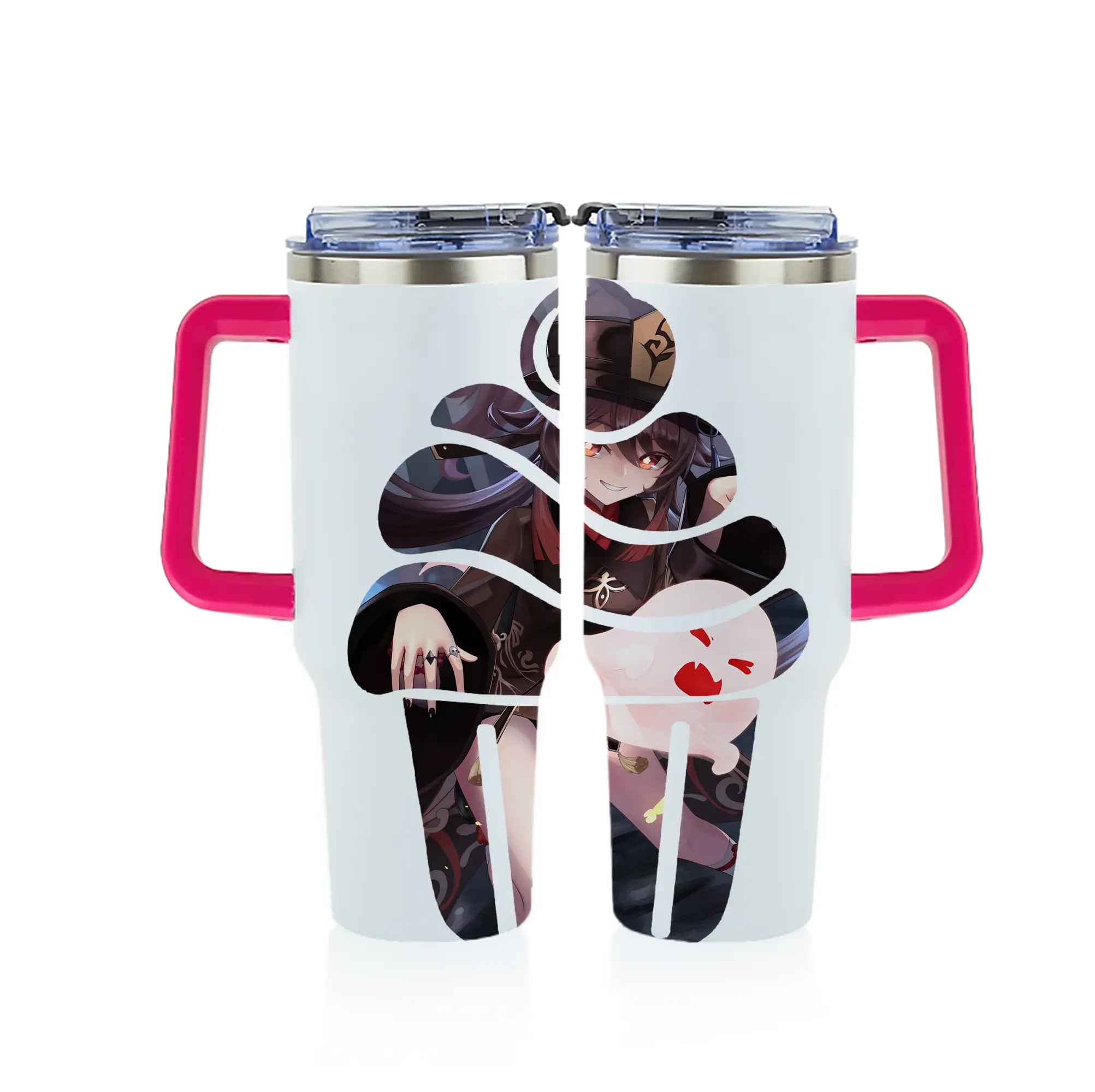 原 神 グッズ フータオ - 1200mL フルプリント車用タンブラー ・ 304ステンレス 内側 ・ 201ステンレス 外側 ・ 保温 保冷 ・ 通勤 ドライブ アウトドア用
