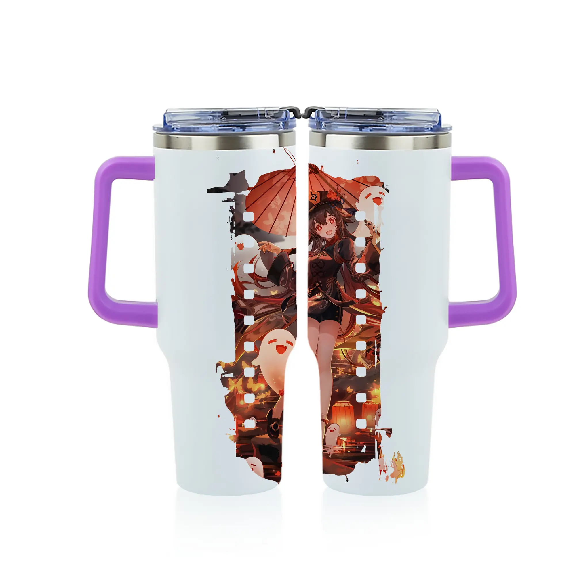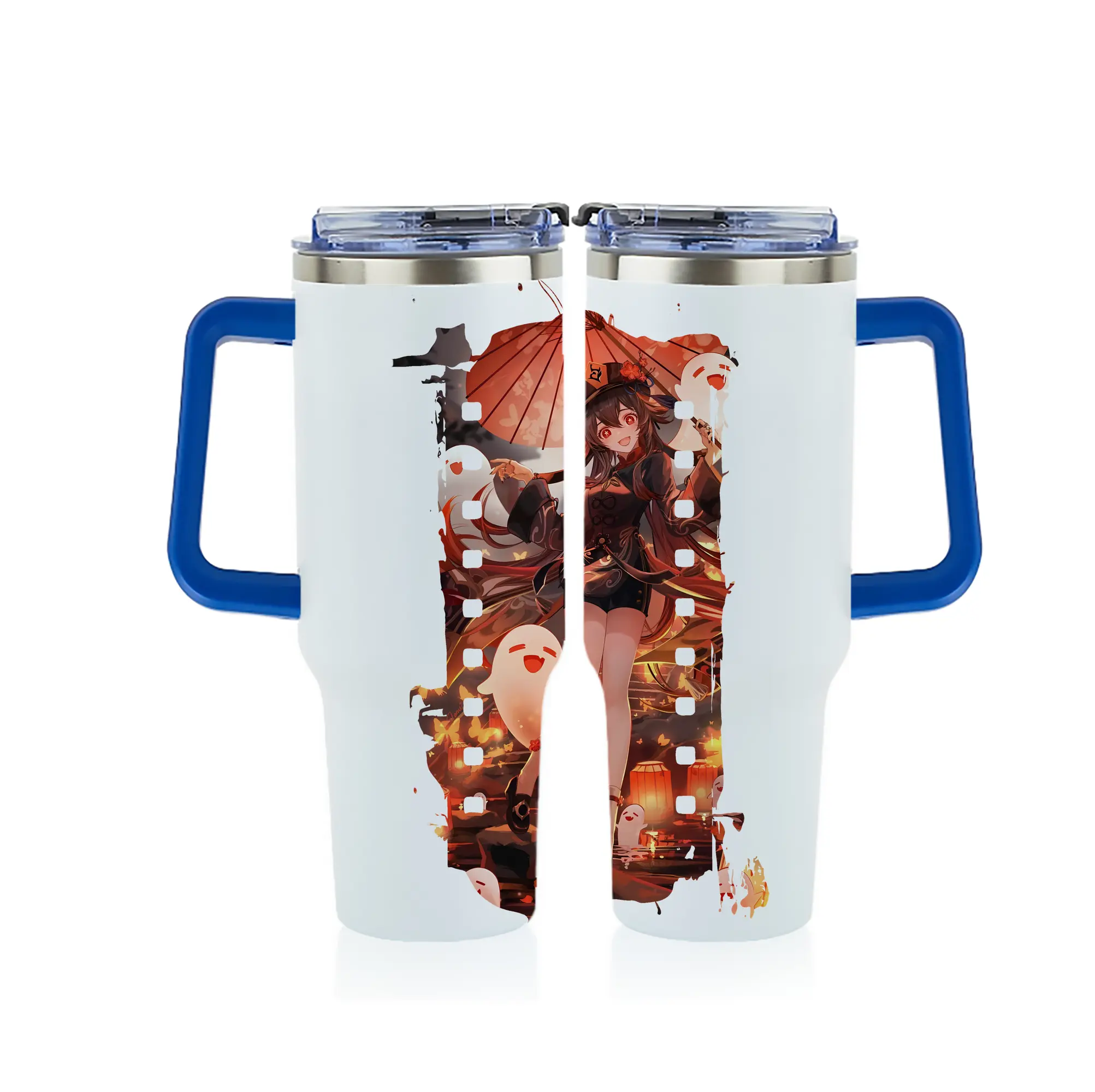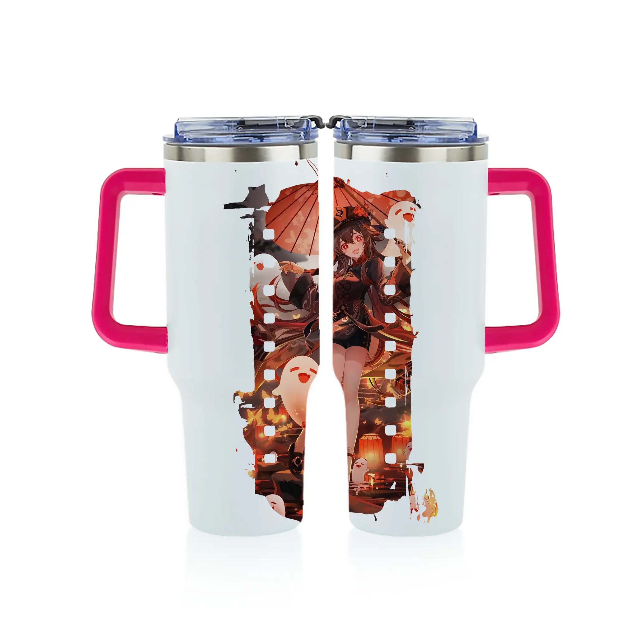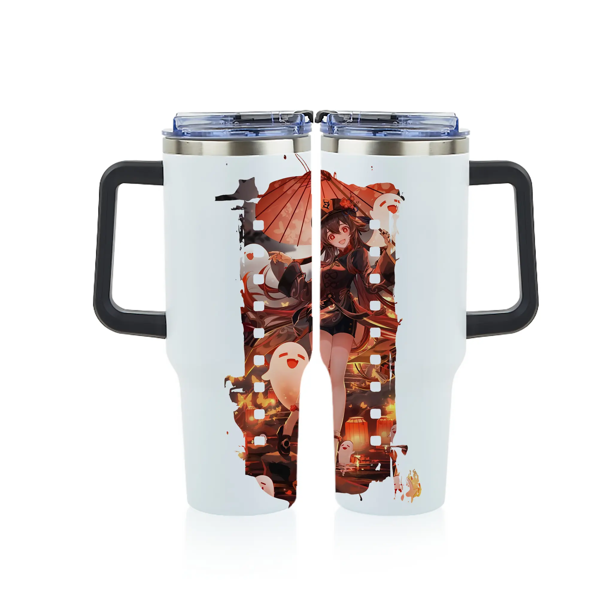 原 神 グッズ フータオ - 1200mL フルプリント車用タンブラー ・ 304ステンレス 内側 ・ 201ステンレス 外側 ・ 保温 保冷 ・ 通勤 ドライブ アウトドア用