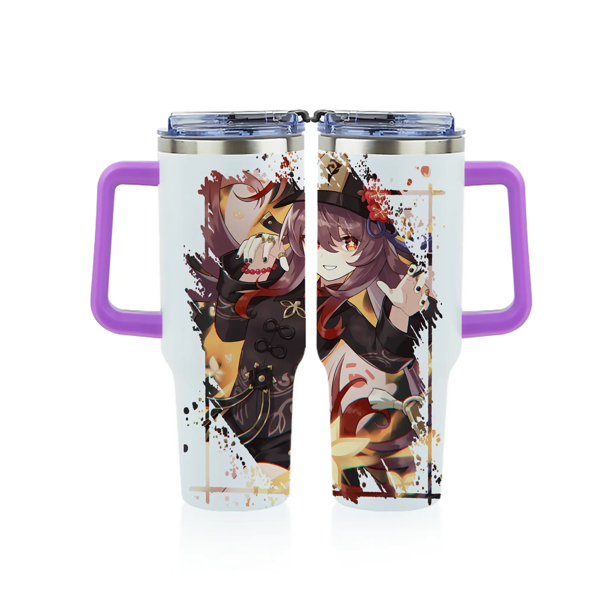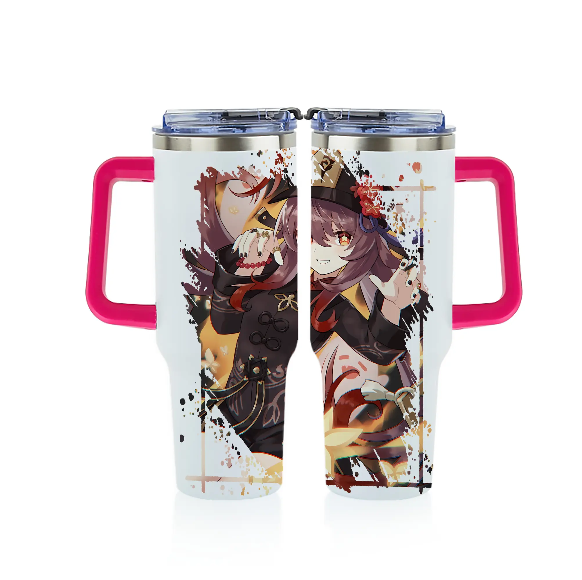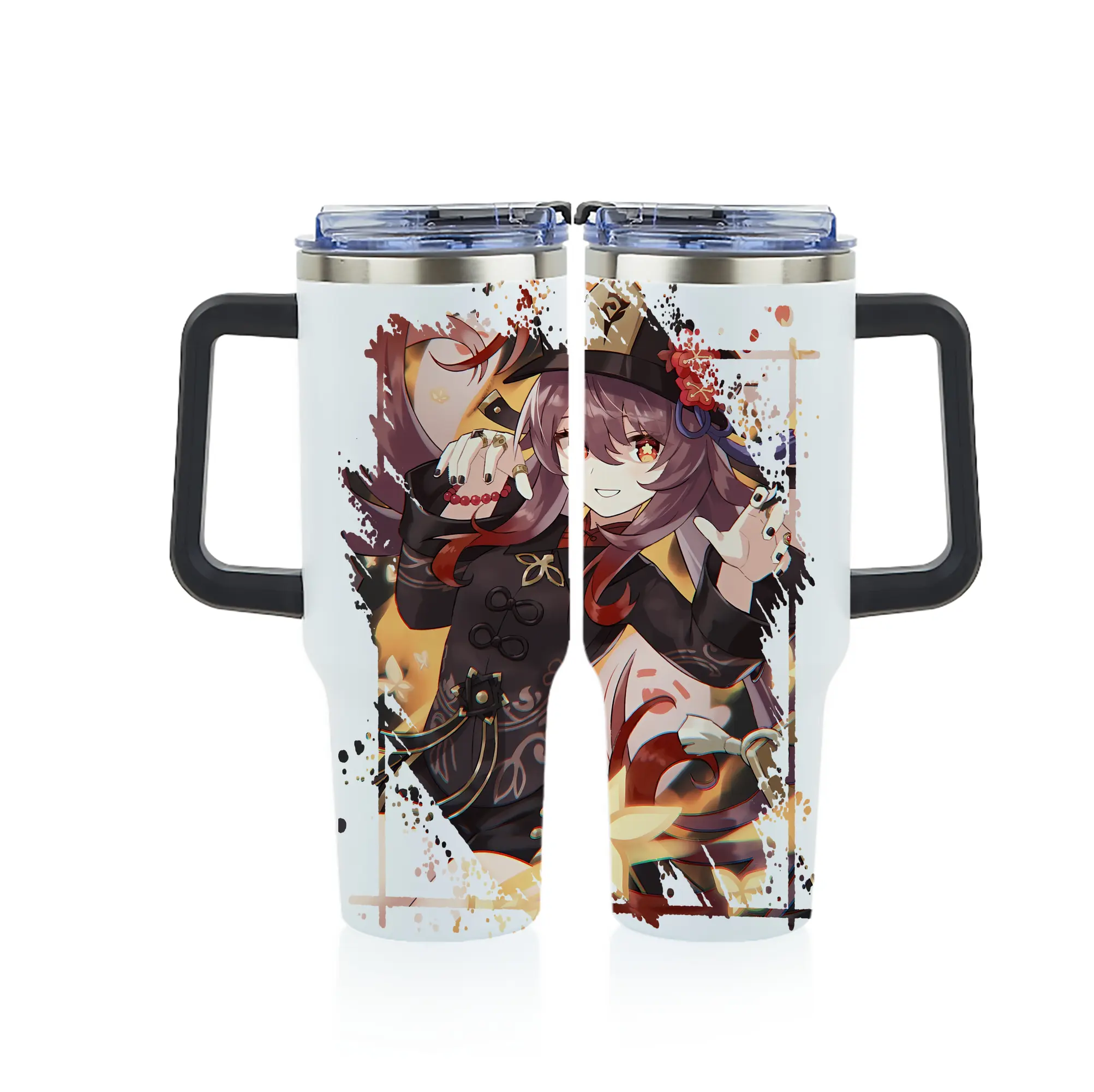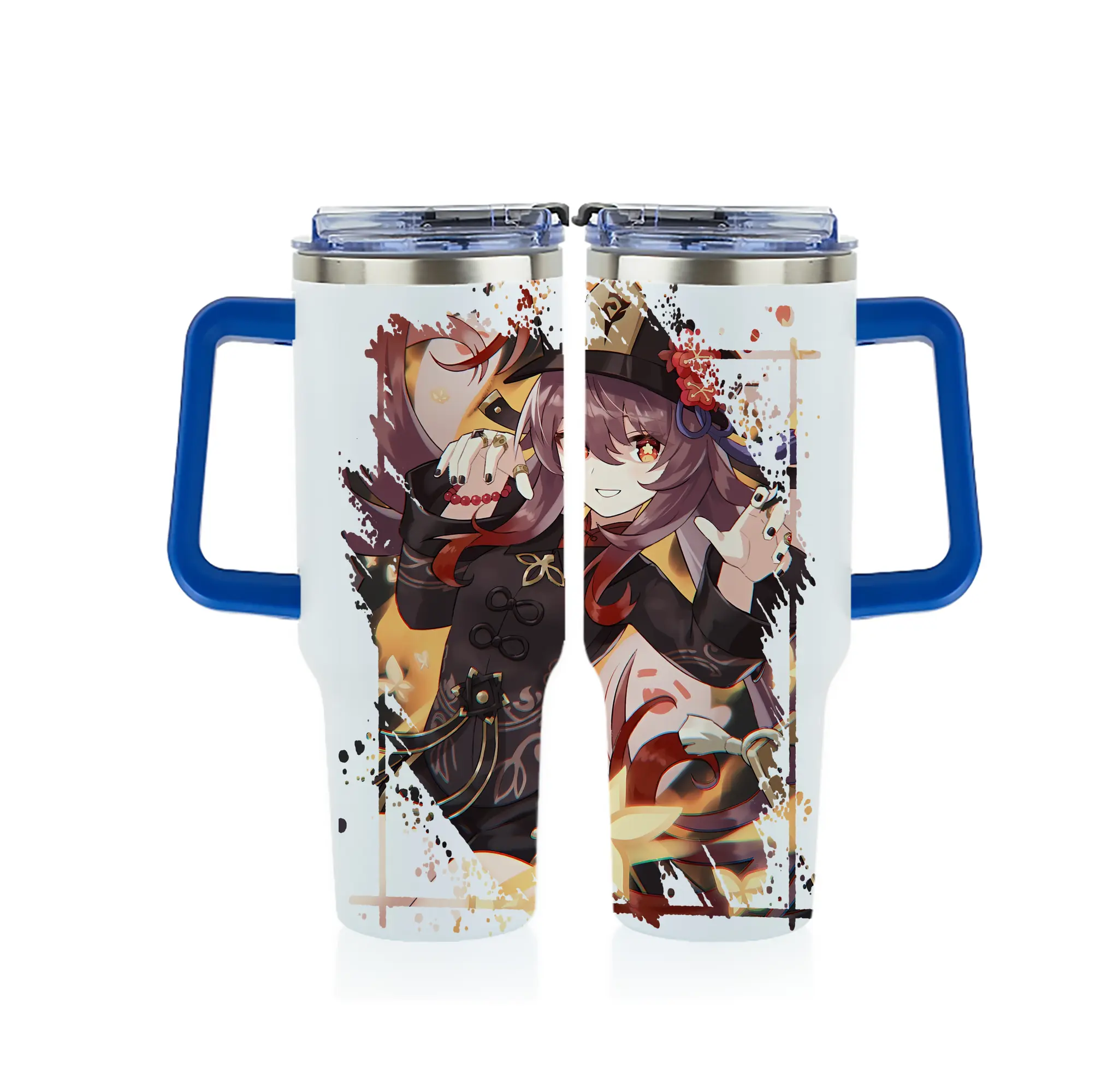 原 神 グッズ フータオ - 1200mL フルプリント車用タンブラー ・ 304ステンレス 内側 ・ 201ステンレス 外側 ・ 保温 保冷 ・ 通勤 ドライブ アウトドア用