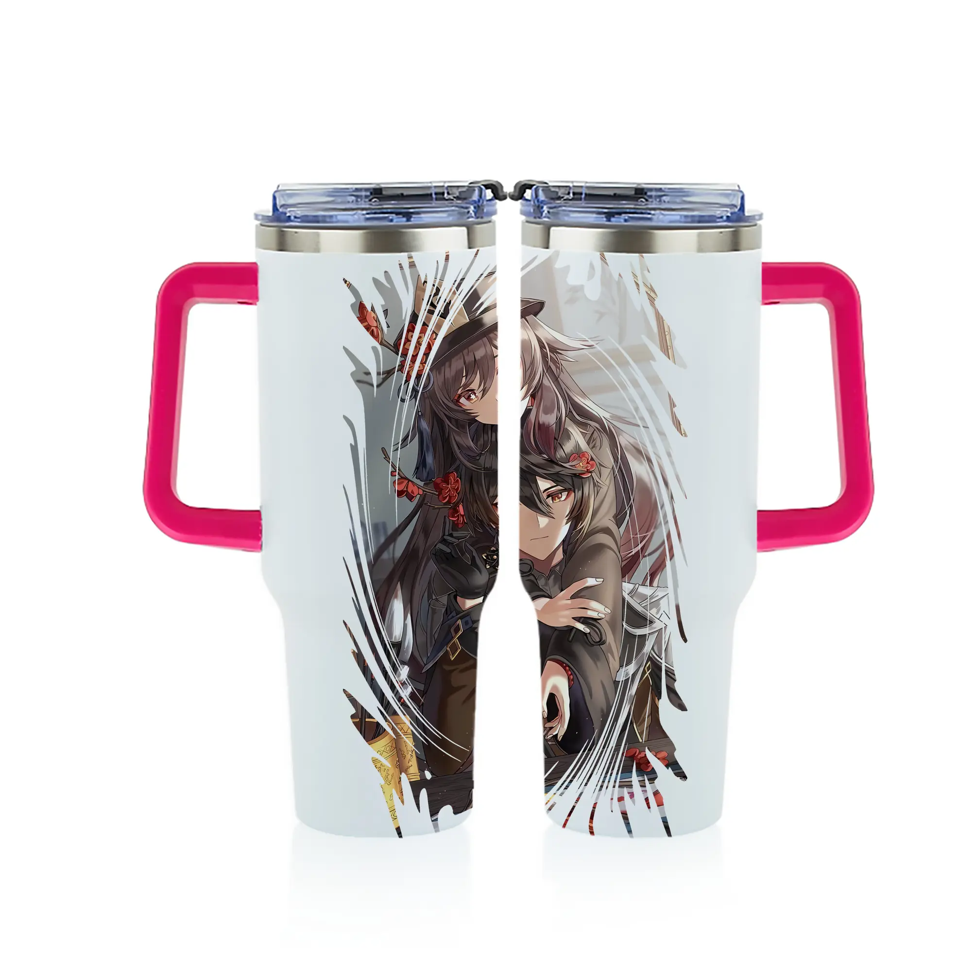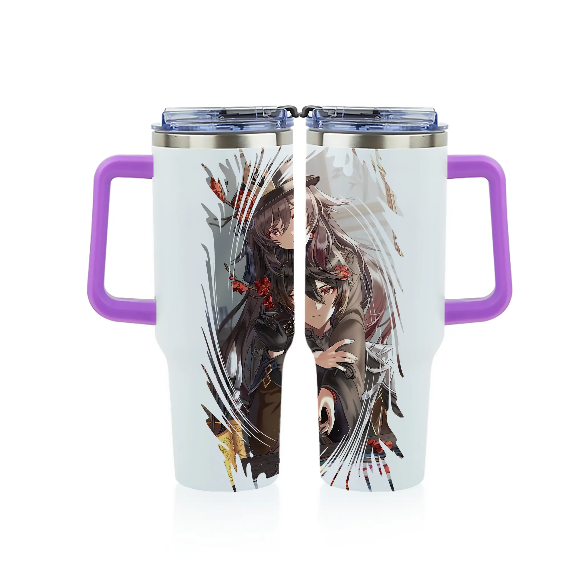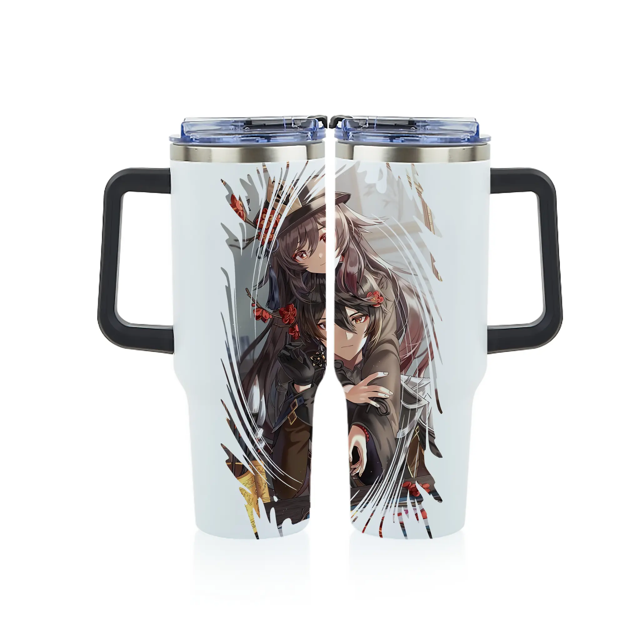 原 神 グッズ フータオ - 1200mL フルプリント車用タンブラー ・ 304ステンレス 内側 ・ 201ステンレス 外側 ・ 保温 保冷 ・ 通勤 ドライブ アウトドア用