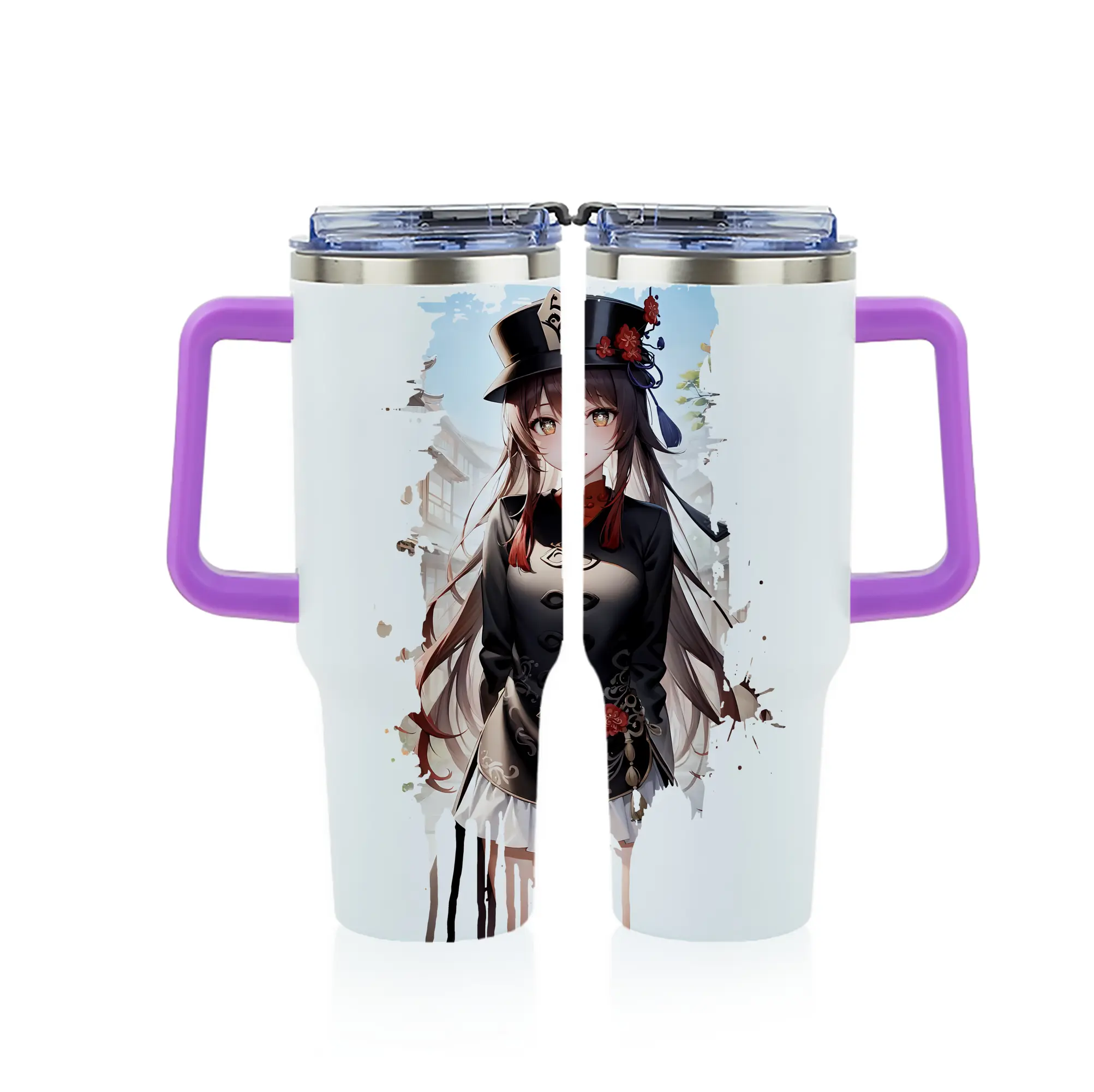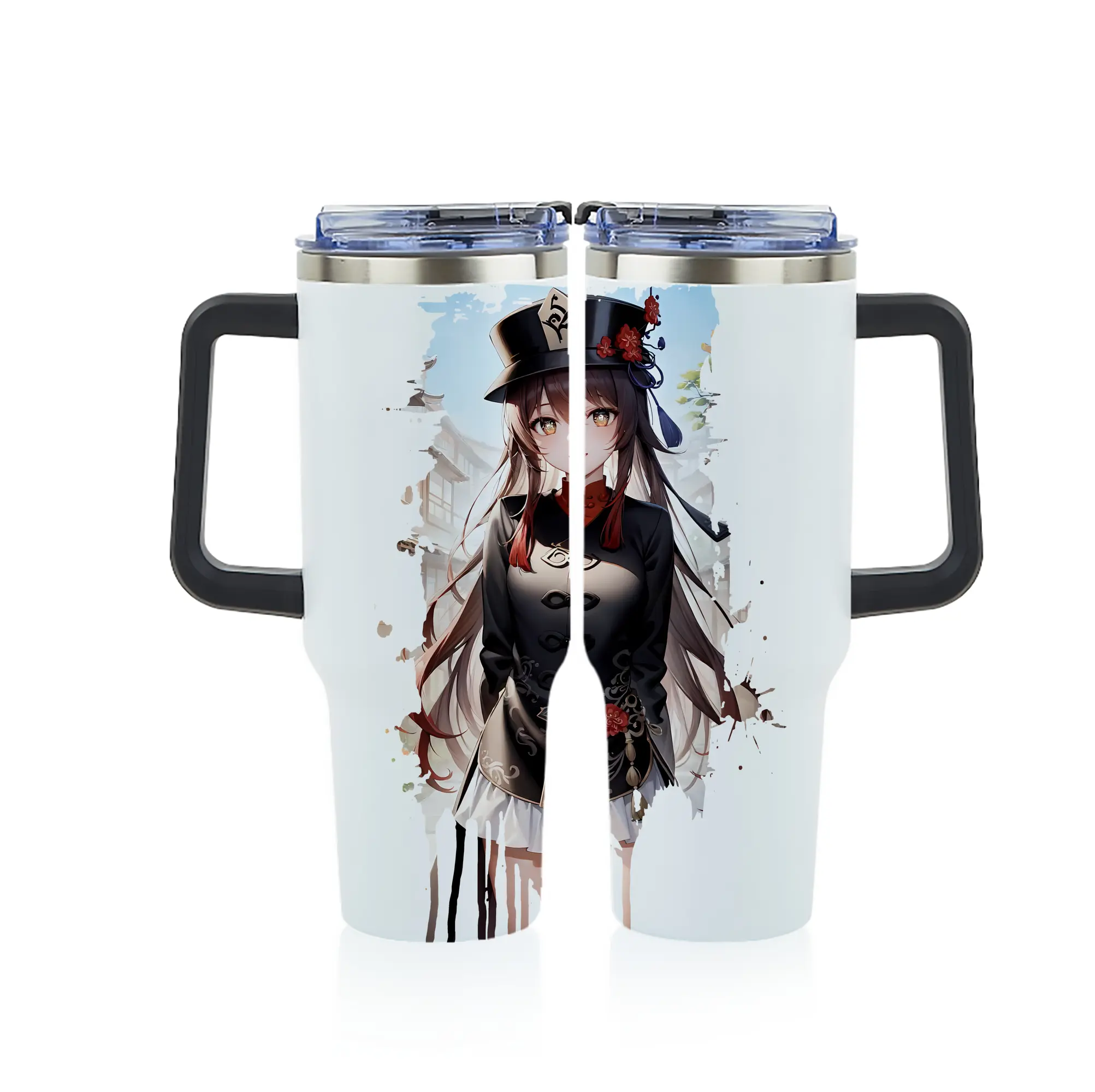 原 神 グッズ フータオ - 1200mL フルプリント車用タンブラー ・ 304ステンレス 内側 ・ 201ステンレス 外側 ・ 保温 保冷 ・ 通勤 ドライブ アウトドア用