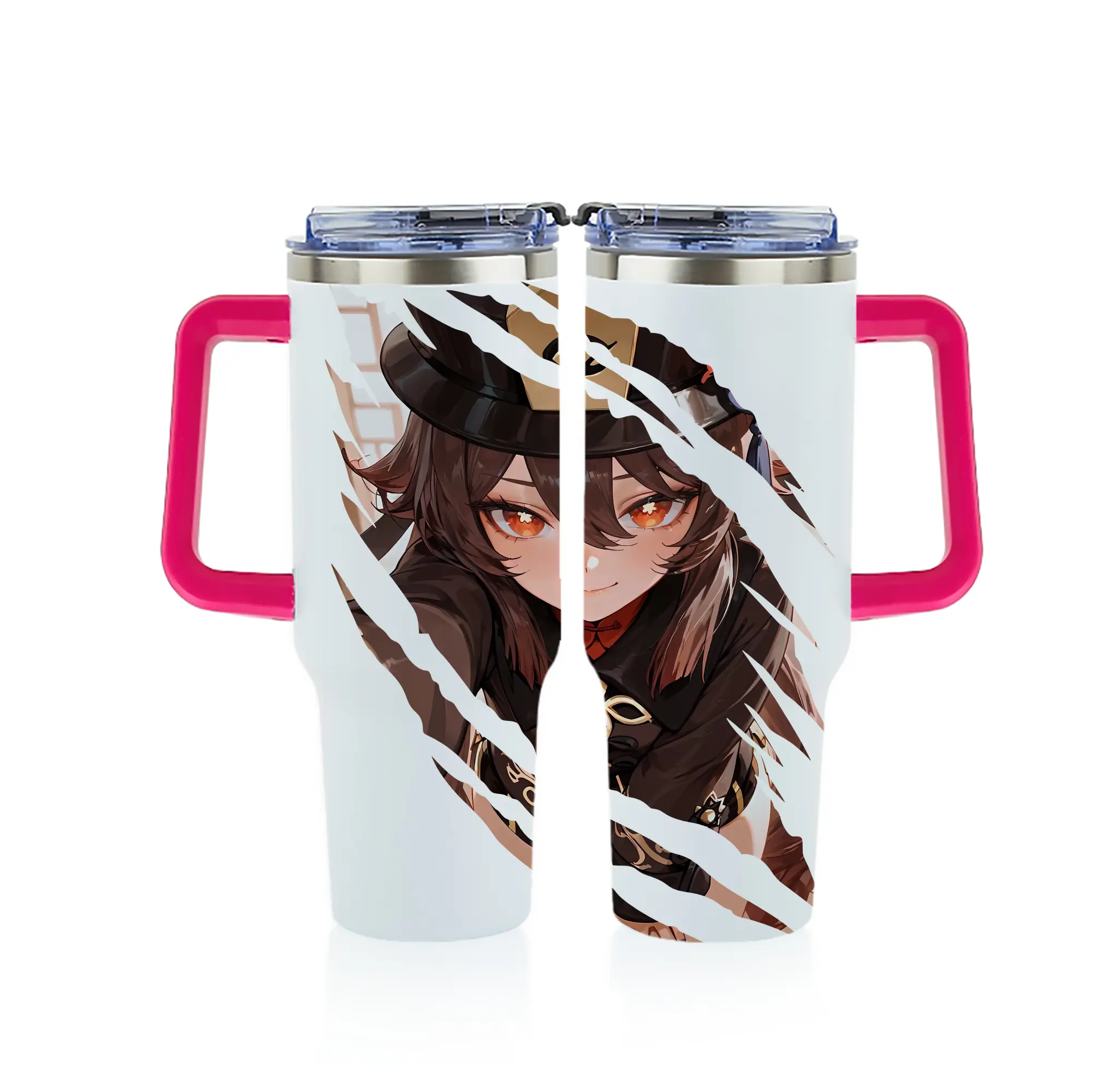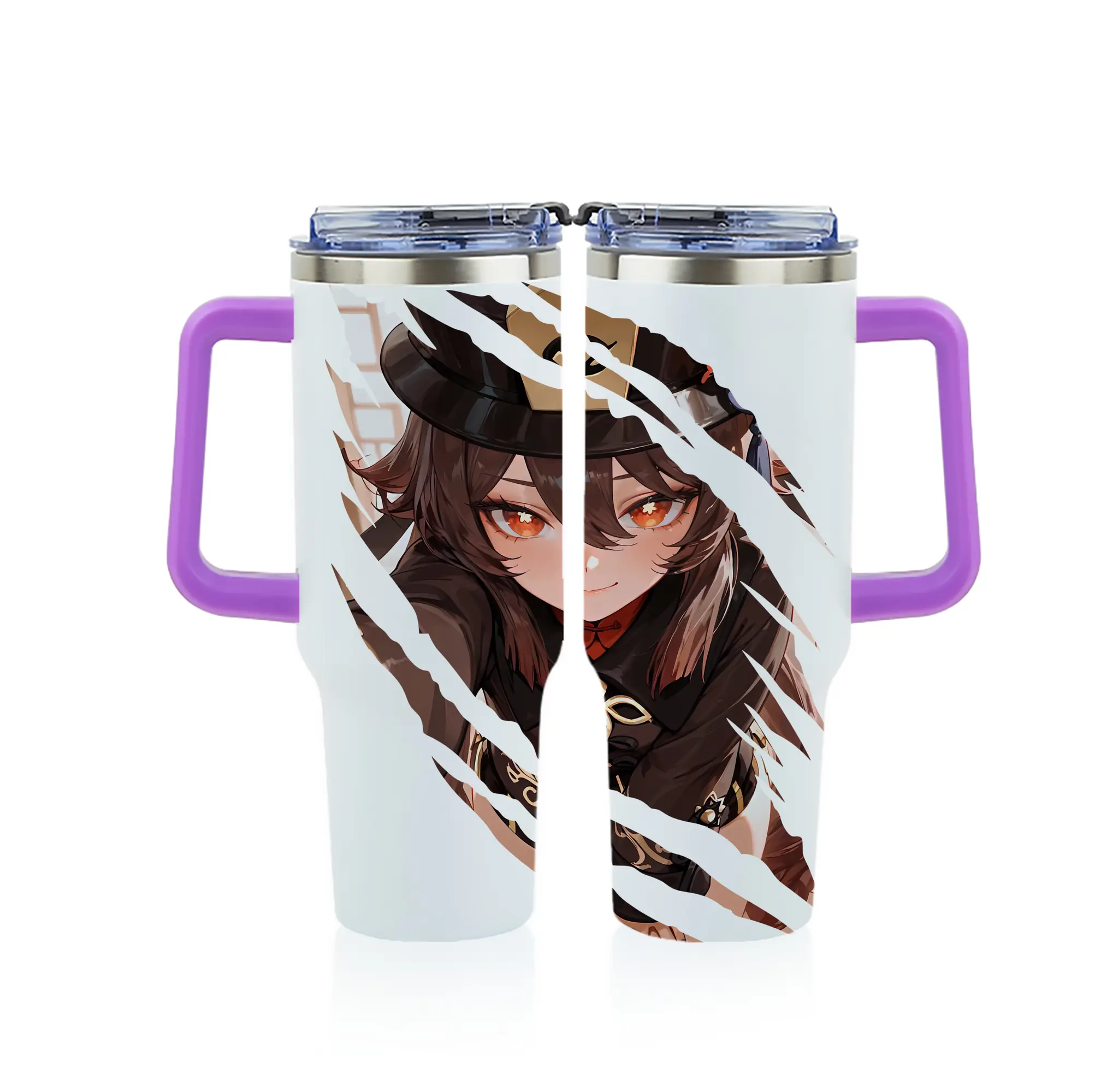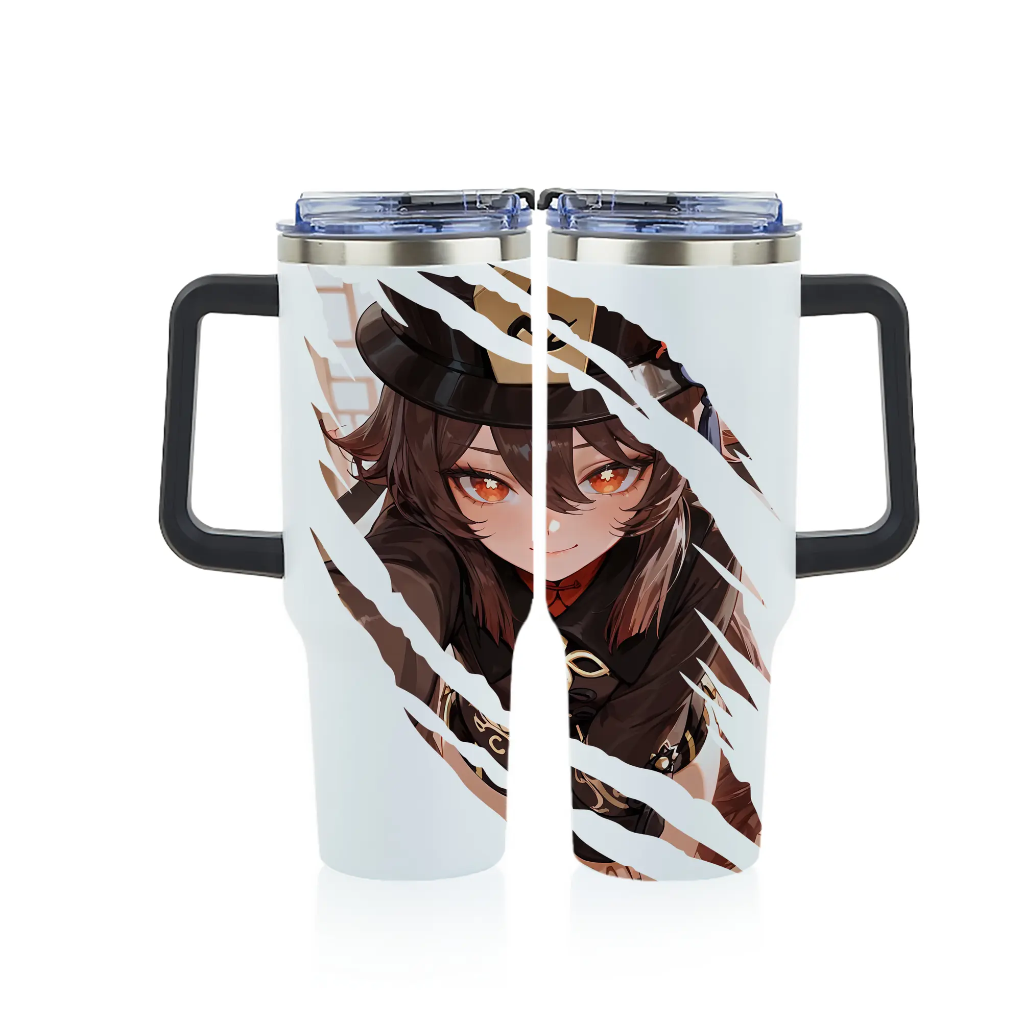原 神 グッズ フータオ - 1200mL フルプリント車用タンブラー ・ 304ステンレス 内側 ・ 201ステンレス 外側 ・ 保温 保冷 ・ 通勤 ドライブ アウトドア用