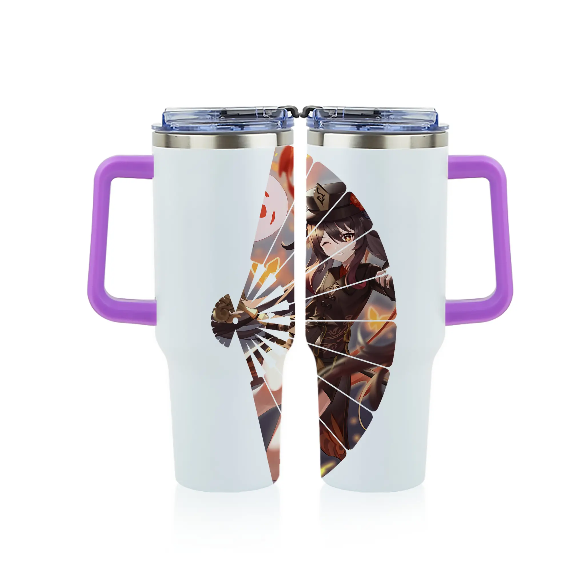原 神 グッズ フータオ - 1200mL フルプリント車用タンブラー ・ 304ステンレス 内側 ・ 201ステンレス 外側 ・ 保温 保冷 ・ 通勤 ドライブ アウトドア用