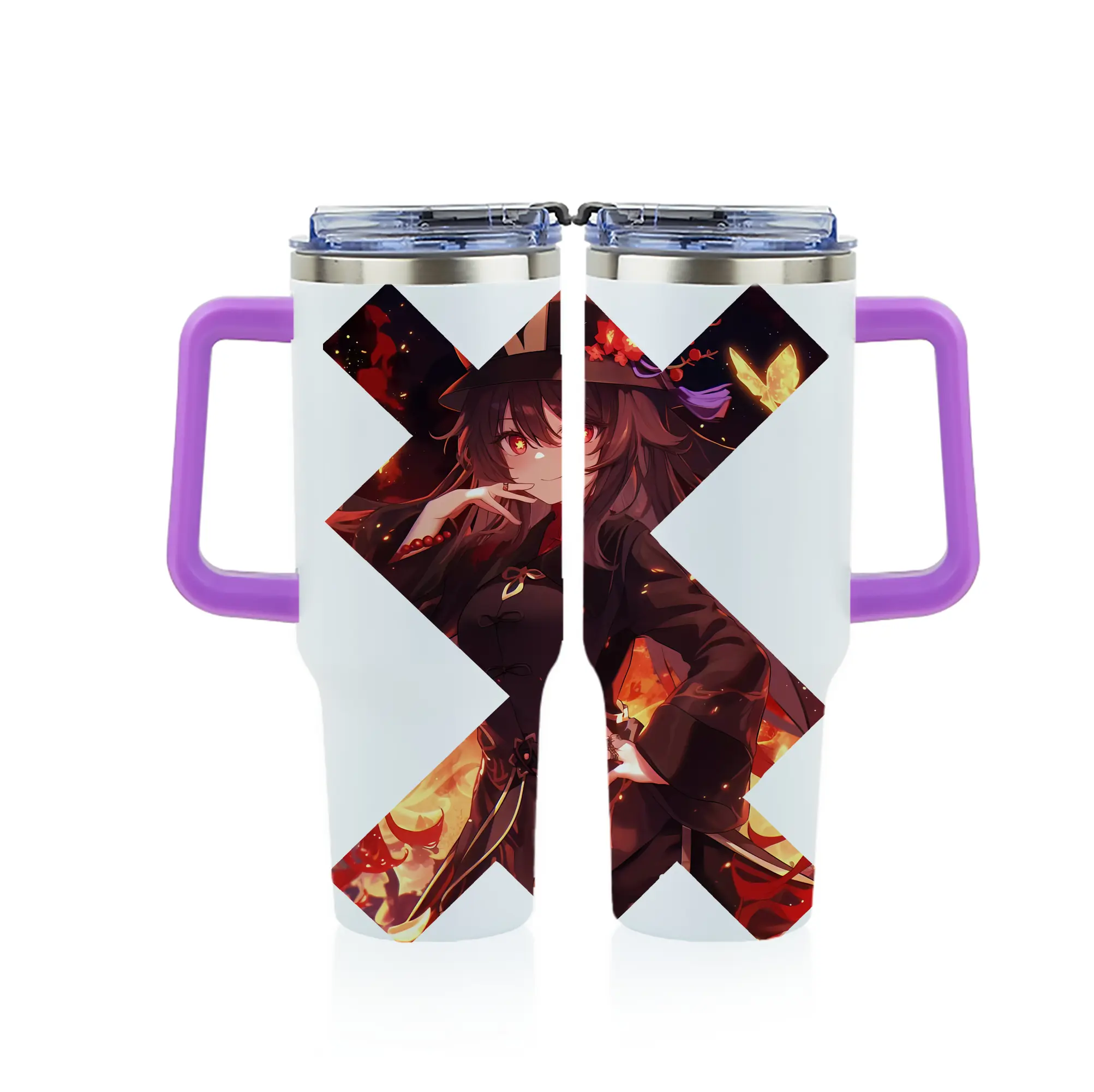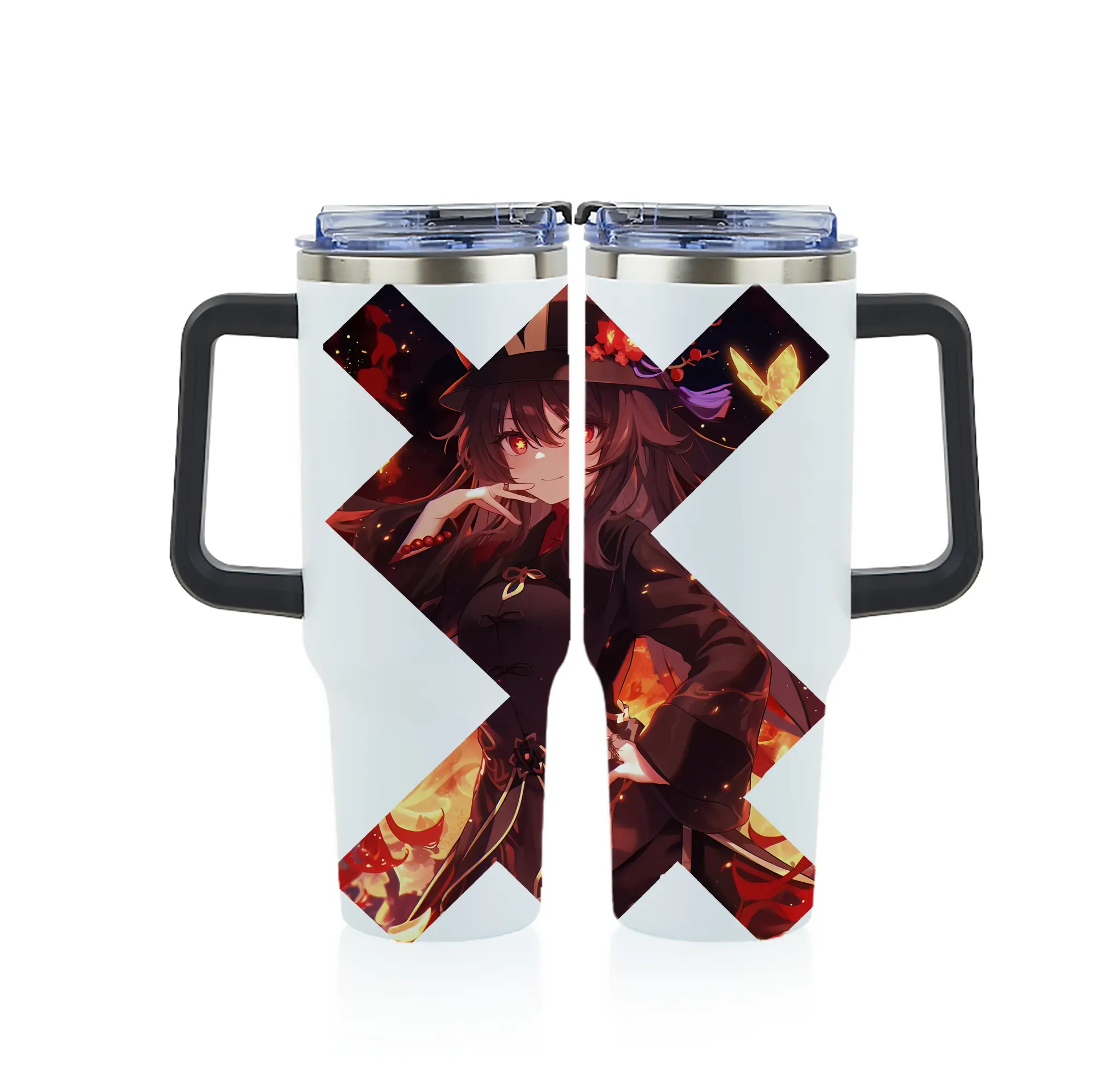 原 神 グッズ フータオ - 1200mL フルプリント車用タンブラー ・ 304ステンレス 内側 ・ 201ステンレス 外側 ・ 保温 保冷 ・ 通勤 ドライブ アウトドア用