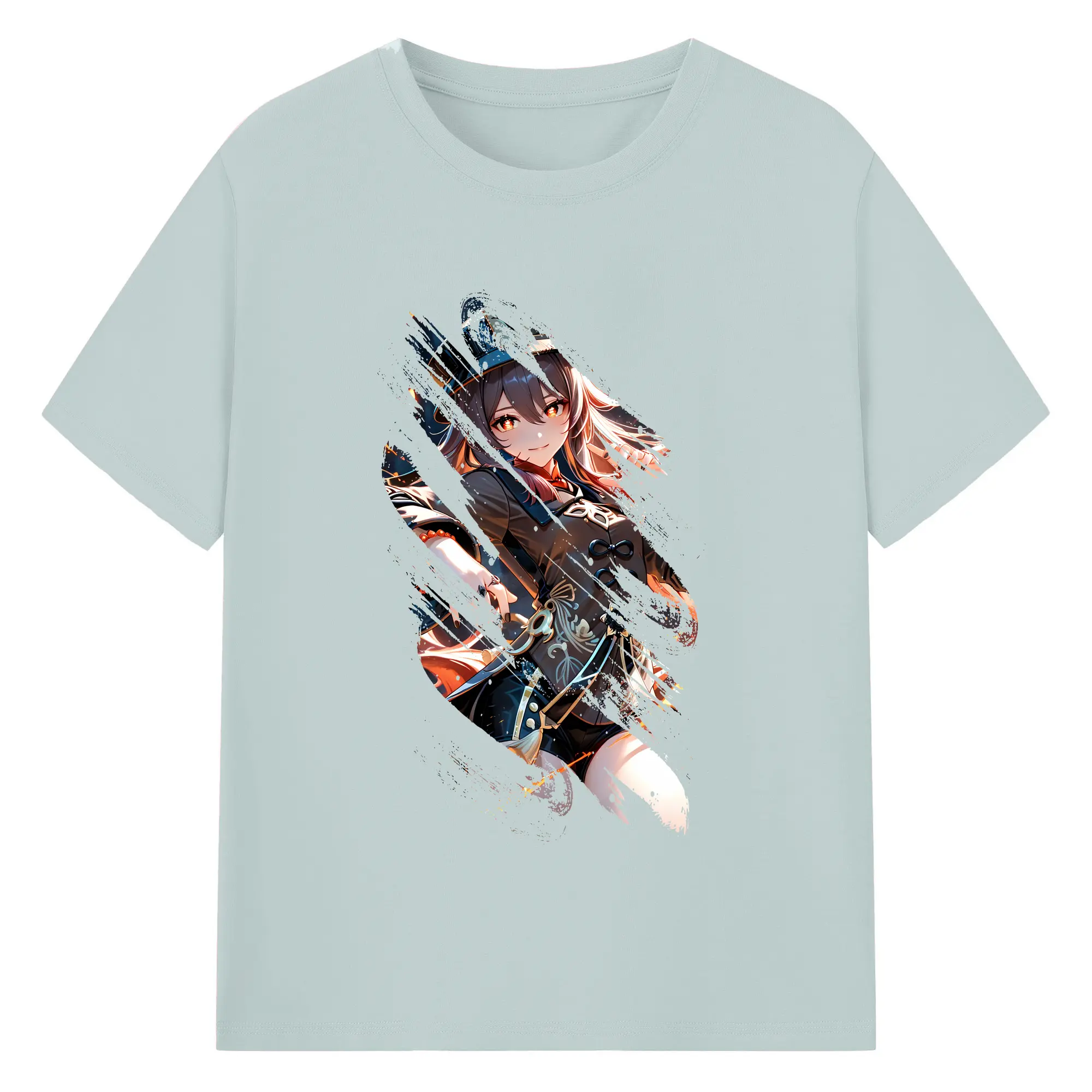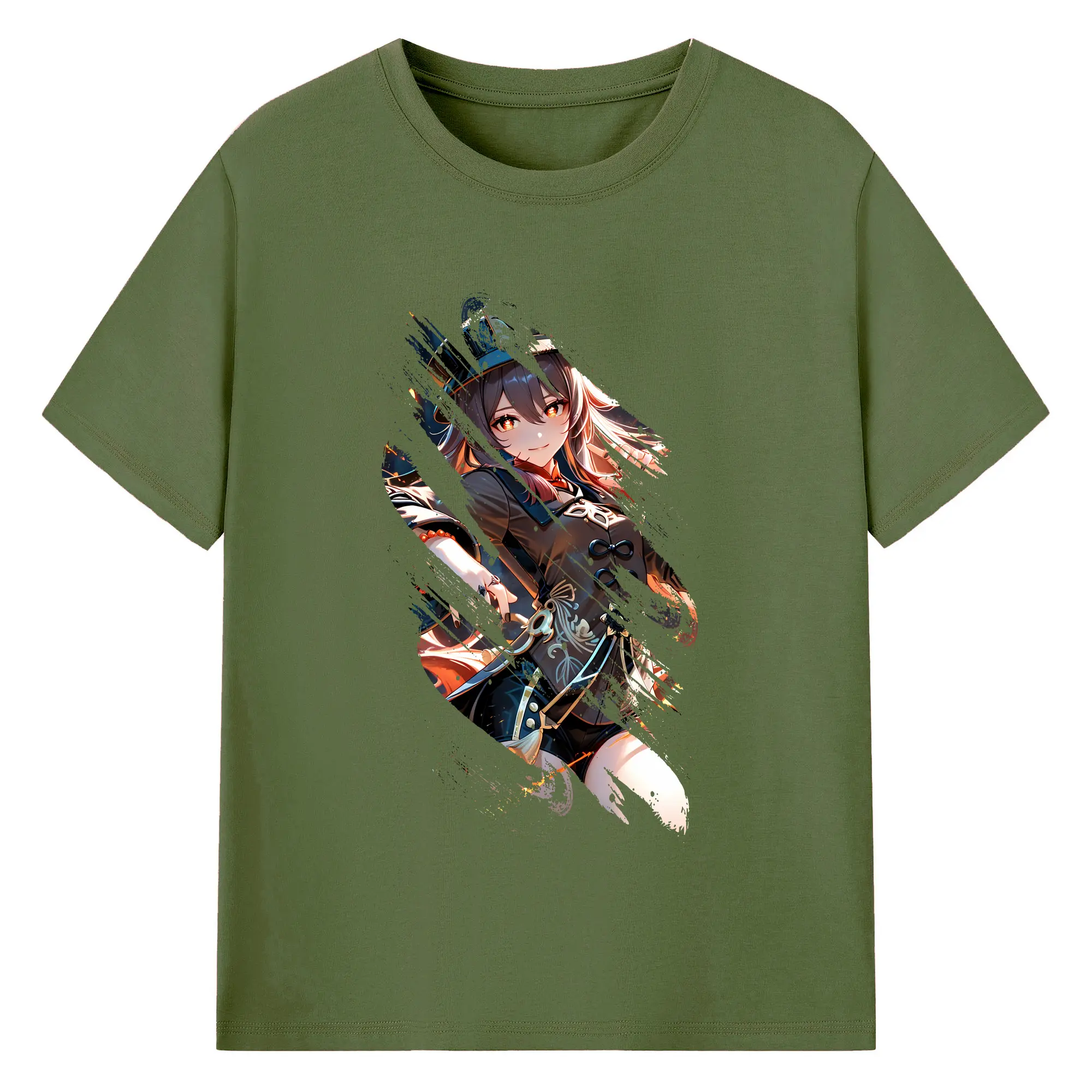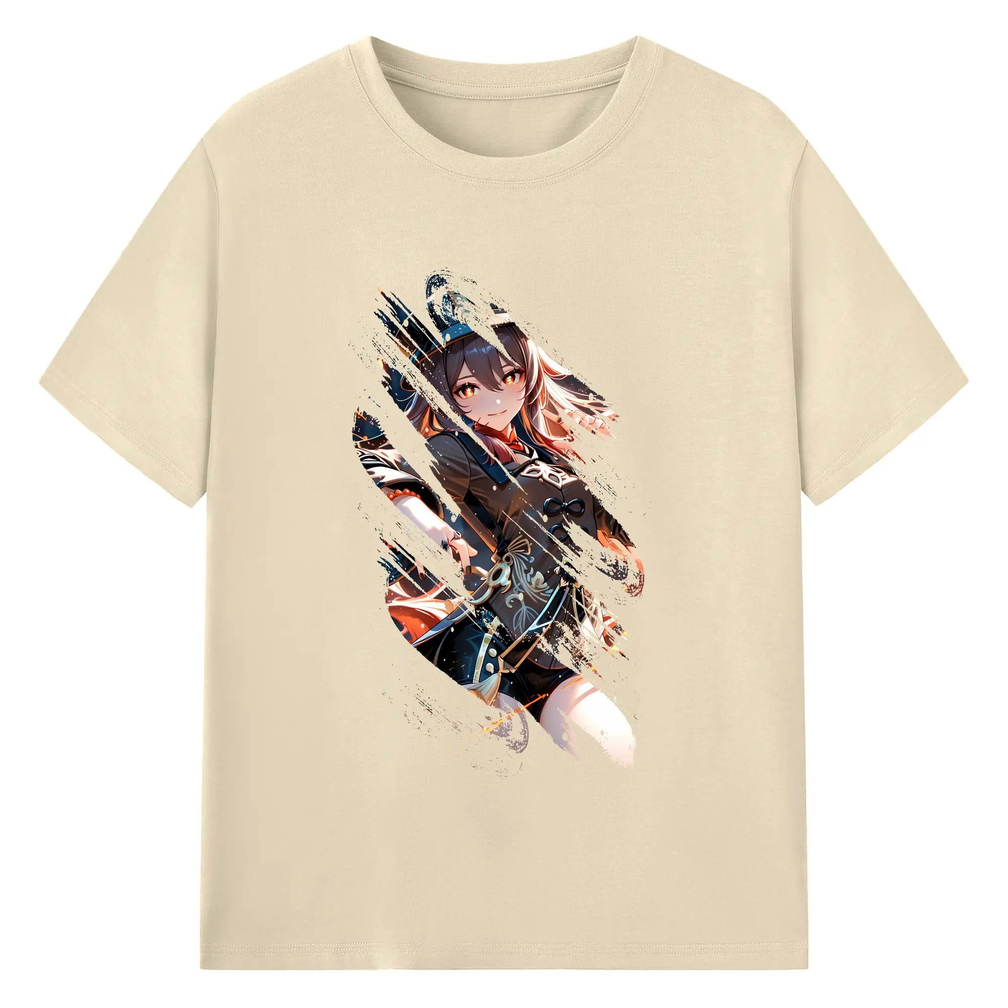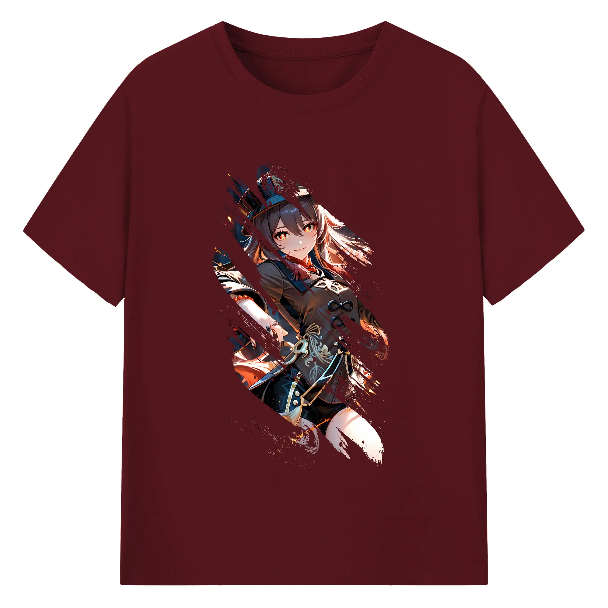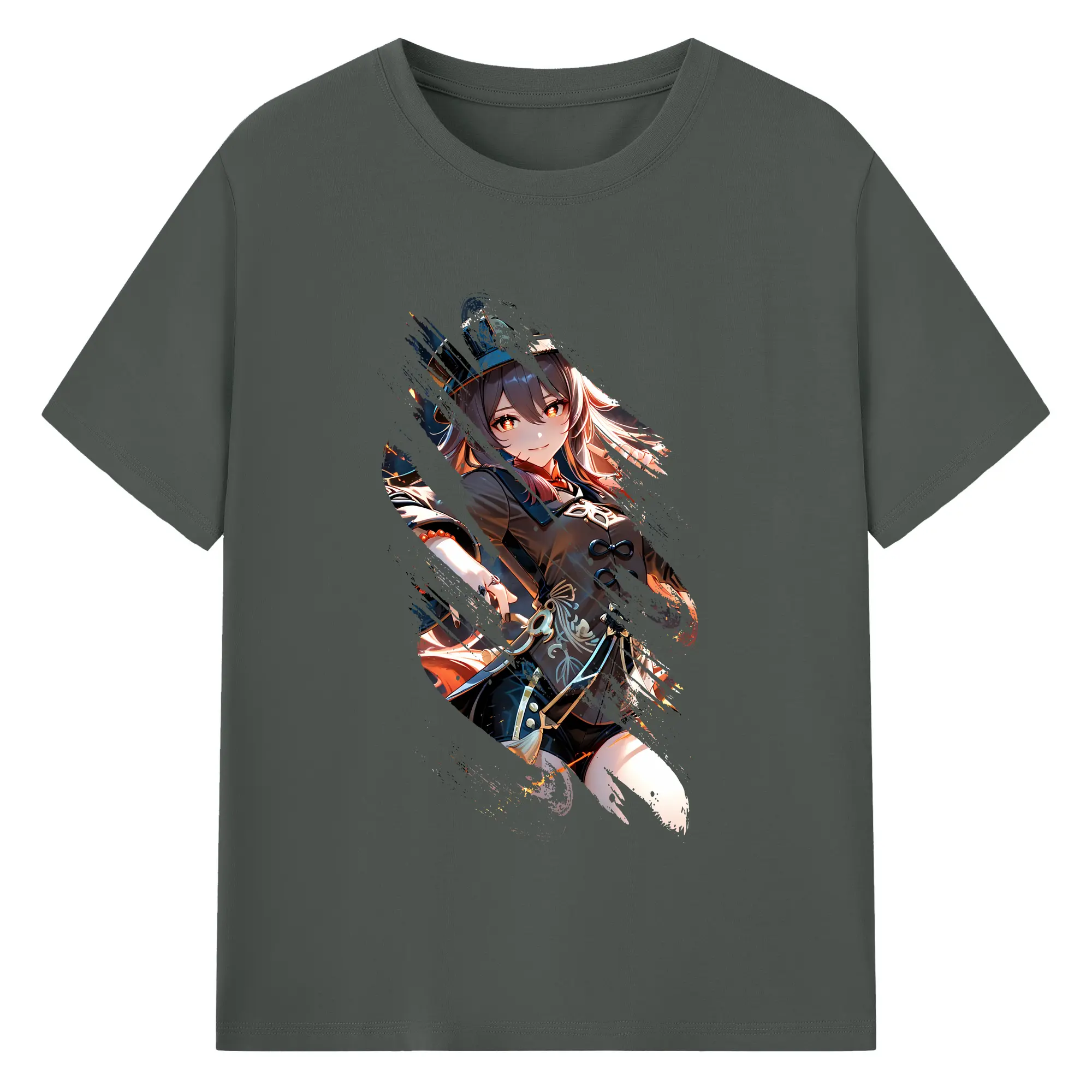 原 神 グッズ フータオ - 綿100% ヴィンテージ風 半袖Tシャツ ・ フロントプリント ・ 柔らか肌触り ・ 通気性 快適 ・ スポーツ カジュアル 外出用