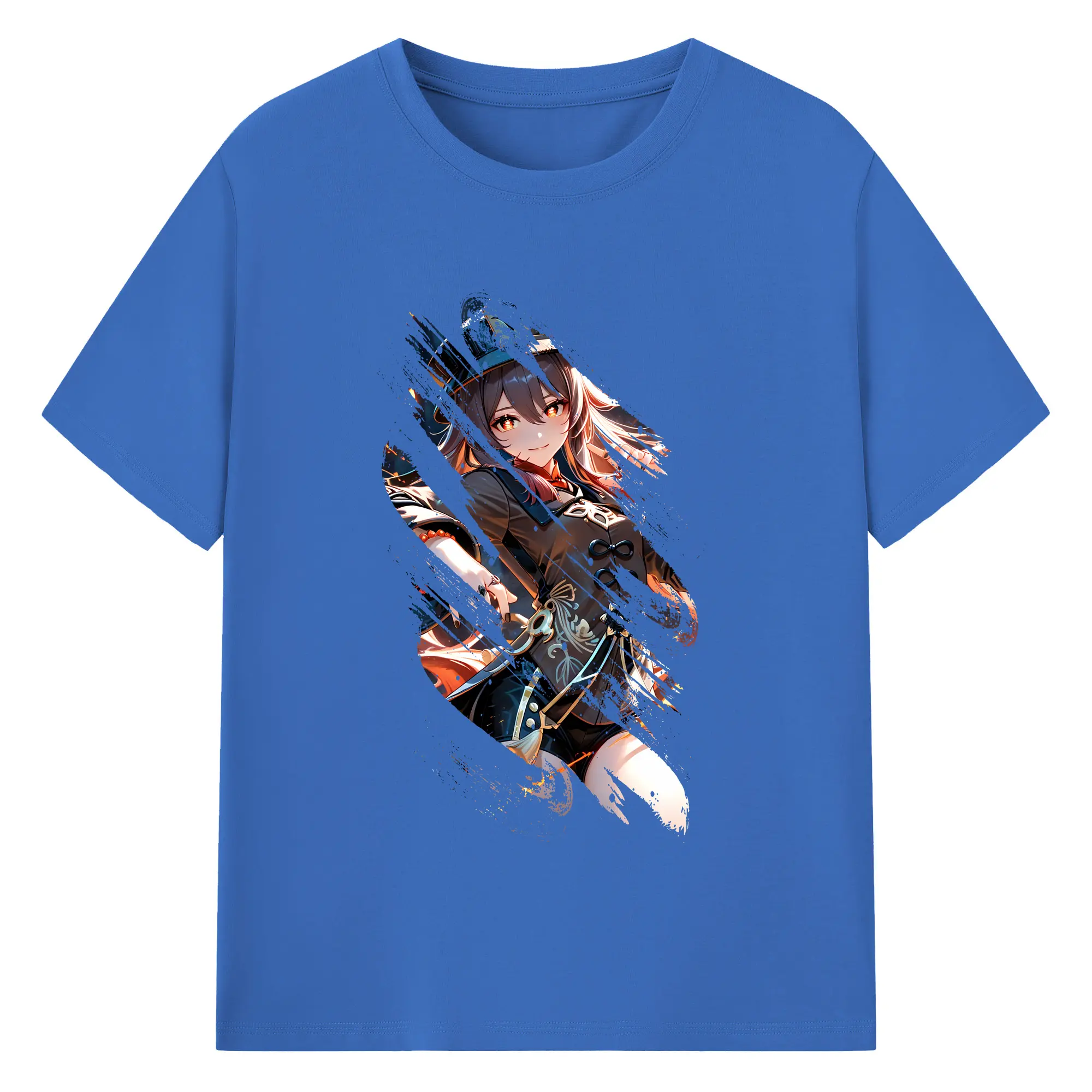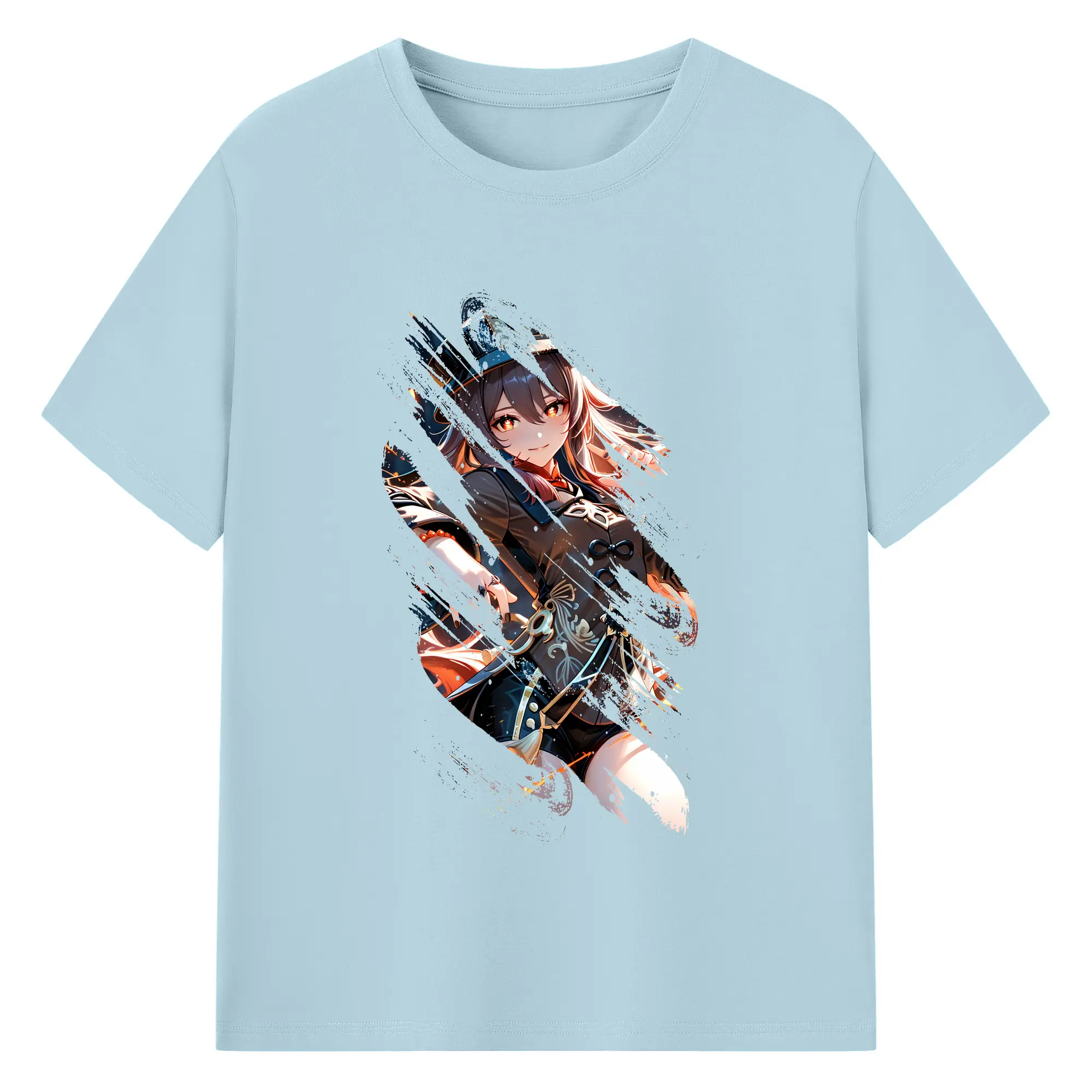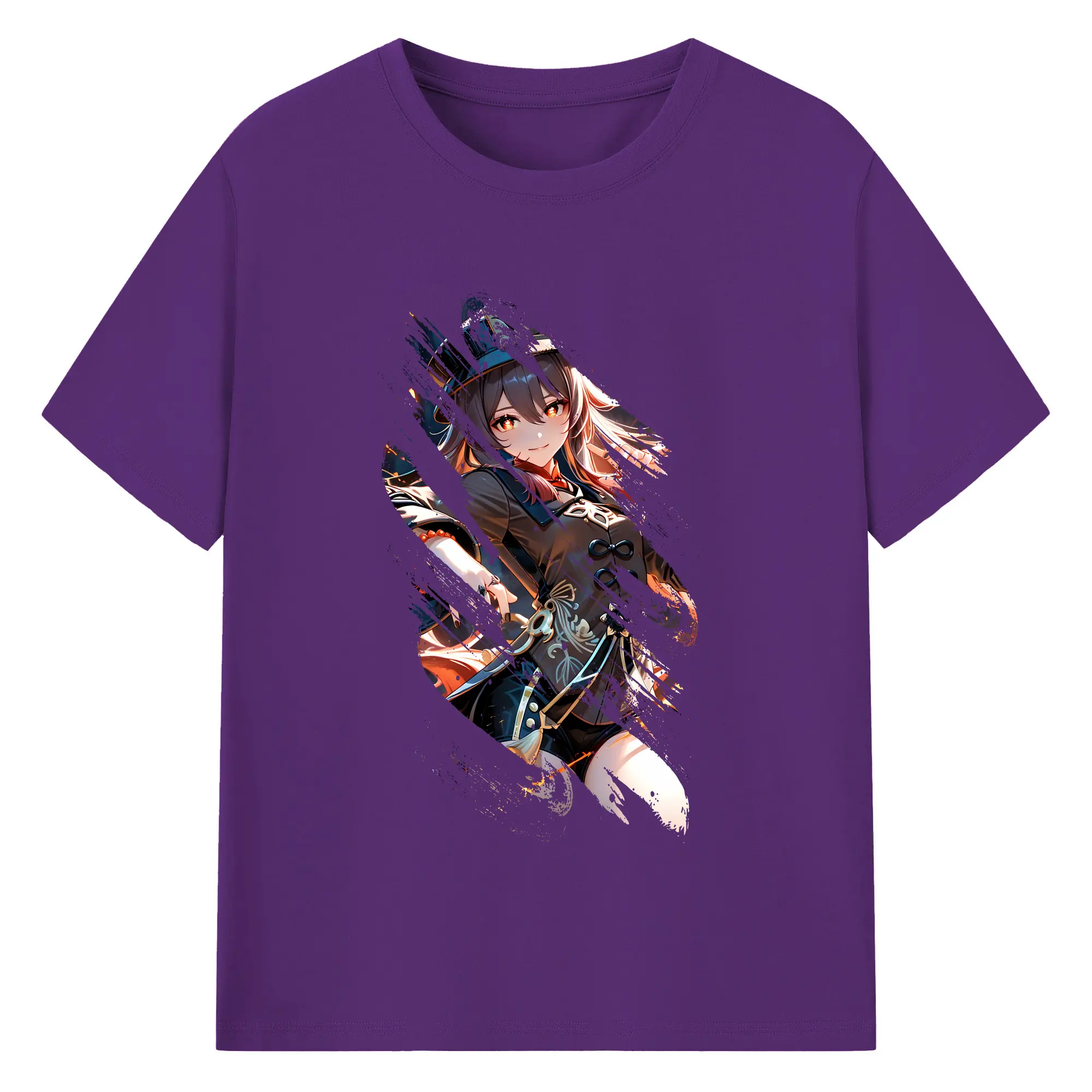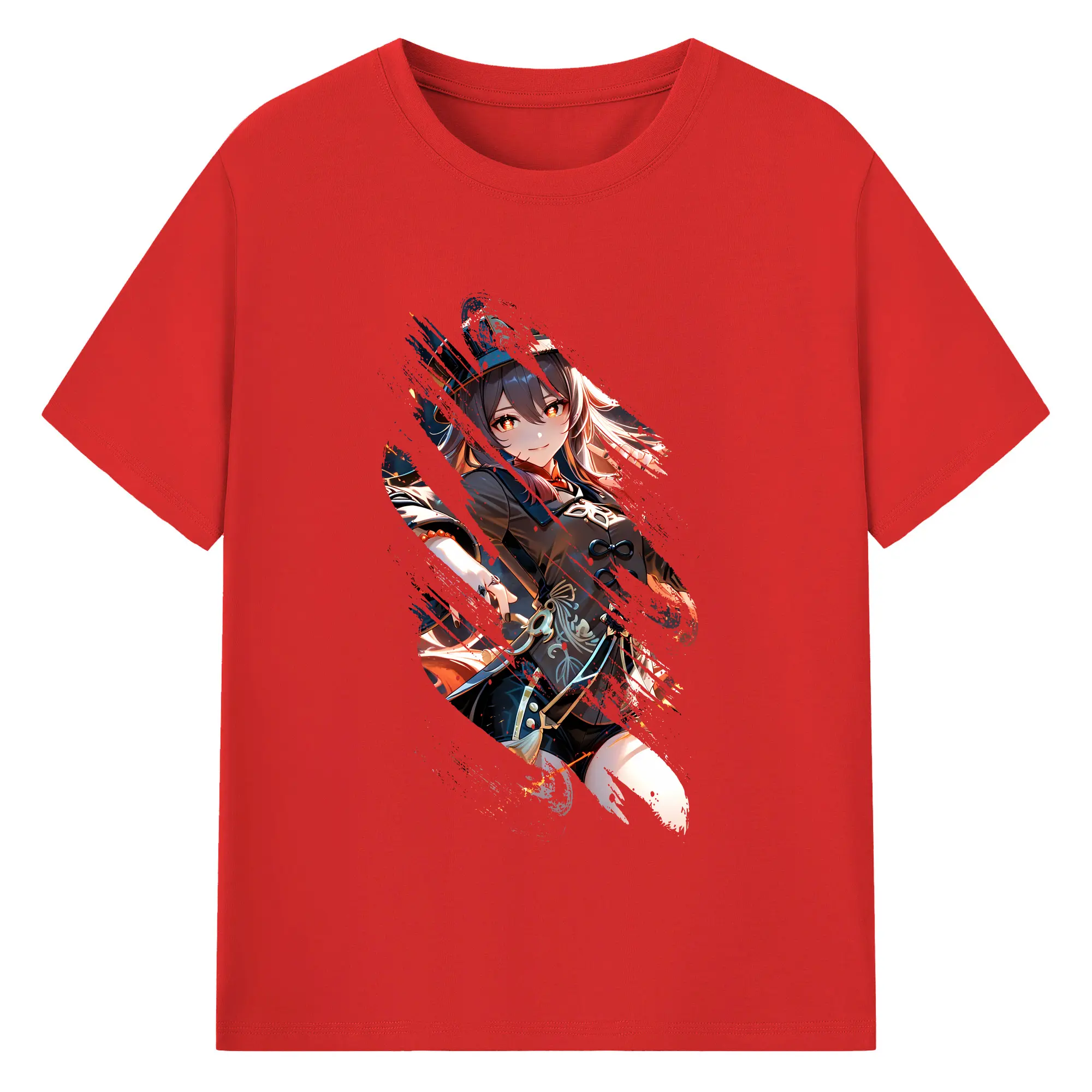 原 神 グッズ フータオ - 綿100% 半袖Tシャツ ・ バックプリント ・ 快適 通気性 ・ 日常使い 散歩 スポーツ用