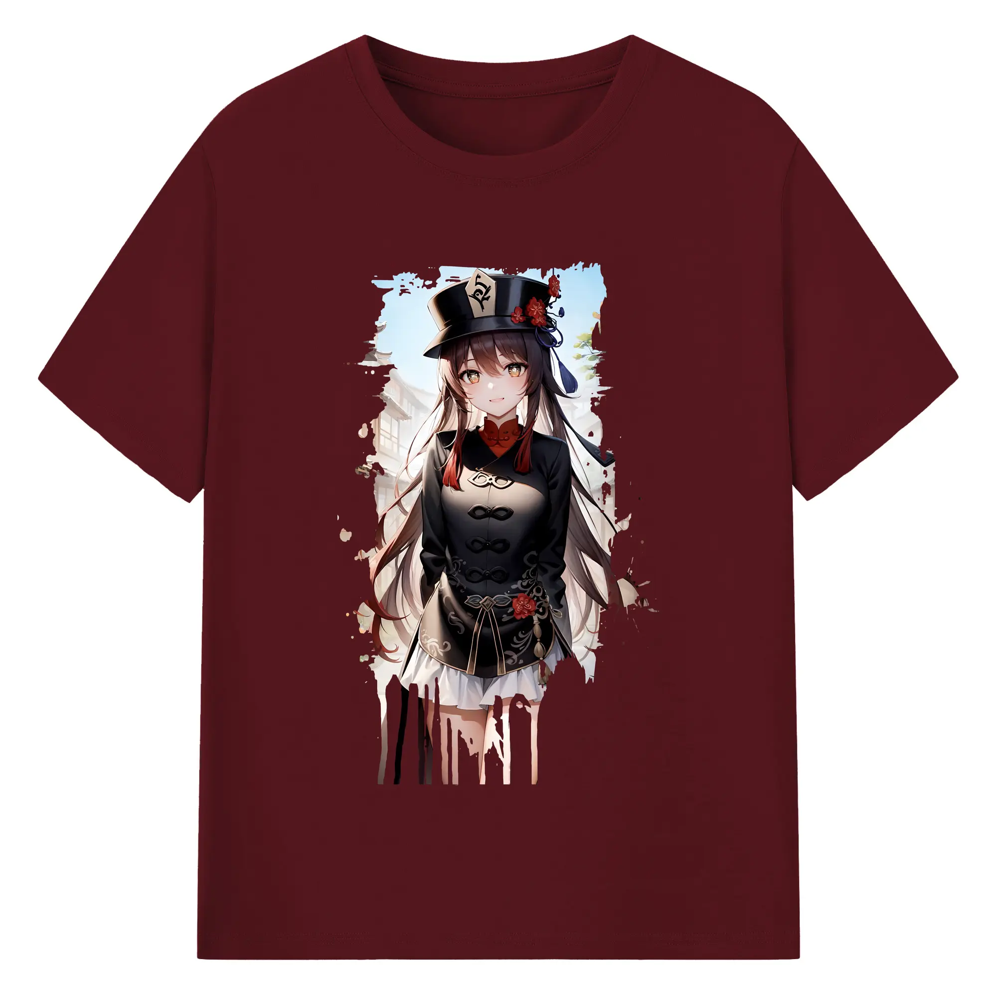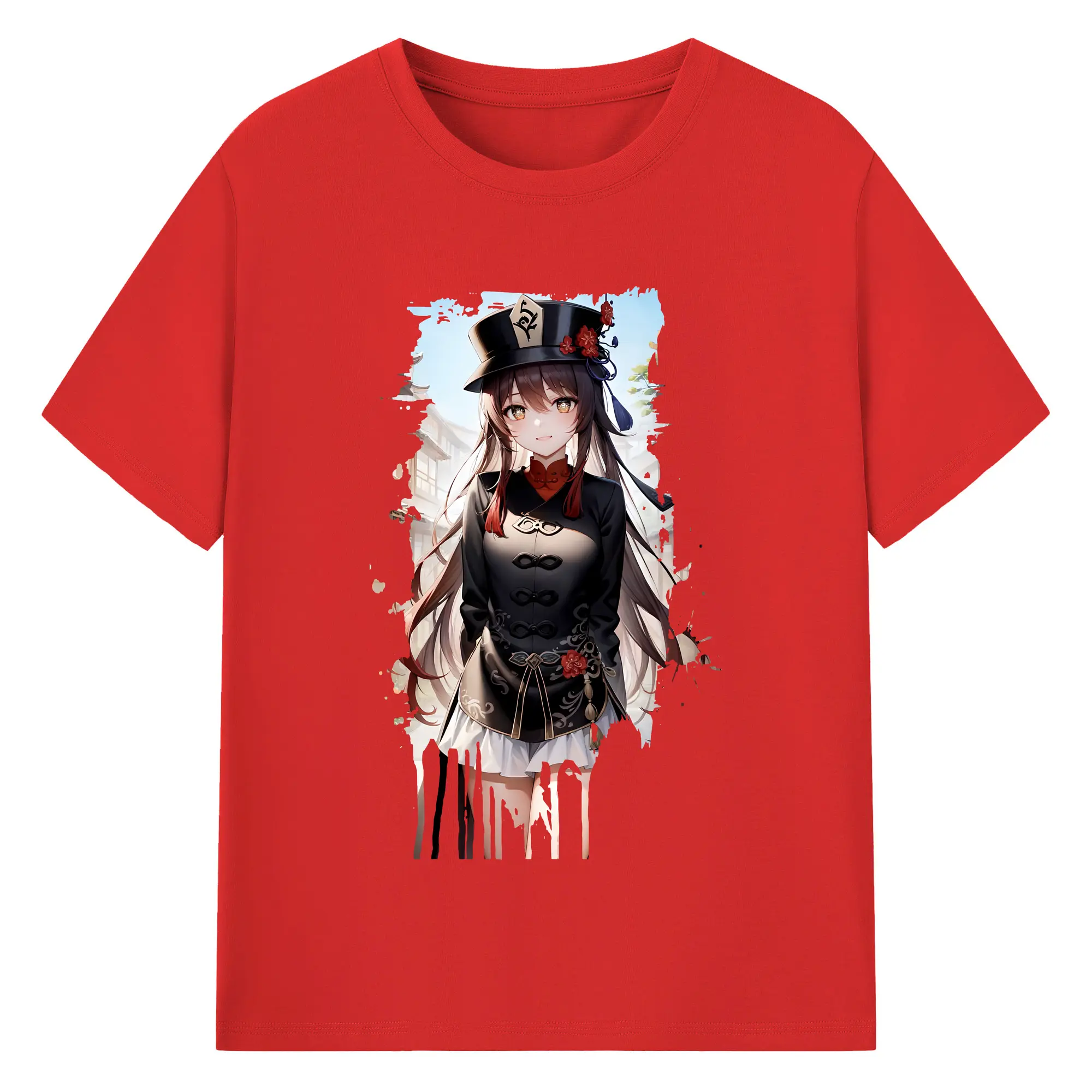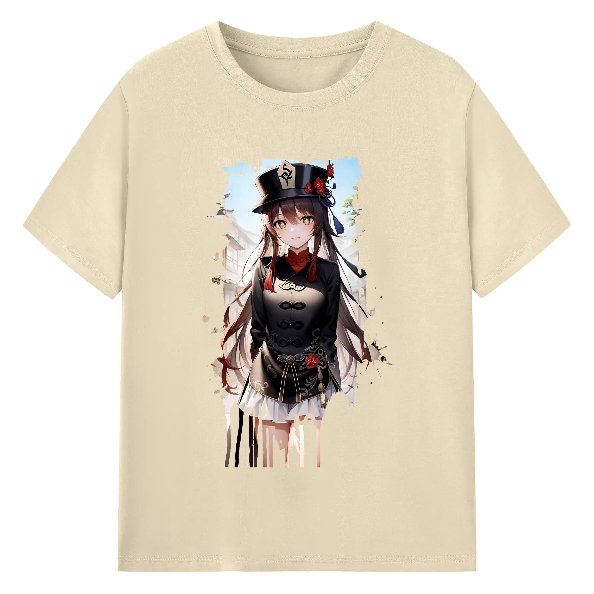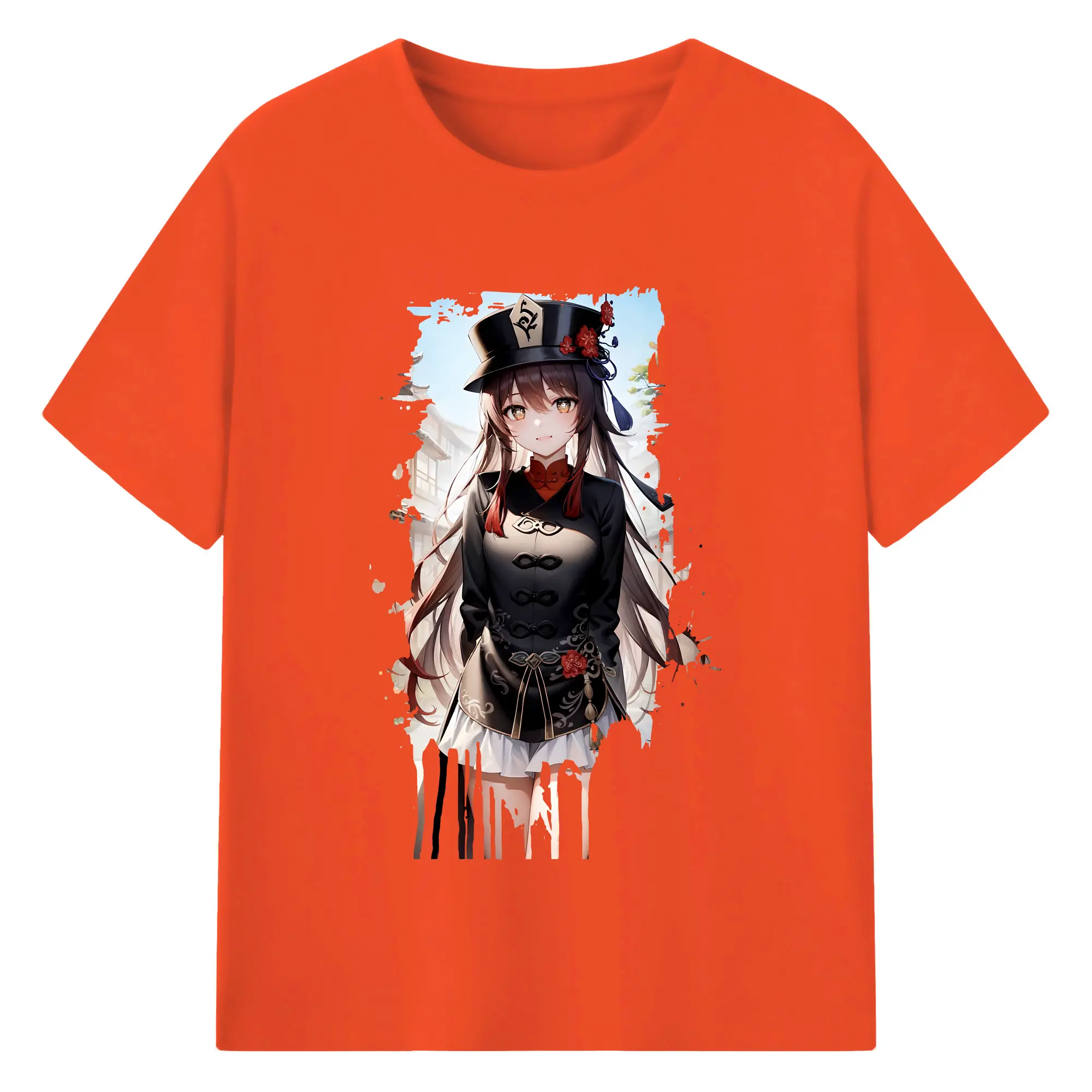 原 神 グッズ フータオ - 綿100% ヴィンテージ風 半袖Tシャツ ・ フロントプリント ・ 柔らか肌触り ・ 通気性 快適 ・ スポーツ カジュアル 外出用