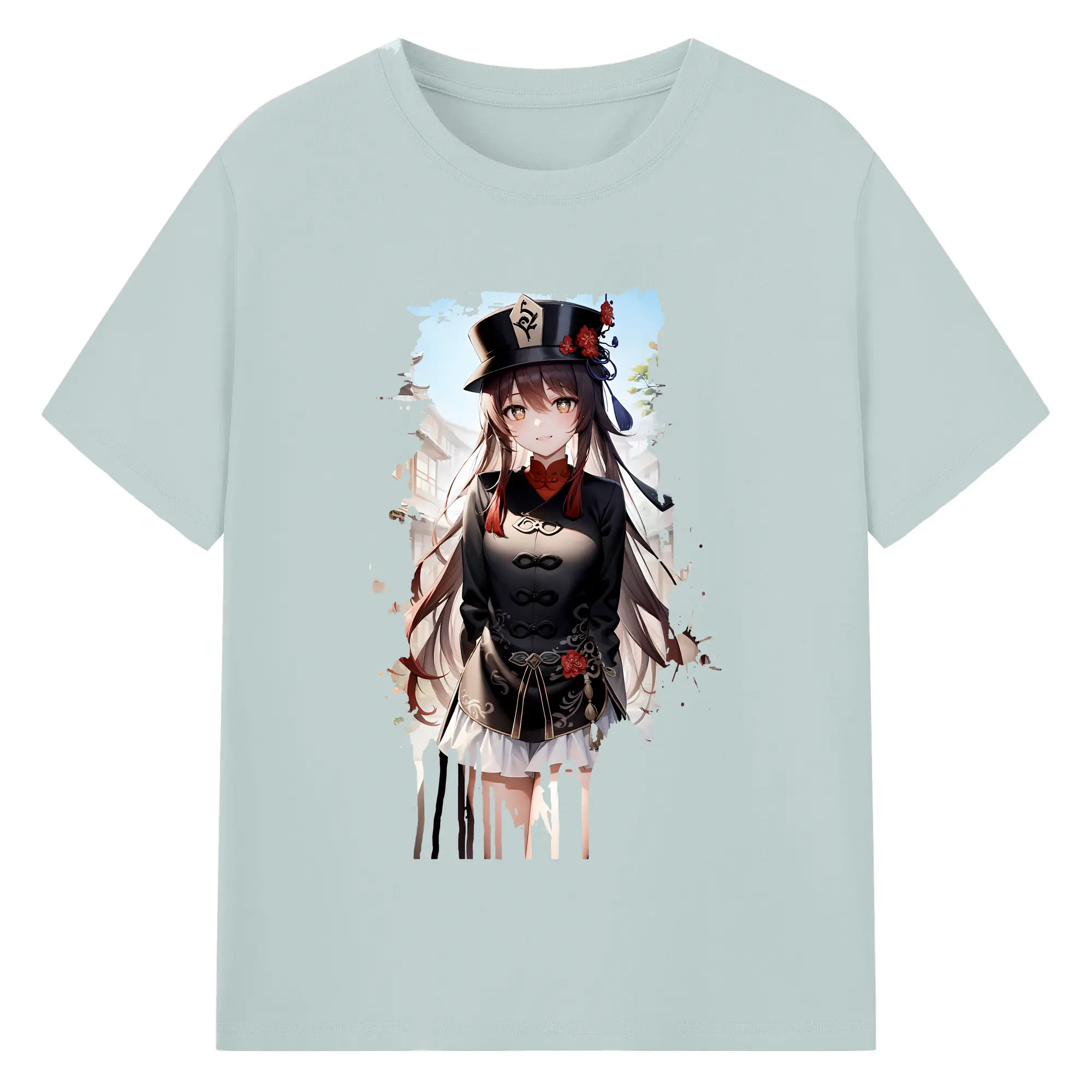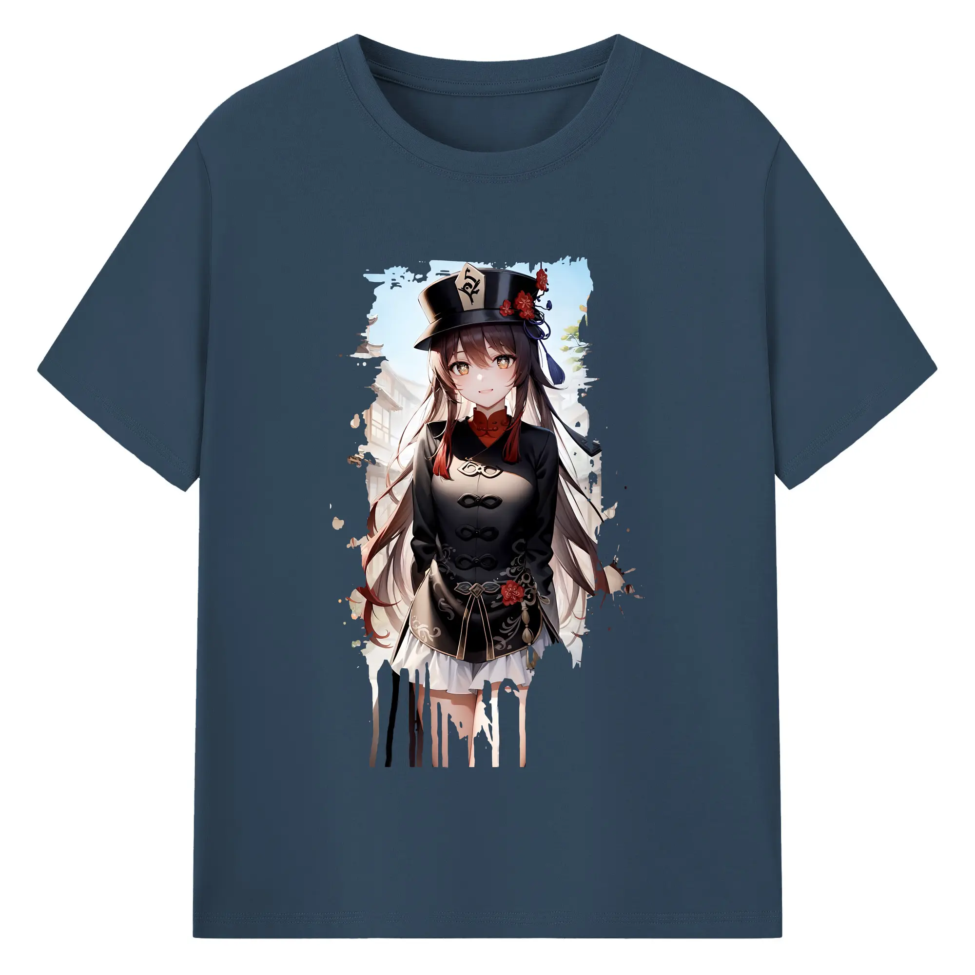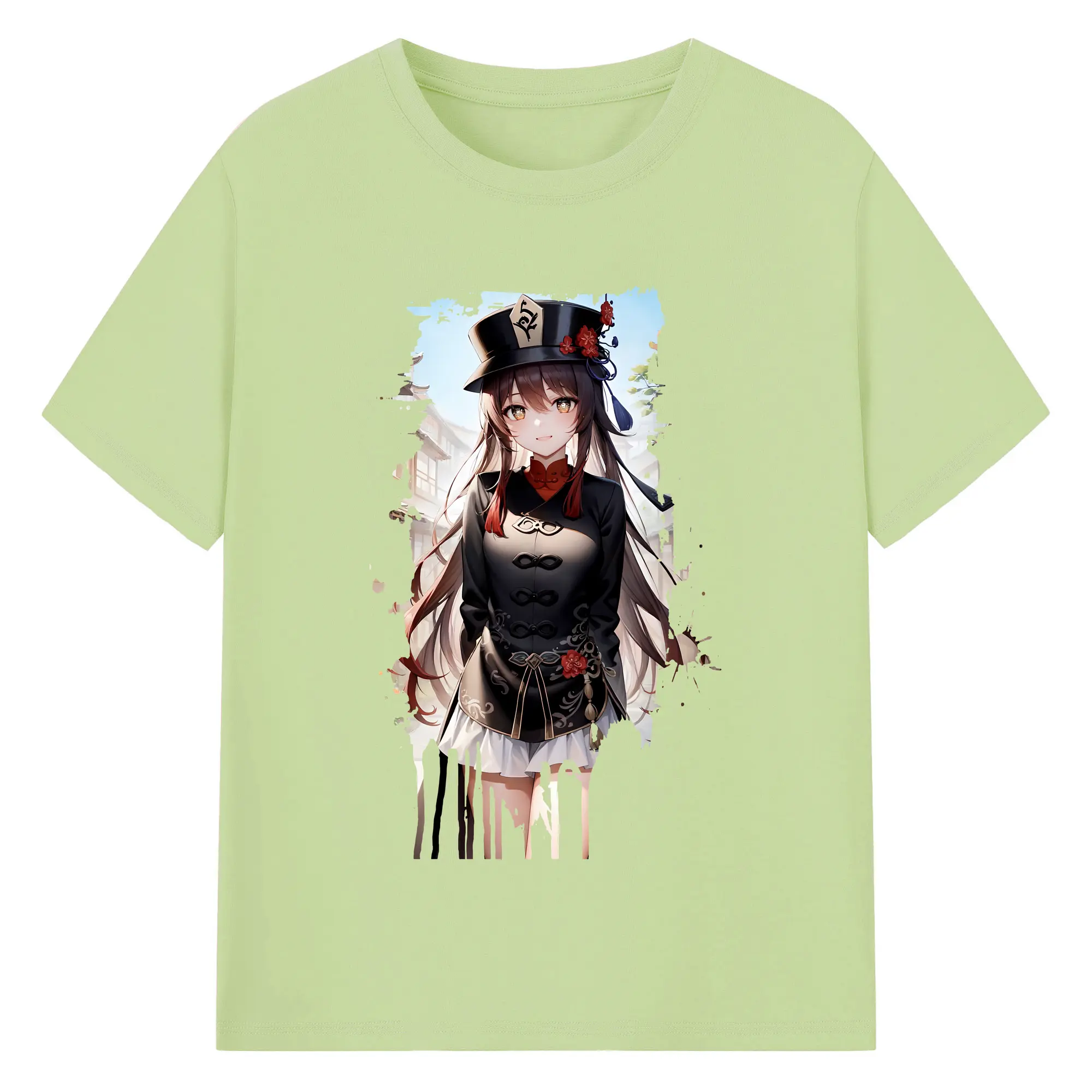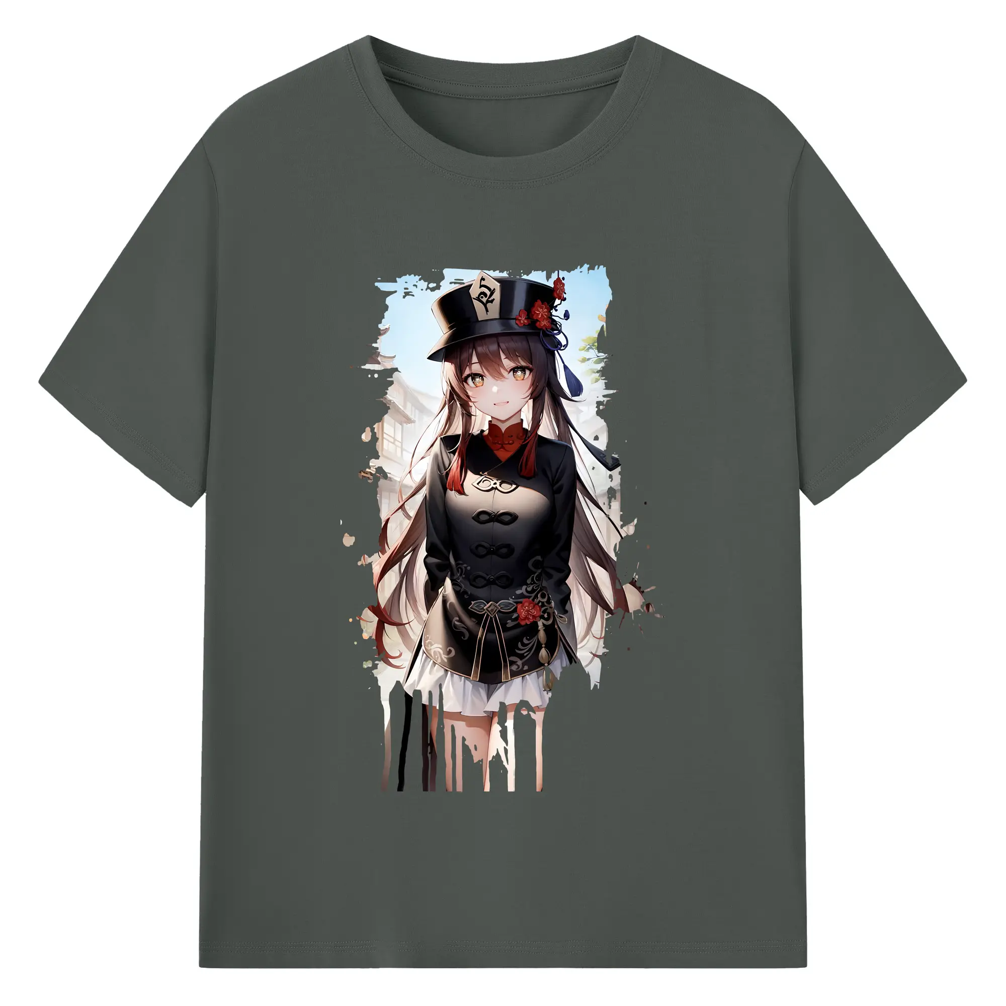 原 神 グッズ フータオ - 綿100% ヴィンテージ風 半袖Tシャツ ・ フロントプリント ・ 柔らか肌触り ・ 通気性 快適 ・ スポーツ カジュアル 外出用