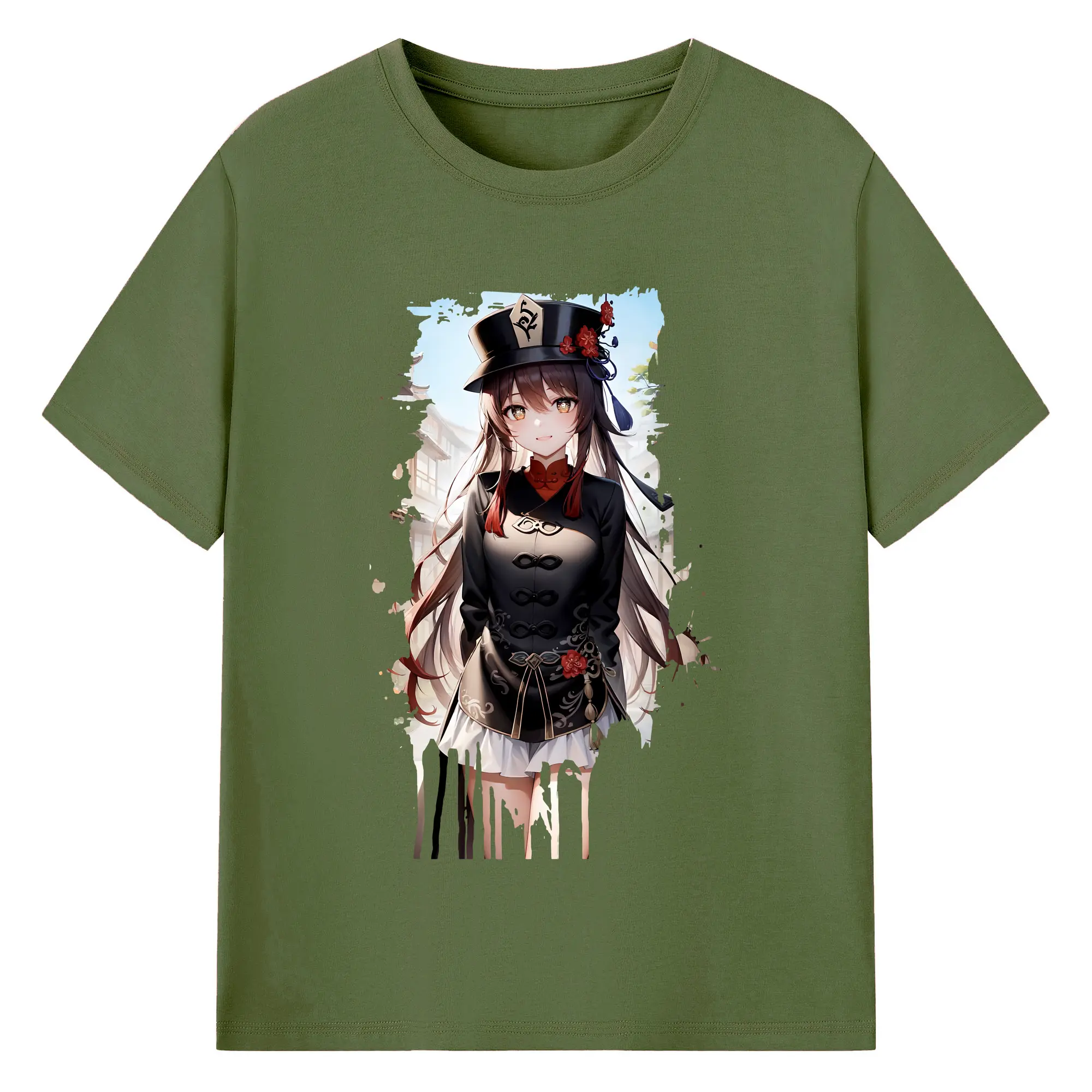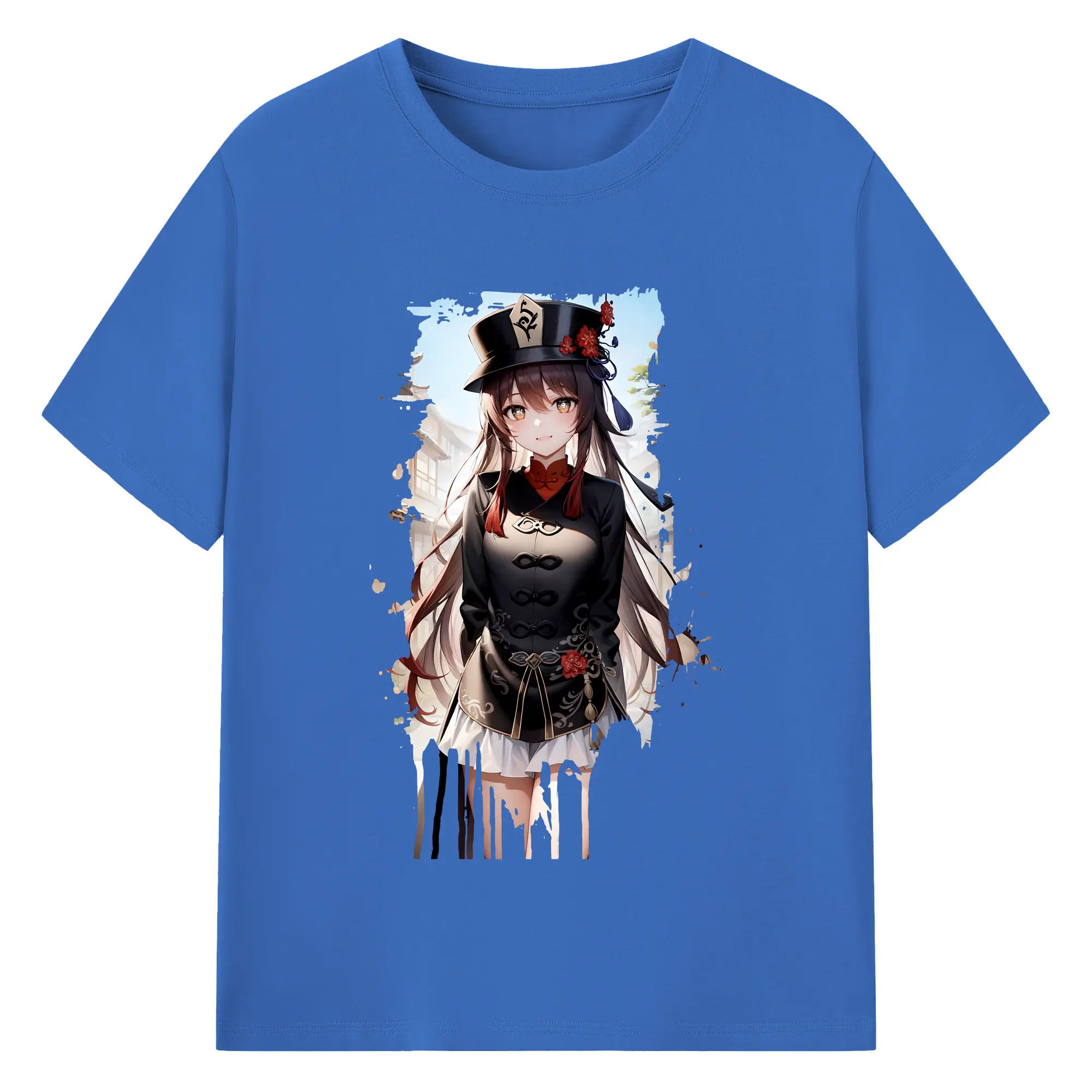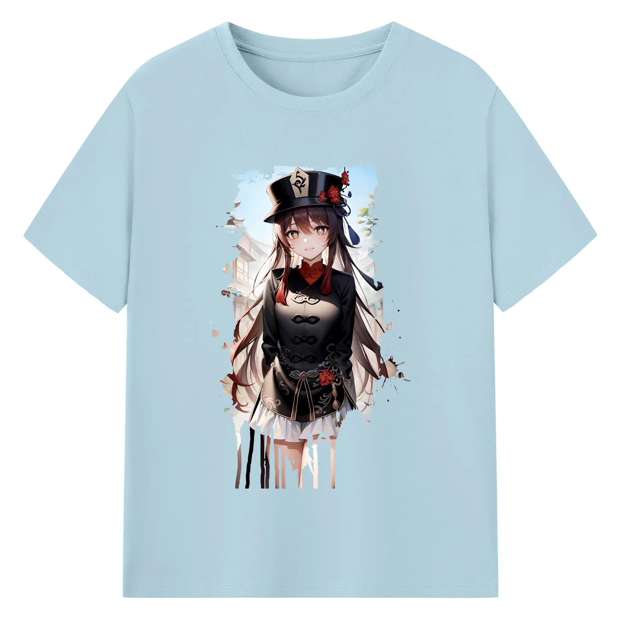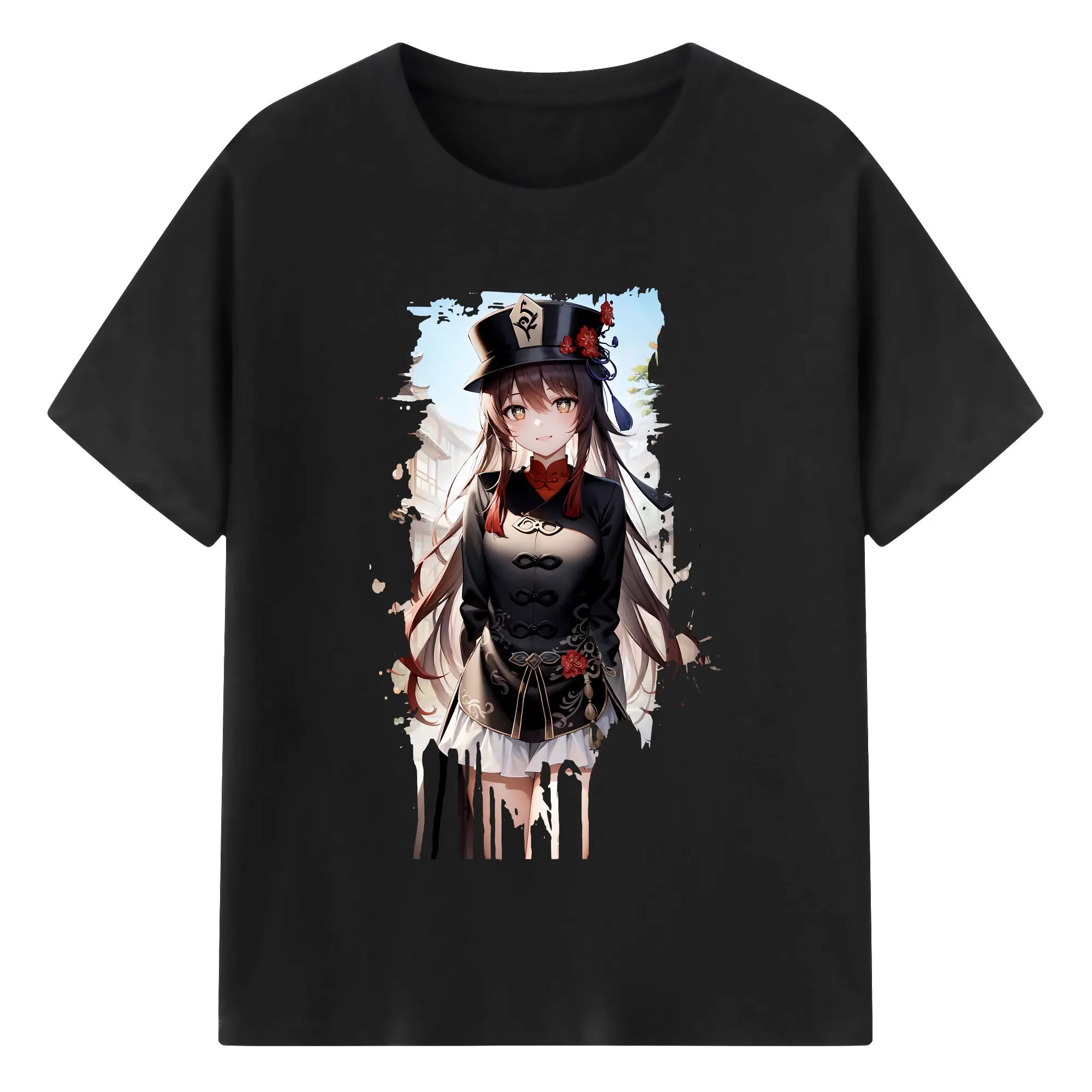 原 神 グッズ フータオ - 綿100% ヴィンテージ風 半袖Tシャツ ・ フロントプリント ・ 柔らか肌触り ・ 通気性 快適 ・ スポーツ カジュアル 外出用