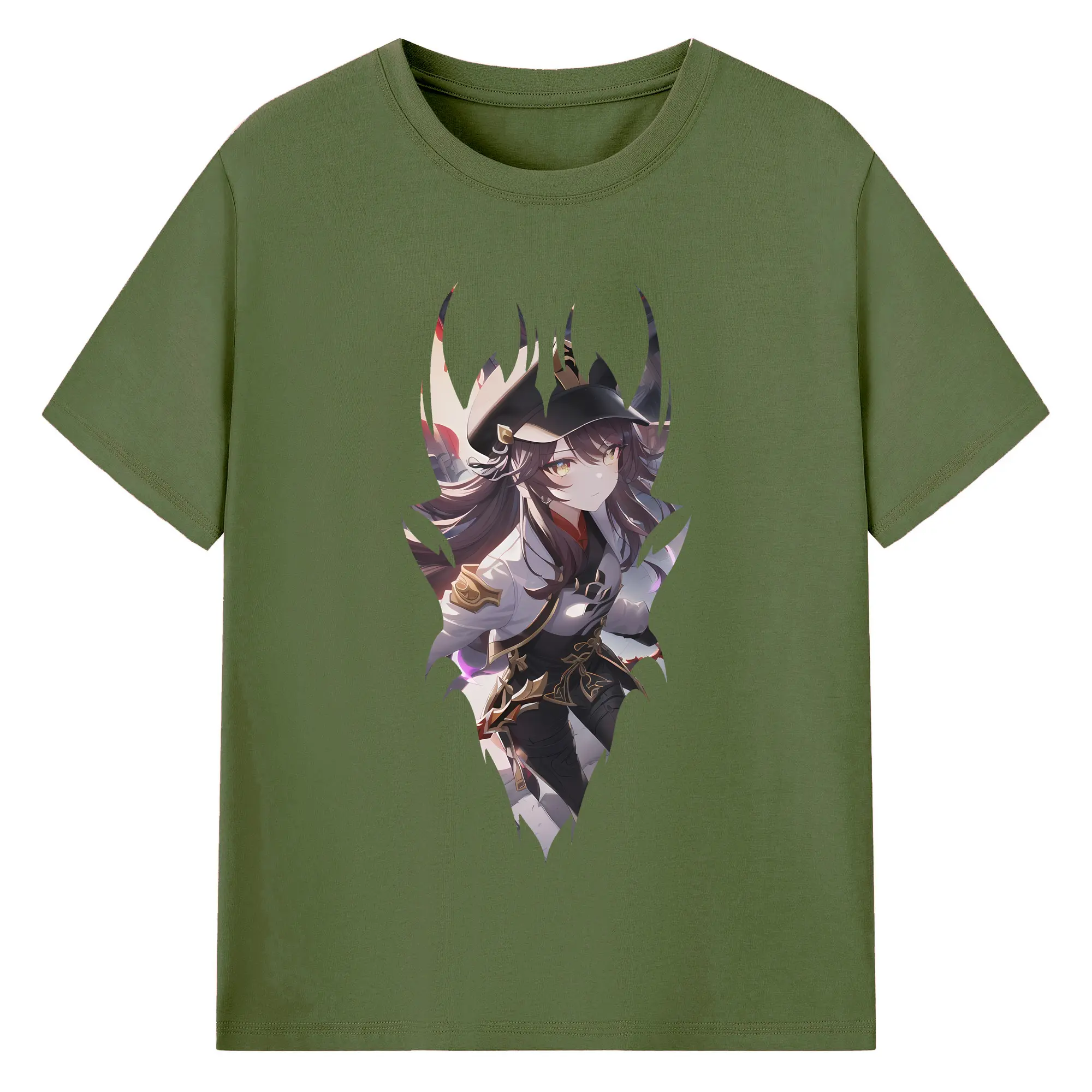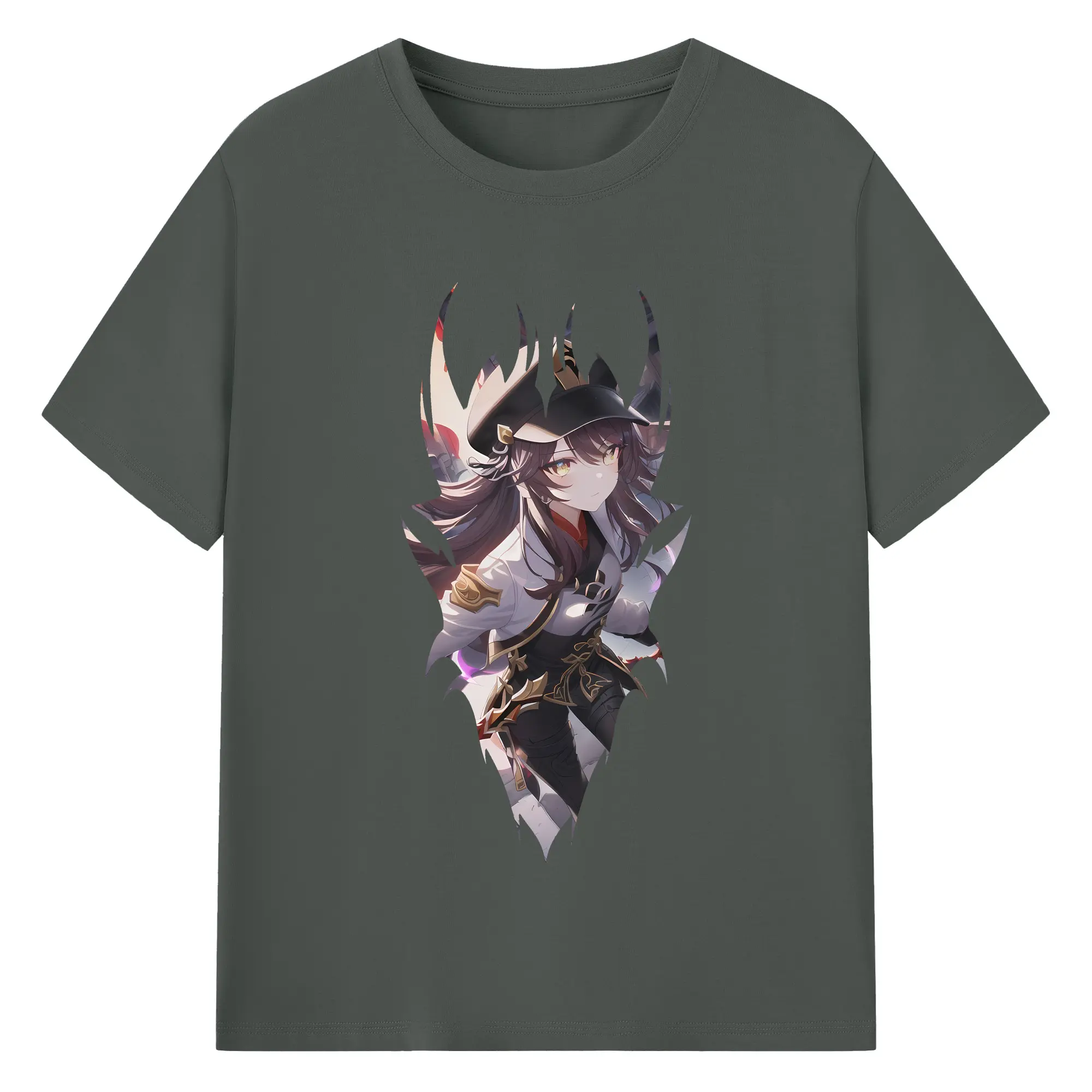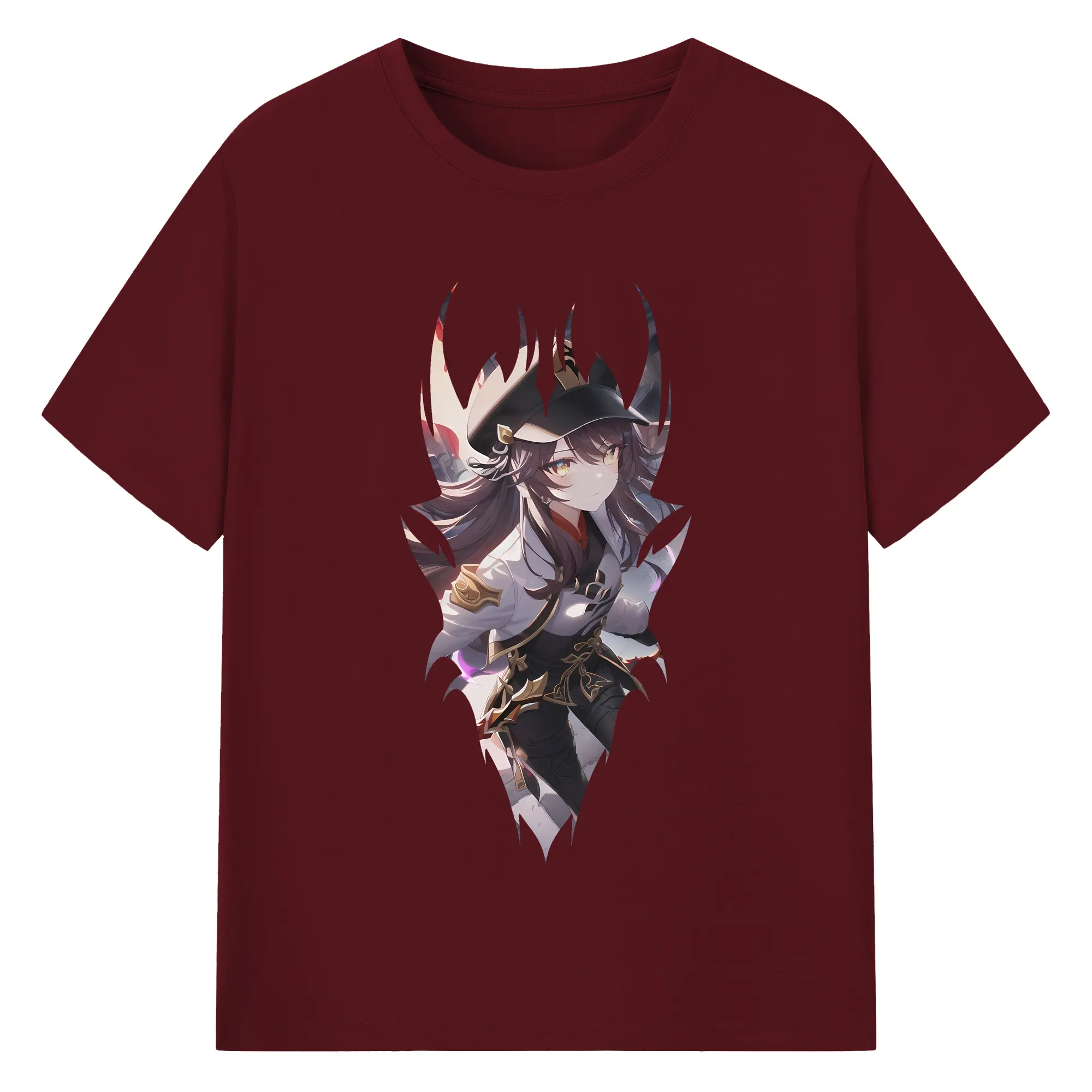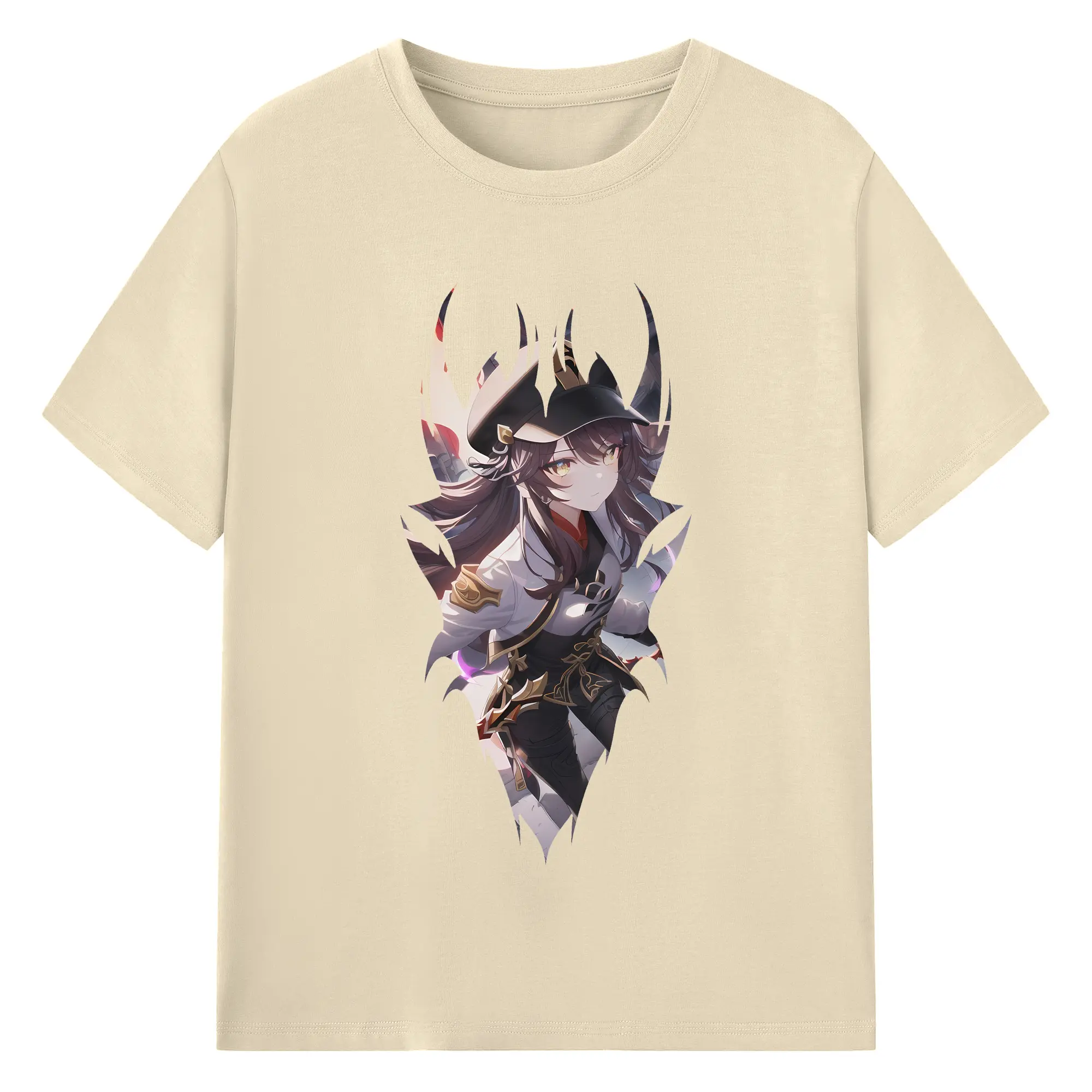 原 神 グッズ フータオ - 綿100% ヴィンテージ風 半袖Tシャツ ・ フロントプリント ・ 柔らか肌触り ・ 通気性 快適 ・ スポーツ カジュアル 外出用