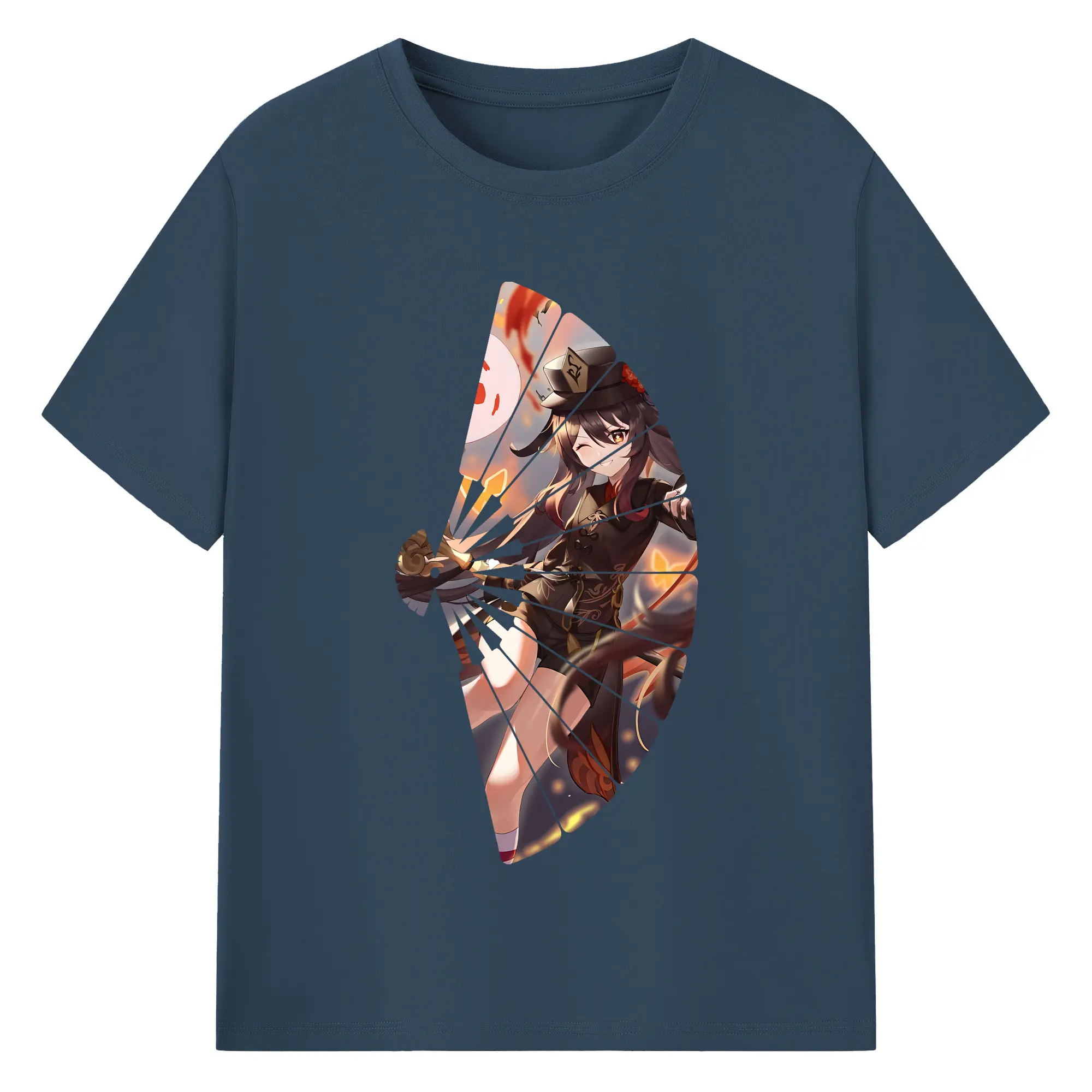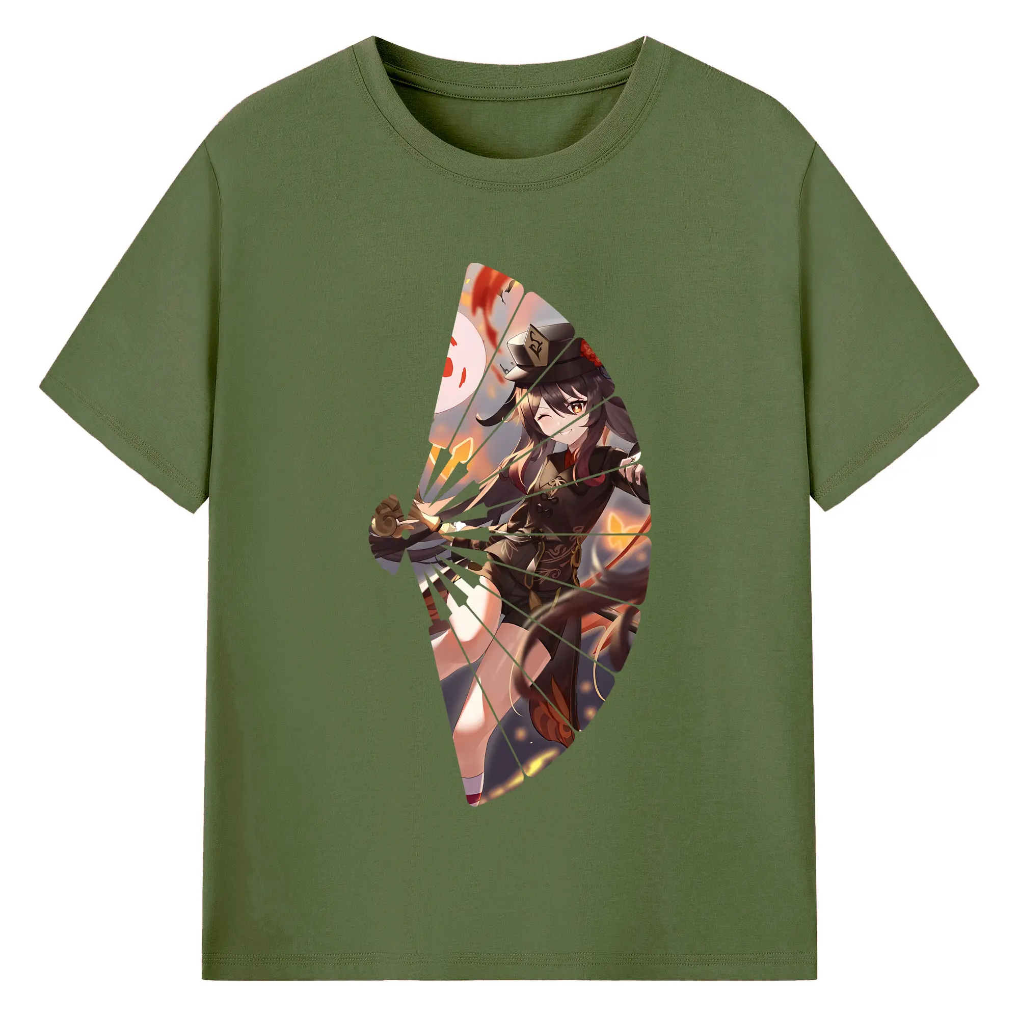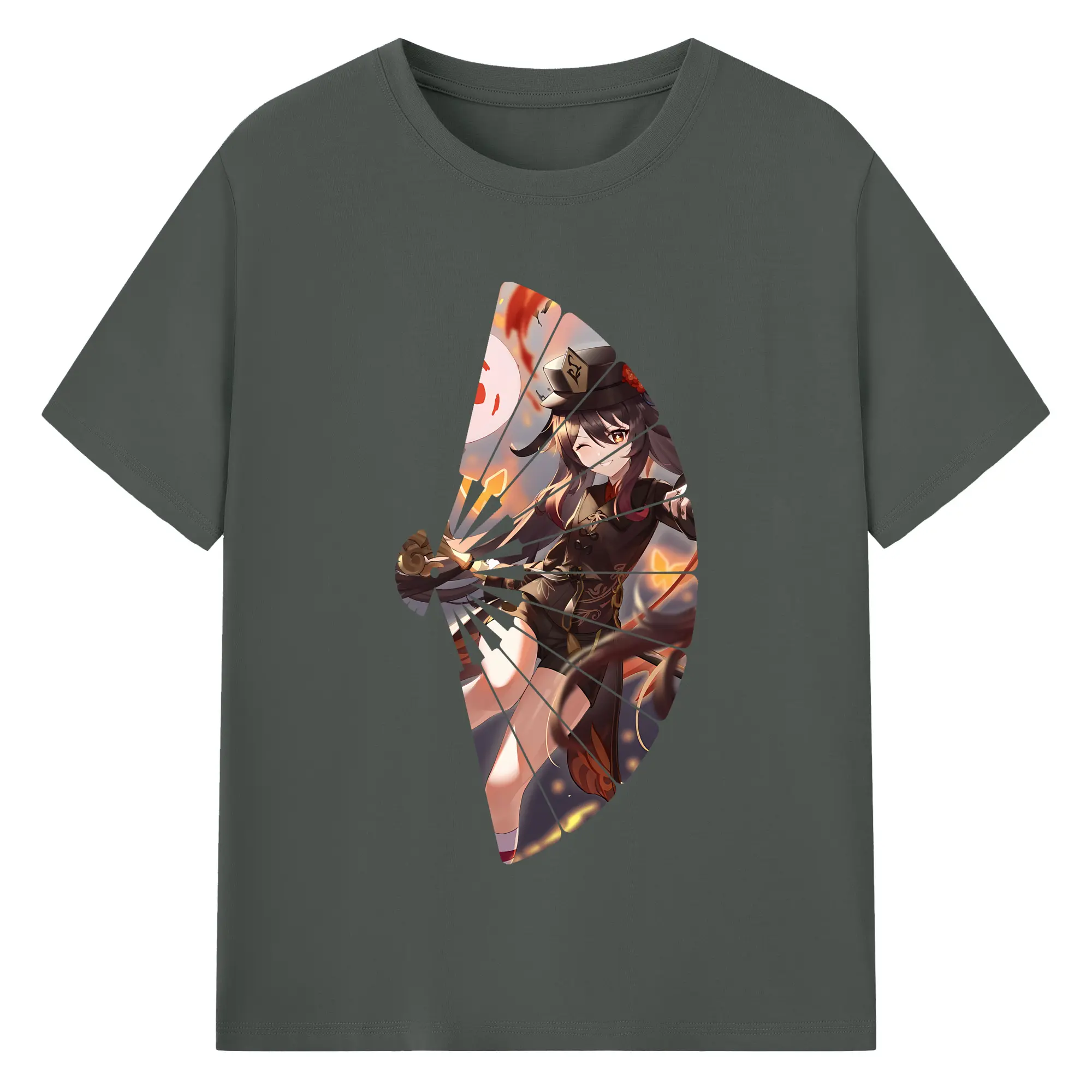 原 神 グッズ フータオ - 綿100% ヴィンテージ風 半袖Tシャツ ・ フロントプリント ・ 柔らか肌触り ・ 通気性 快適 ・ スポーツ カジュアル 外出用