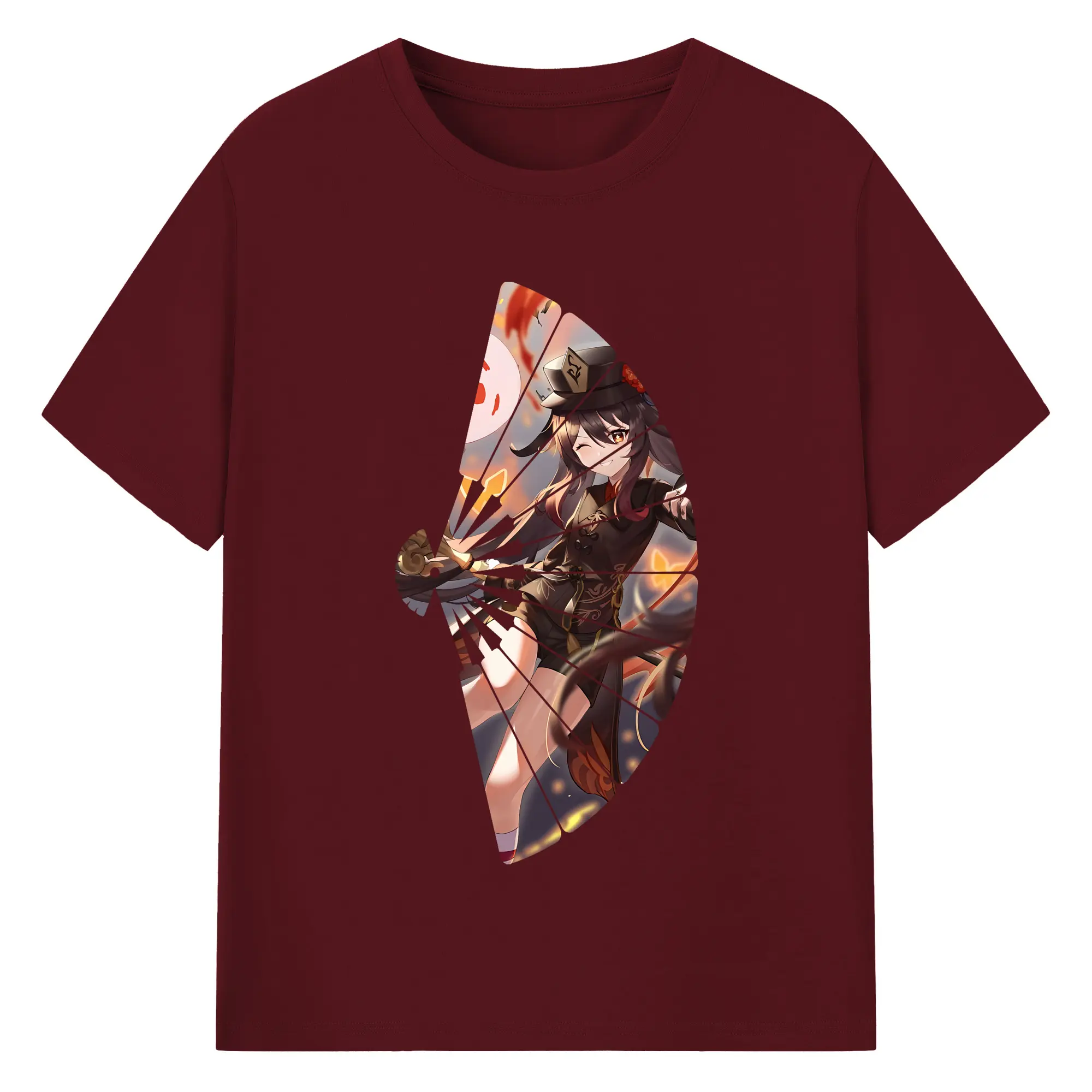 原 神 グッズ フータオ - 綿100% 半袖Tシャツ ・ バックプリント ・ 快適 通気性 ・ 日常使い 散歩 スポーツ用