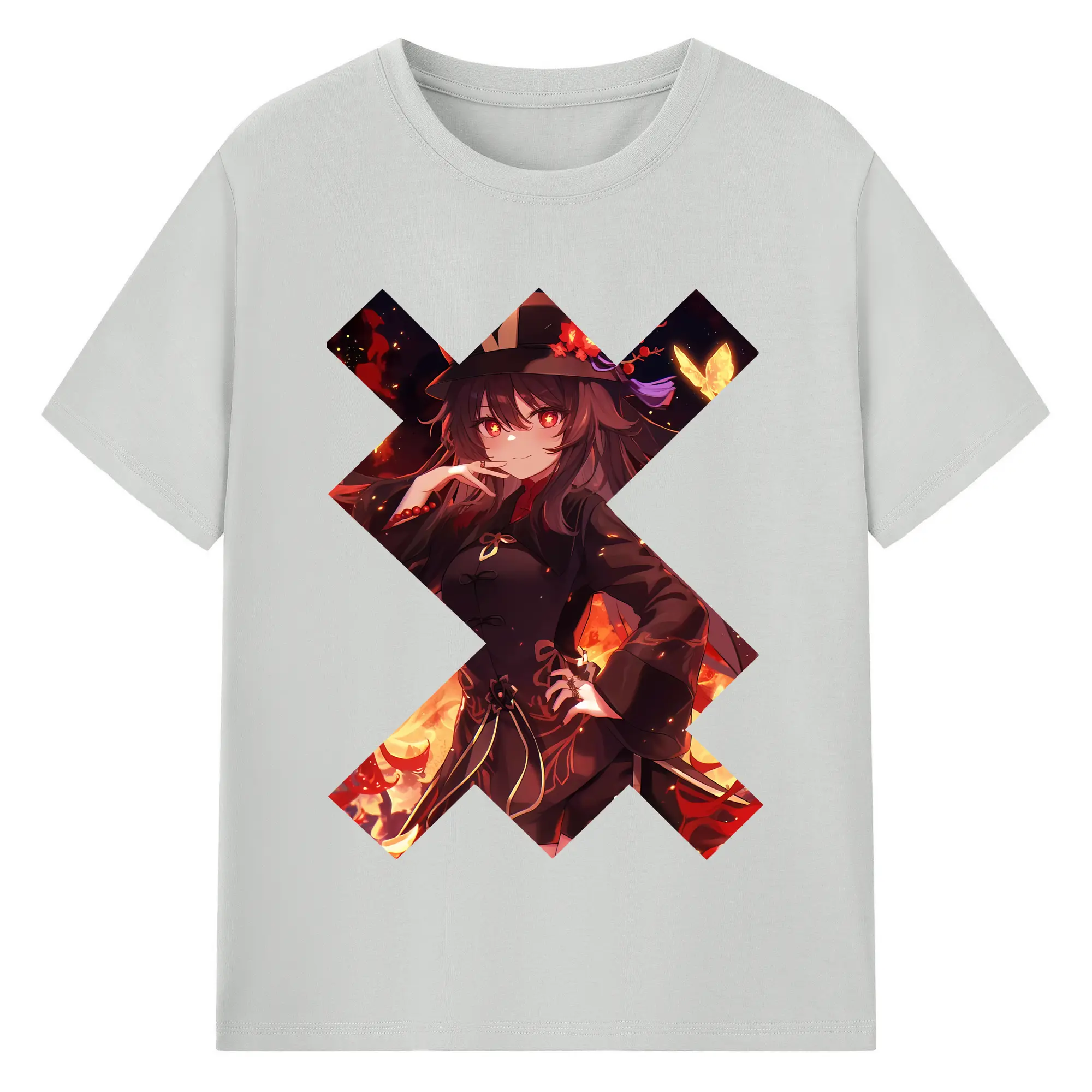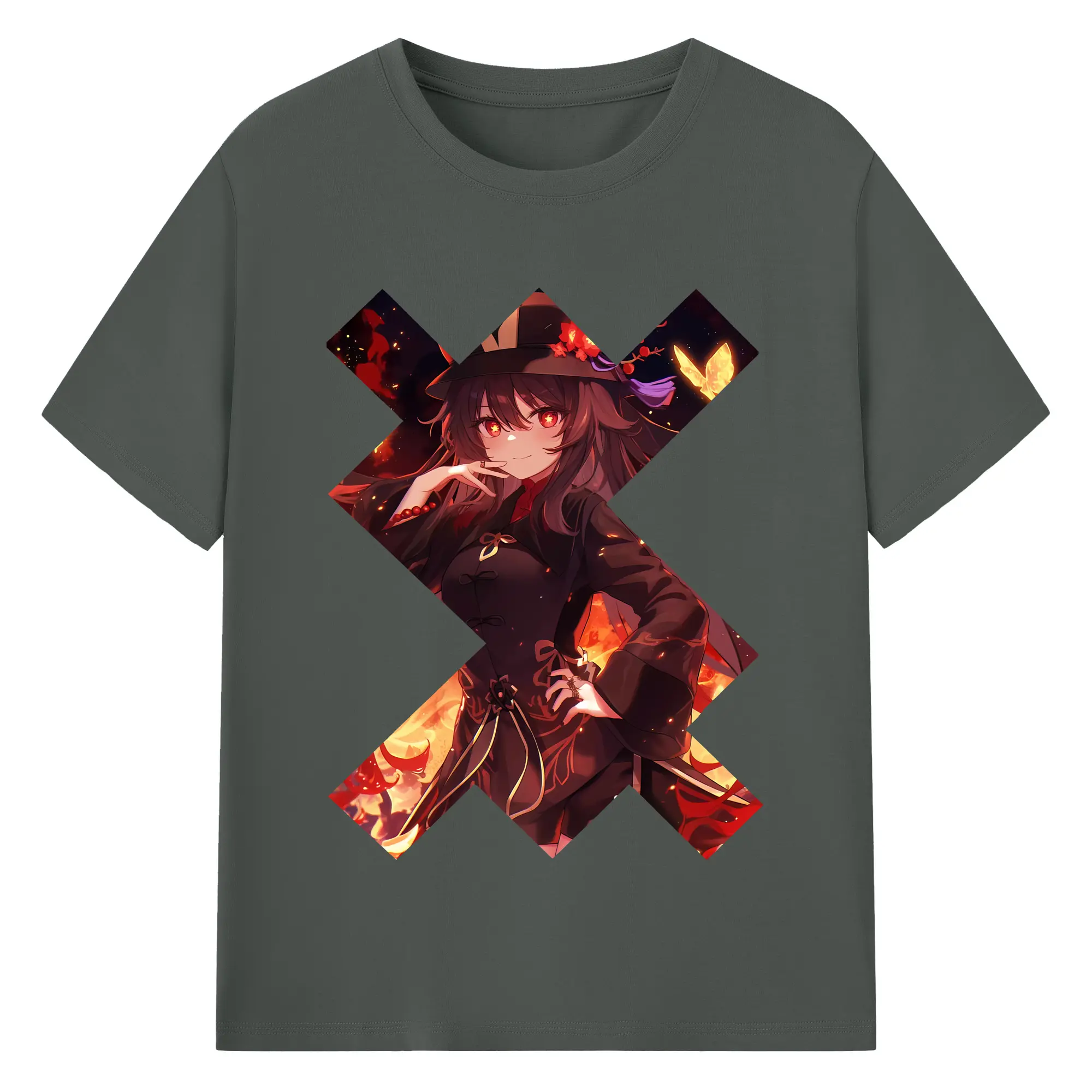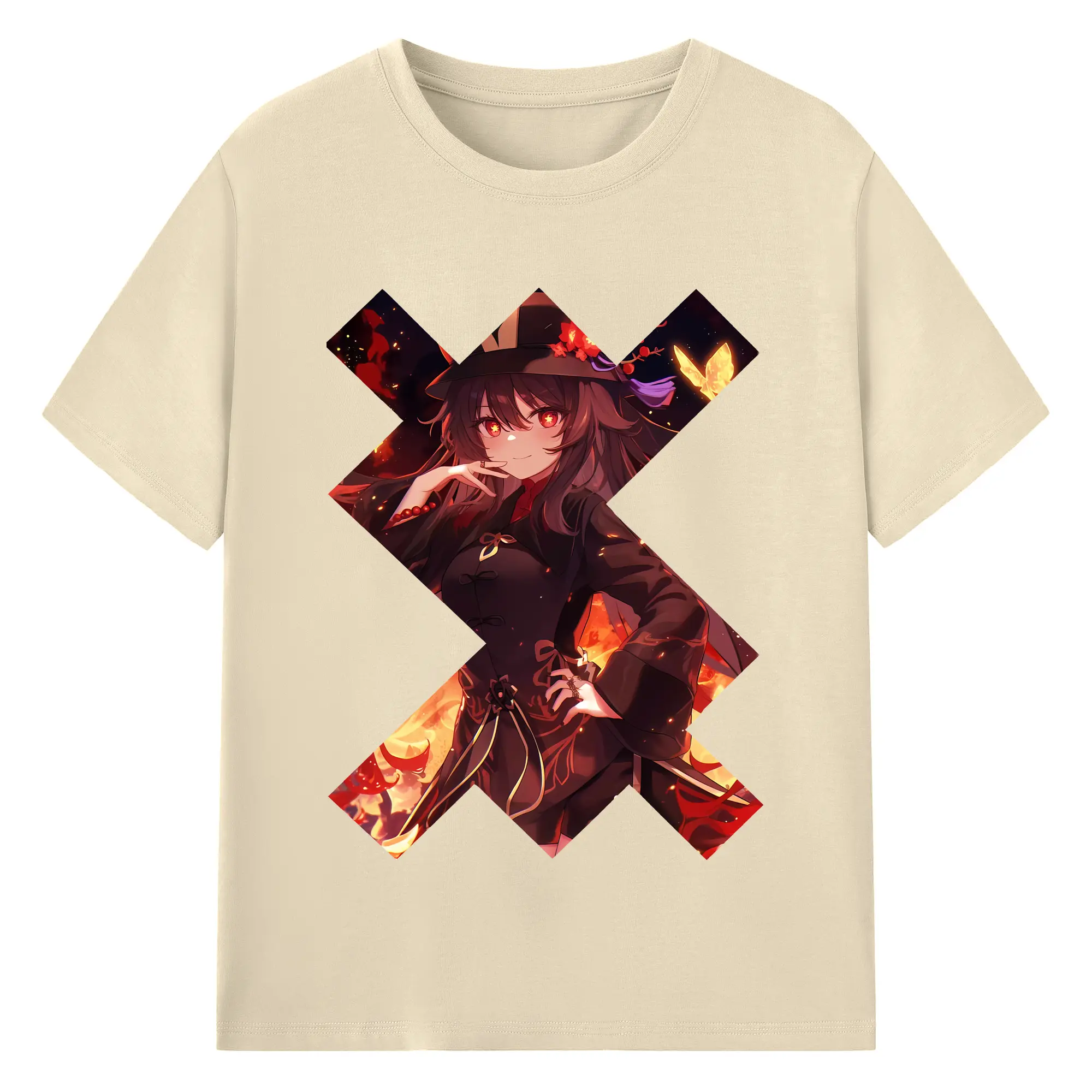 原 神 グッズ フータオ - 綿100% ヴィンテージ風 半袖Tシャツ ・ フロントプリント ・ 柔らか肌触り ・ 通気性 快適 ・ スポーツ カジュアル 外出用