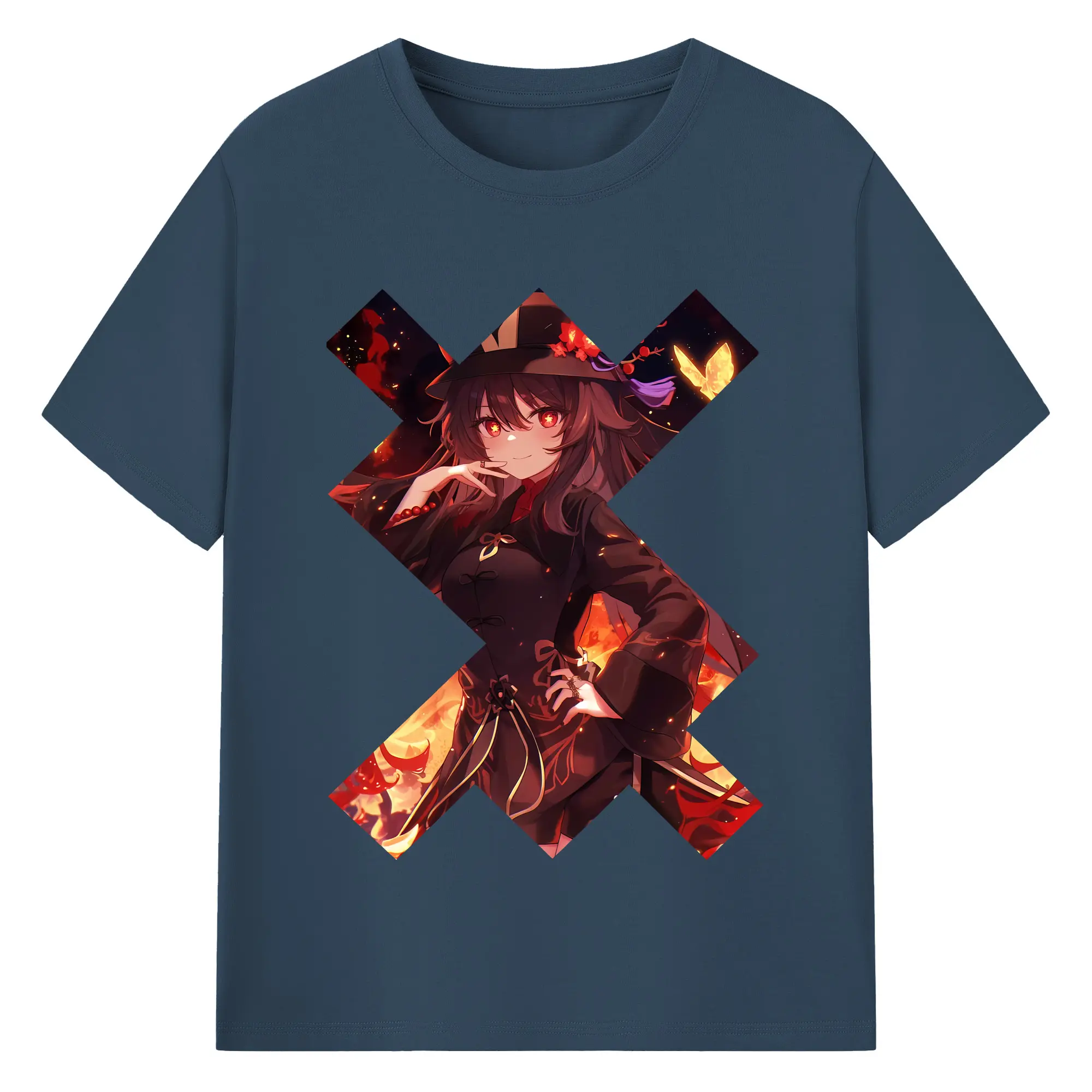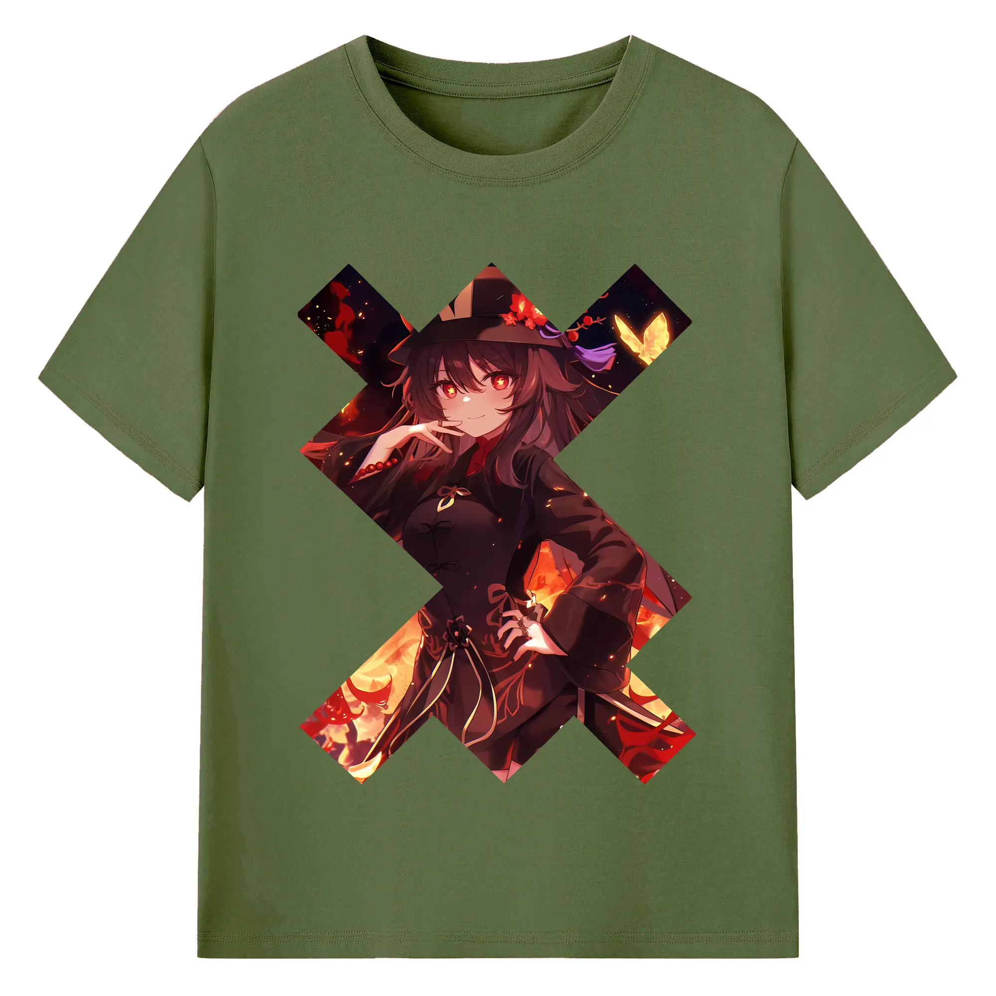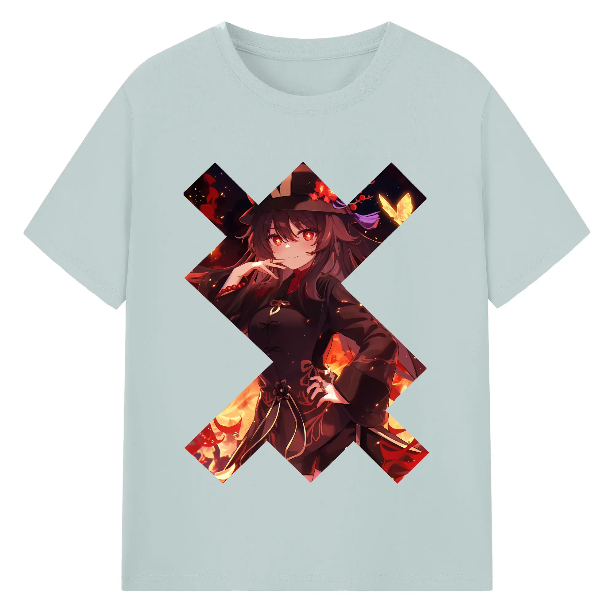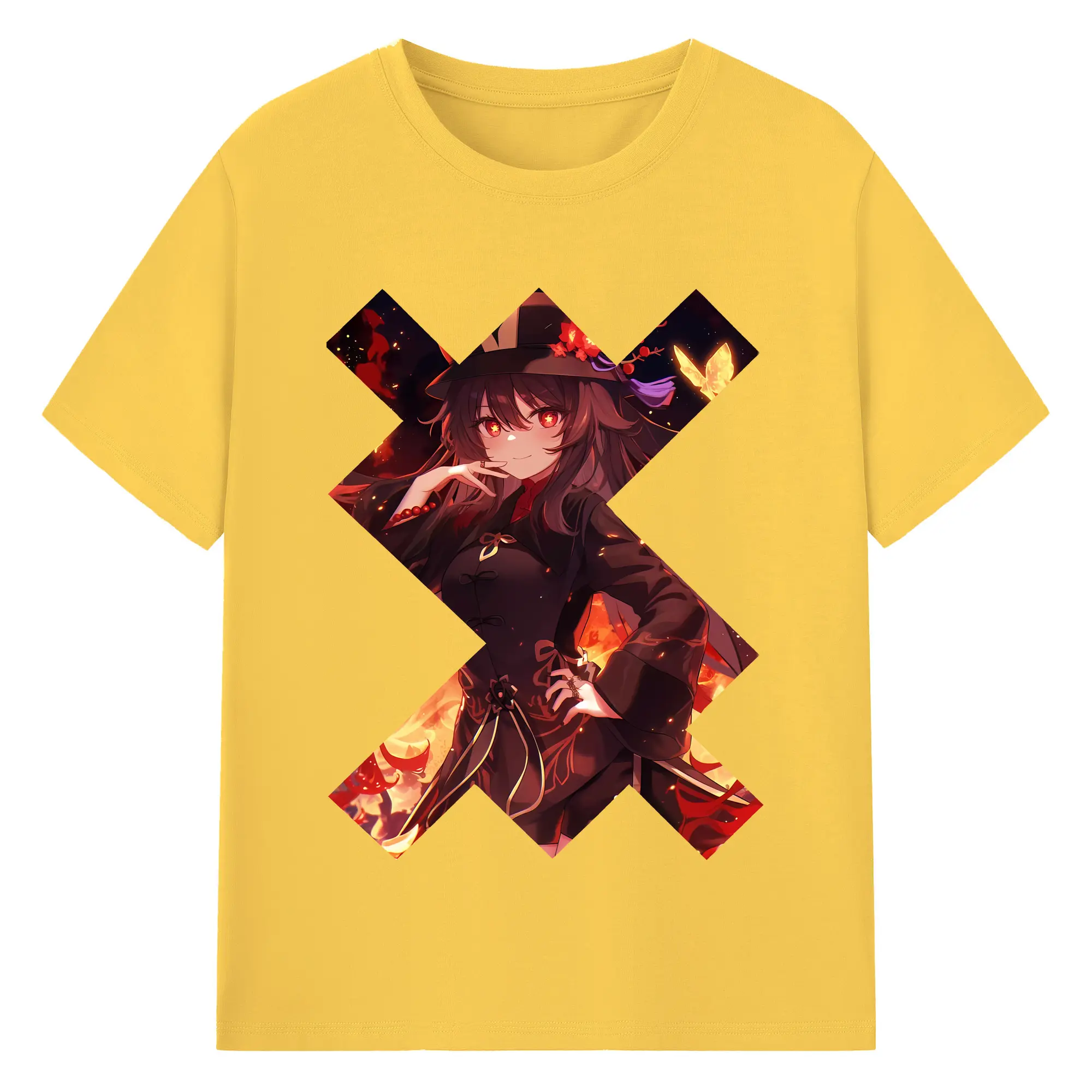原 神 グッズ フータオ - 綿100% ヴィンテージ風 半袖Tシャツ ・ フロントプリント ・ 柔らか肌触り ・ 通気性 快適 ・ スポーツ カジュアル 外出用