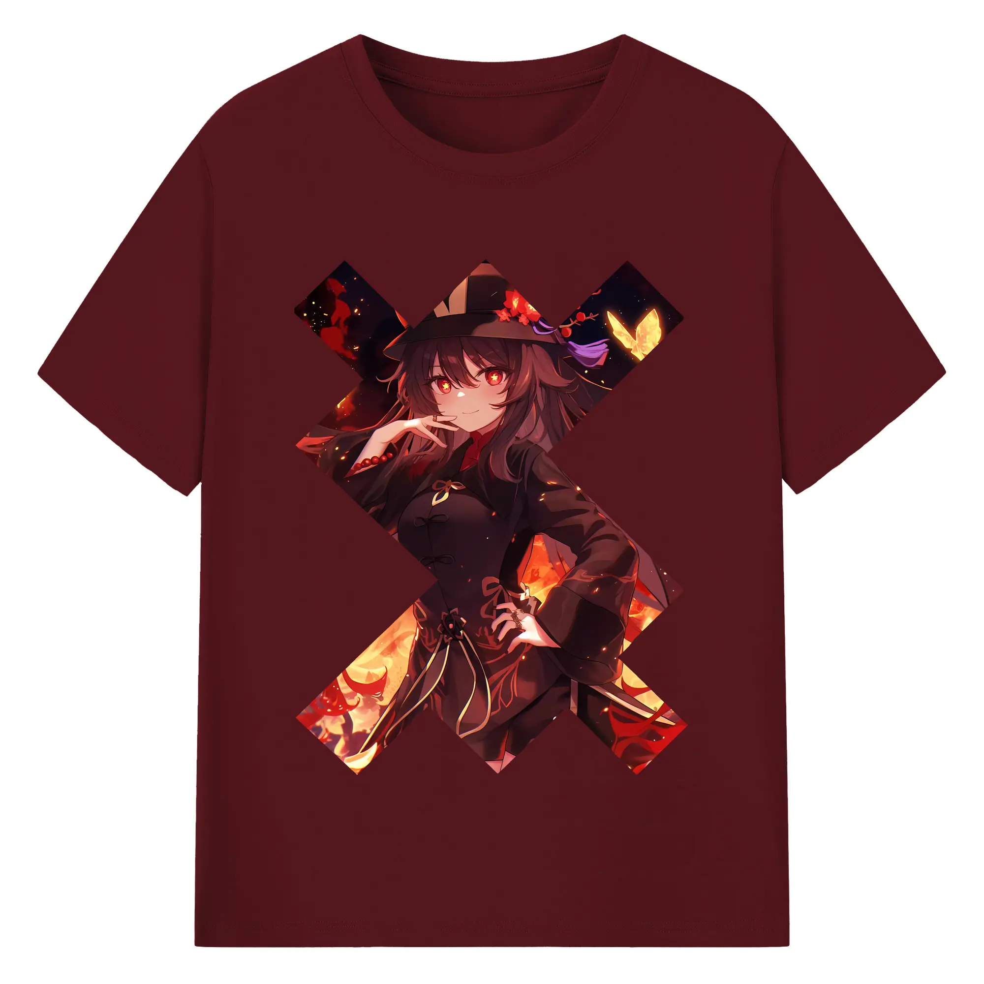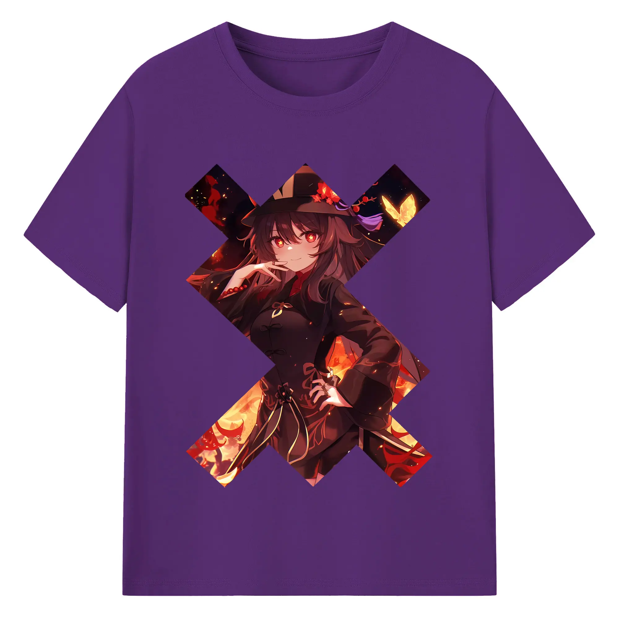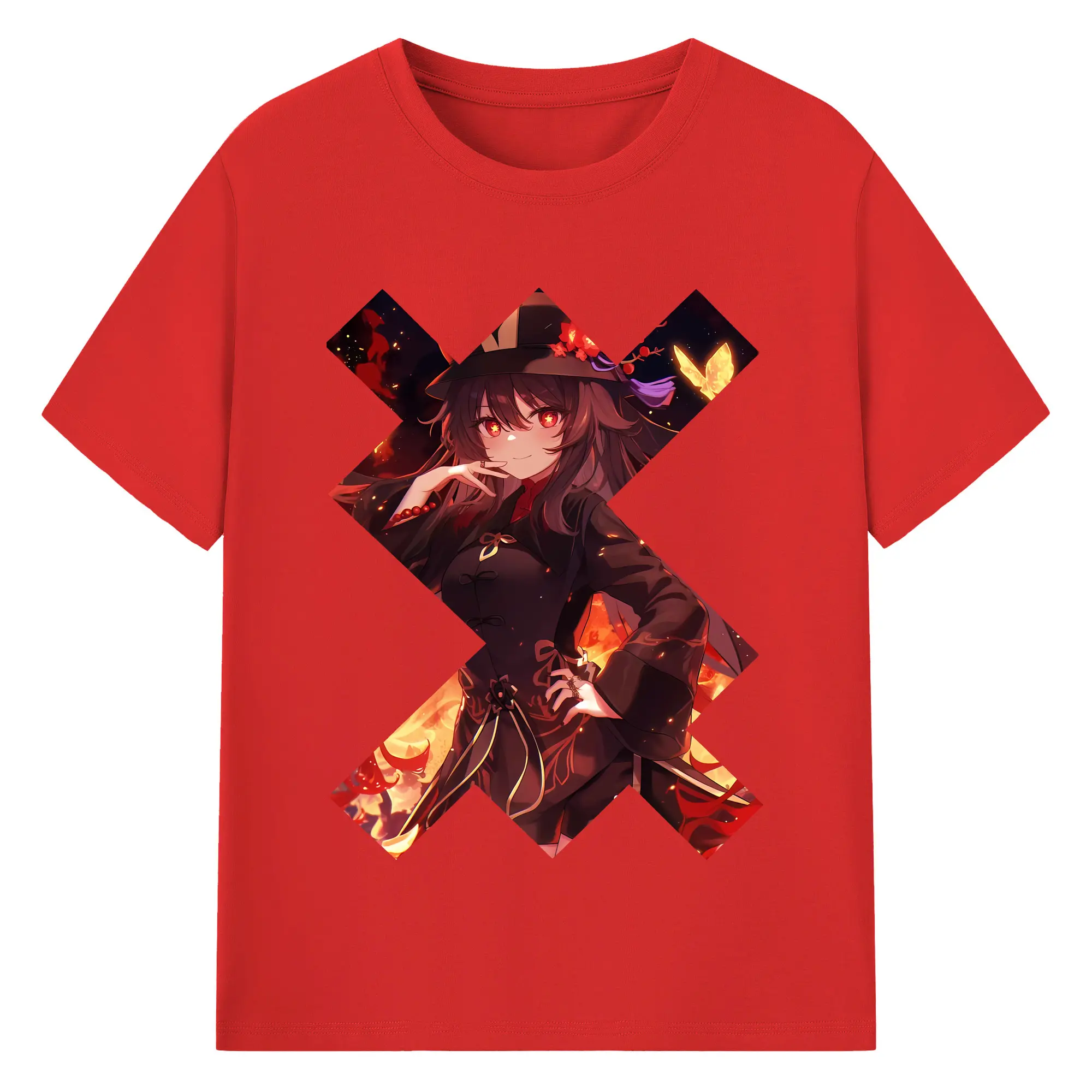 原 神 グッズ フータオ - 綿100% 半袖Tシャツ ・ バックプリント ・ 快適 通気性 ・ 日常使い 散歩 スポーツ用