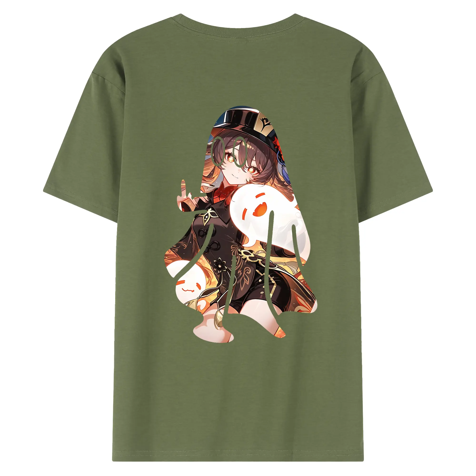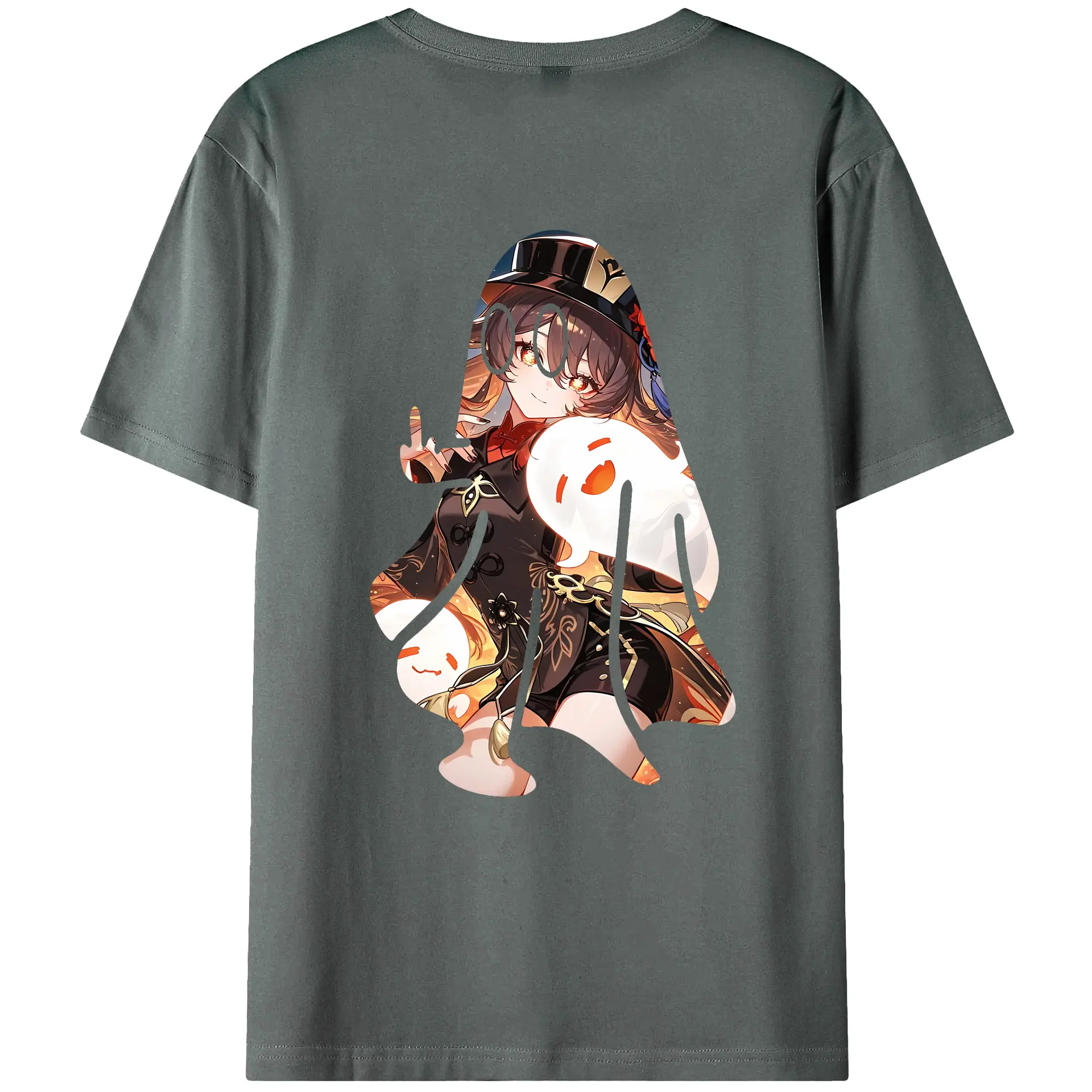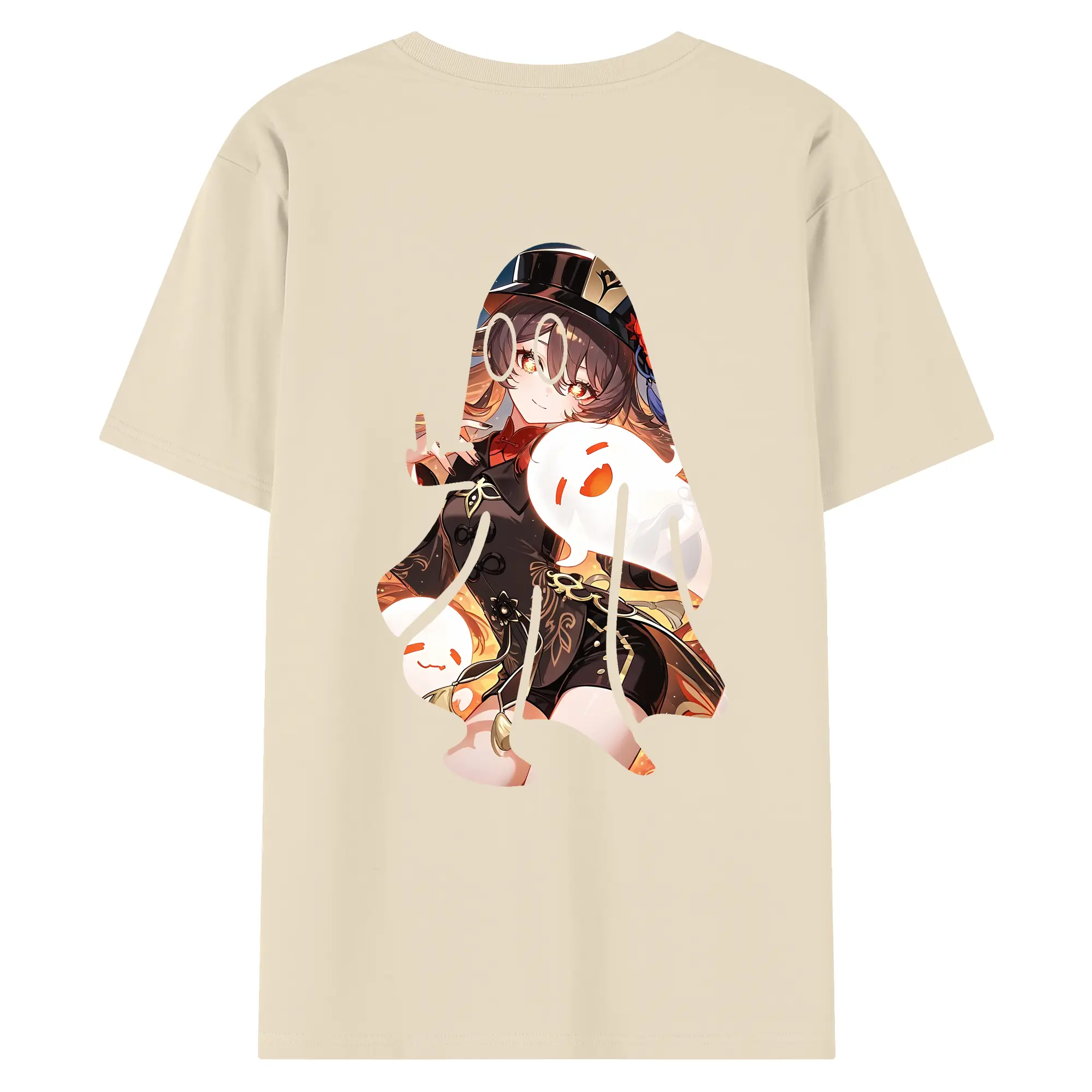 原 神 グッズ フータオ - 綿100% ヴィンテージ風 半袖Tシャツ ・ 背面プリント ・ 柔らか肌触り ・ 通気性 快適 ・ スポーツ カジュアル 外出用