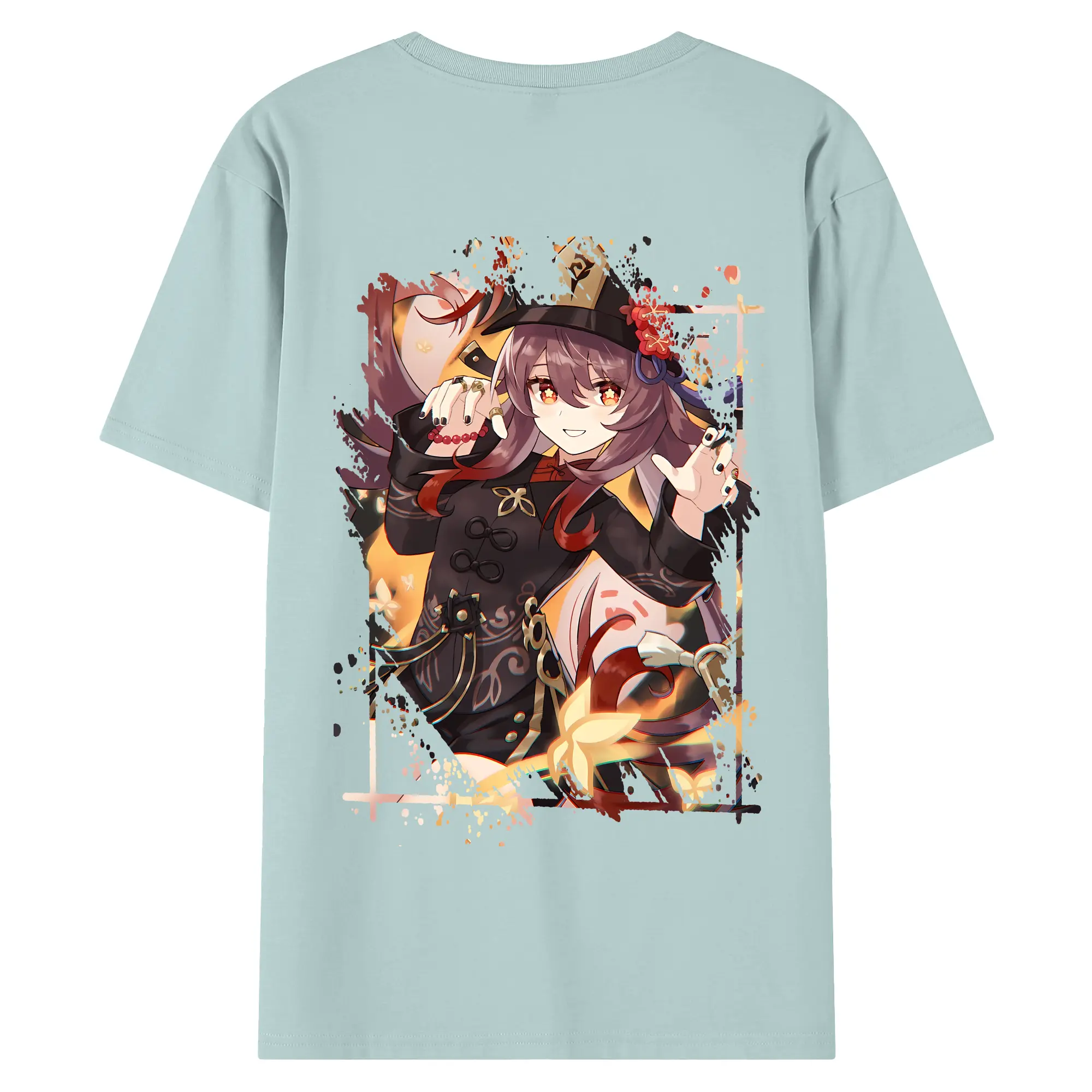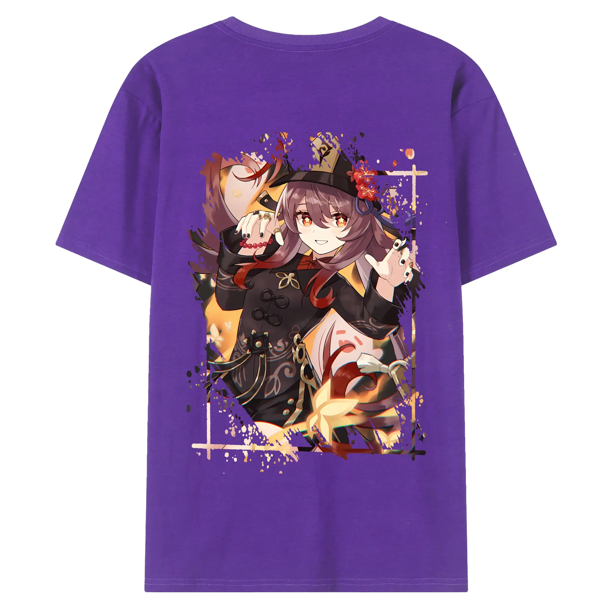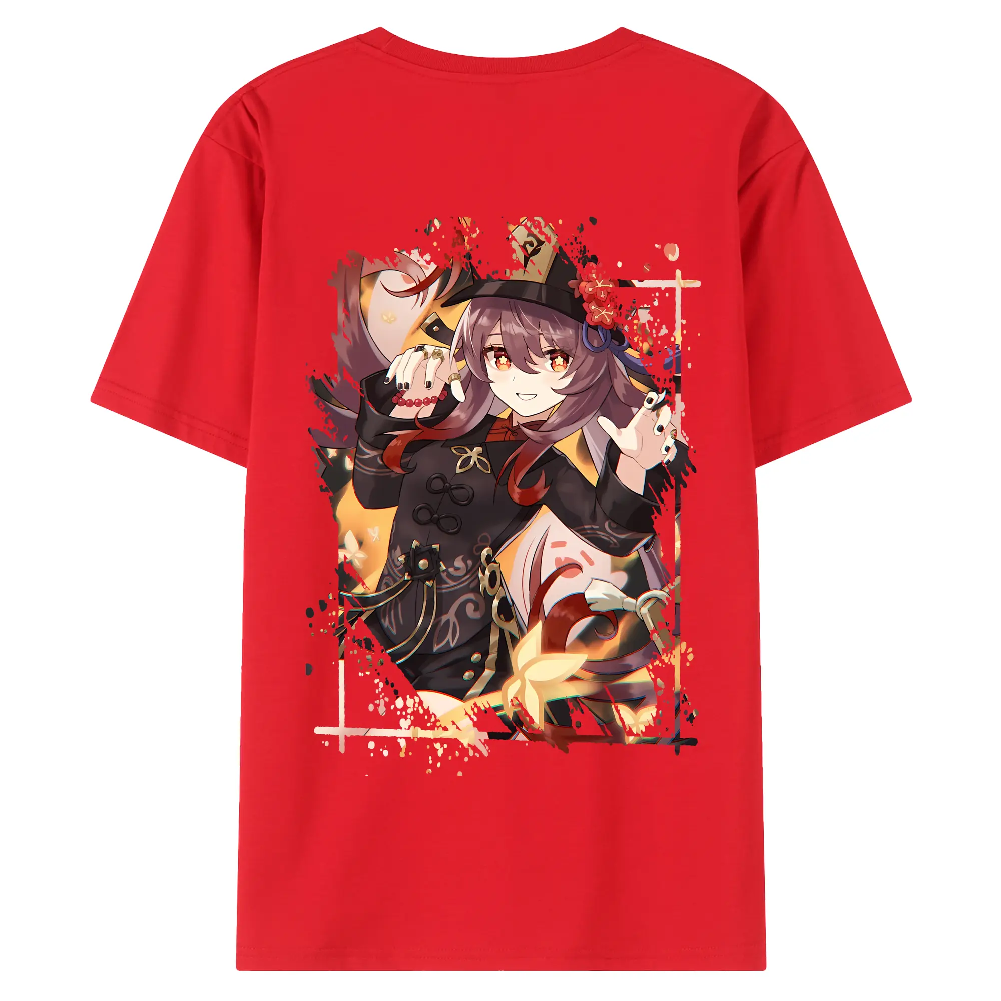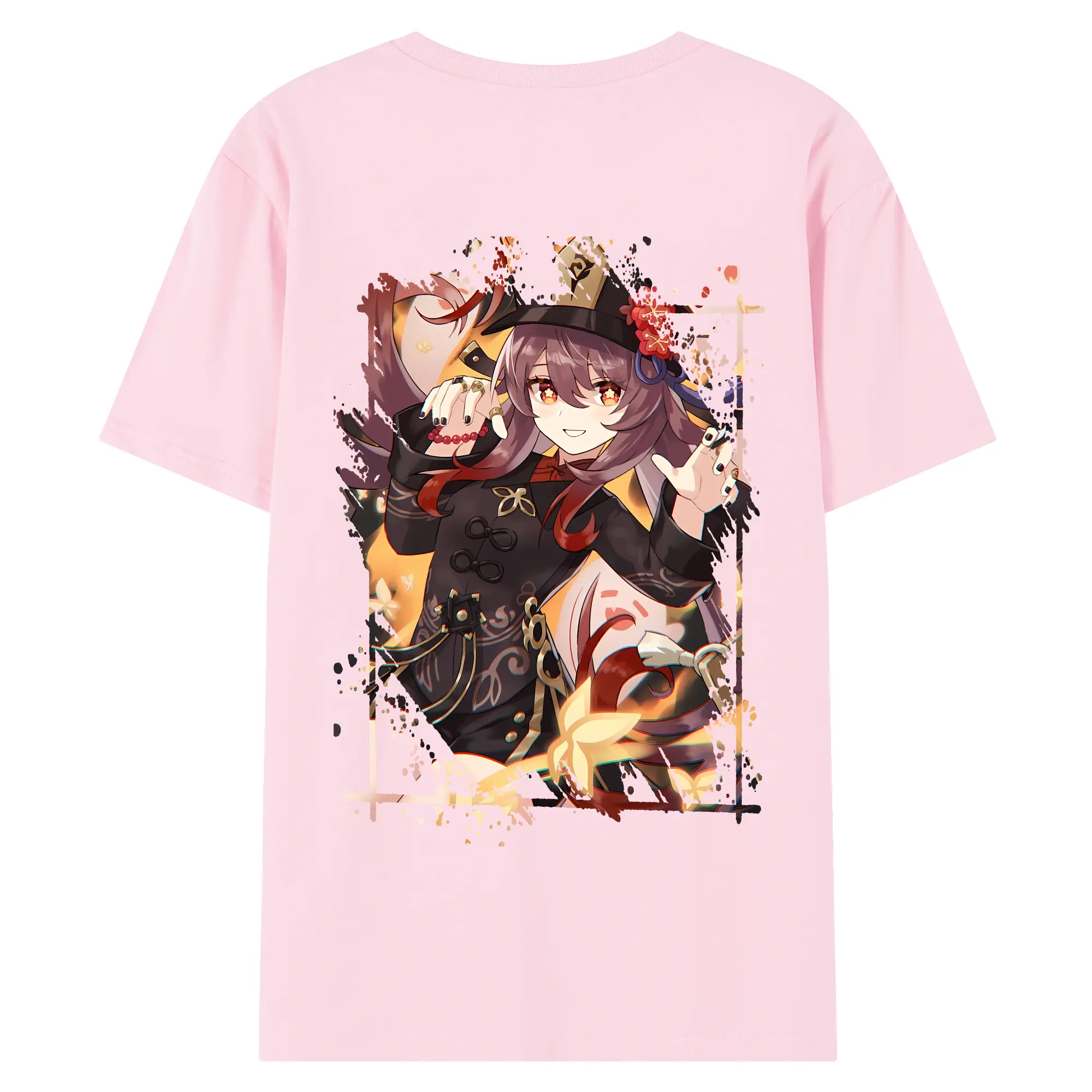 原 神 グッズ フータオ - 綿100% 半袖Tシャツ ・ フロントプリント ・ 快適 通気性 ・ 日常使い 散歩 スポーツ用
