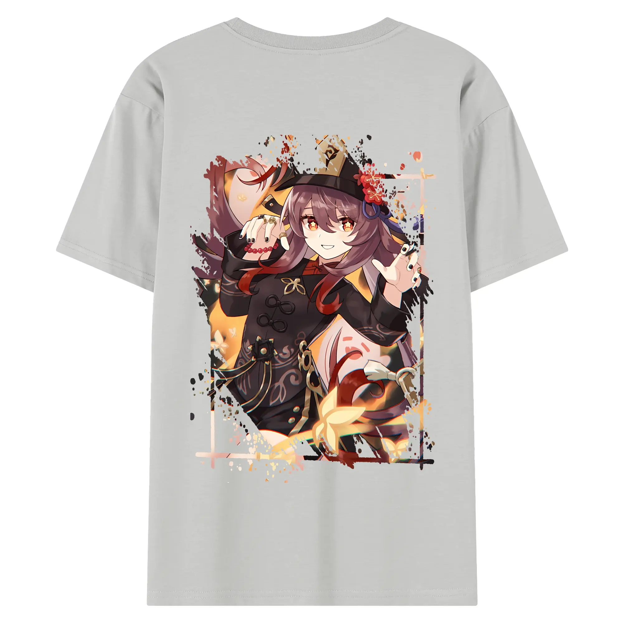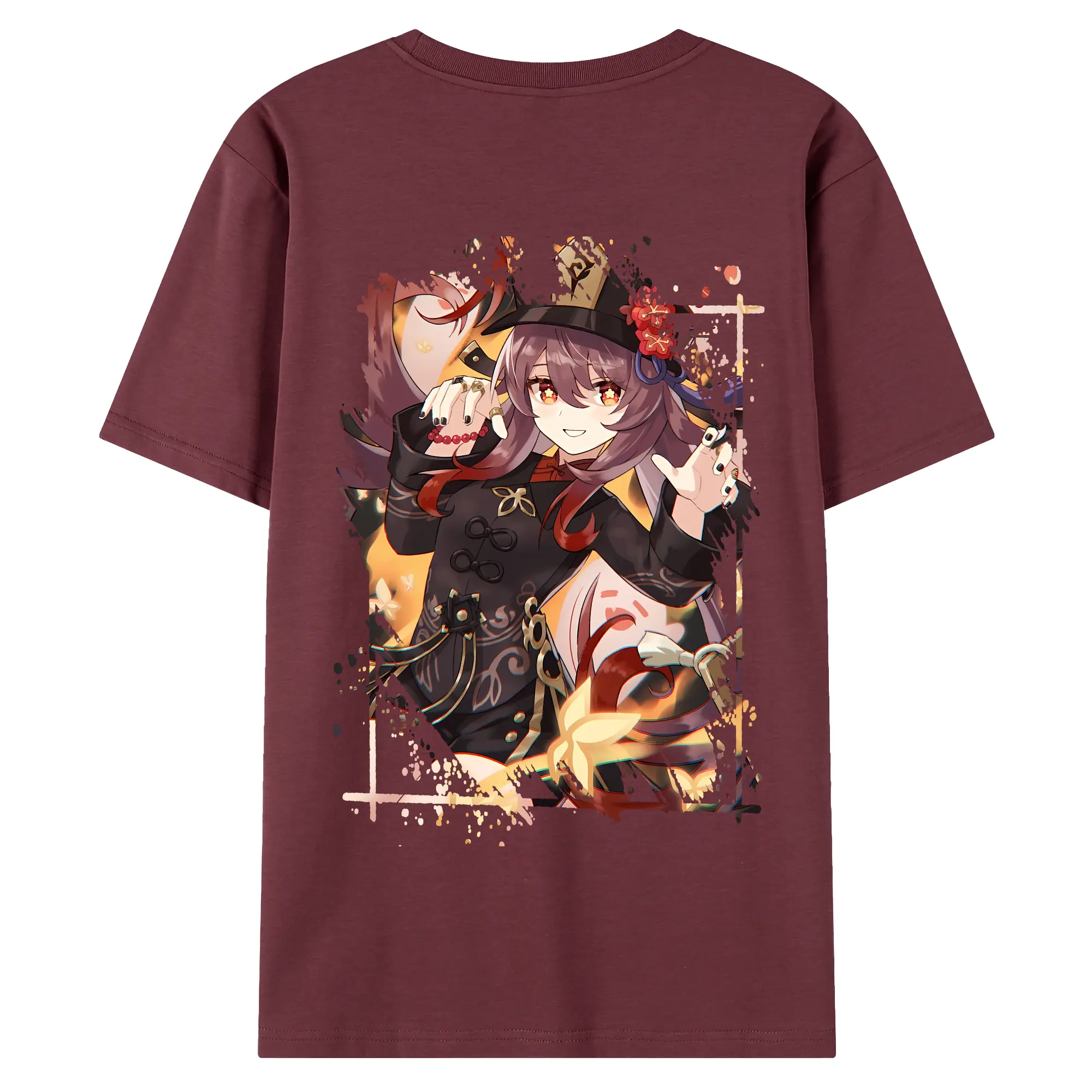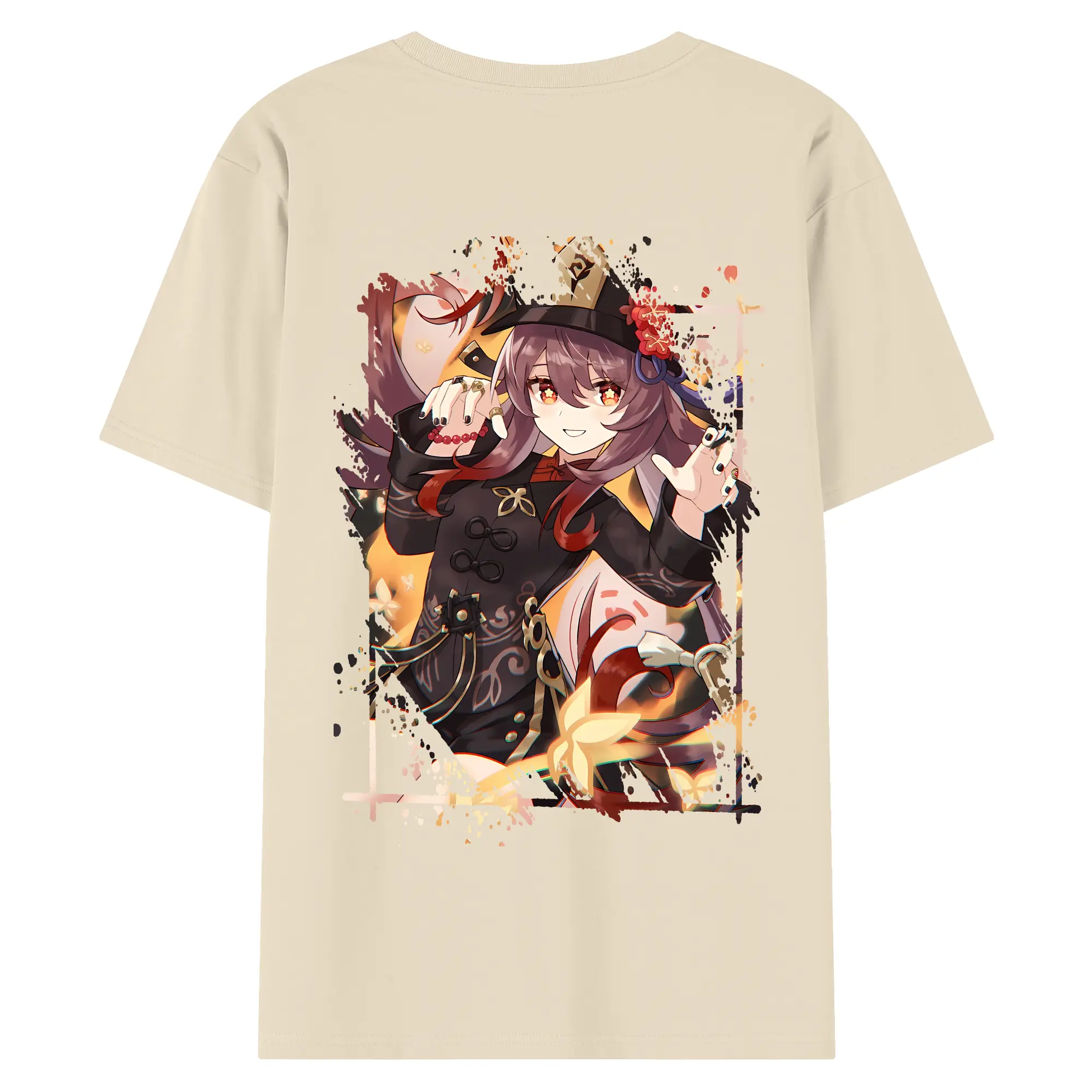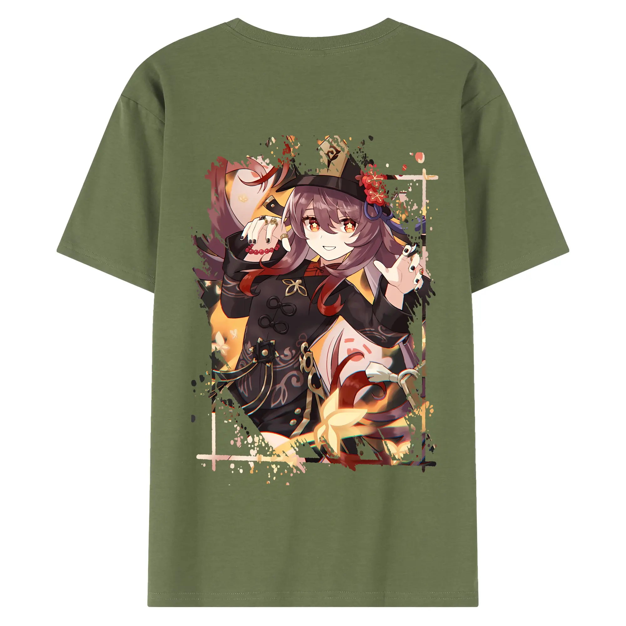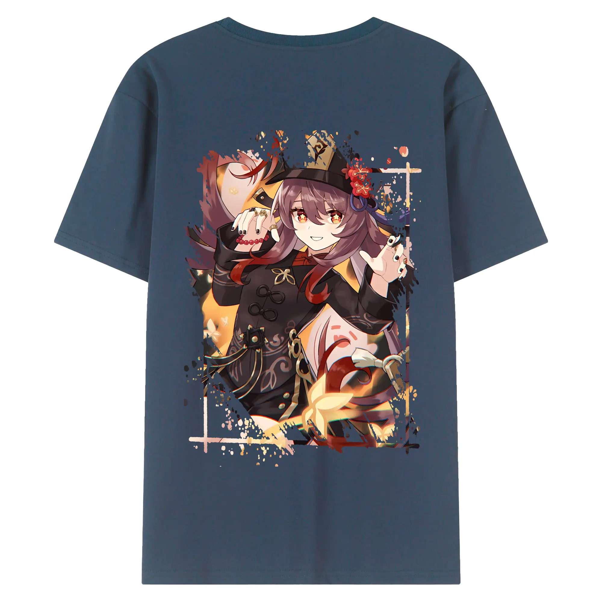 原 神 グッズ フータオ - 綿100% 半袖Tシャツ ・ フロントプリント ・ 快適 通気性 ・ 日常使い 散歩 スポーツ用
