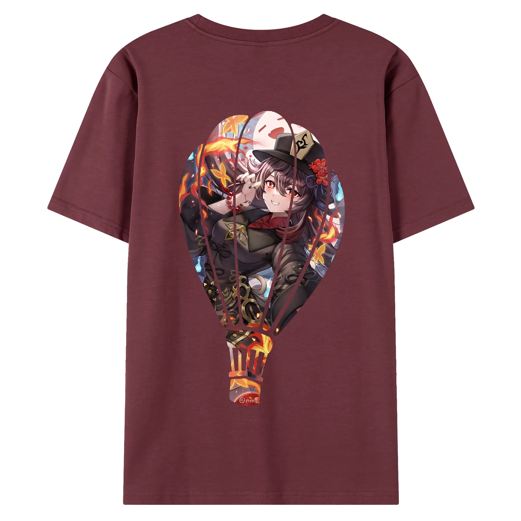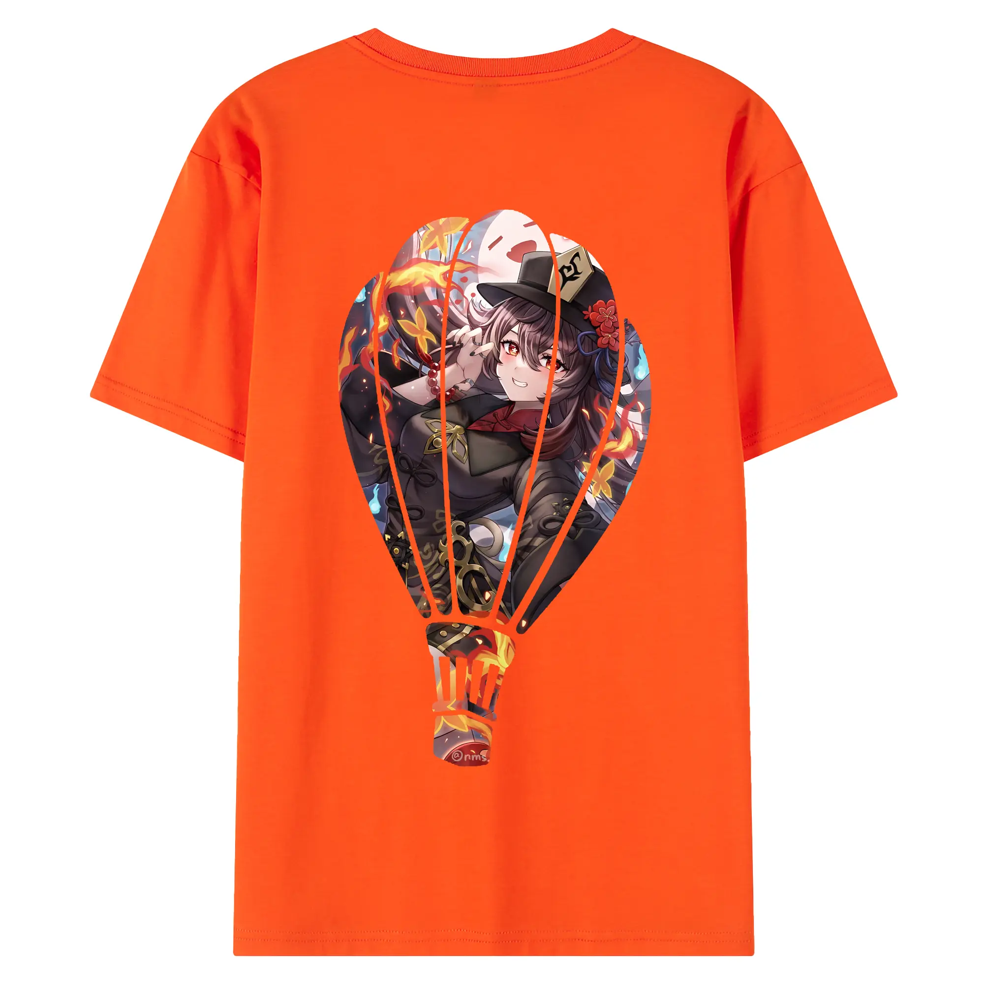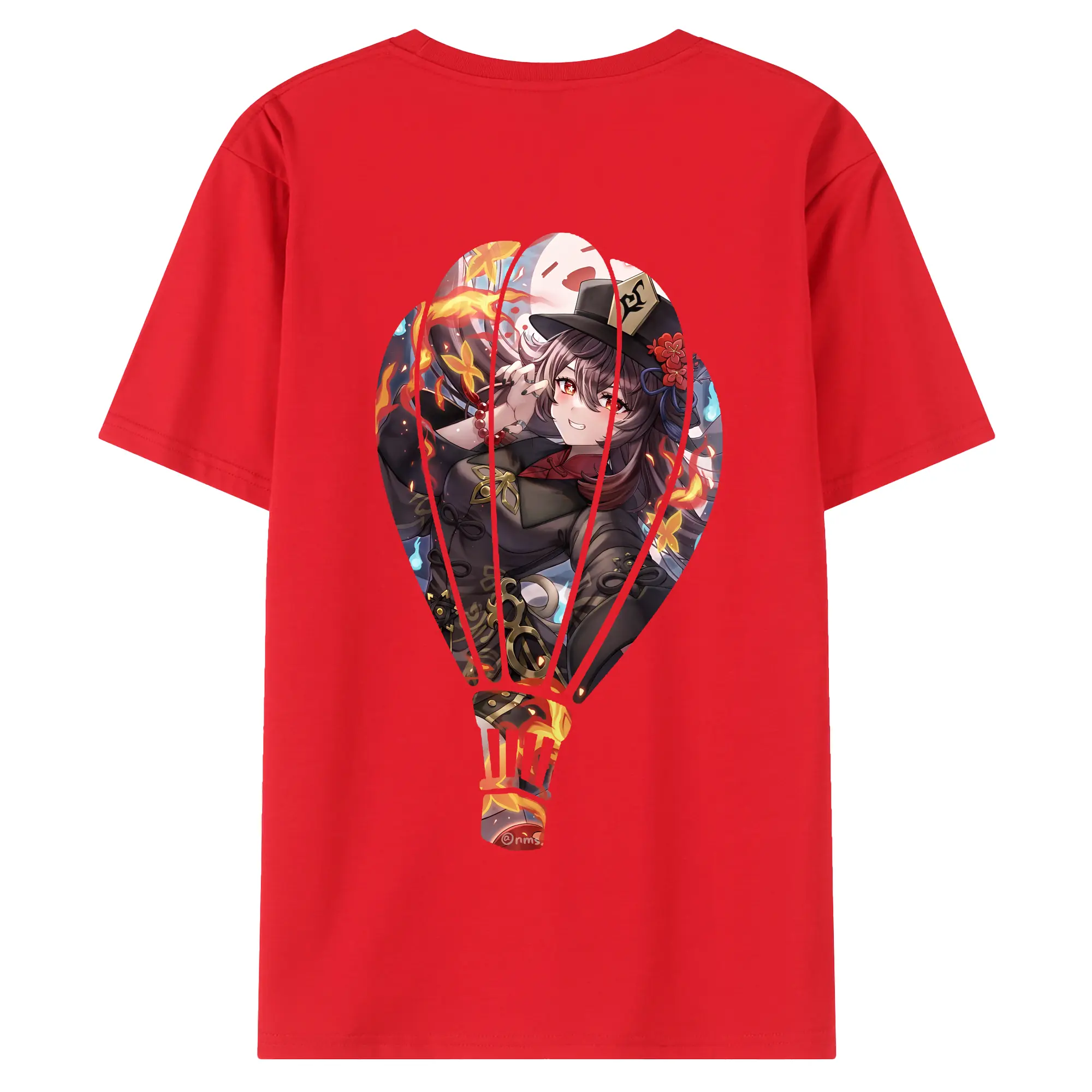 原 神 グッズ フータオ - 綿100% 半袖Tシャツ ・ フロントプリント ・ 快適 通気性 ・ 日常使い 散歩 スポーツ用