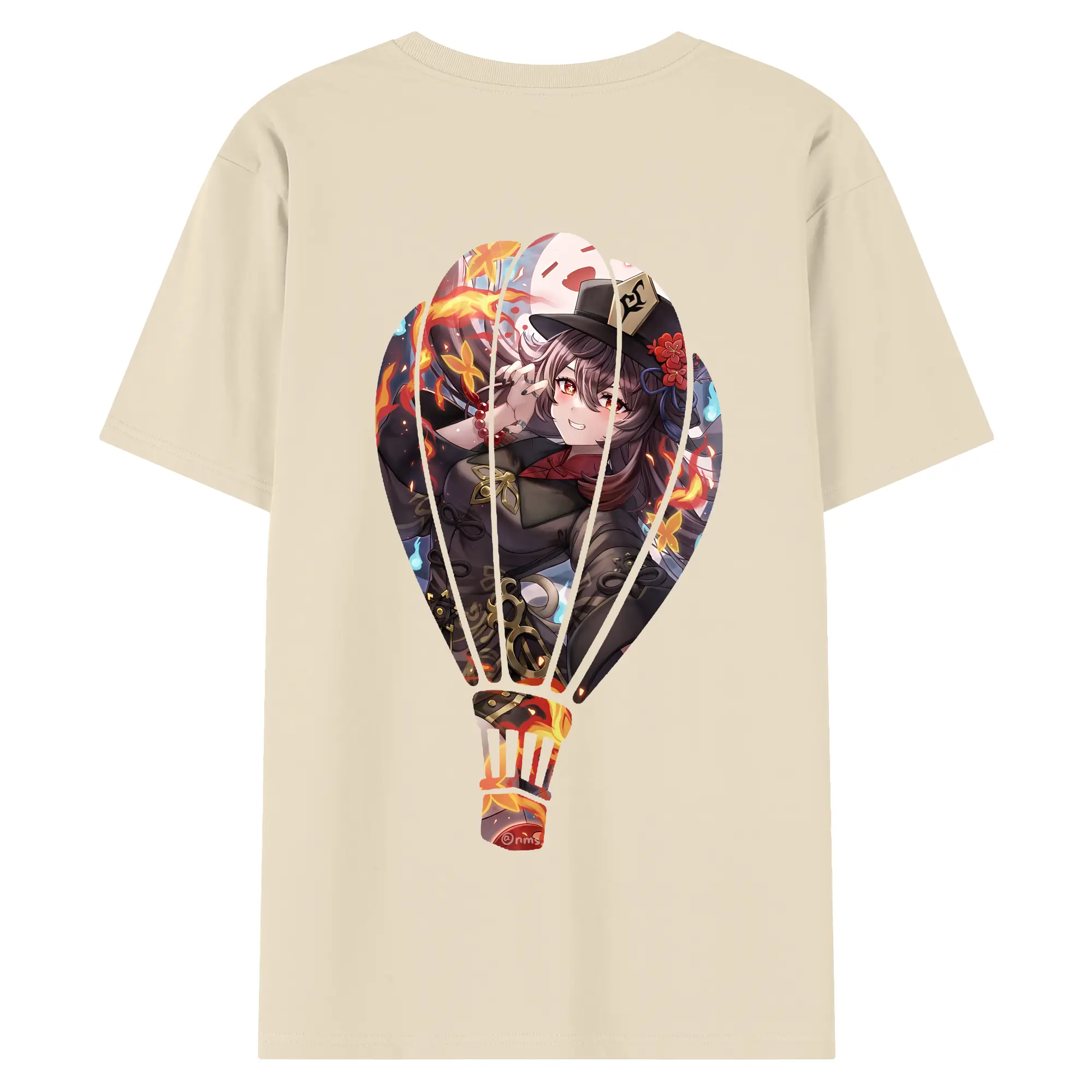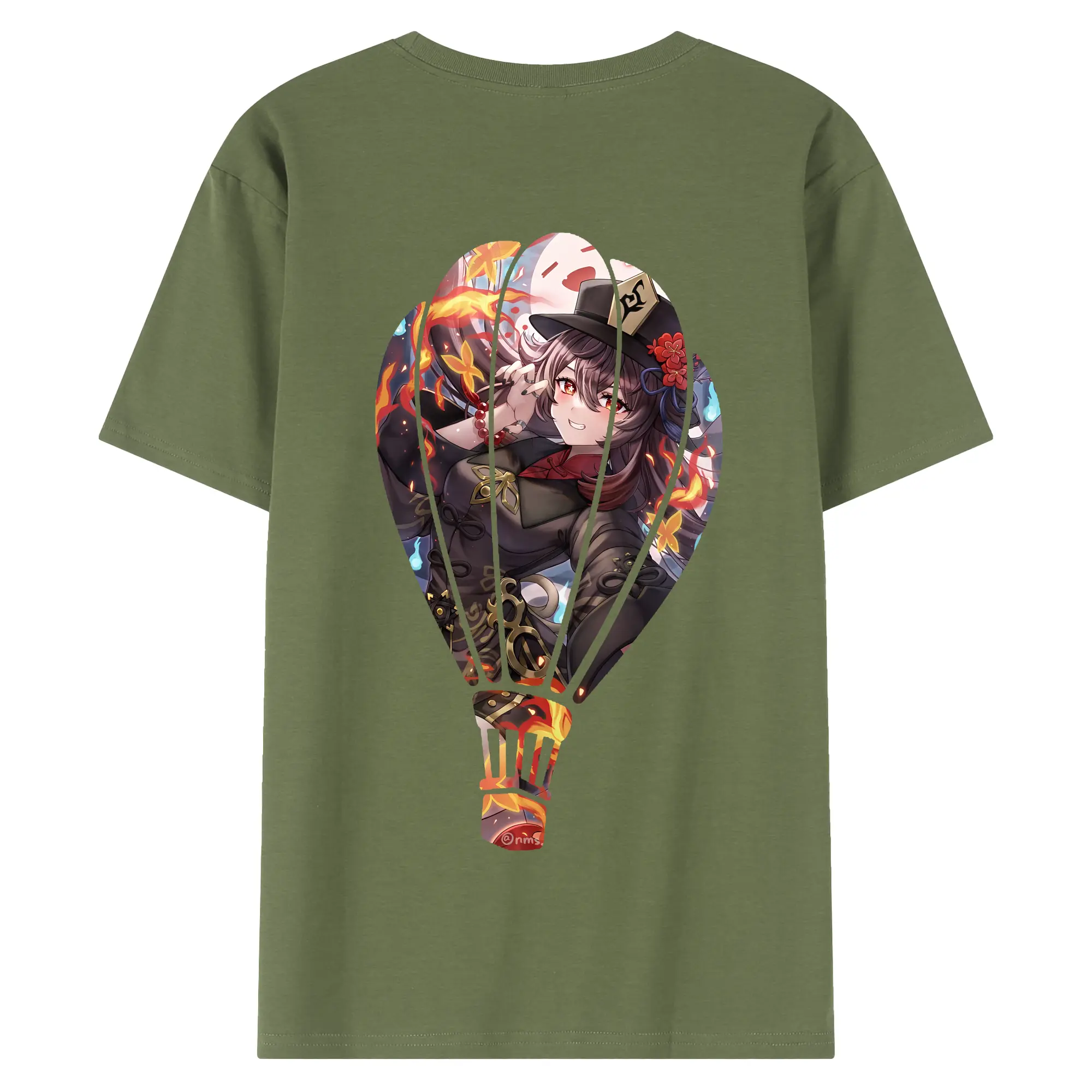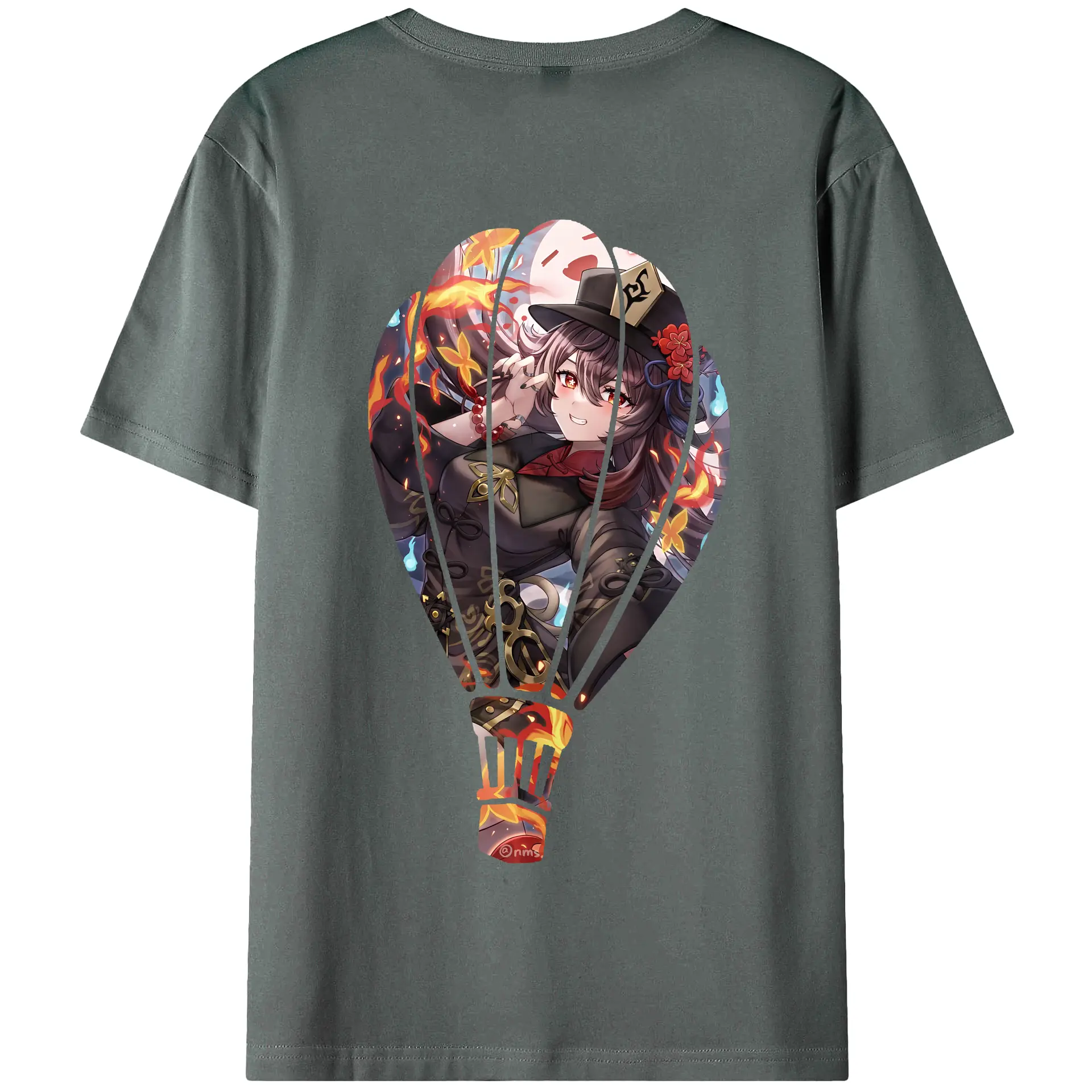 原 神 グッズ フータオ - 綿100% 半袖Tシャツ ・ フロントプリント ・ 快適 通気性 ・ 日常使い 散歩 スポーツ用