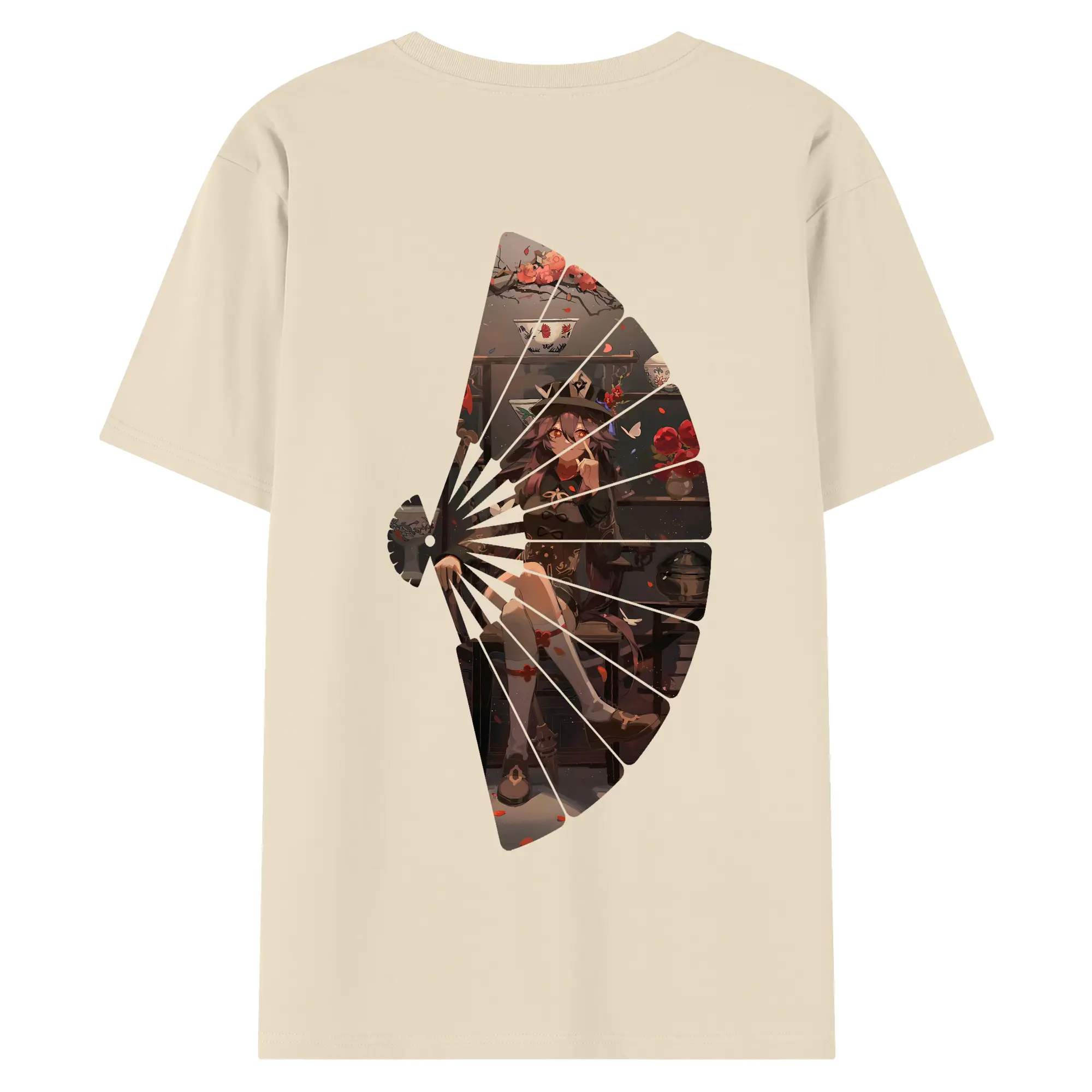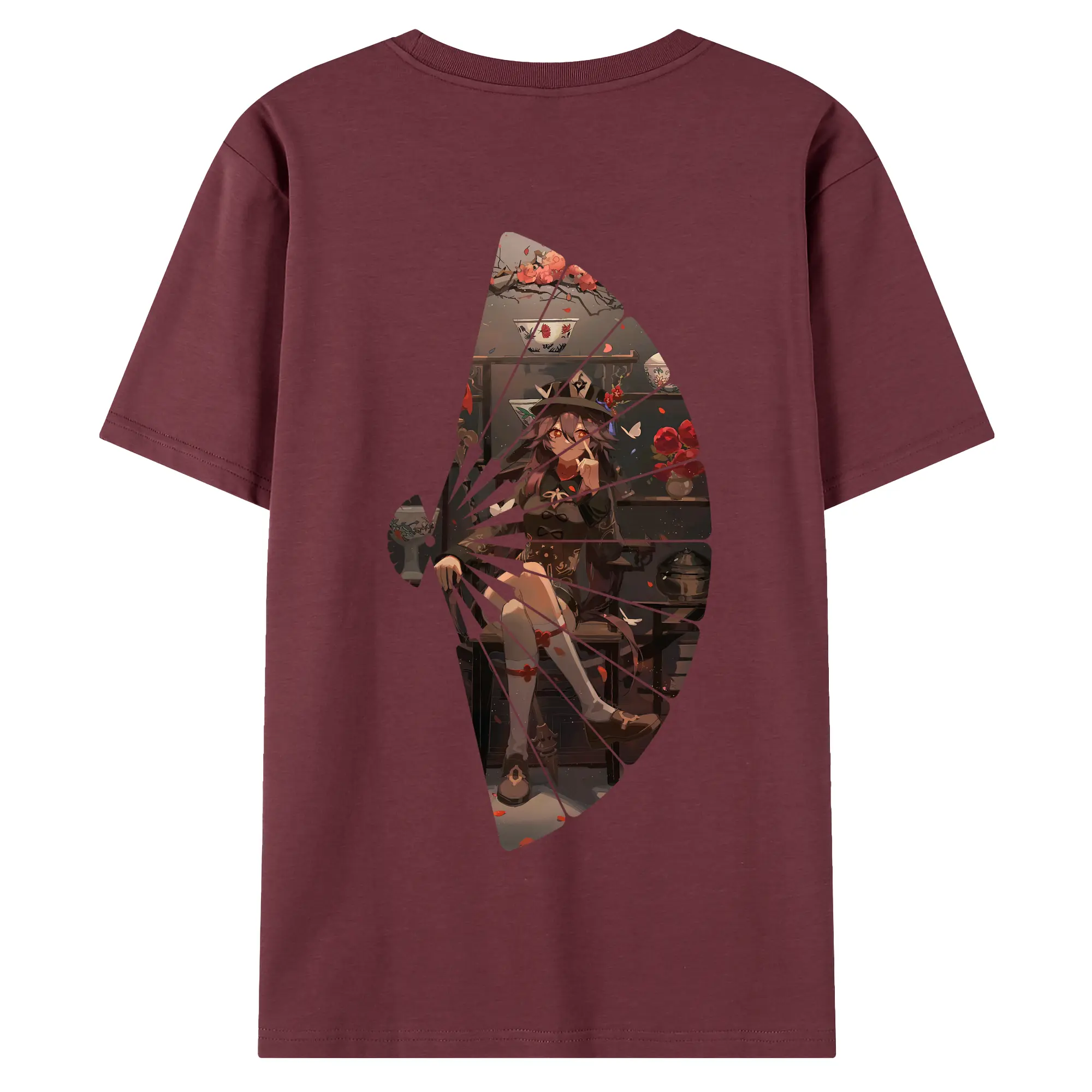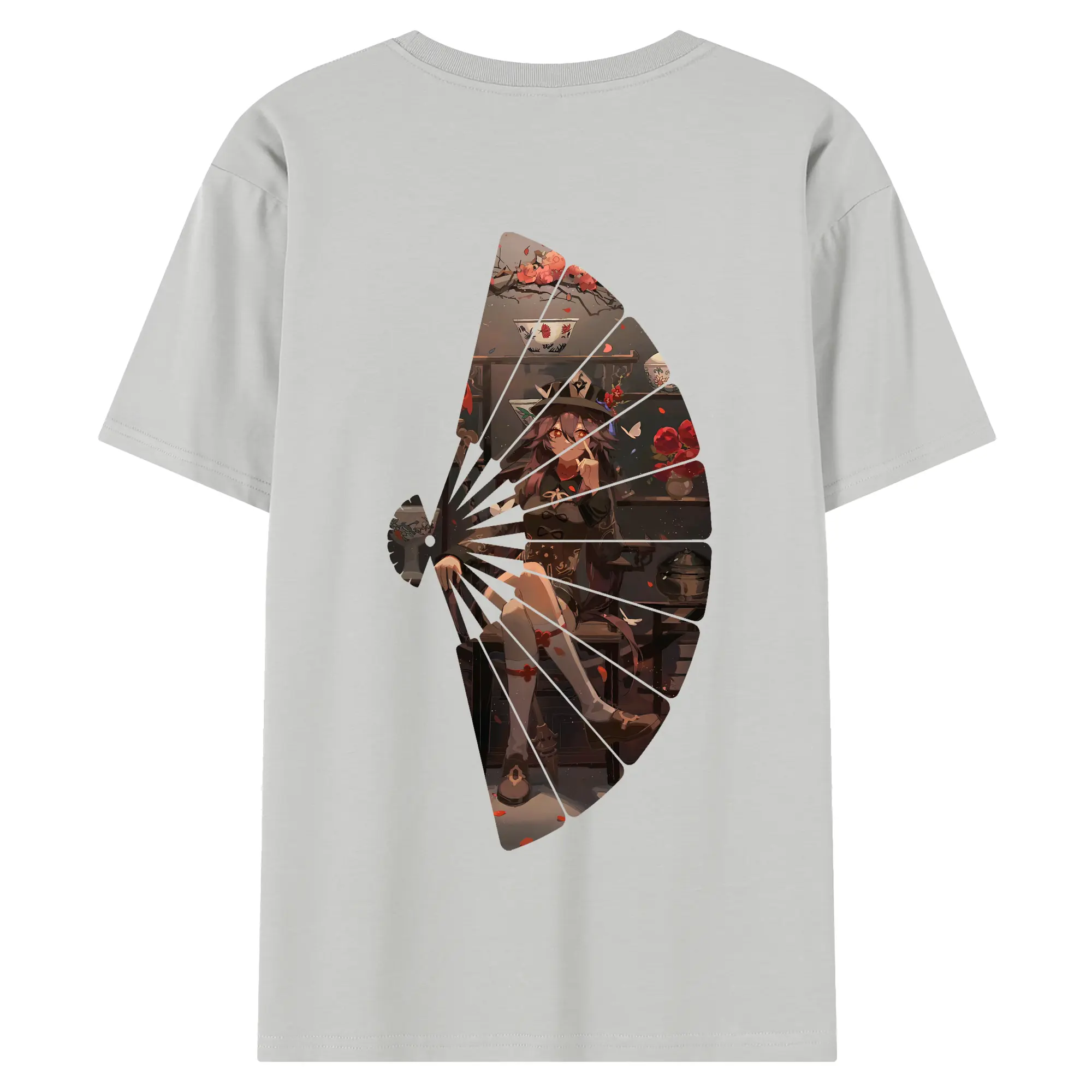 原 神 グッズ フータオ - 綿100% ヴィンテージ風 半袖Tシャツ ・ 背面プリント ・ 柔らか肌触り ・ 通気性 快適 ・ スポーツ カジュアル 外出用