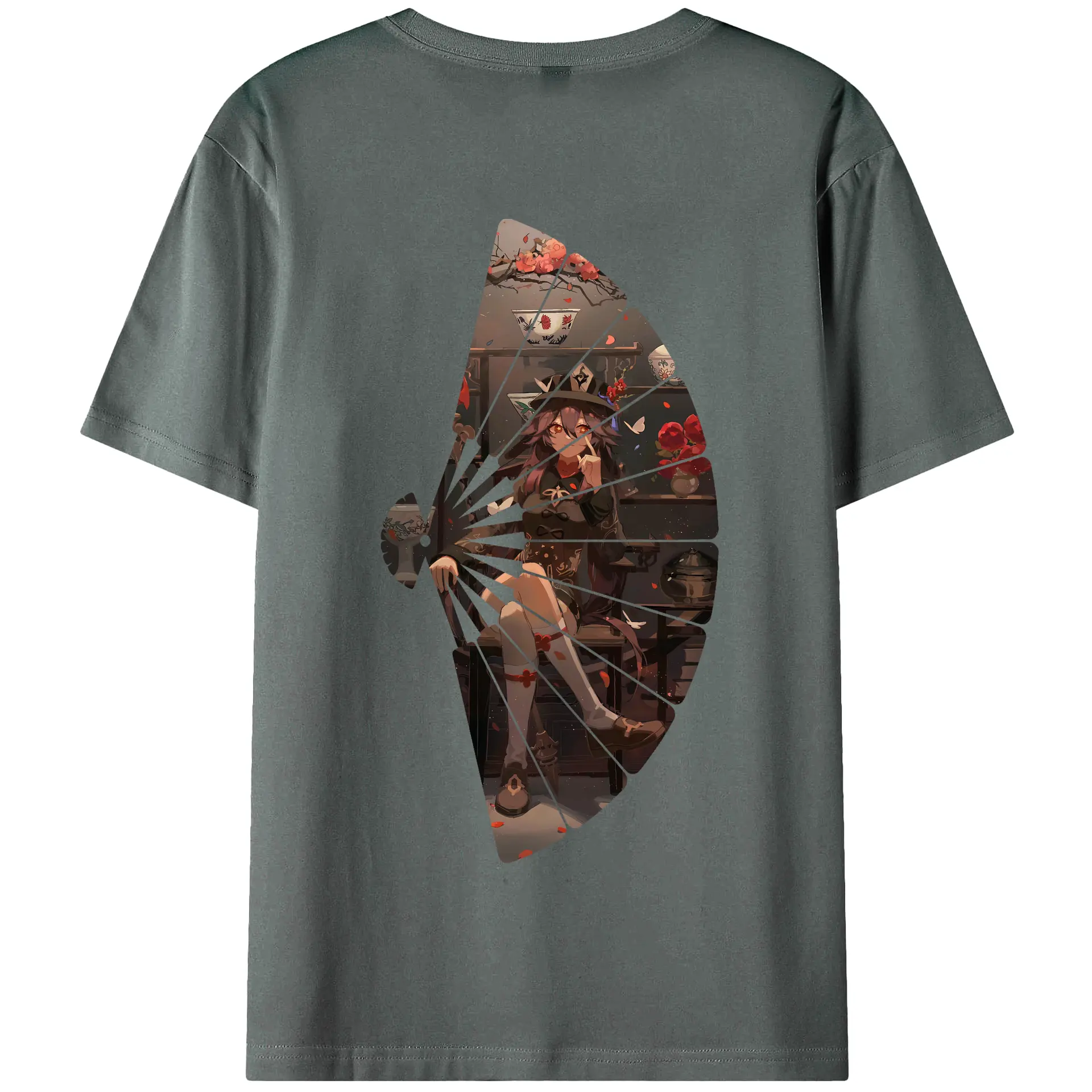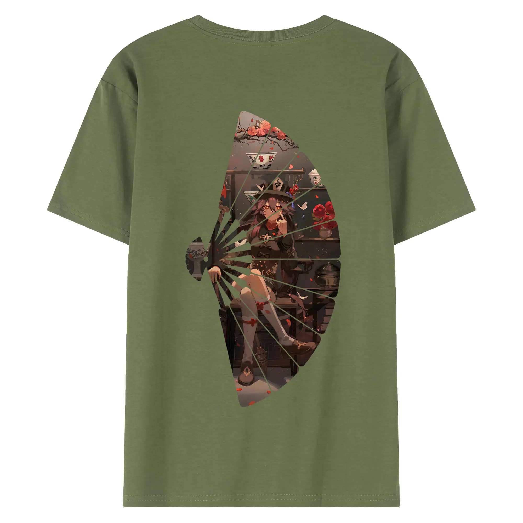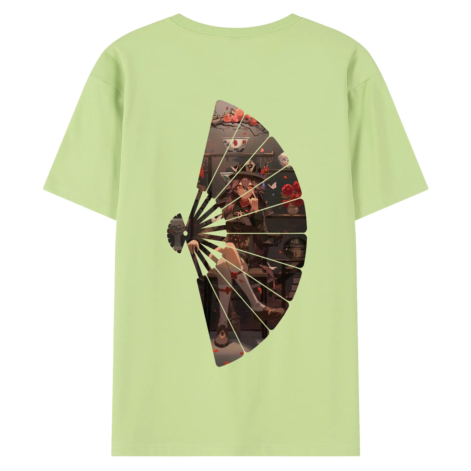 原 神 グッズ フータオ - 綿100% ヴィンテージ風 半袖Tシャツ ・ 背面プリント ・ 柔らか肌触り ・ 通気性 快適 ・ スポーツ カジュアル 外出用