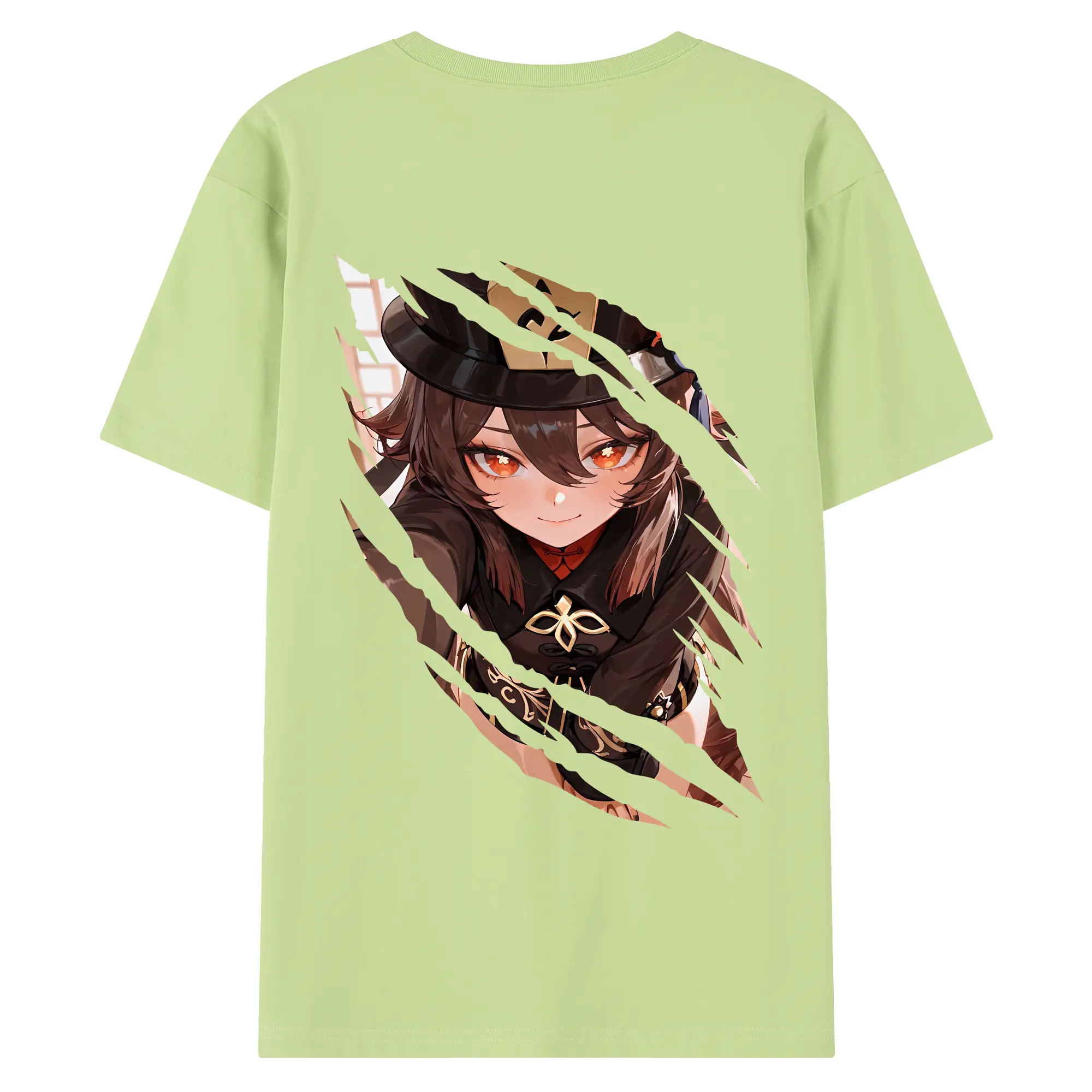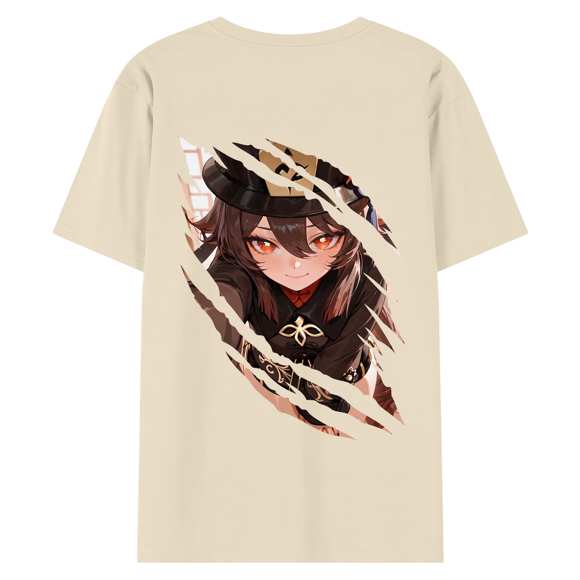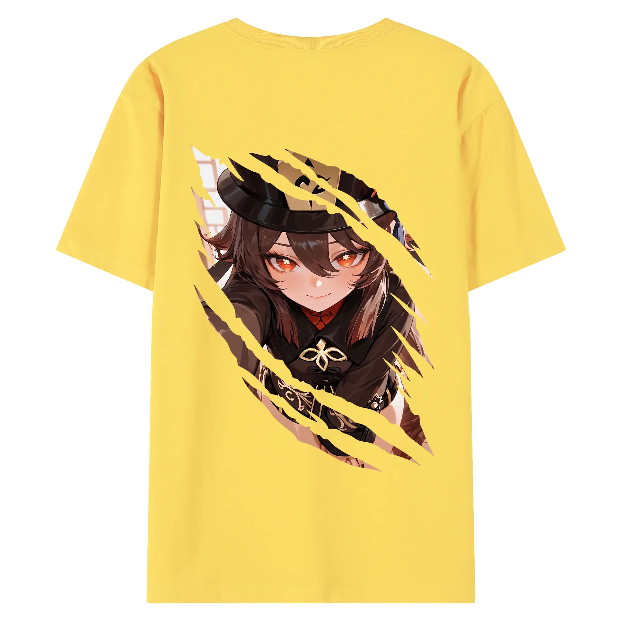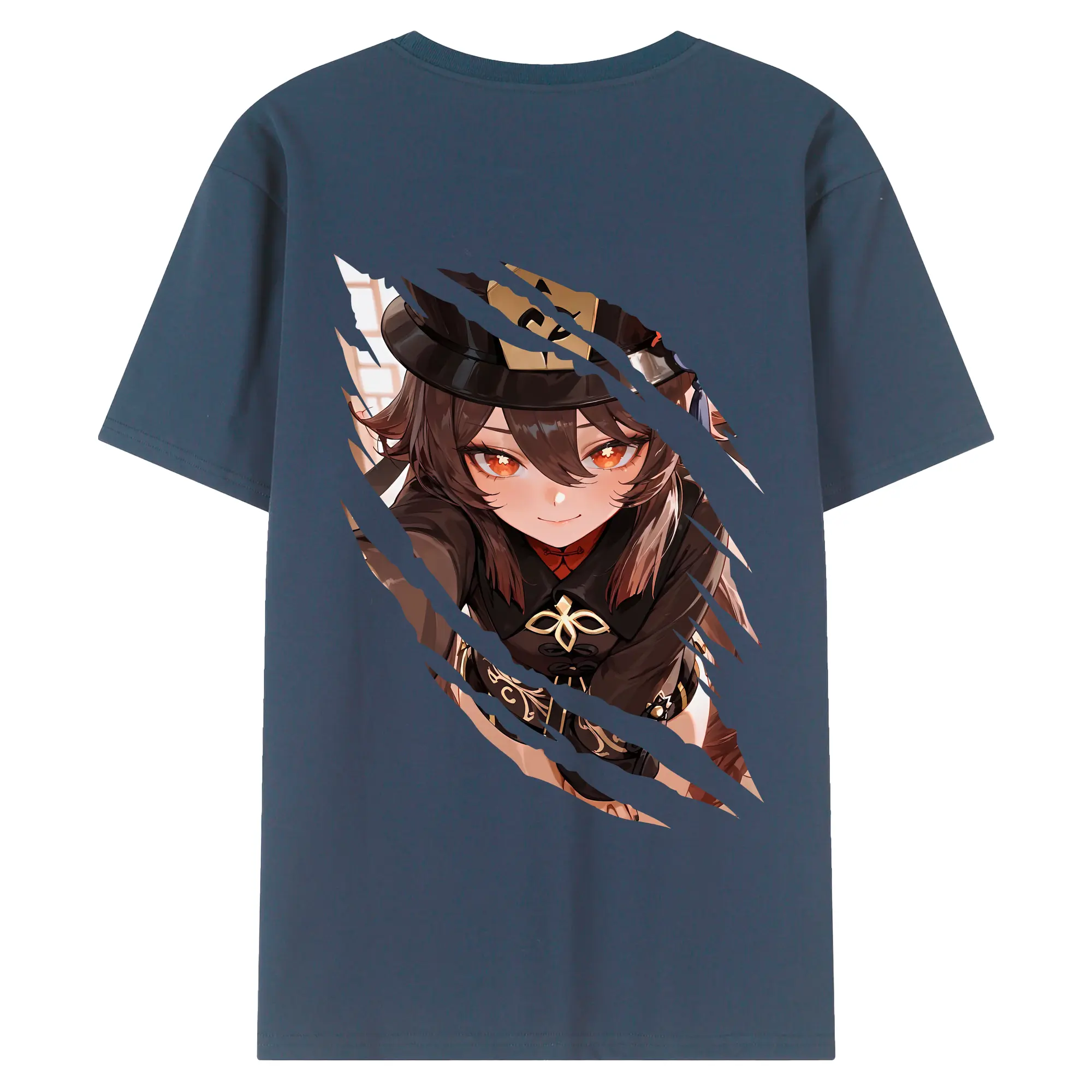 原 神 グッズ フータオ - 綿100% ヴィンテージ風 半袖Tシャツ ・ 背面プリント ・ 柔らか肌触り ・ 通気性 快適 ・ スポーツ カジュアル 外出用
