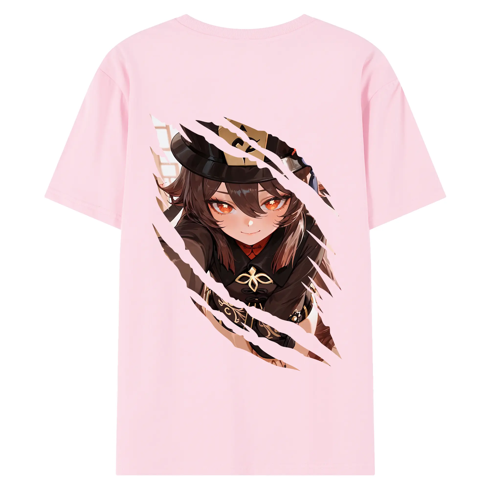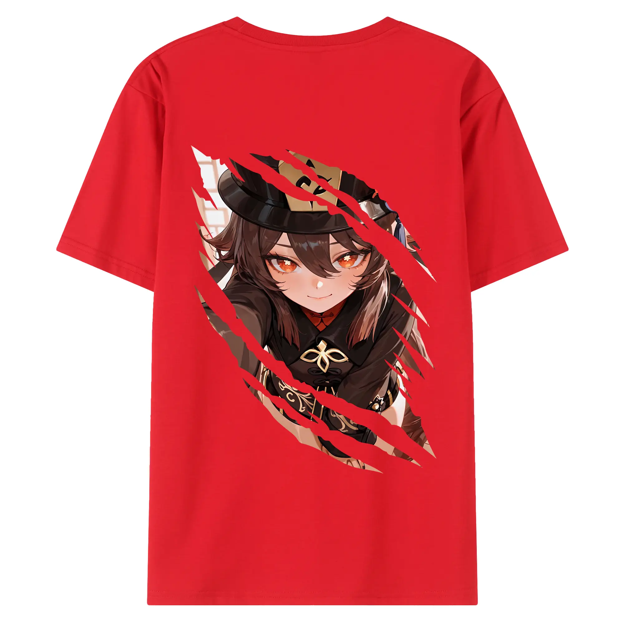 原 神 グッズ フータオ - 綿100% 半袖Tシャツ ・ フロントプリント ・ 快適 通気性 ・ 日常使い 散歩 スポーツ用