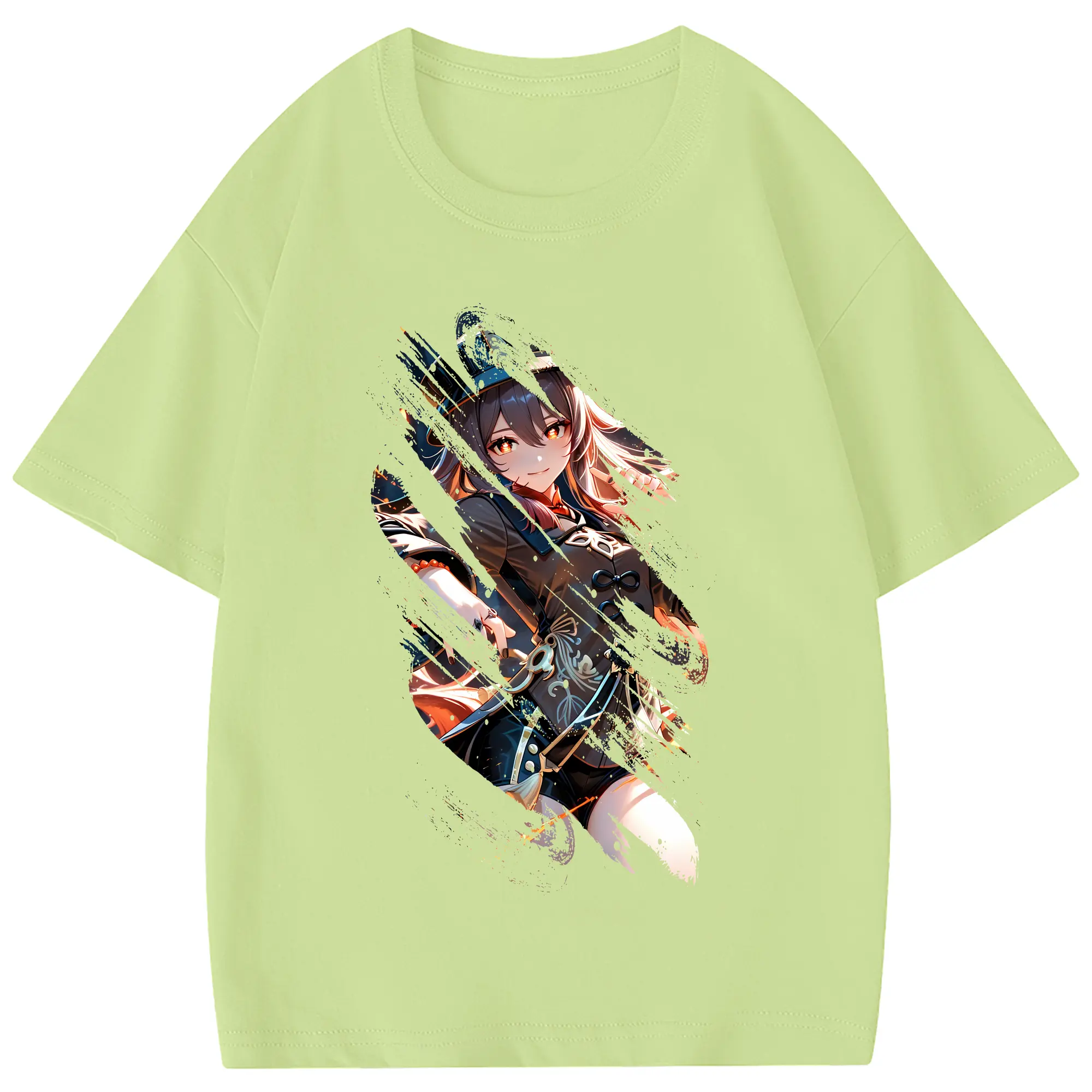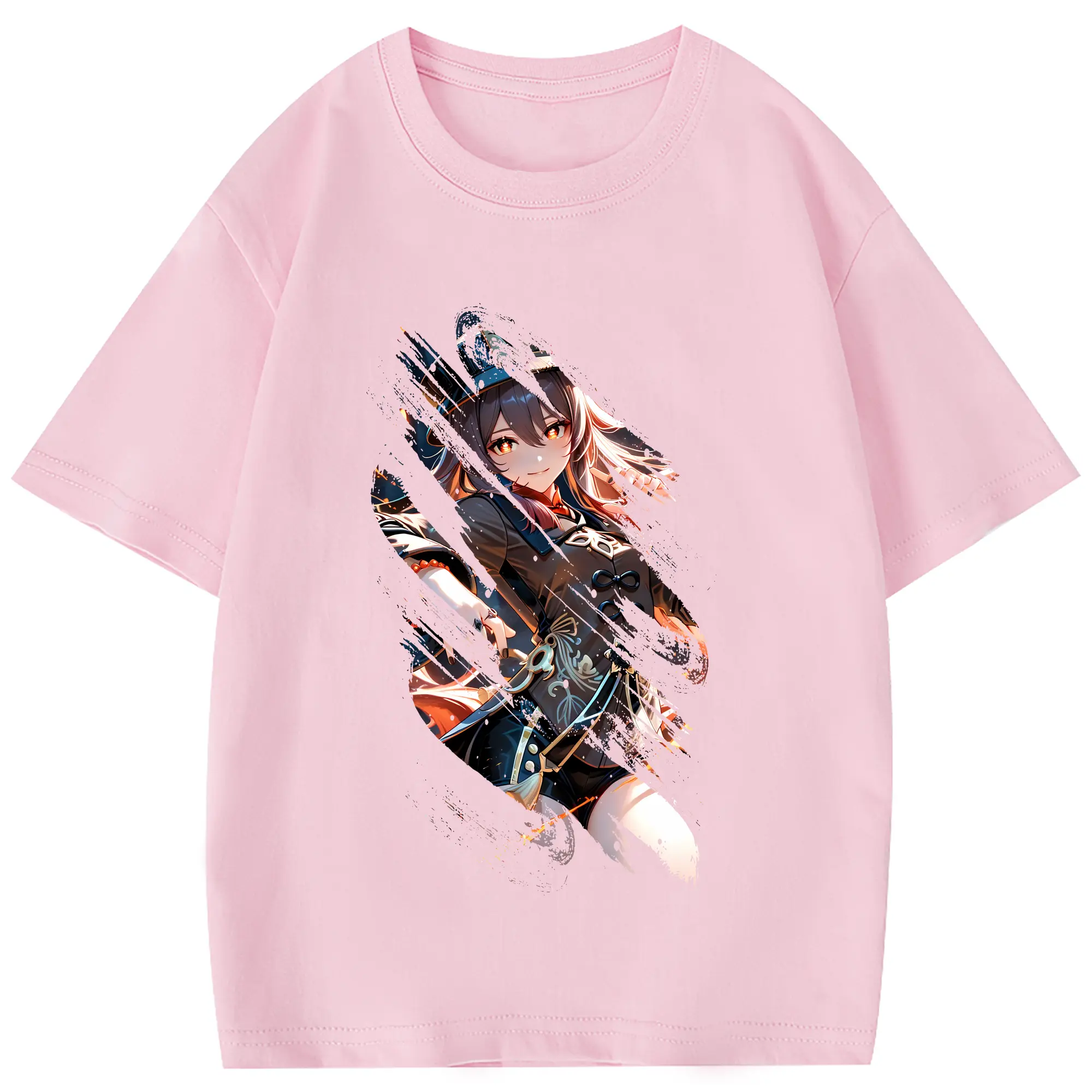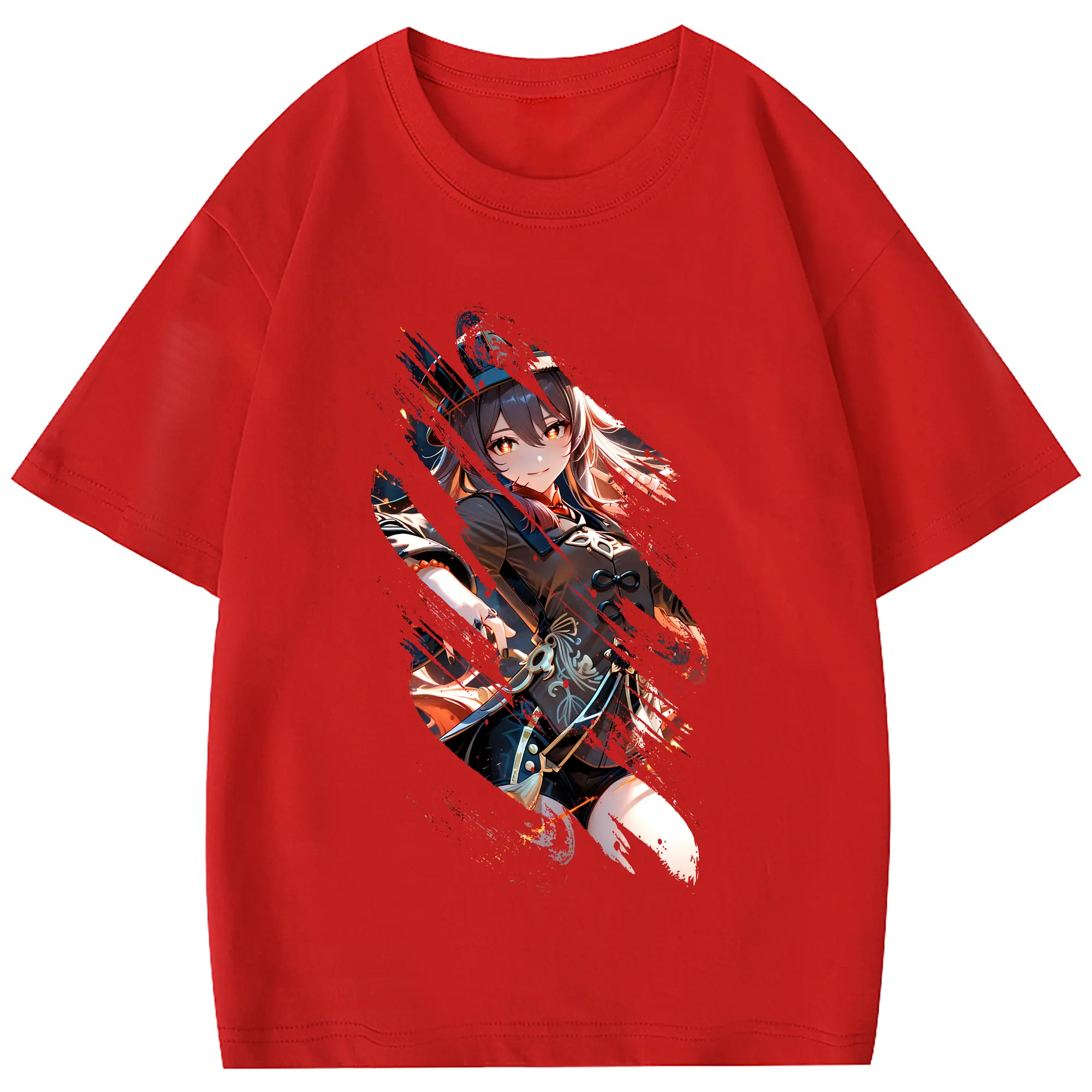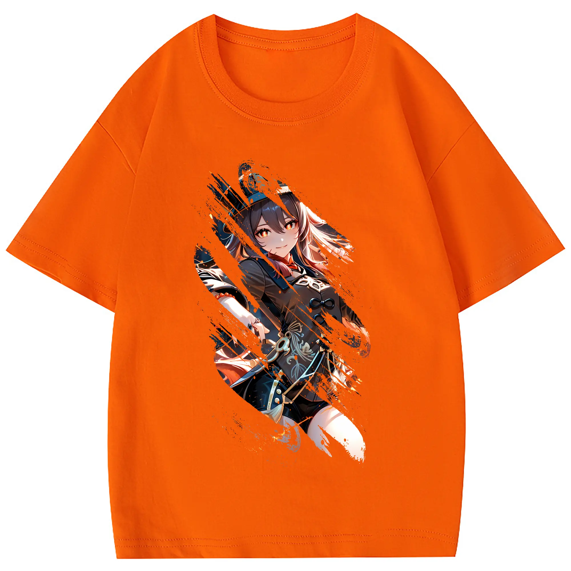 原 神 グッズ フータオ - 綿100% 半袖Tシャツ ・ フロントプリント ・ 快適 通気性 ・ 日常使い 散歩 スポーツ用