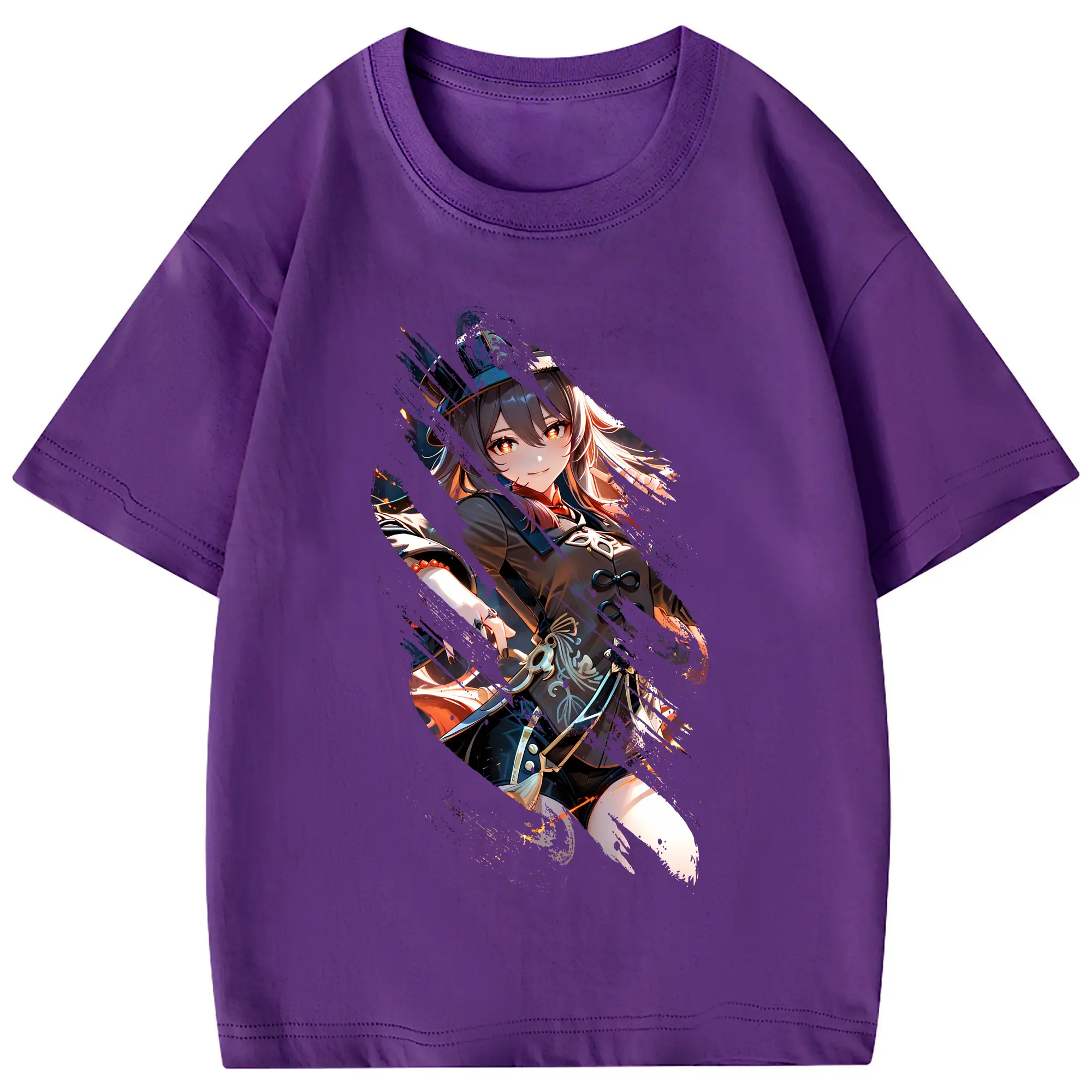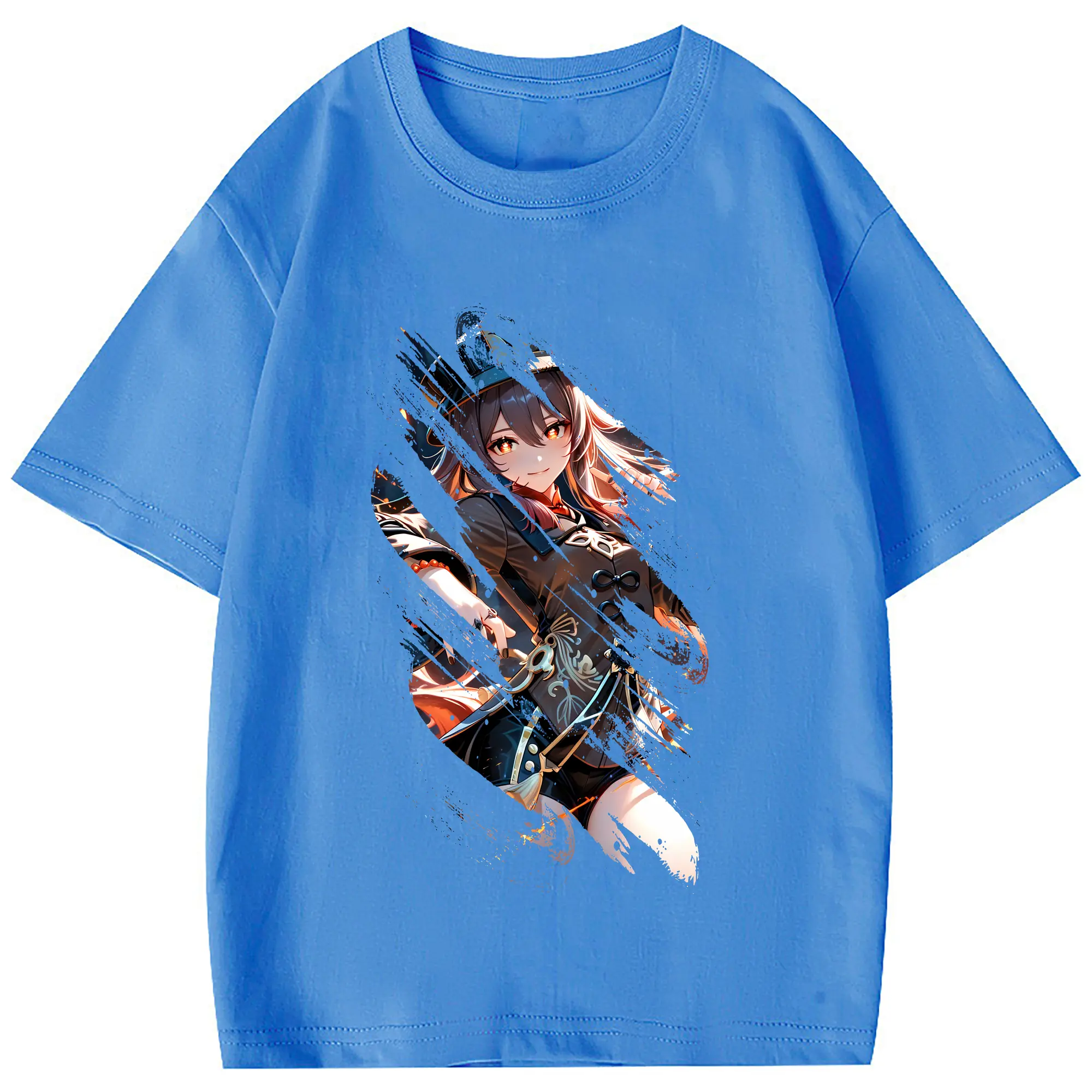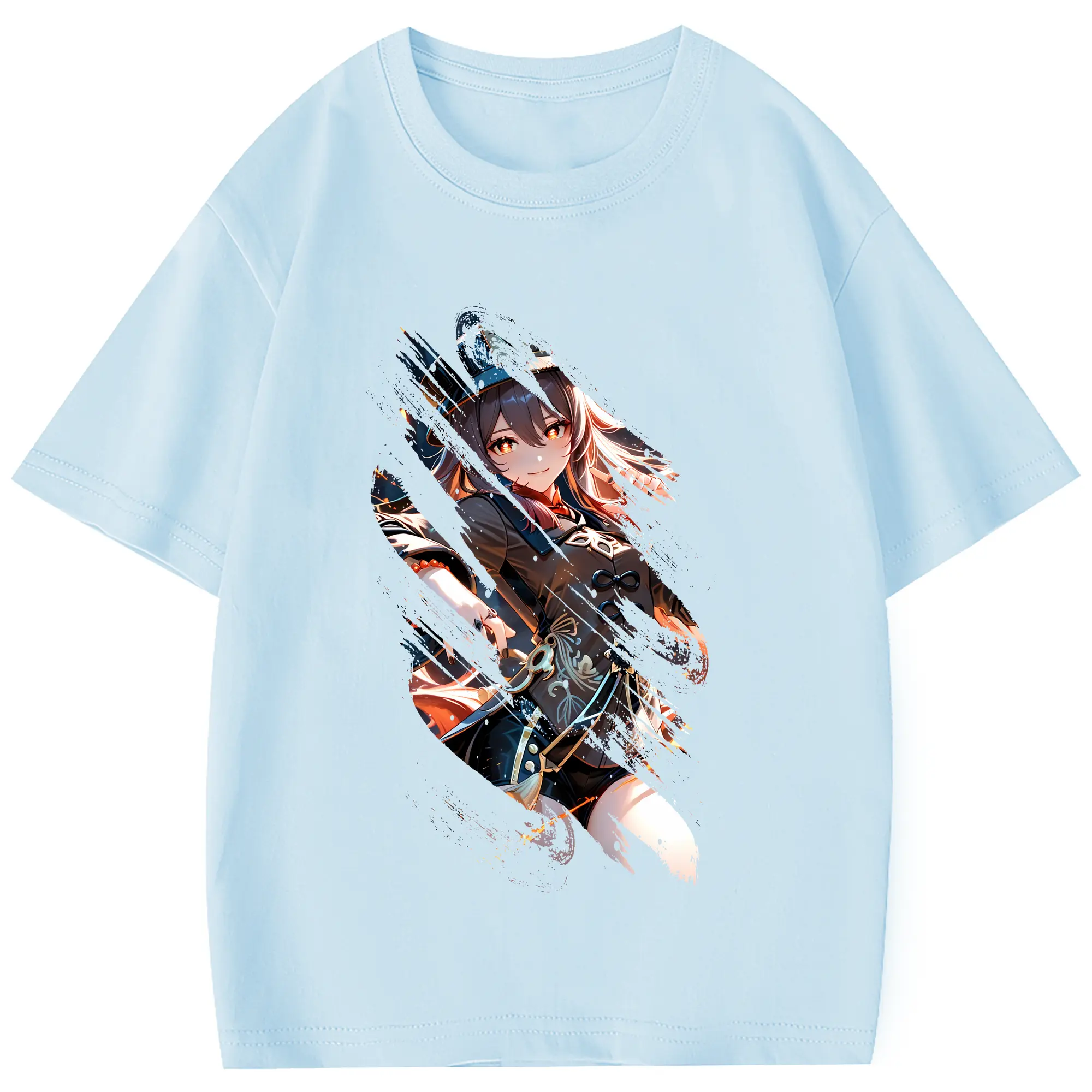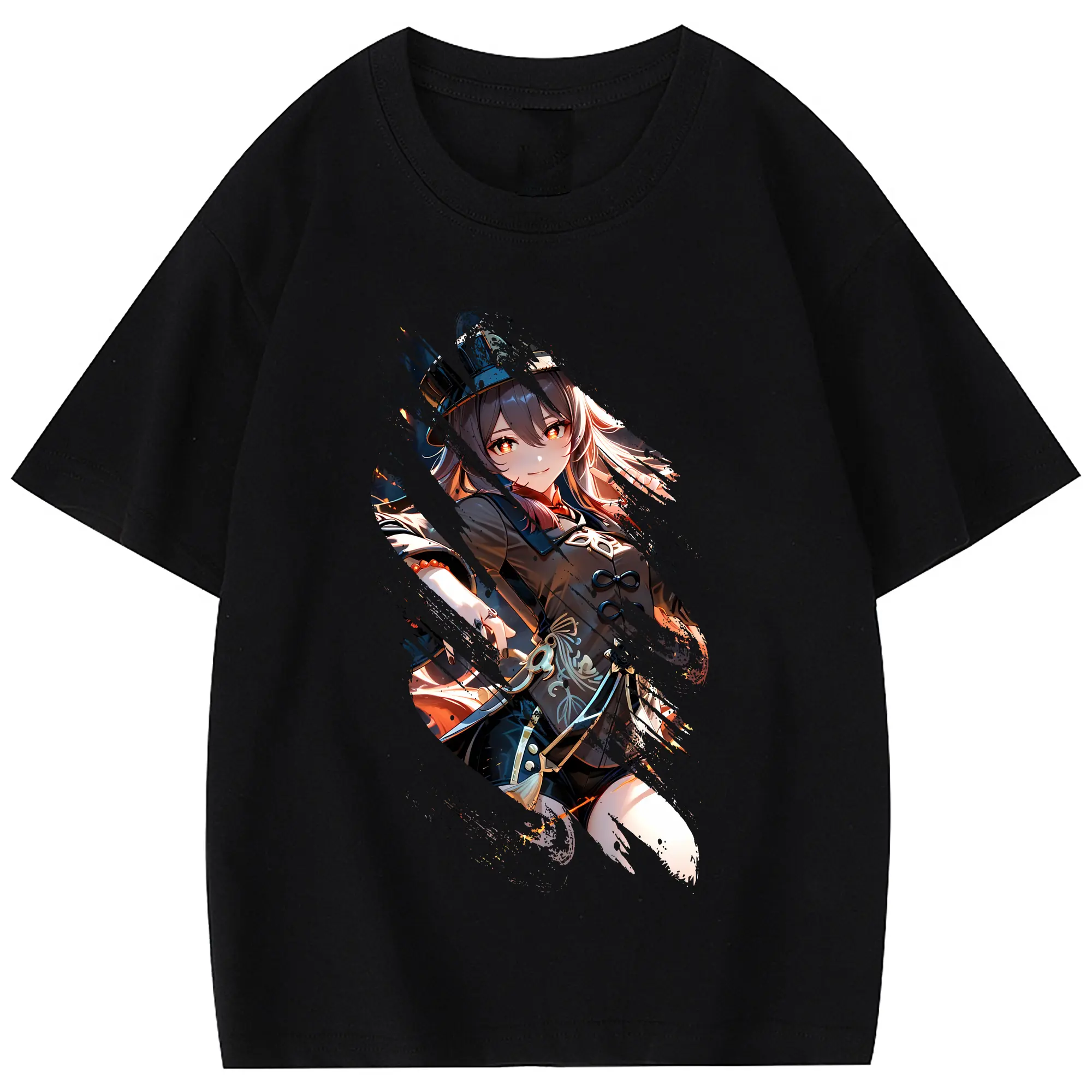 原 神 グッズ フータオ - 綿100% 半袖Tシャツ ・ フロントプリント ・ 快適 通気性 ・ 日常使い 散歩 スポーツ用