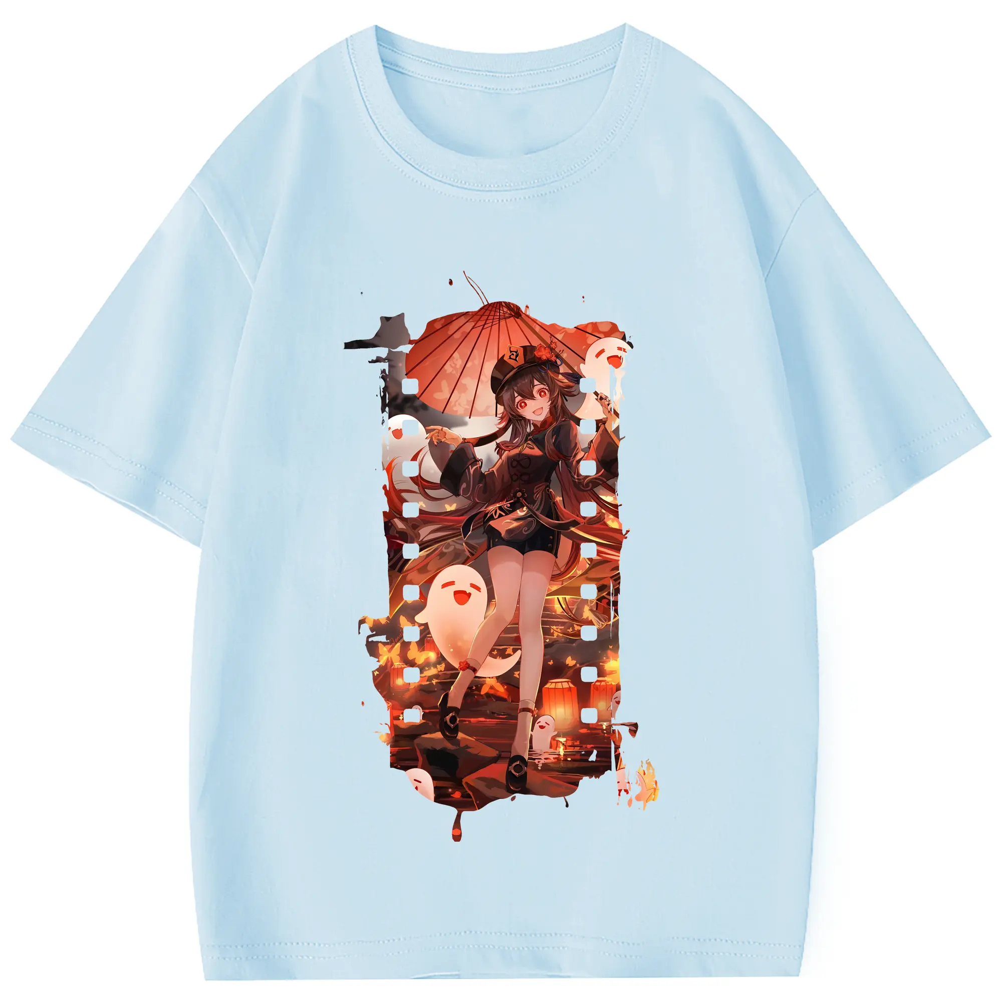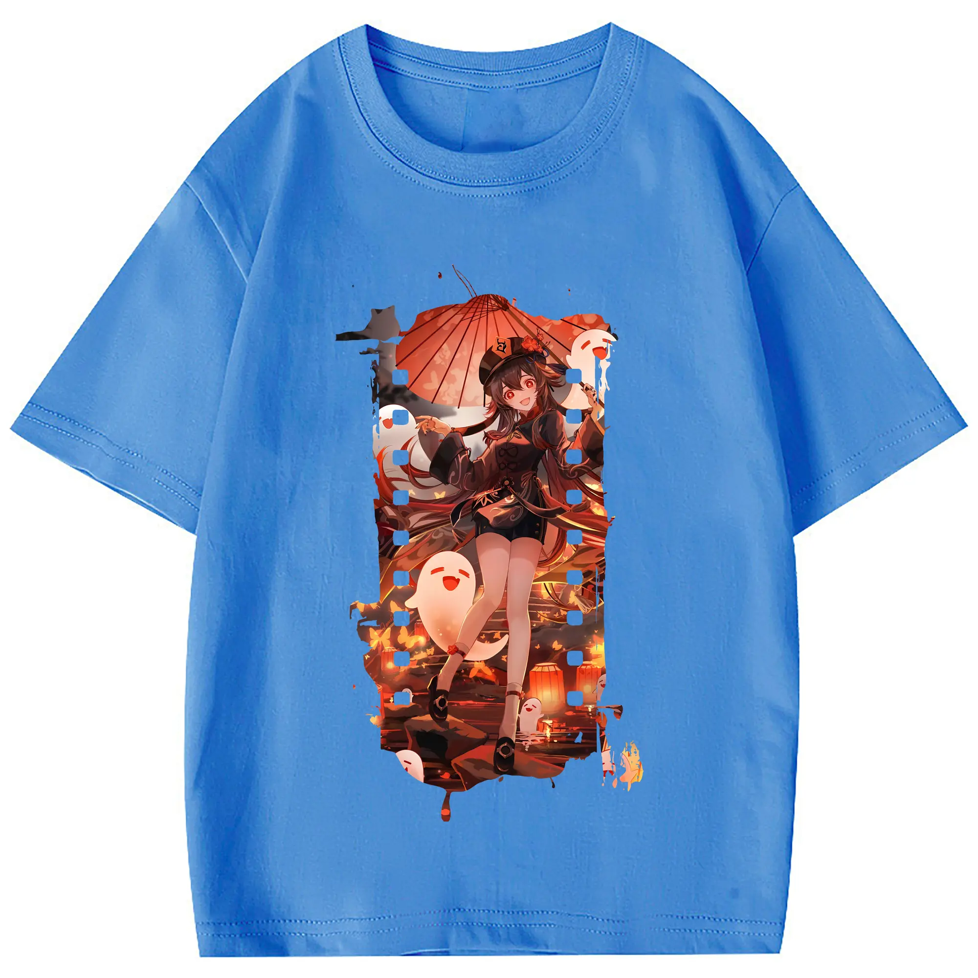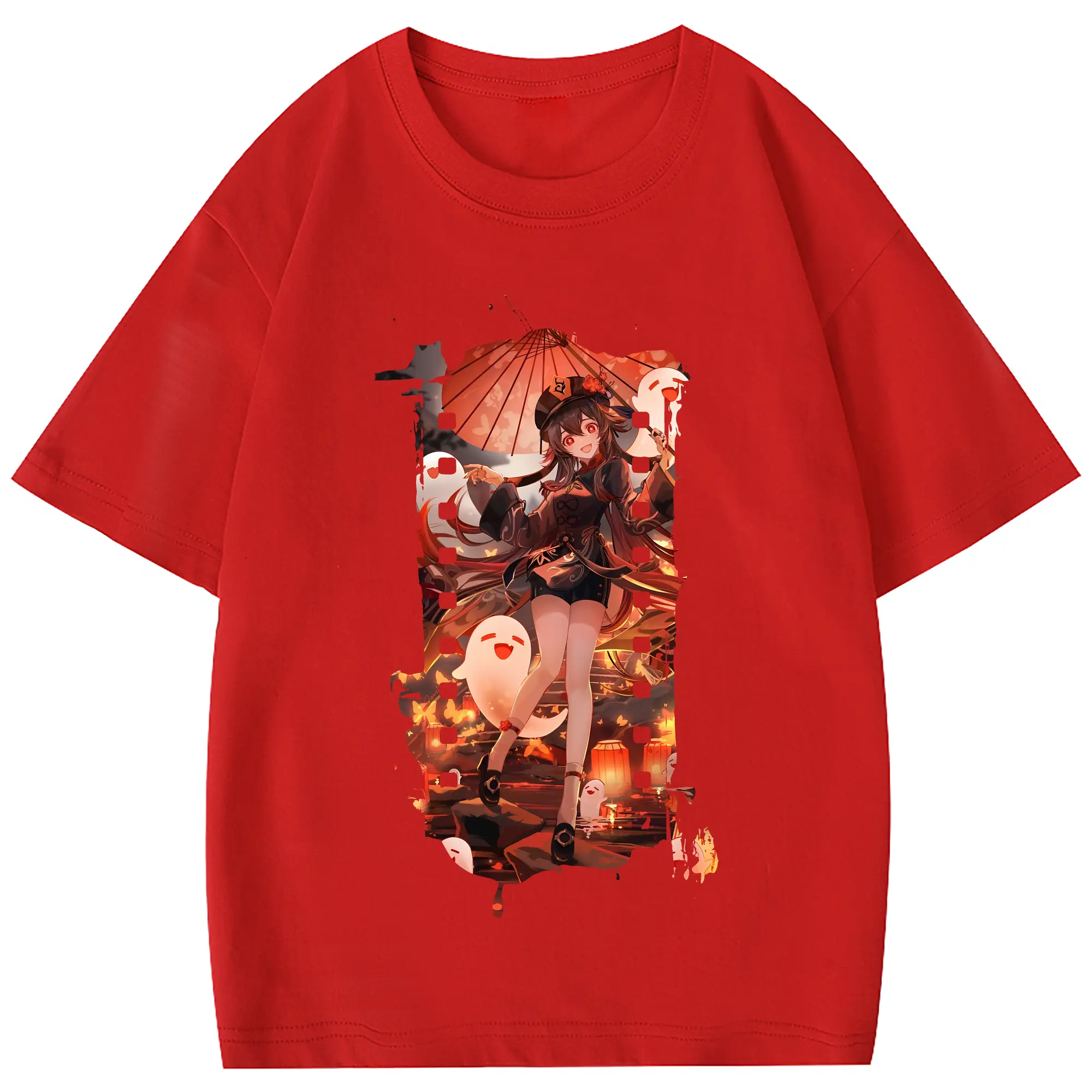 原 神 グッズ フータオ - 綿100% 半袖Tシャツ ・ フロントプリント ・ 快適 通気性 ・ 日常使い 散歩 スポーツ用