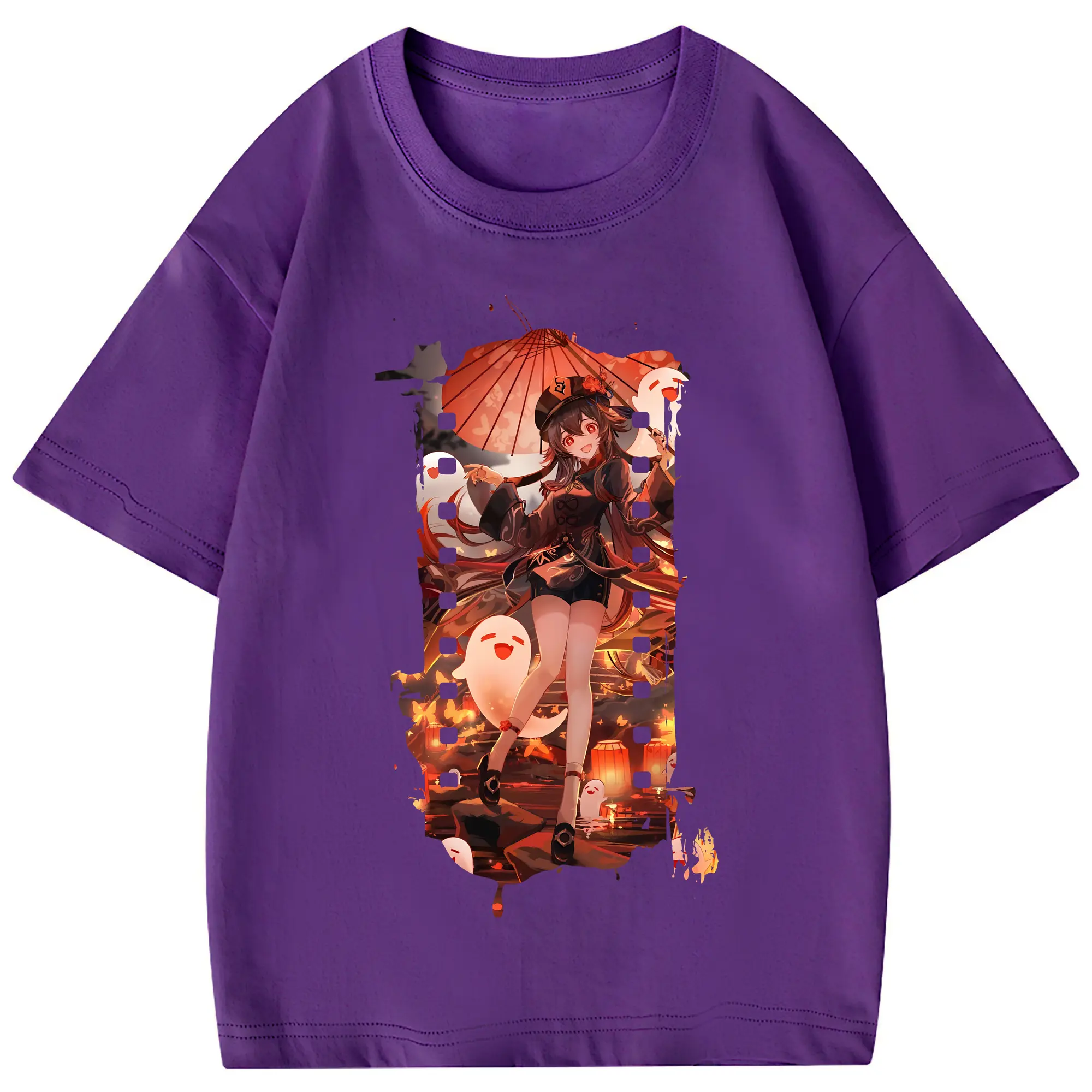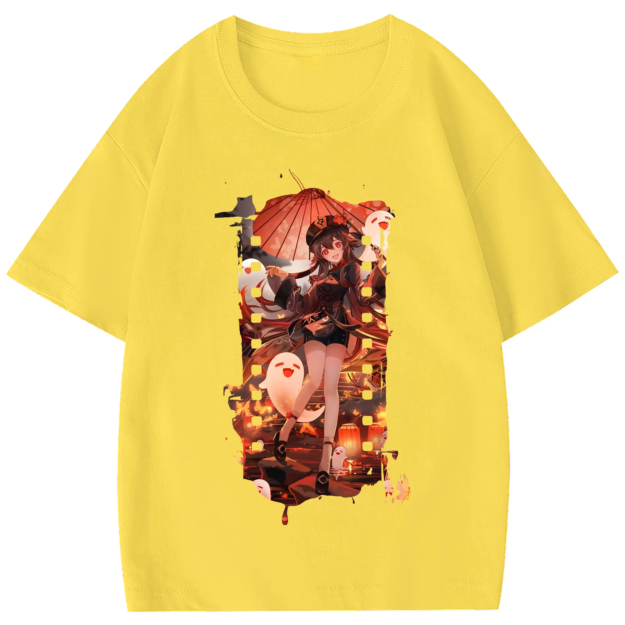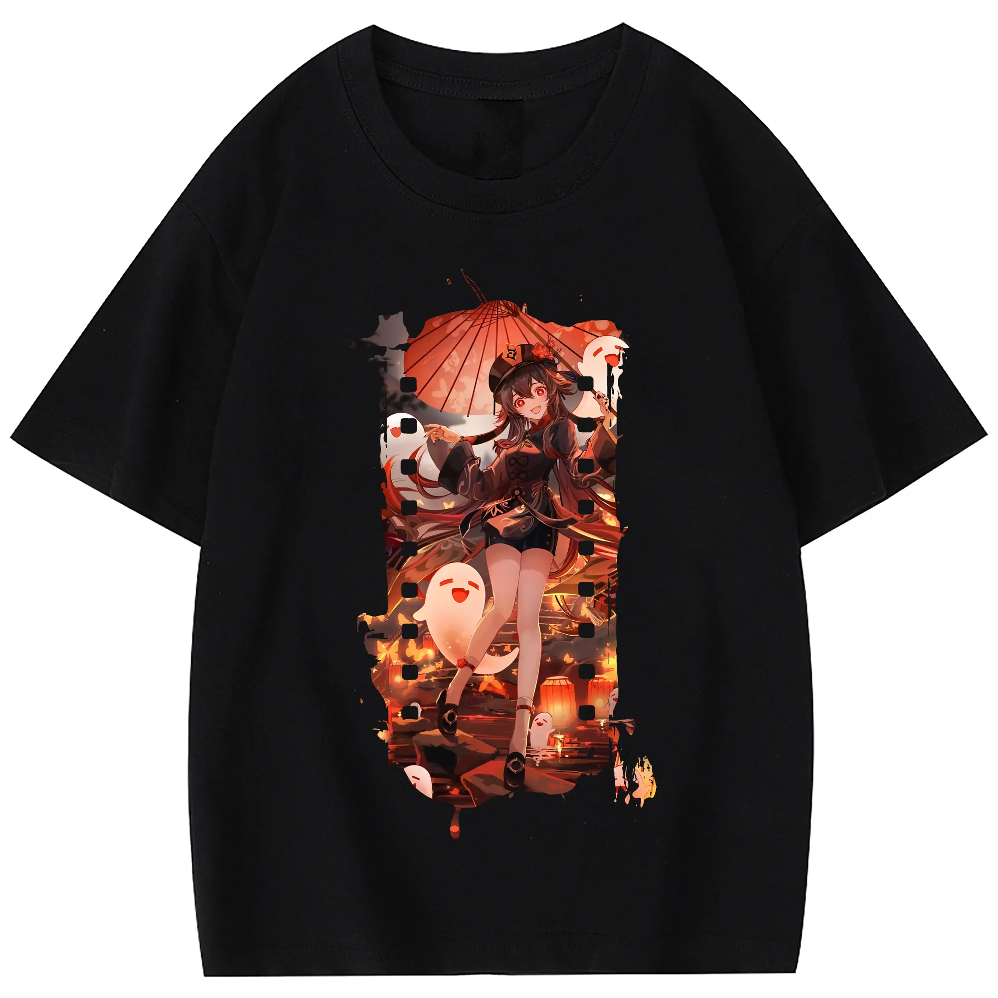 原 神 グッズ フータオ - 綿100% 半袖Tシャツ ・ フロントプリント ・ 快適 通気性 ・ 日常使い 散歩 スポーツ用