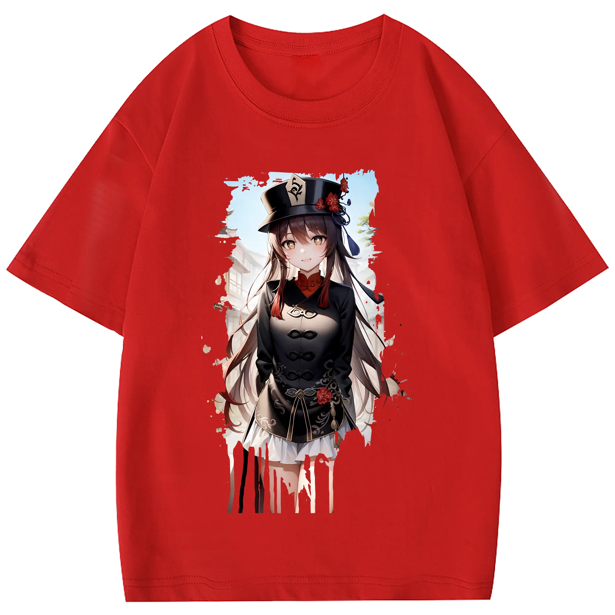 原 神 グッズ フータオ - 綿100% 半袖Tシャツ ・ フロントプリント ・ 快適 通気性 ・ 日常使い 散歩 スポーツ用