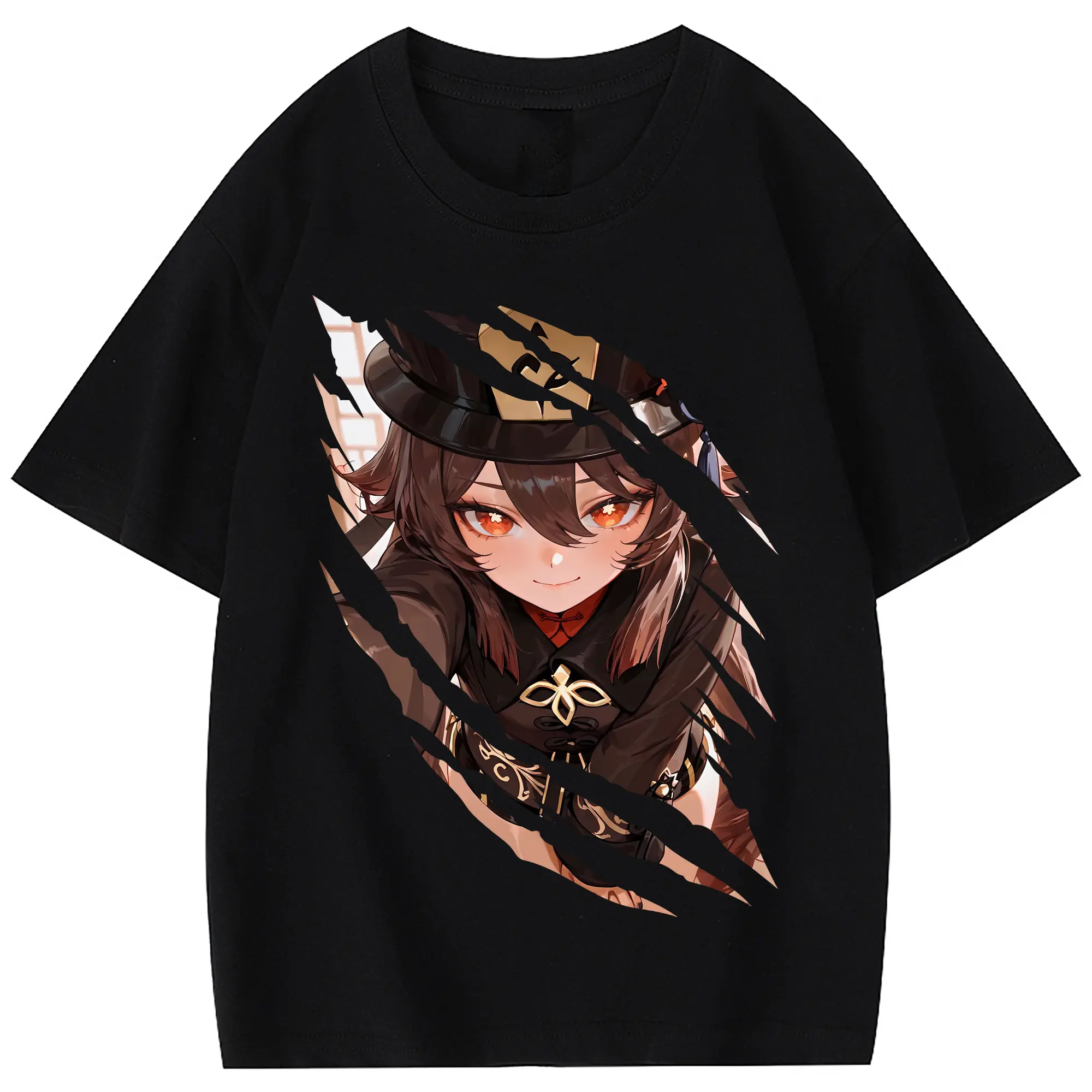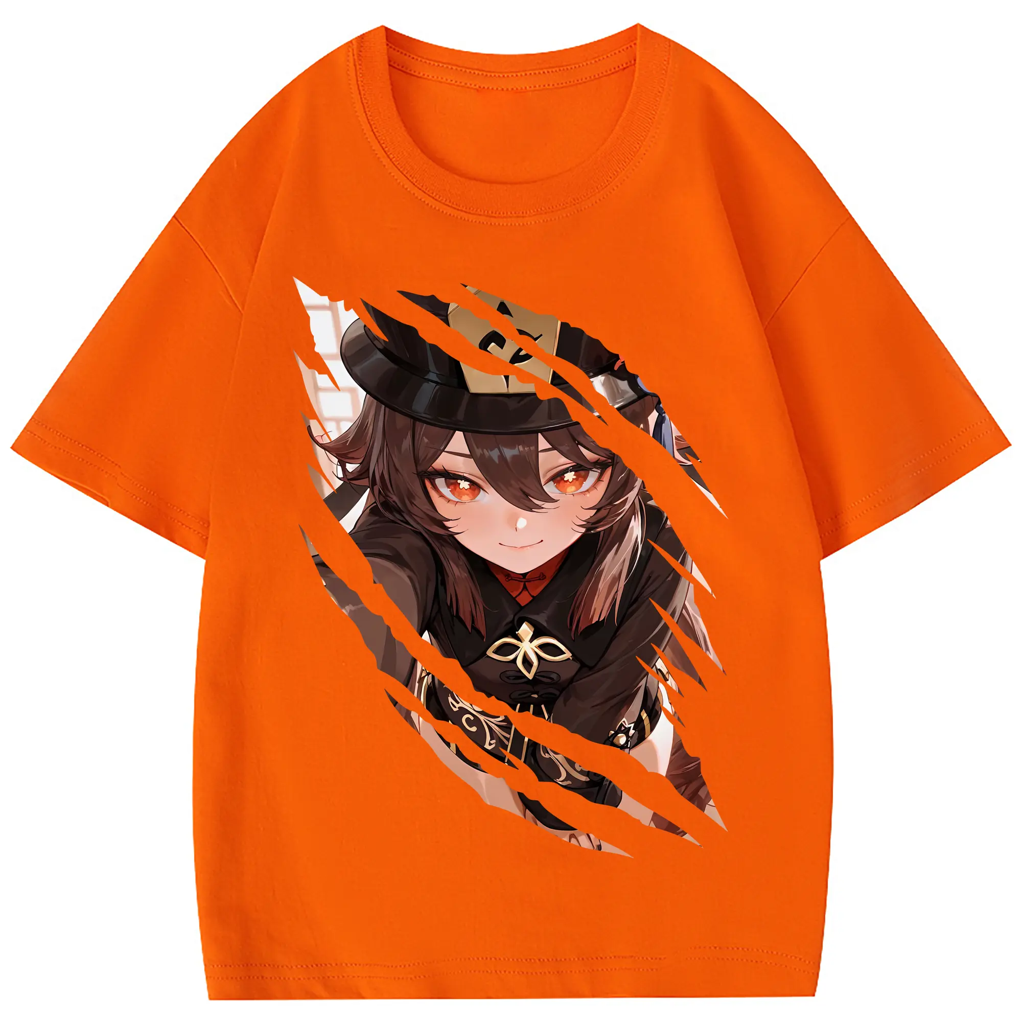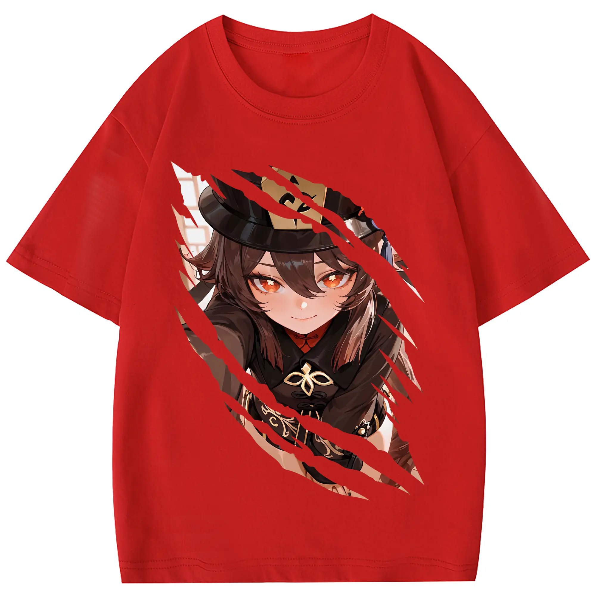 原 神 グッズ フータオ - 綿100% 半袖Tシャツ ・ フロントプリント ・ 快適 通気性 ・ 日常使い 散歩 スポーツ用