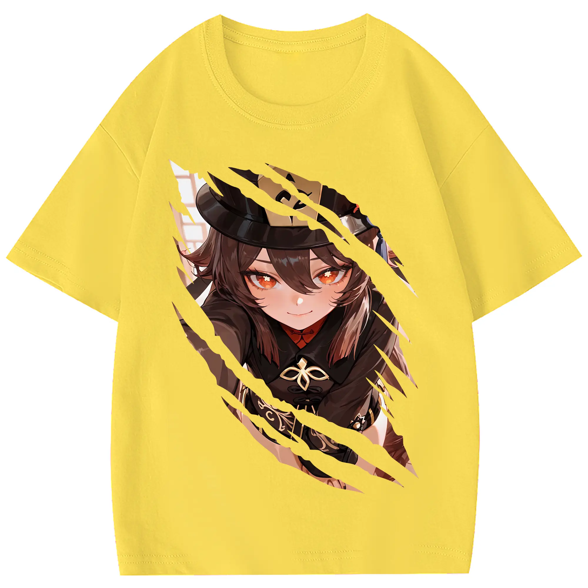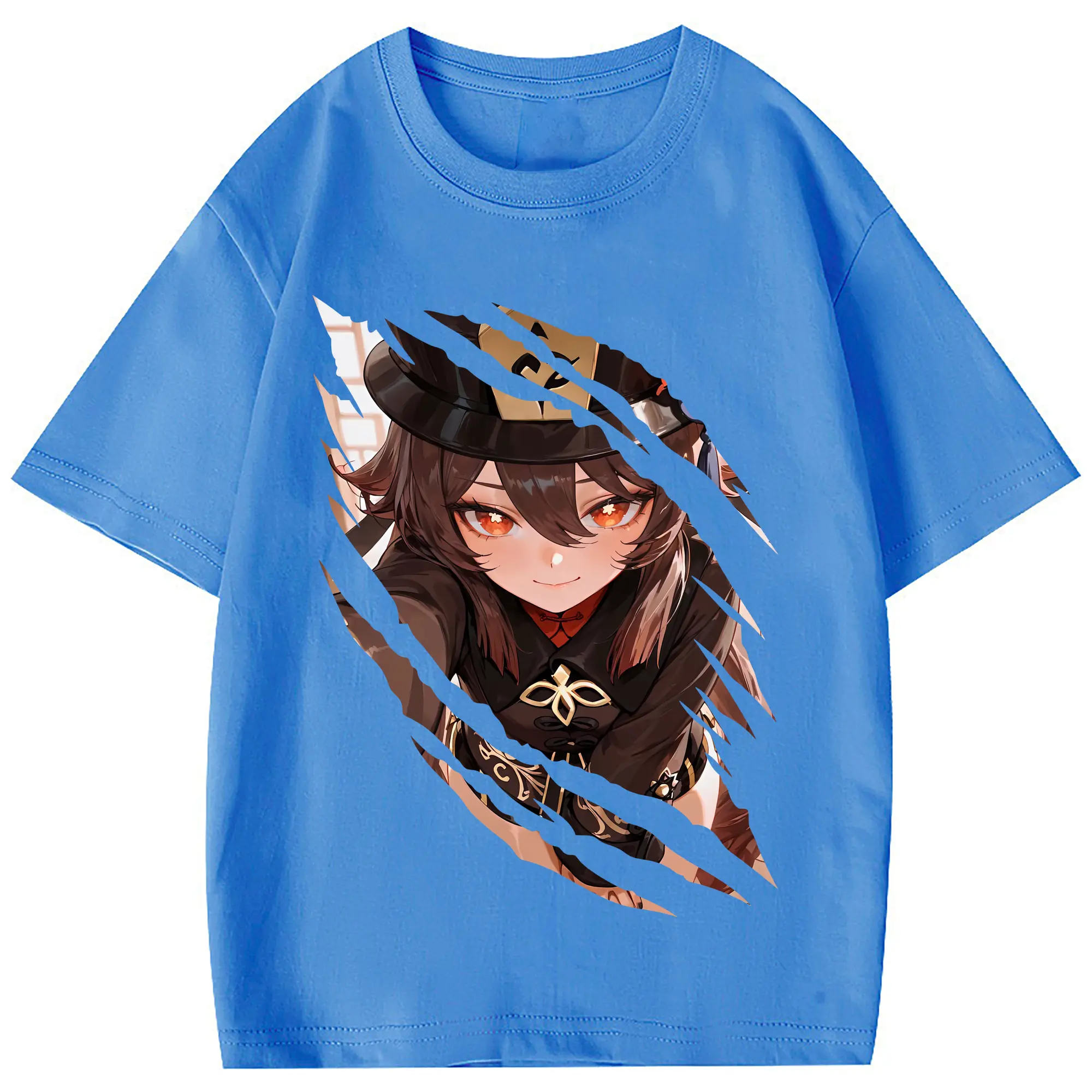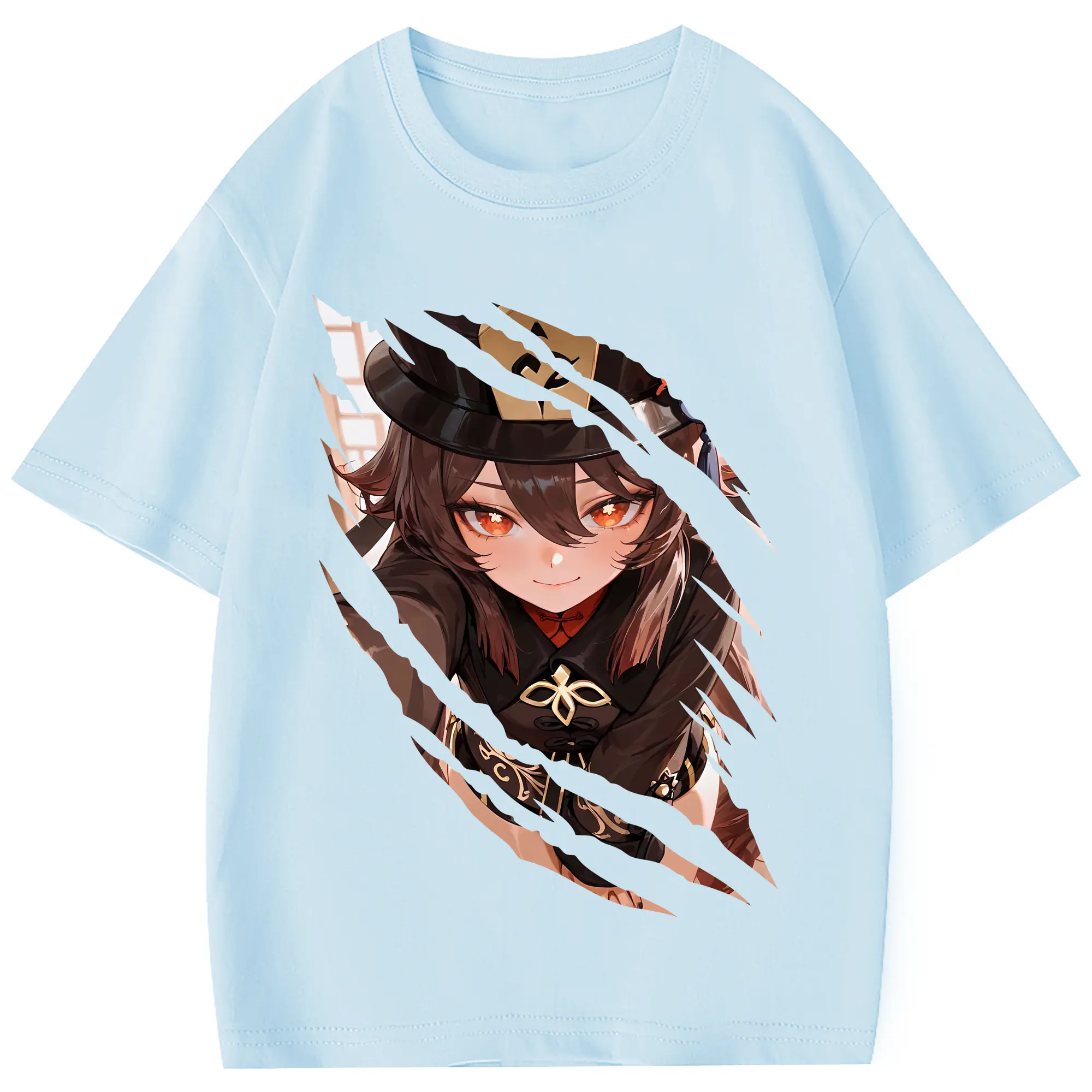 原 神 グッズ フータオ - 綿100% 半袖Tシャツ ・ フロントプリント ・ 快適 通気性 ・ 日常使い 散歩 スポーツ用