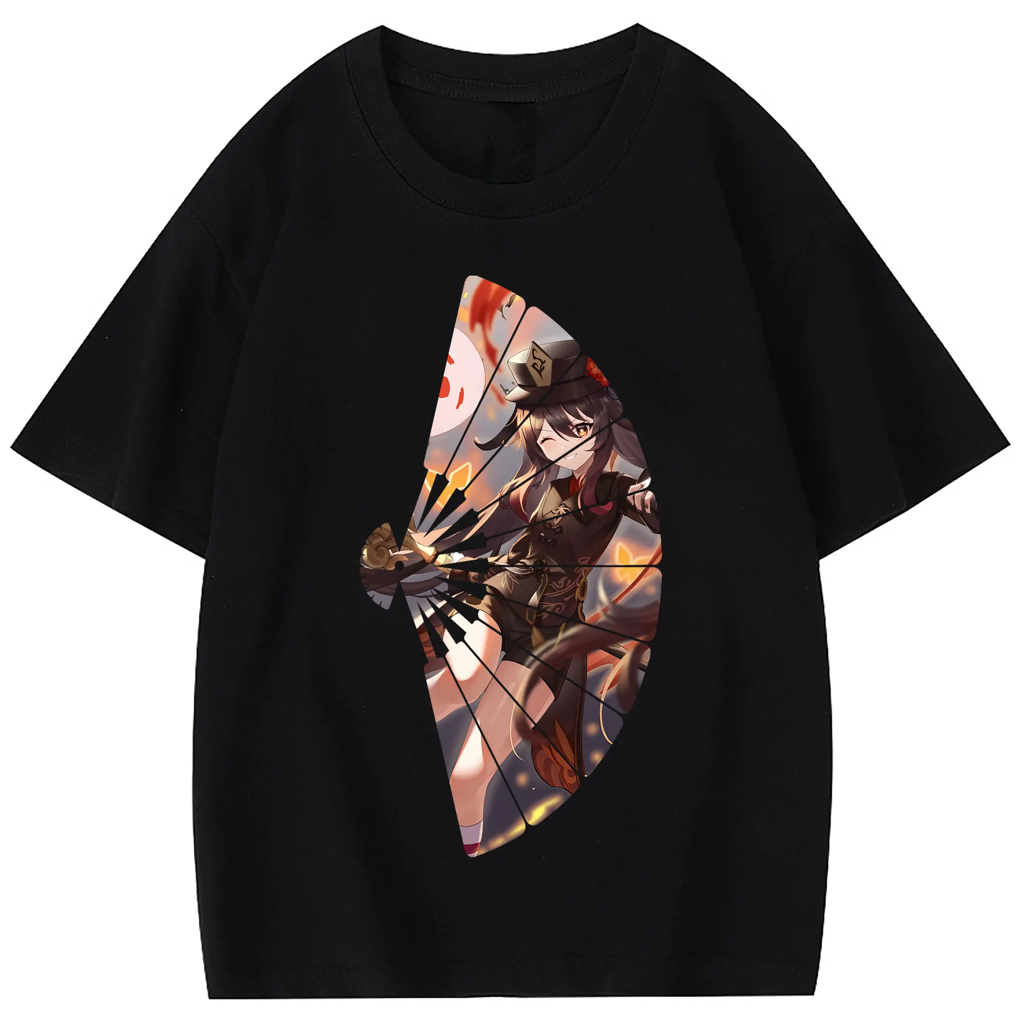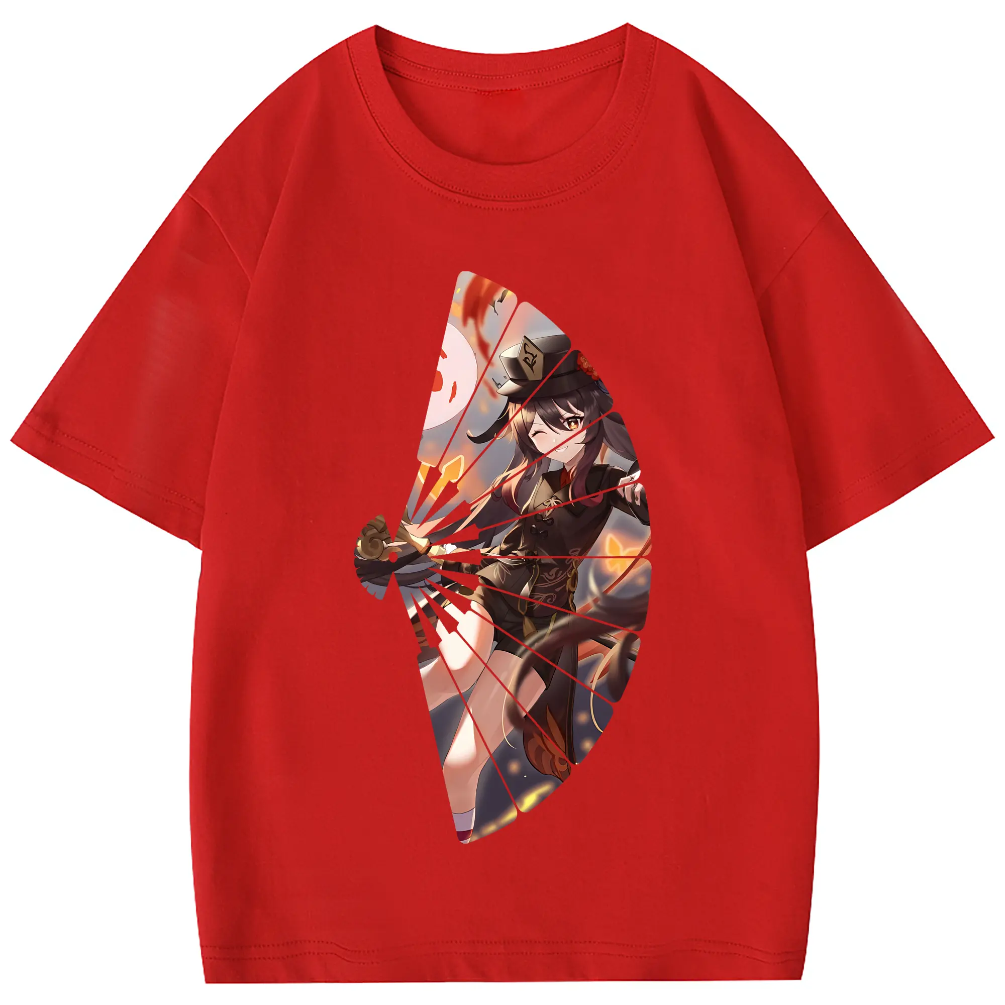 原 神 グッズ フータオ - 綿100% 半袖Tシャツ ・ フロントプリント ・ 快適 通気性 ・ 日常使い 散歩 スポーツ用