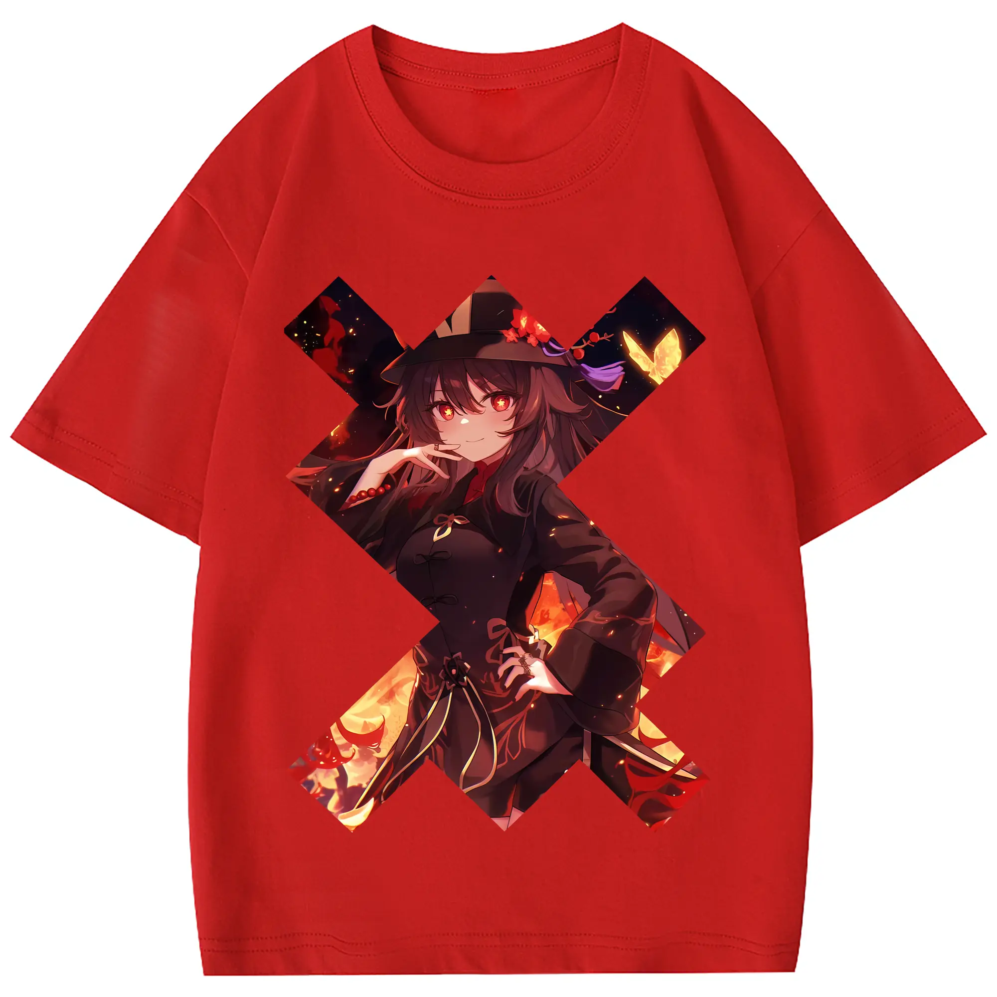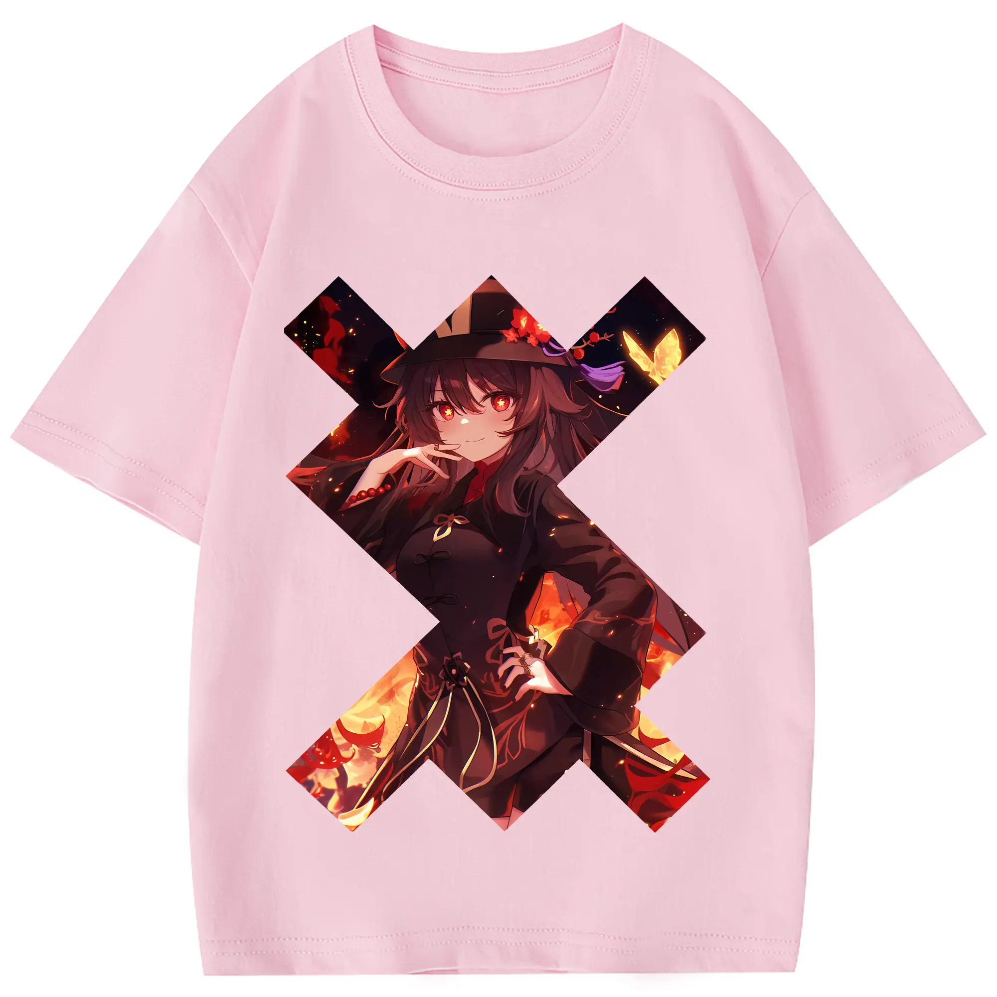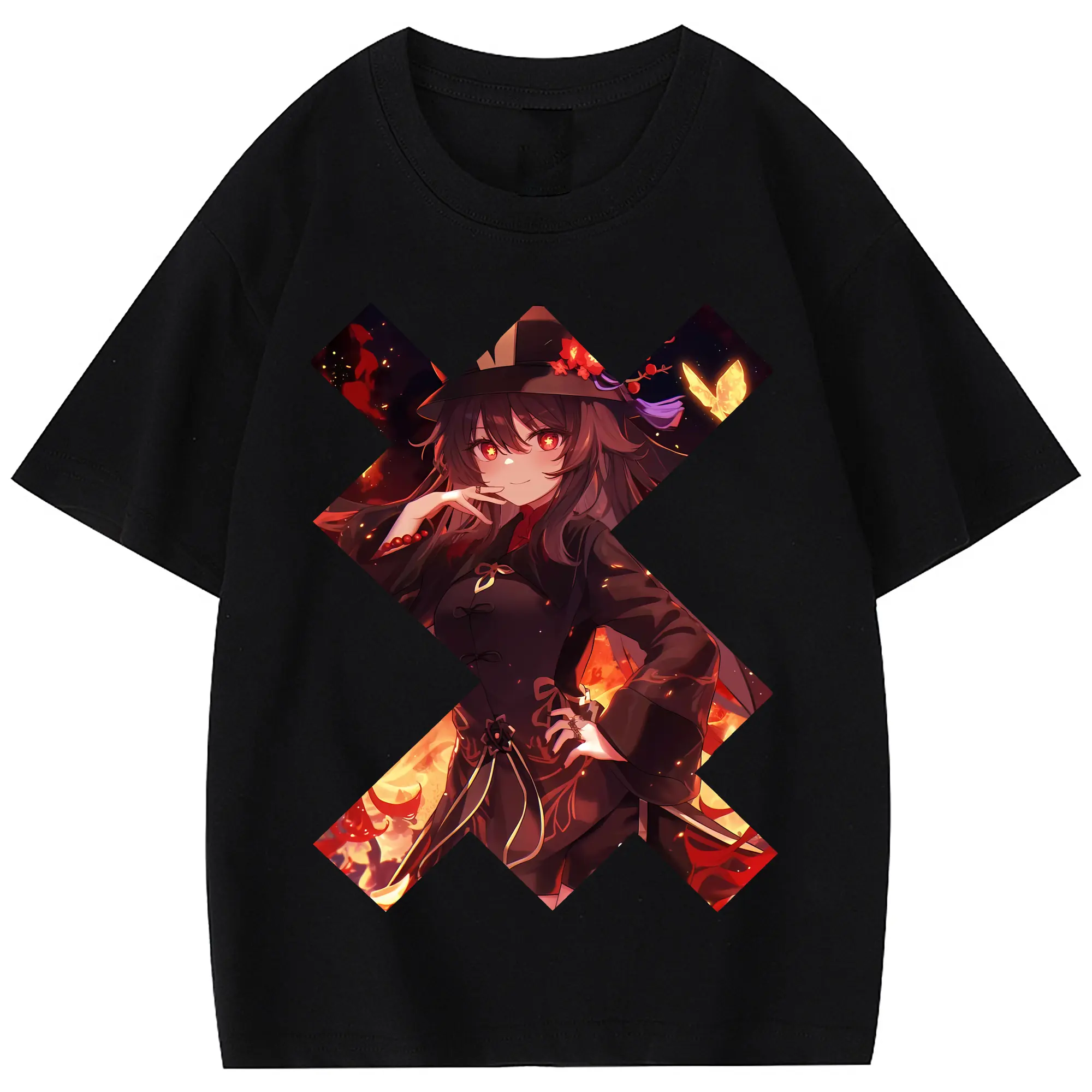 原 神 グッズ フータオ - 綿100% 半袖Tシャツ ・ フロントプリント ・ 快適 通気性 ・ 日常使い 散歩 スポーツ用