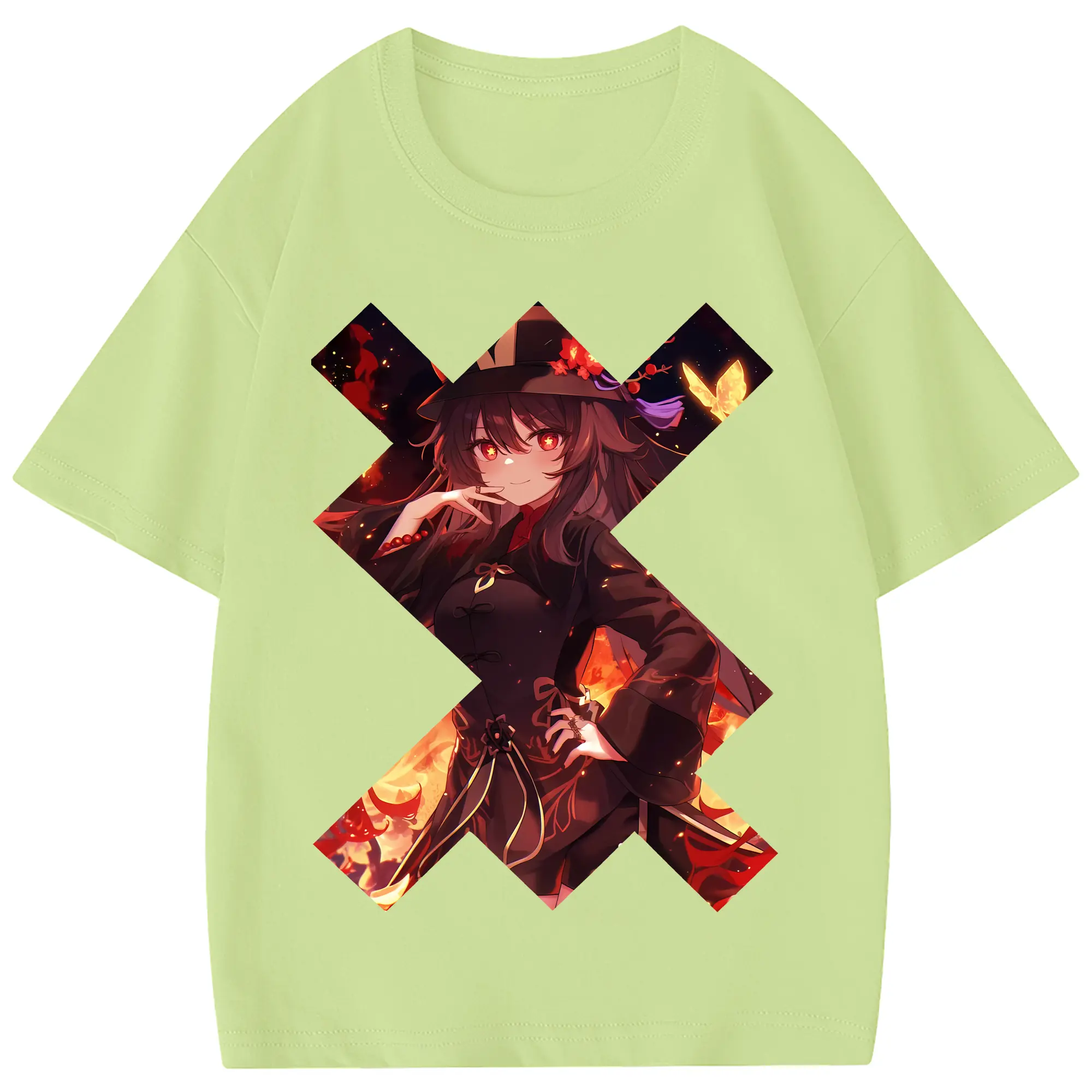 原 神 グッズ フータオ - 綿100% ヴィンテージ風 半袖Tシャツ ・ フロントプリント ・ 柔らか肌触り ・ 通気性 快適 ・ スポーツ カジュアル 外出用